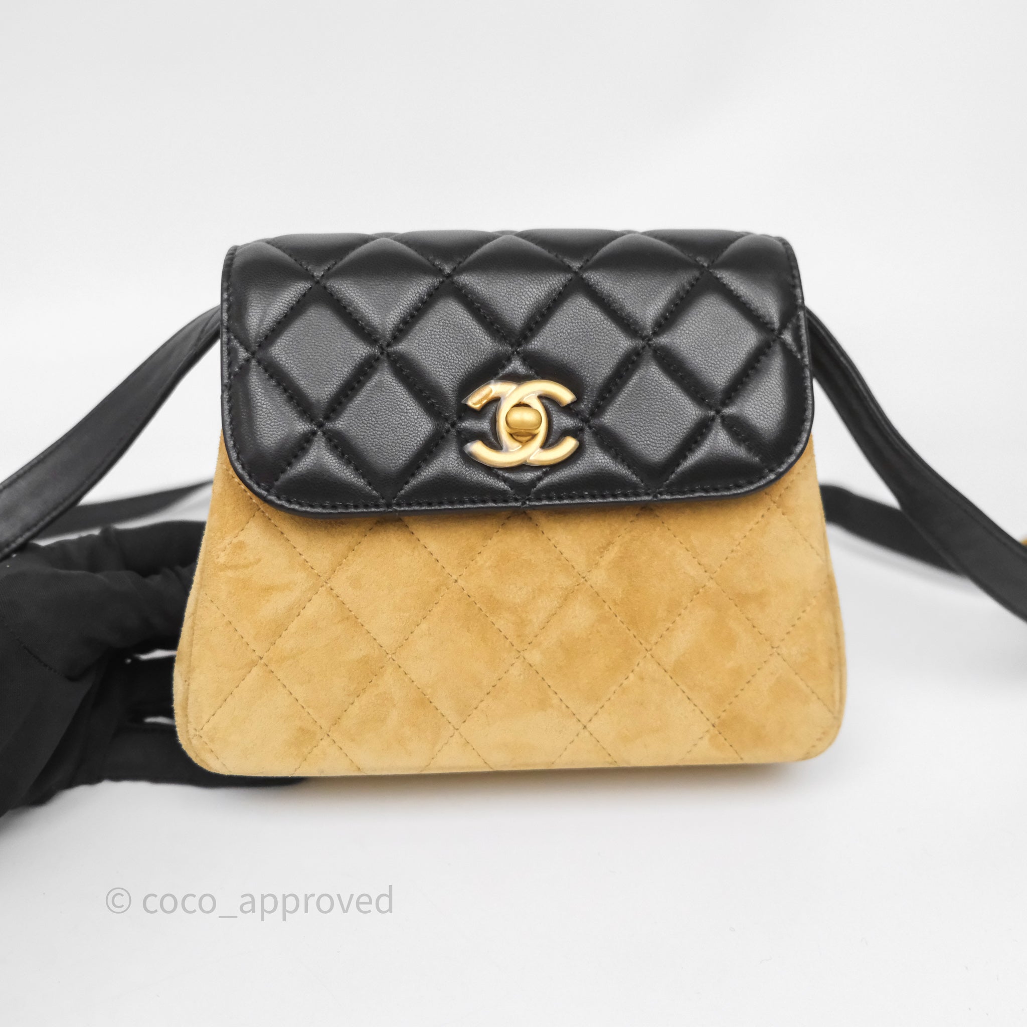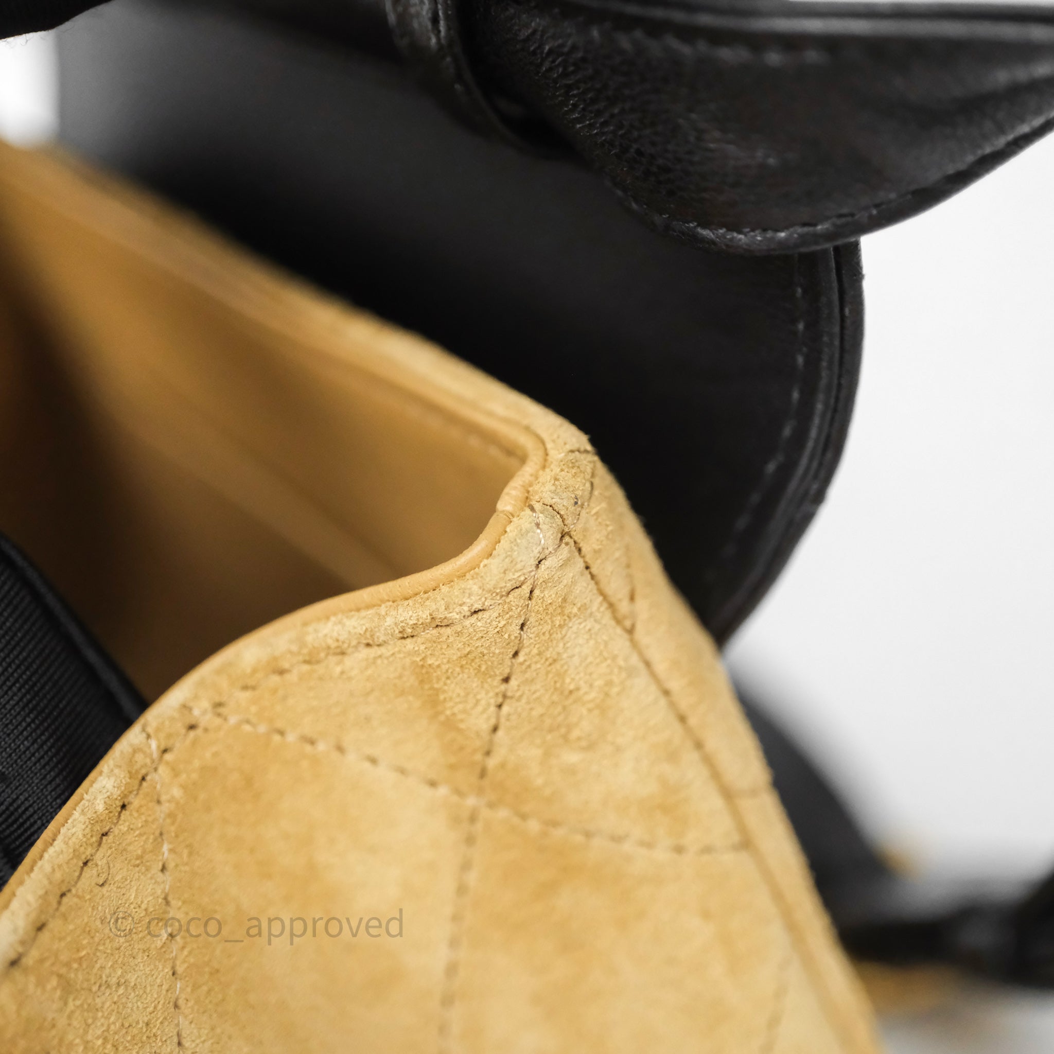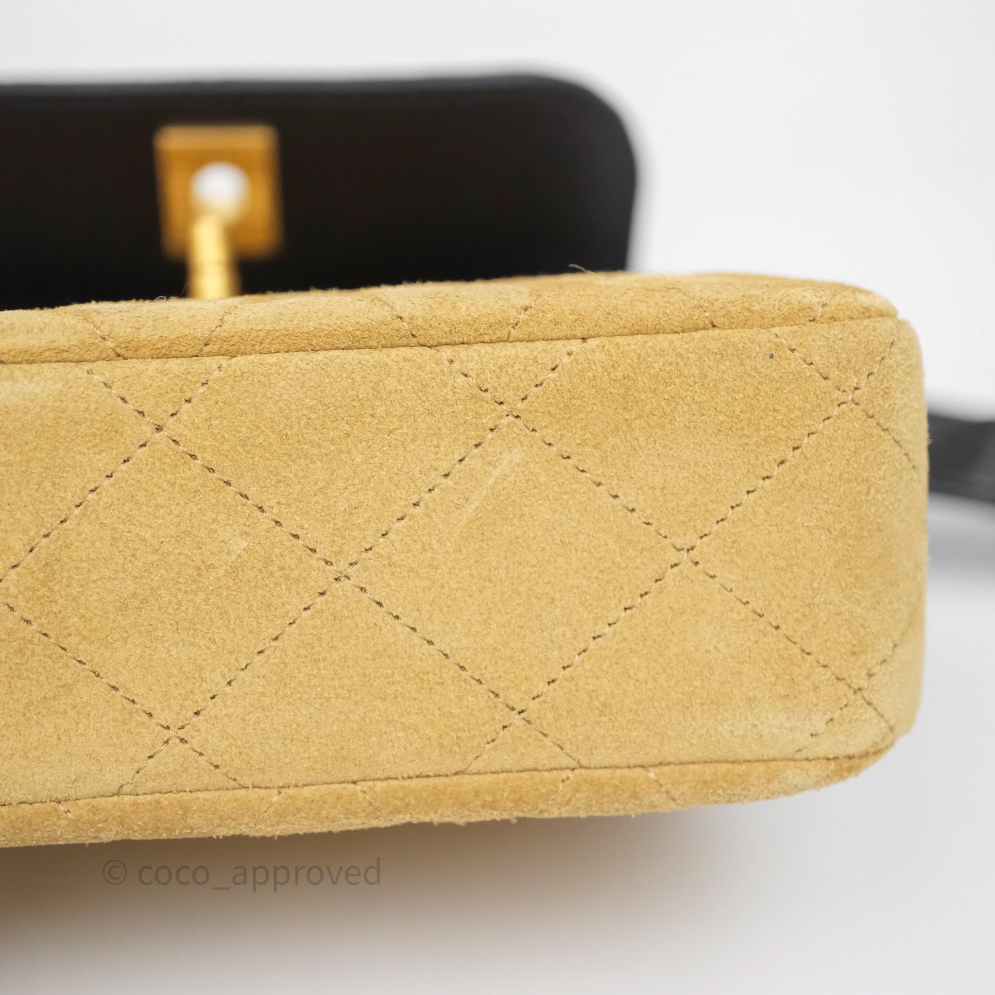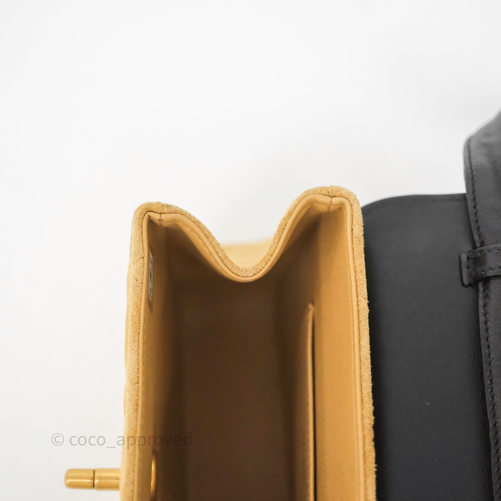 Chanel Mini Flap Bag Camel Suede/ Black Lambskin Gold Hardware