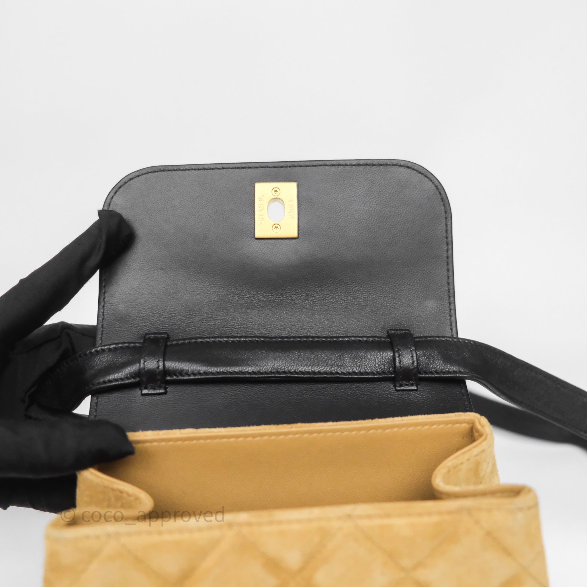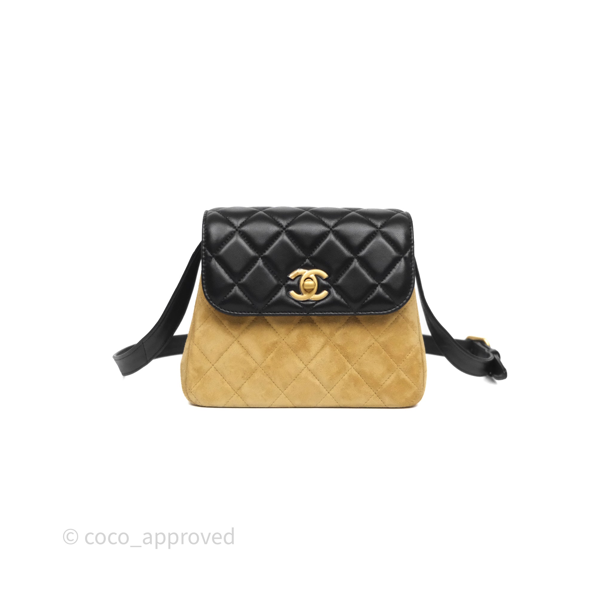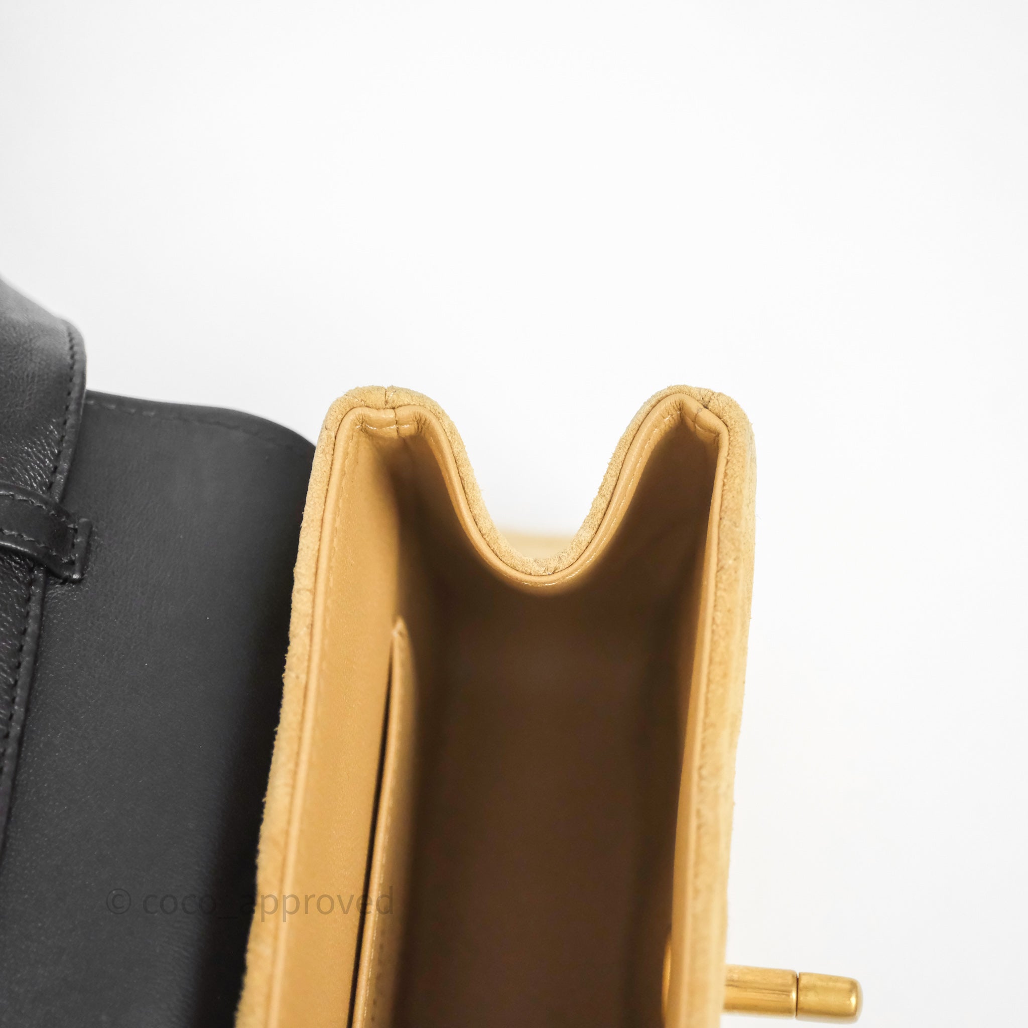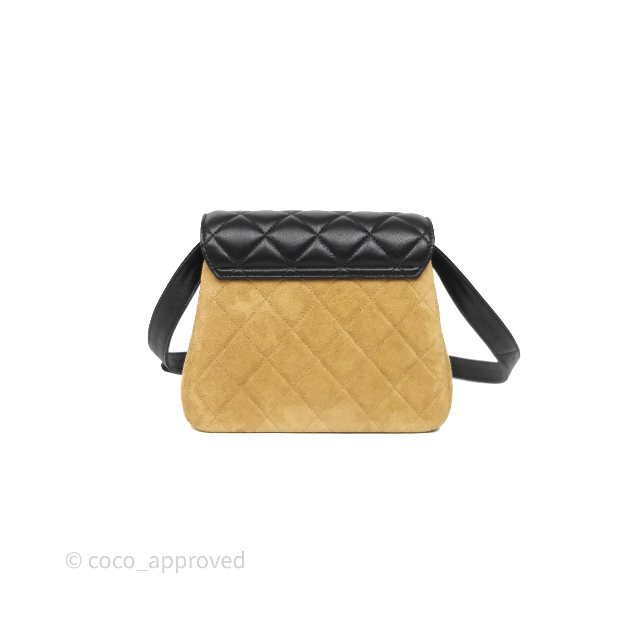 Chanel Mini Flap Bag Camel Suede/ Black Lambskin Gold Hardware