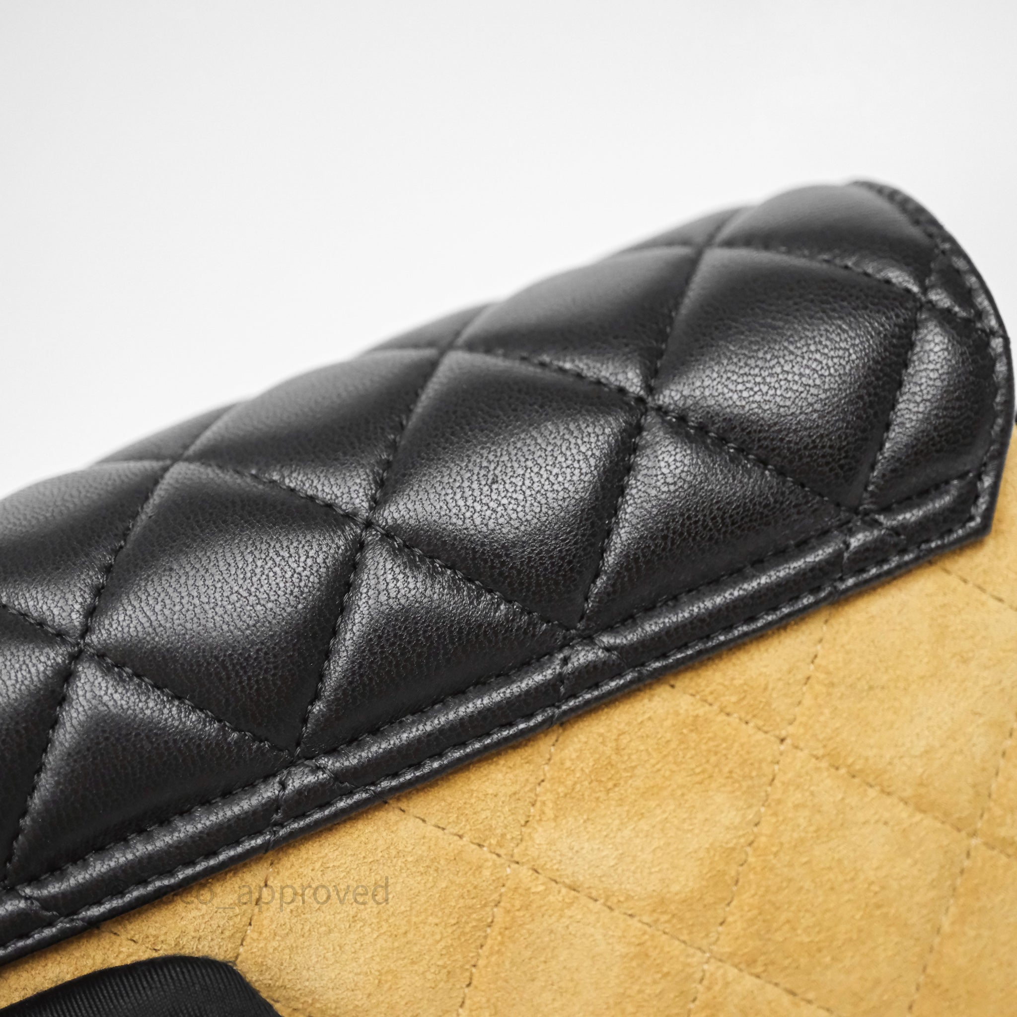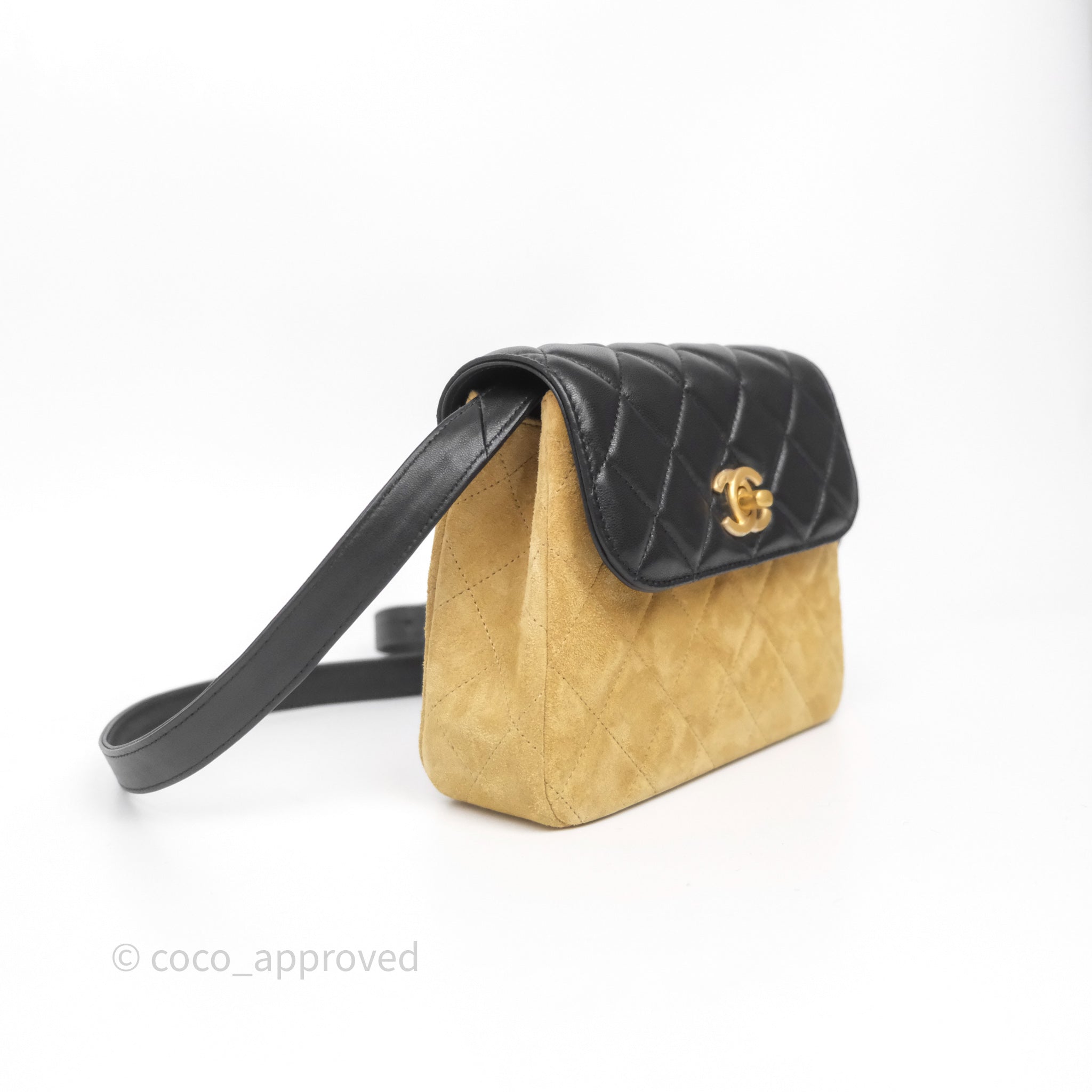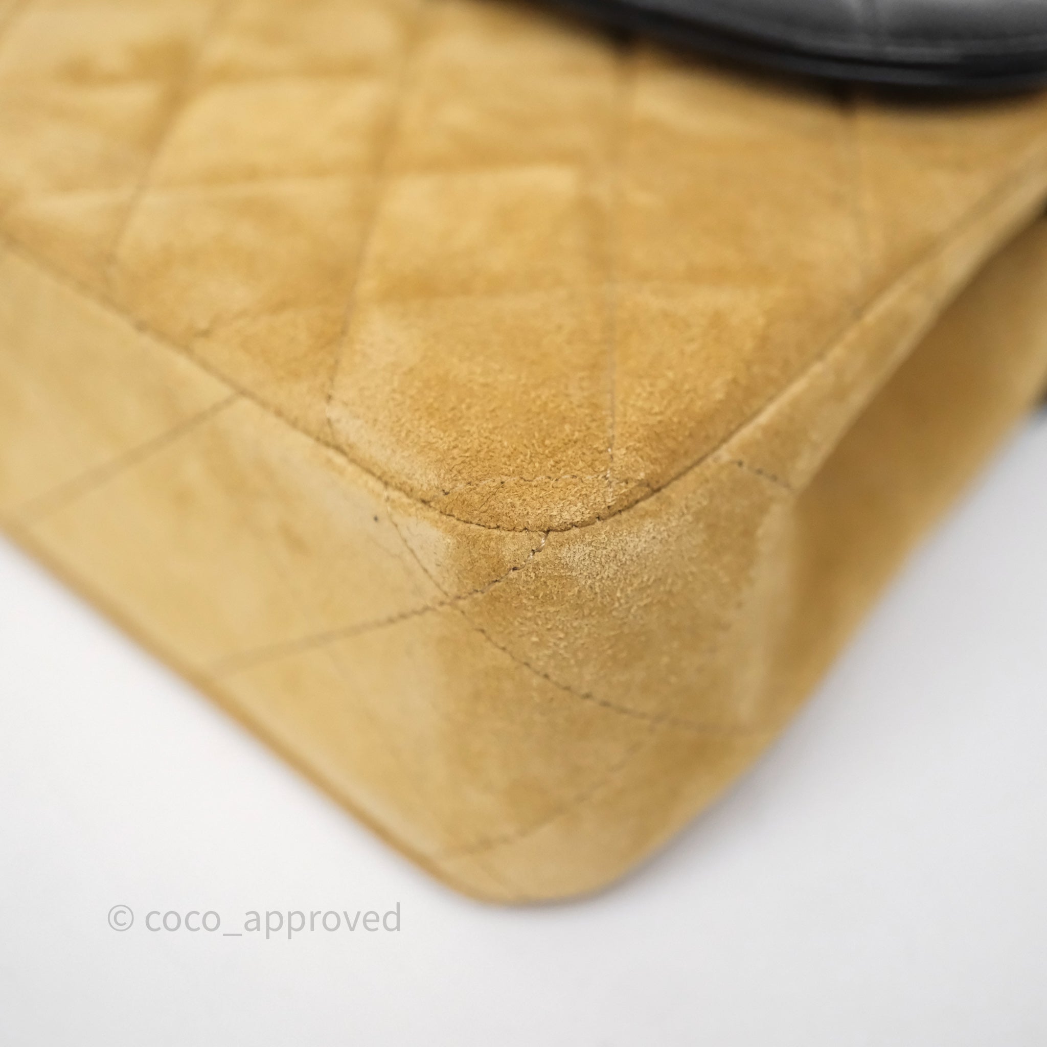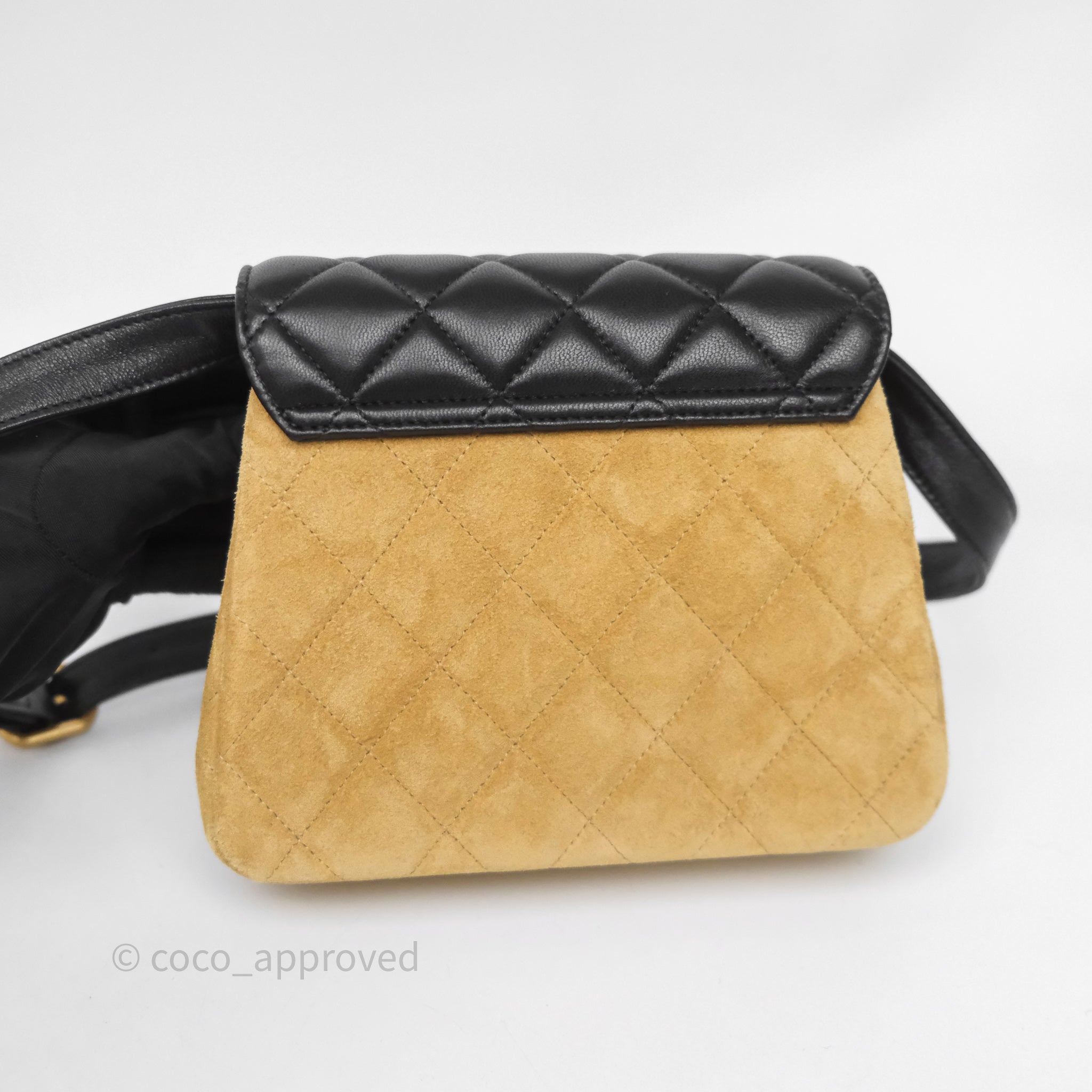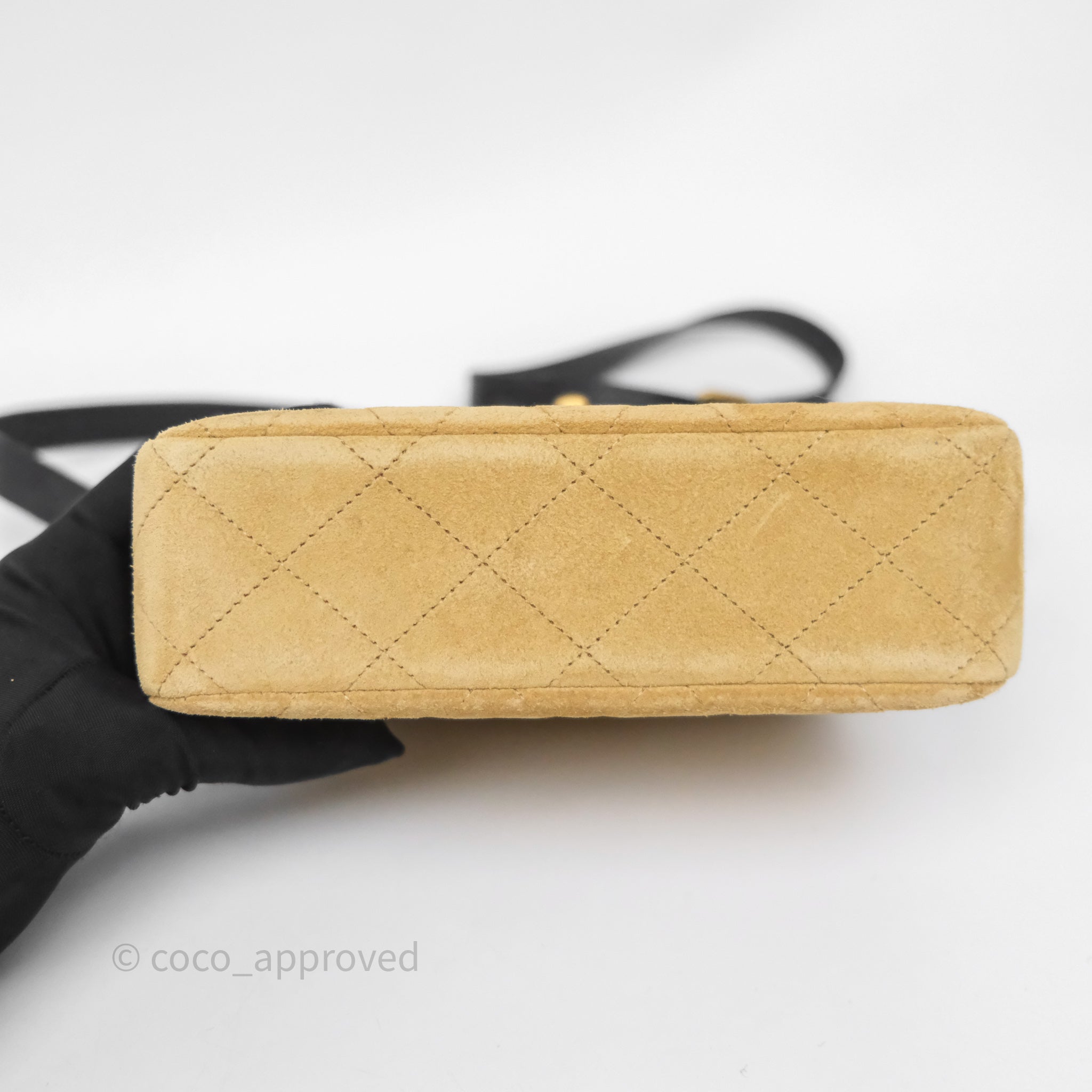 Chanel Mini Flap Bag Camel Suede/ Black Lambskin Gold Hardware