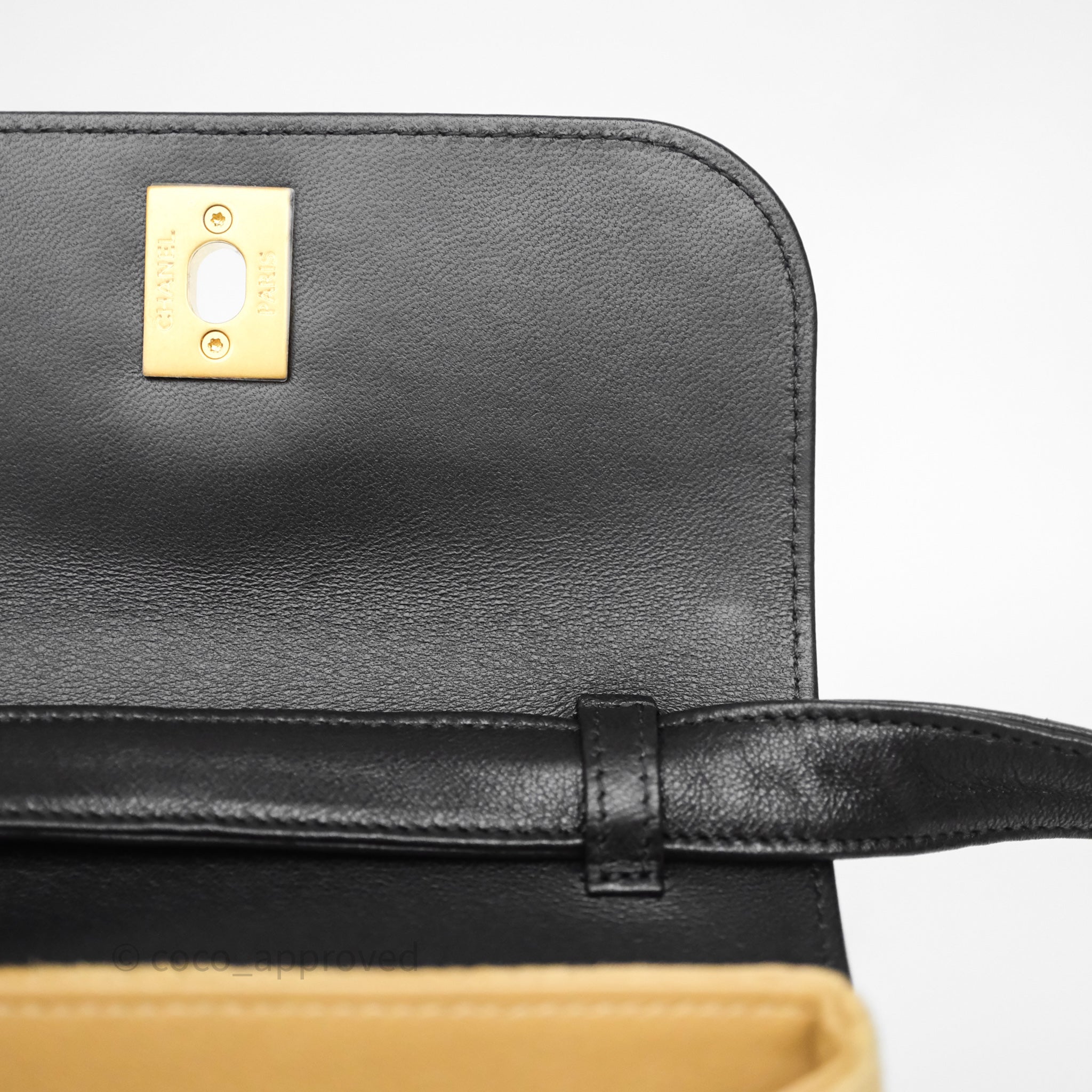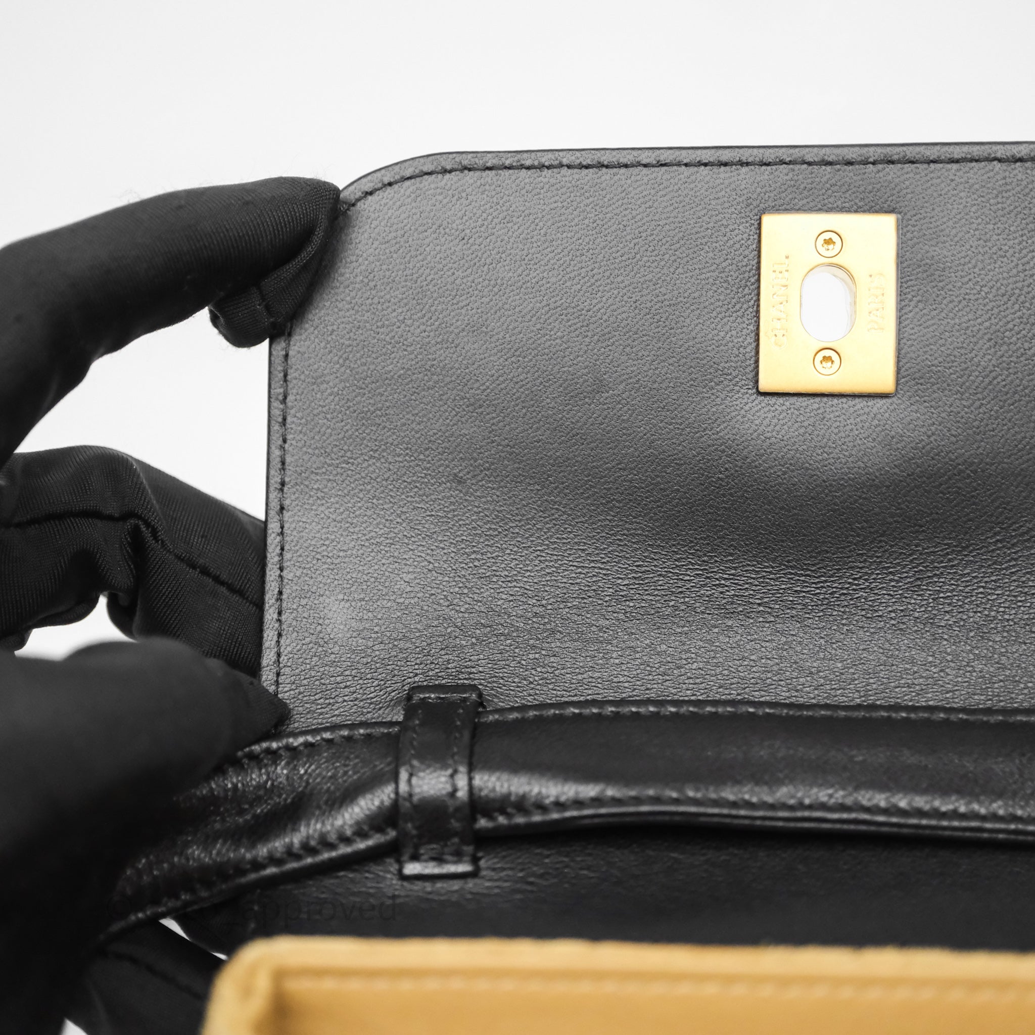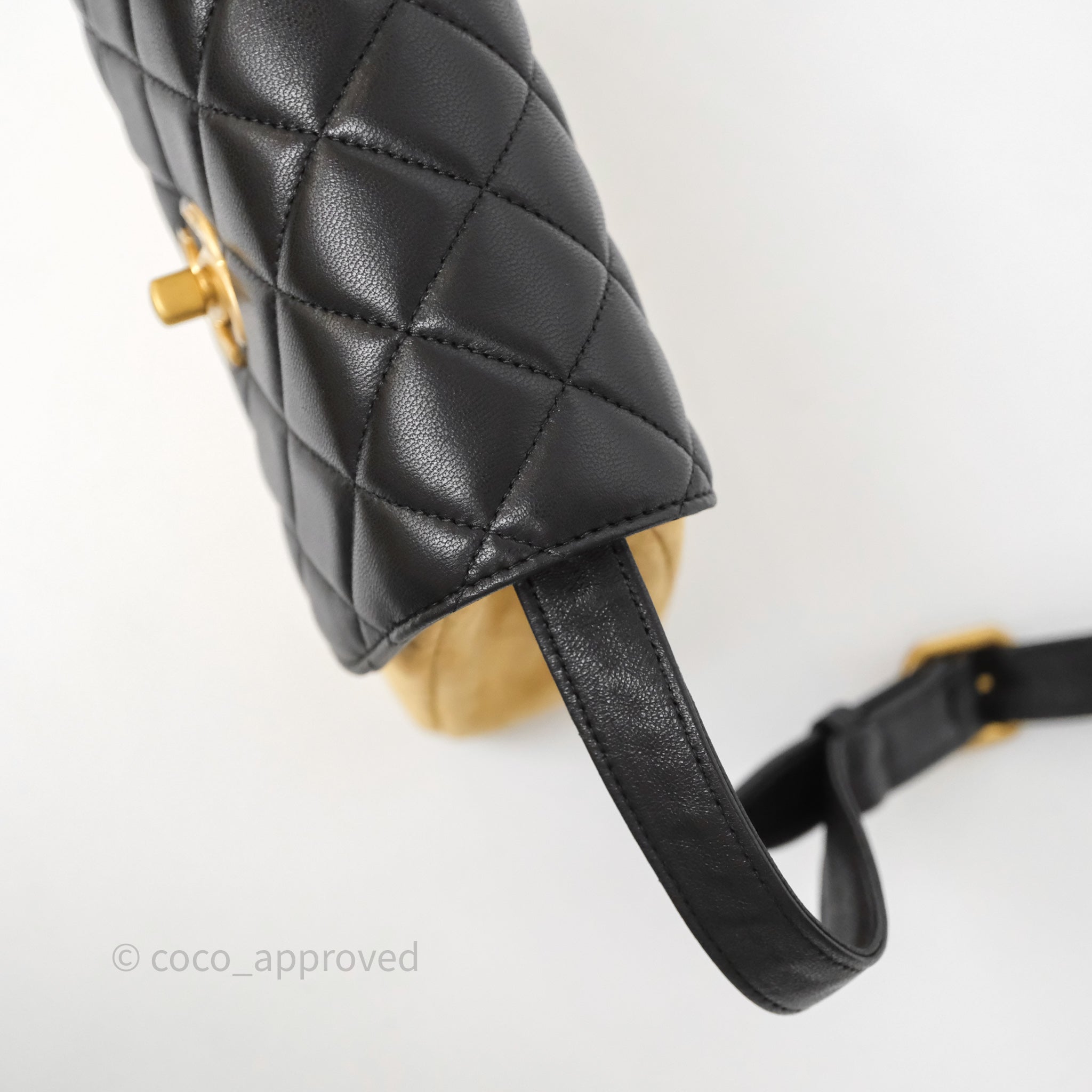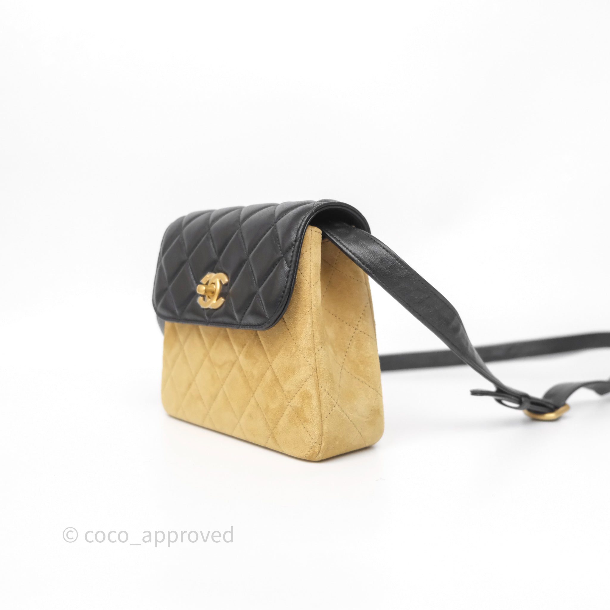 Chanel Mini Flap Bag Camel Suede/ Black Lambskin Gold Hardware
