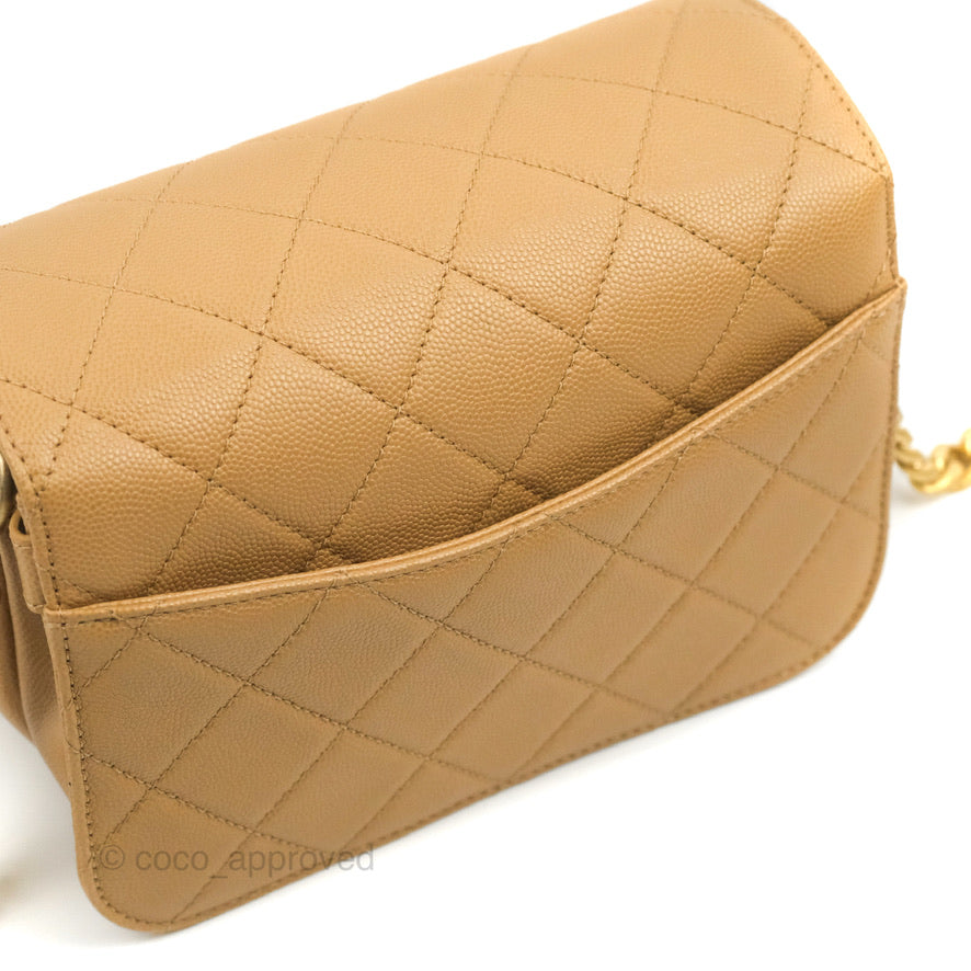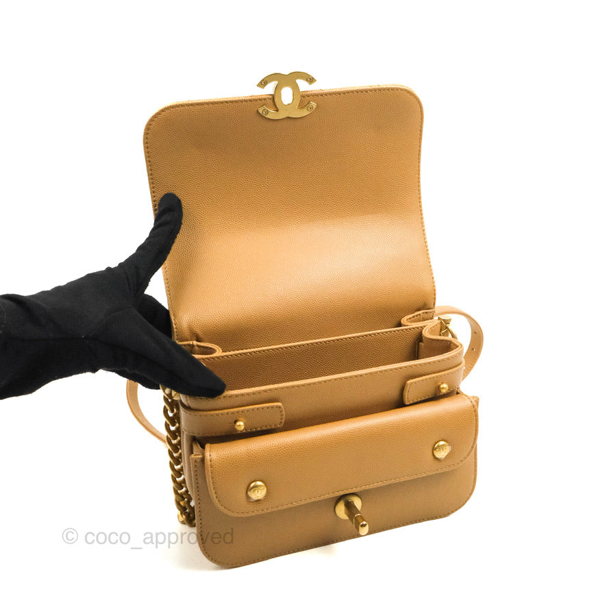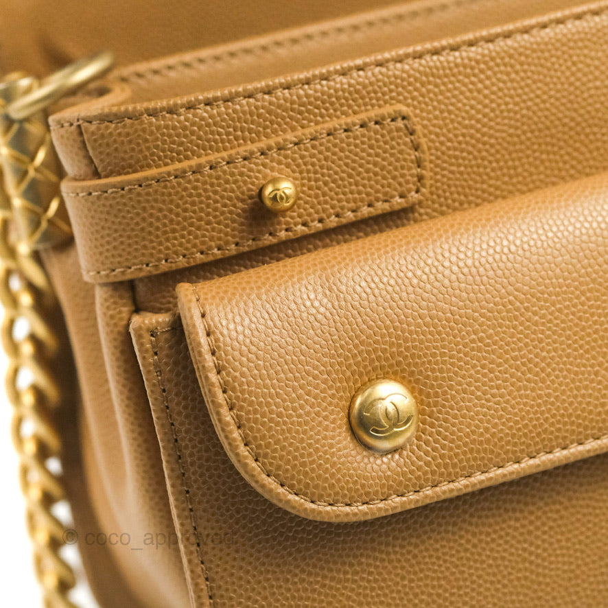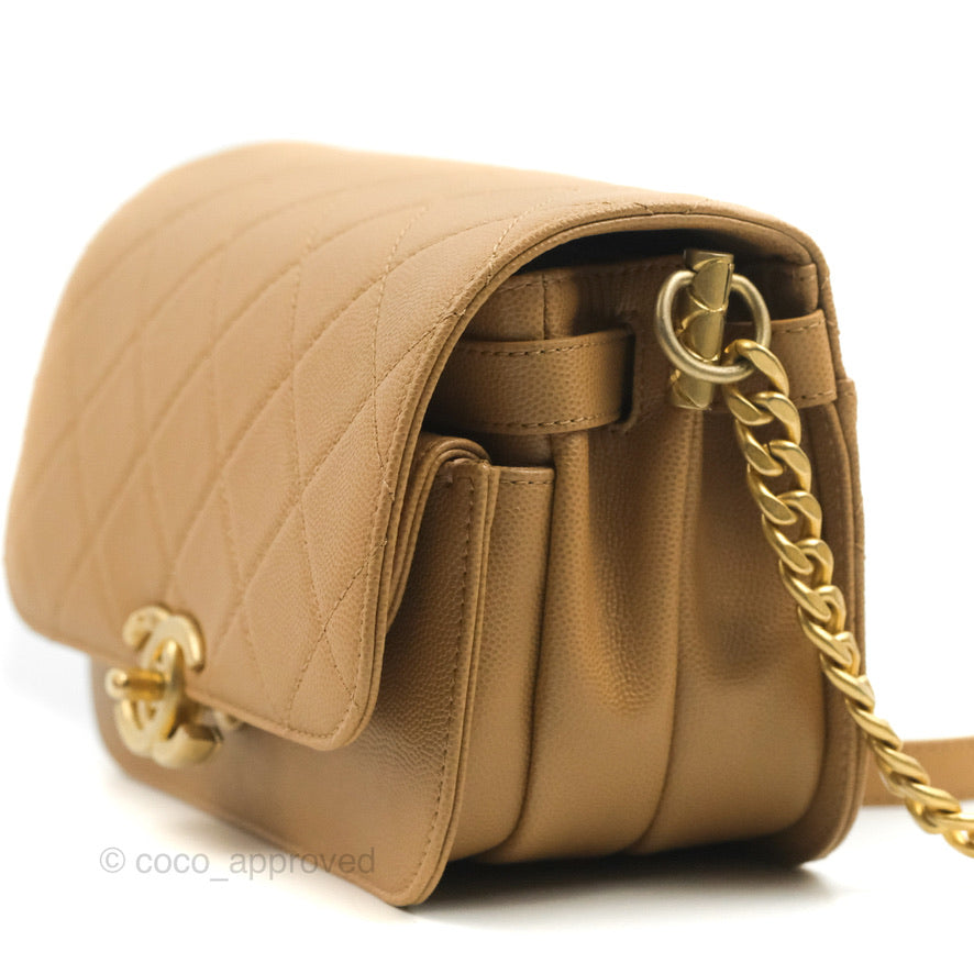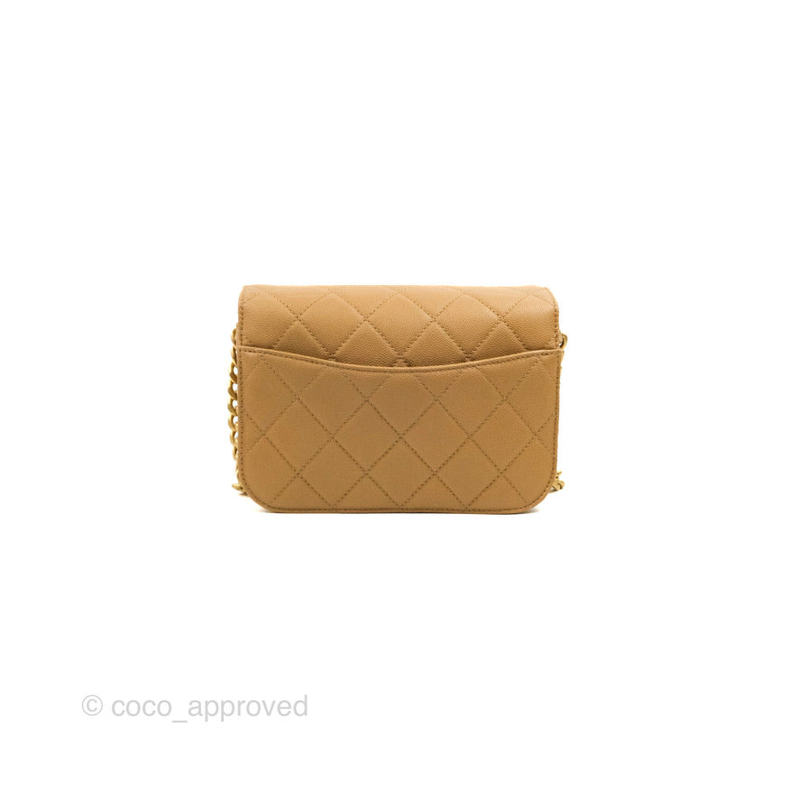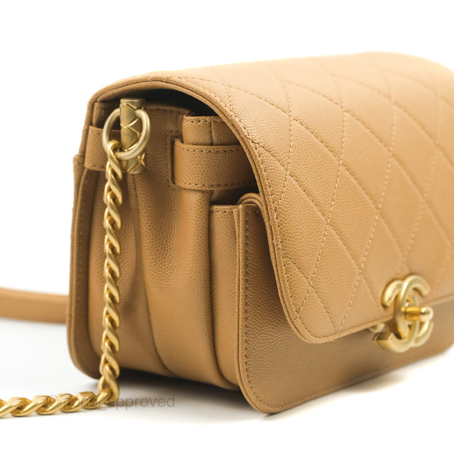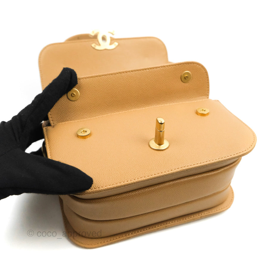 Chanel Mini Messenger Bag Beige Caviar Gold Hardware 21K