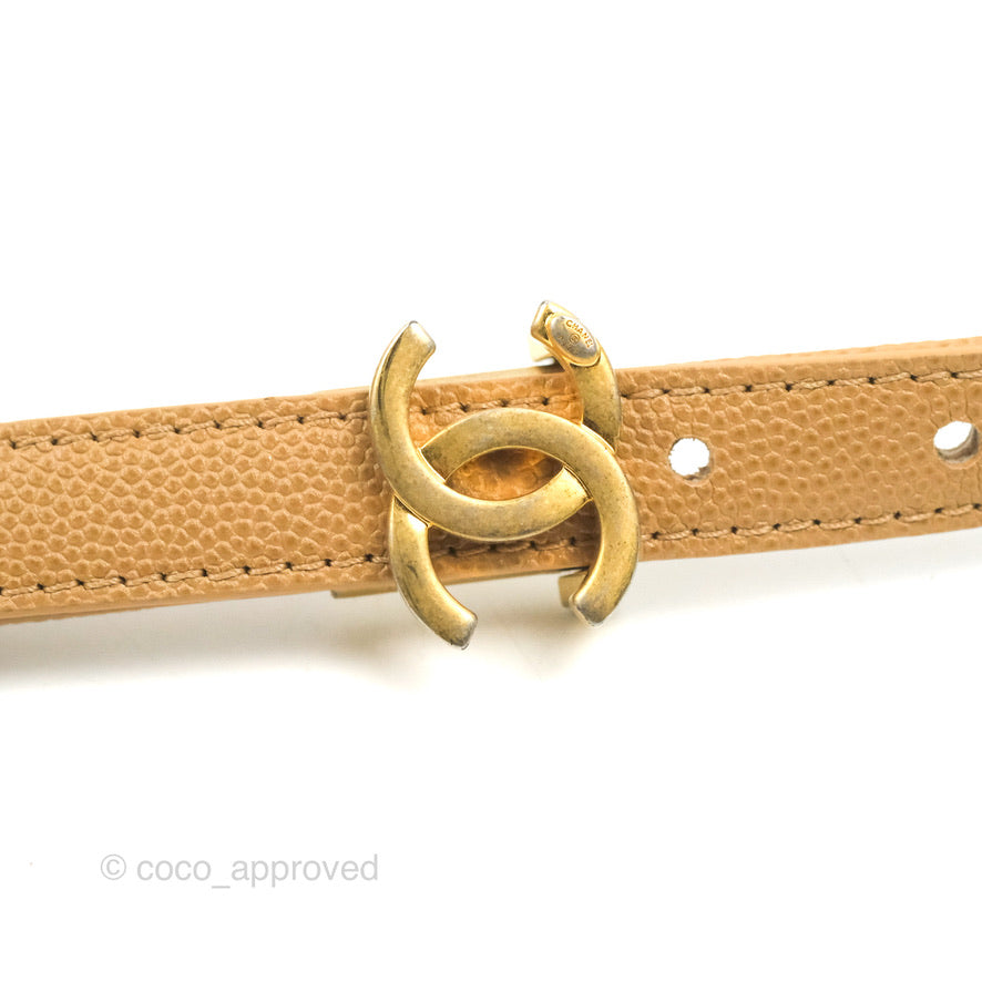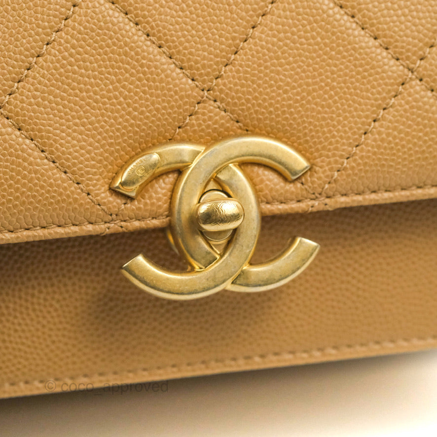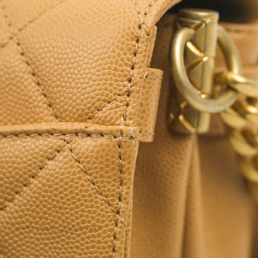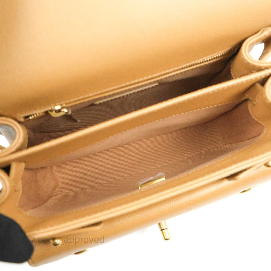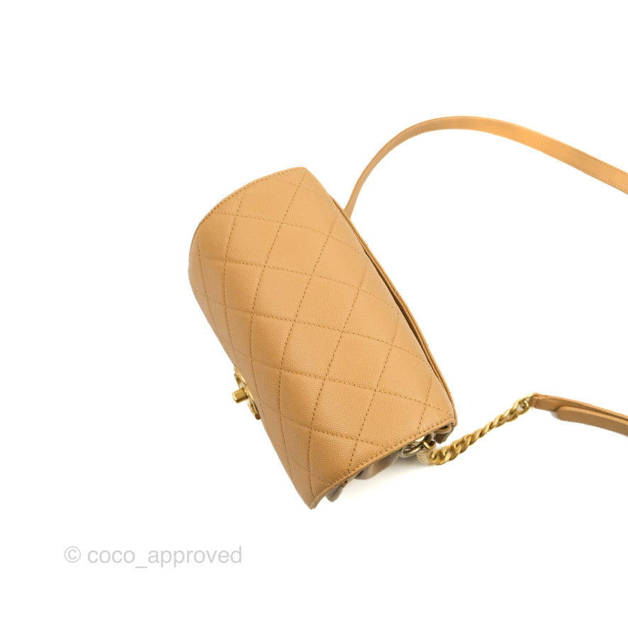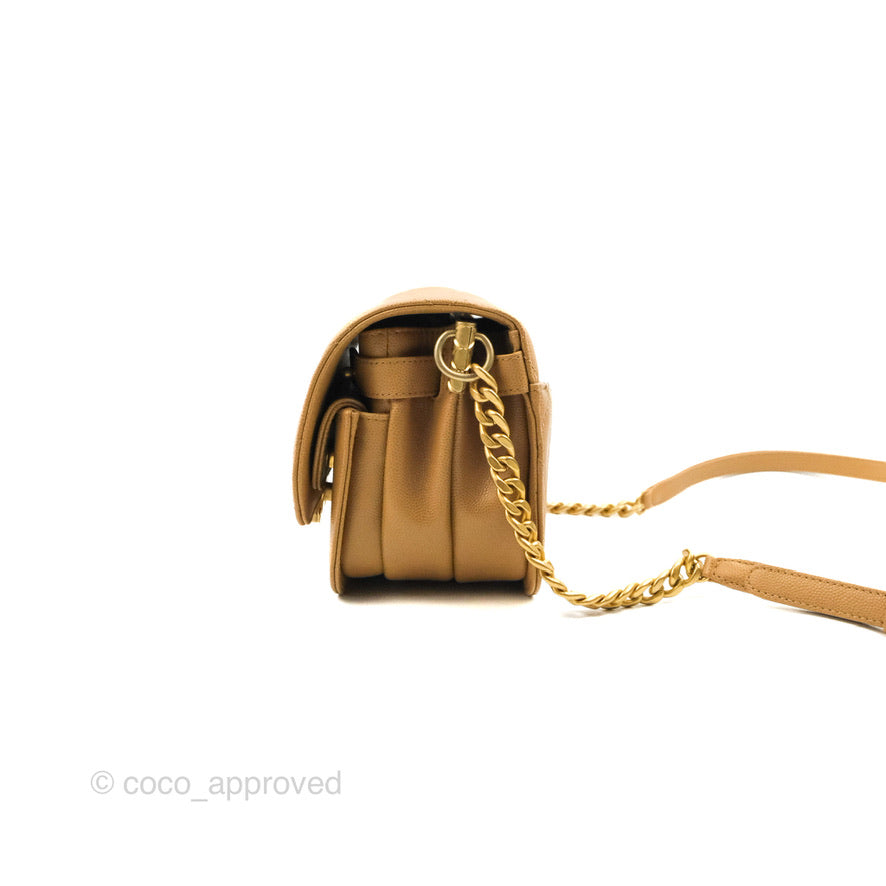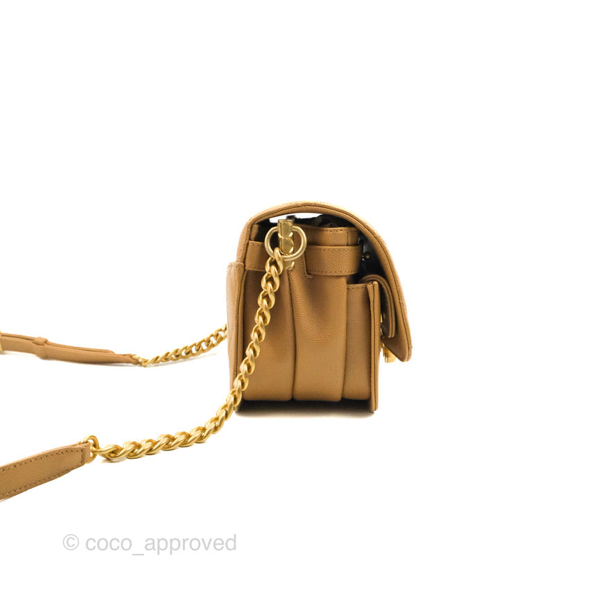 Chanel Mini Messenger Bag Beige Caviar Gold Hardware 21K