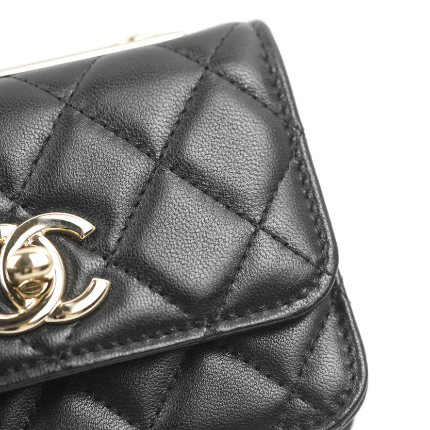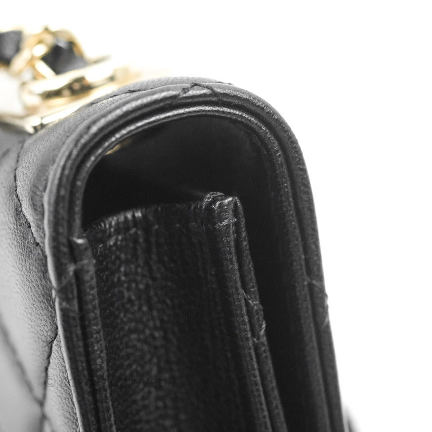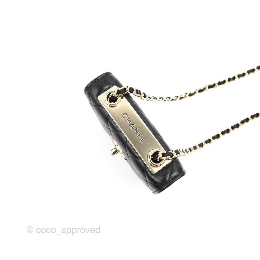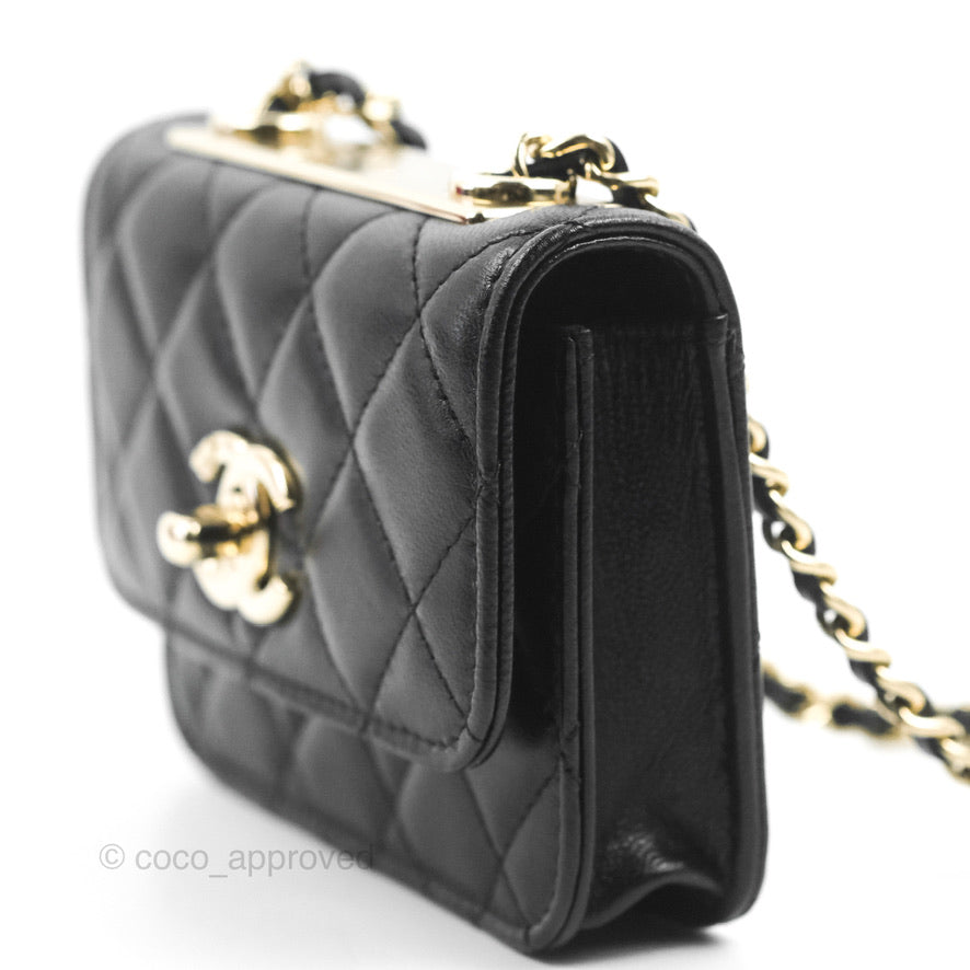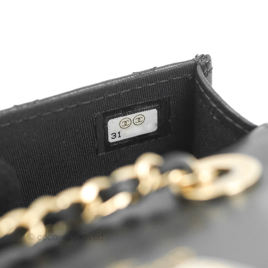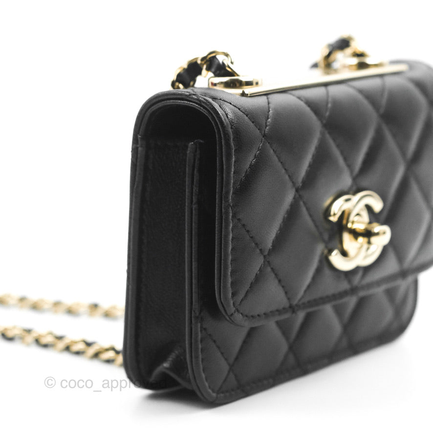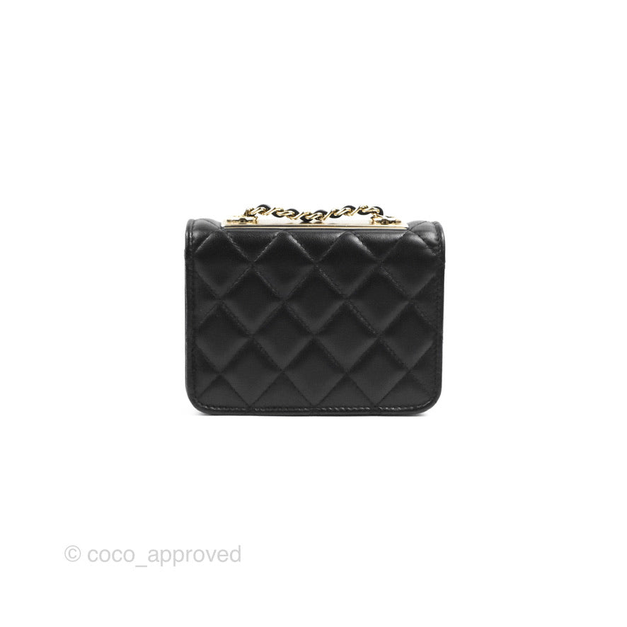 Chanel Mini Quilted Trendy CC Card Holder With Chain Black Lambskin Gold Hardware
