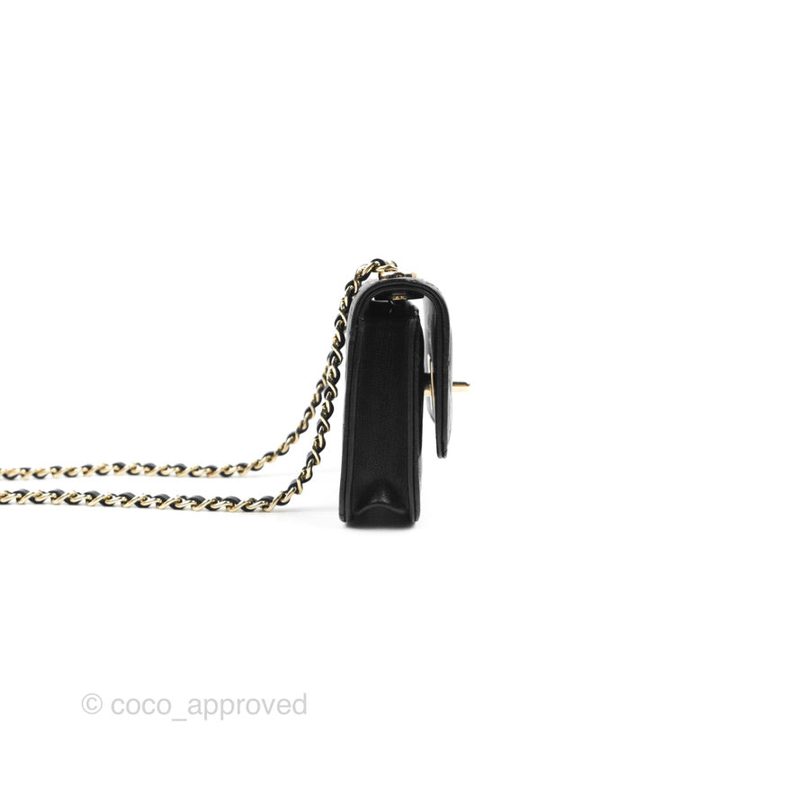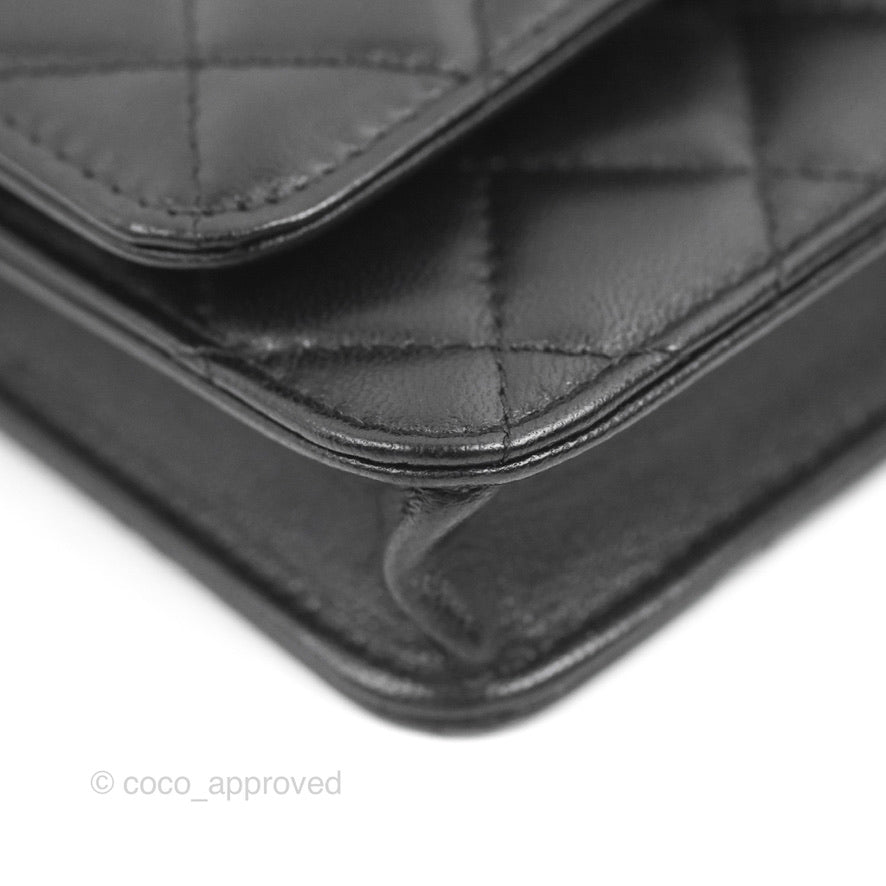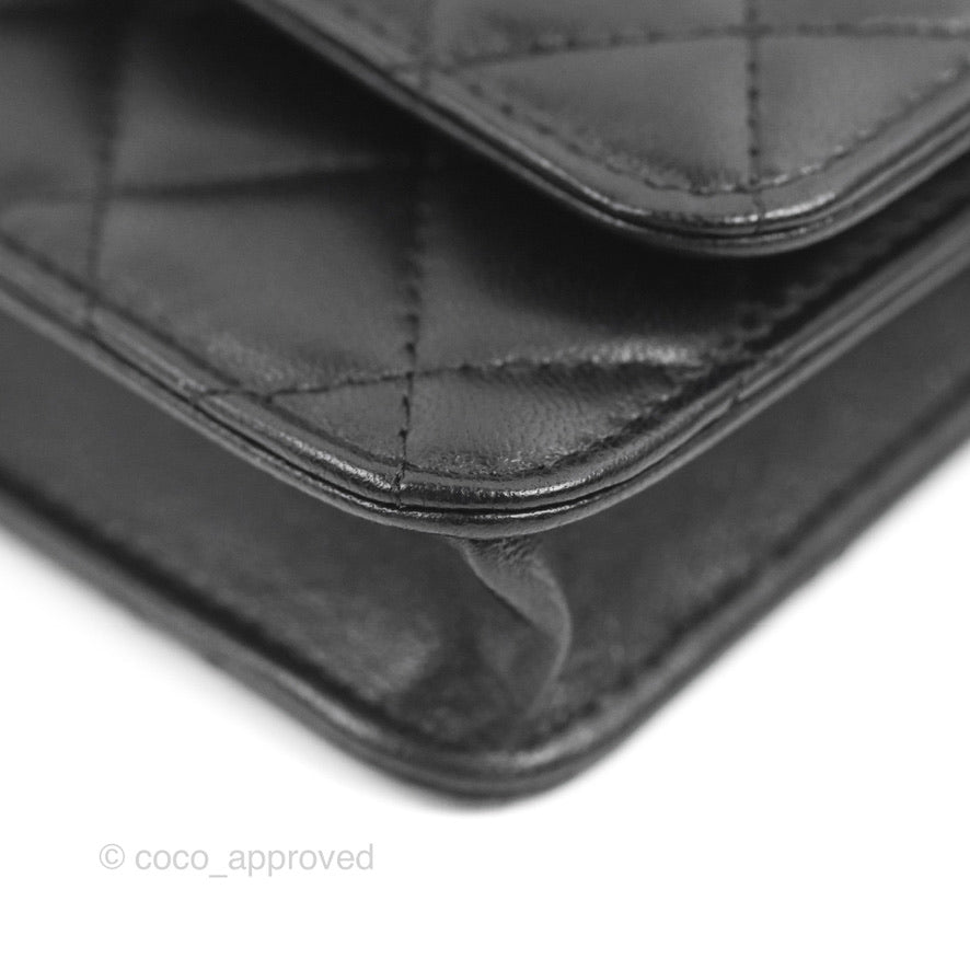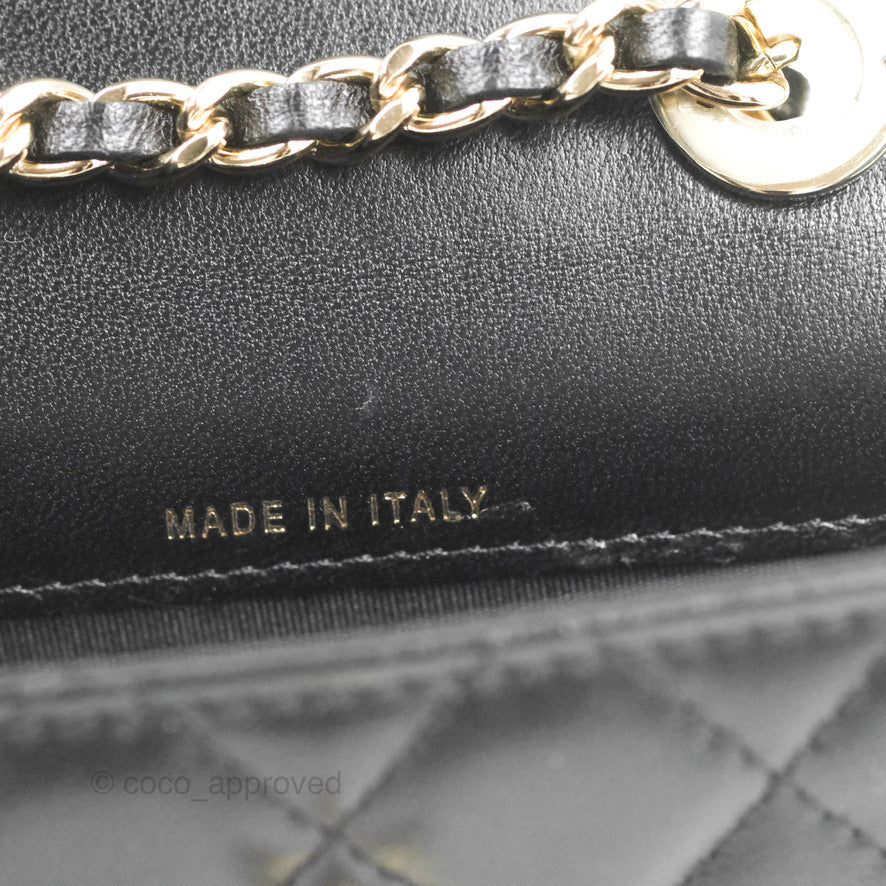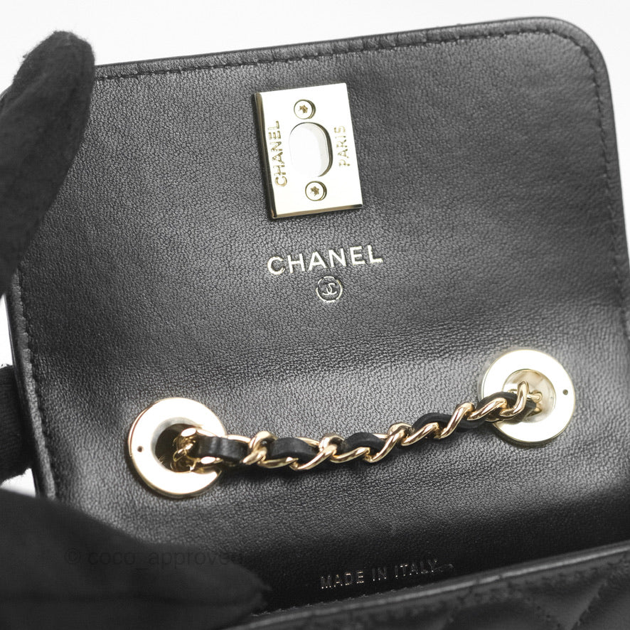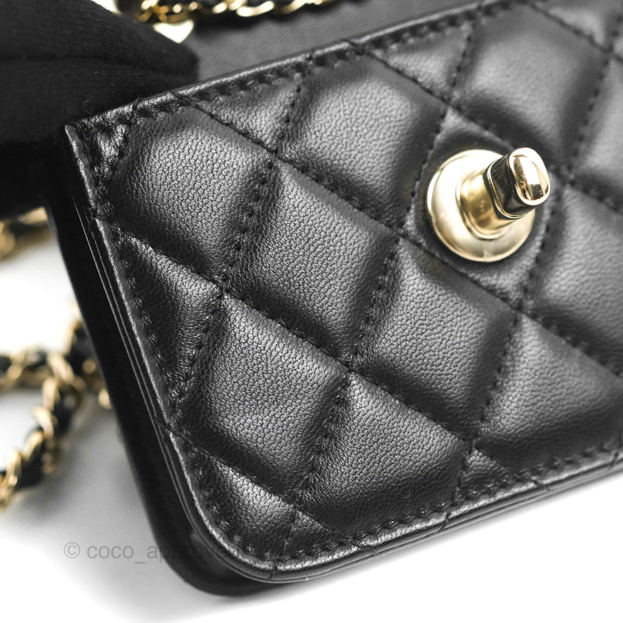 Chanel Mini Quilted Trendy CC Card Holder With Chain Black Lambskin Gold Hardware