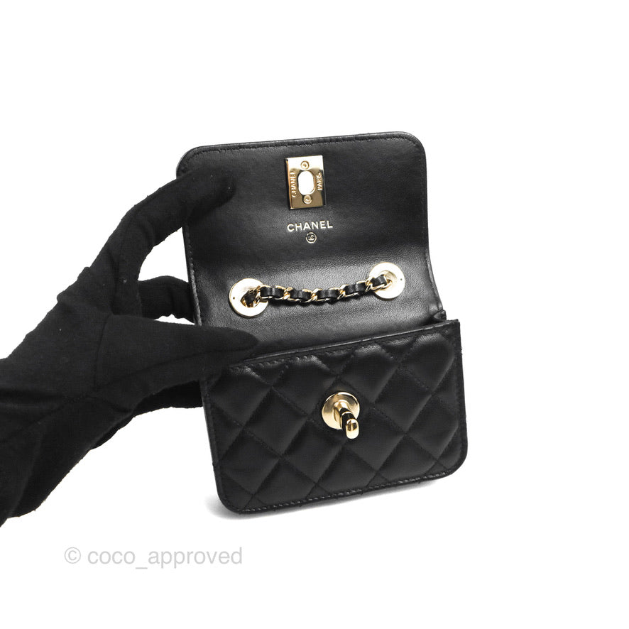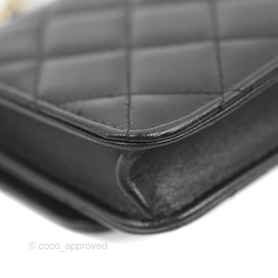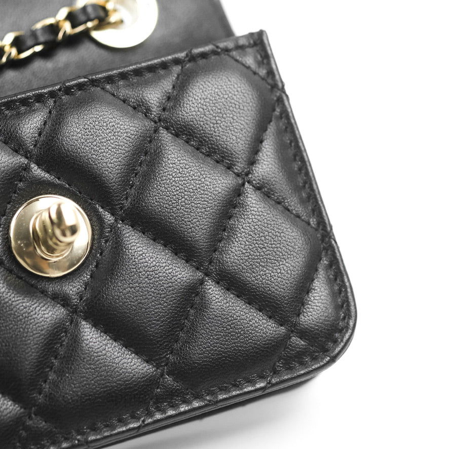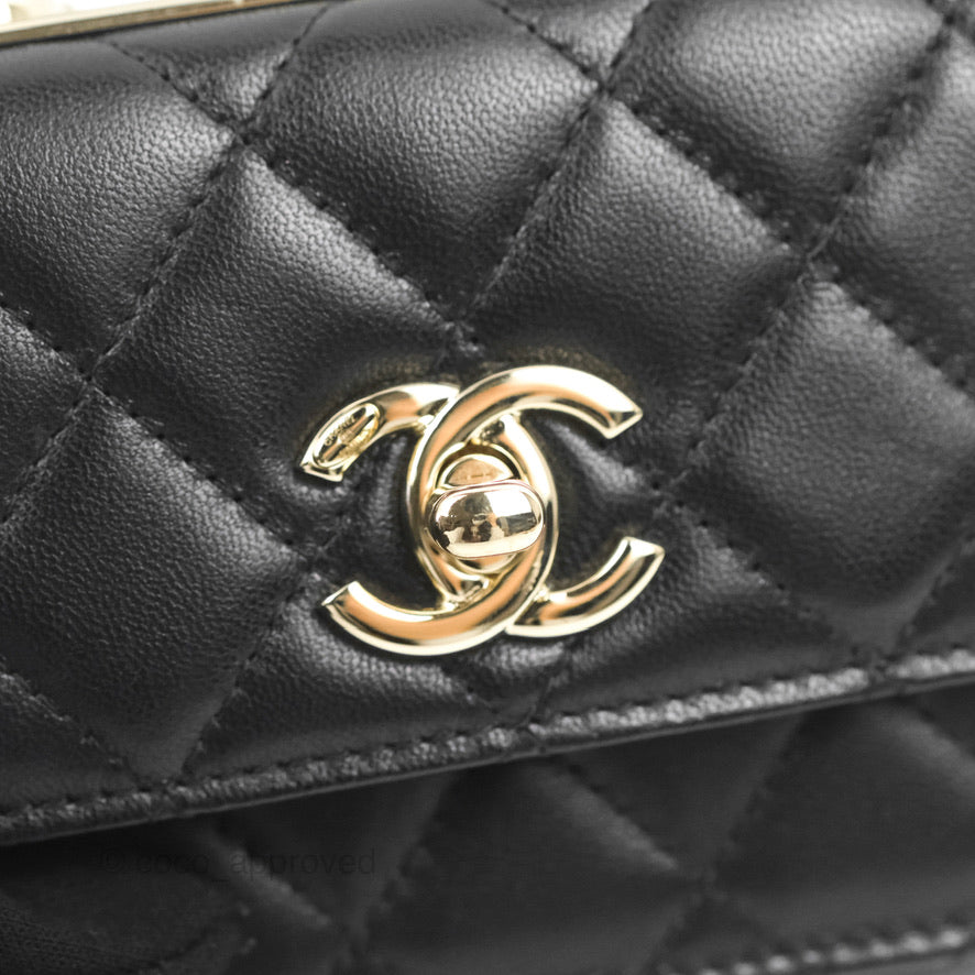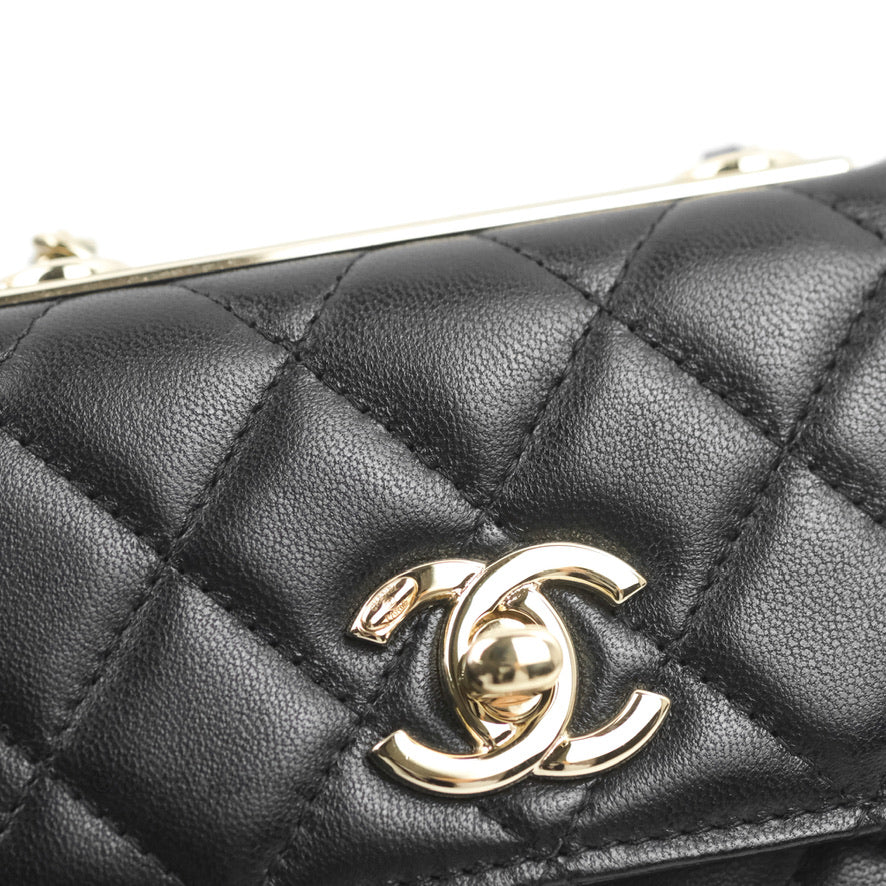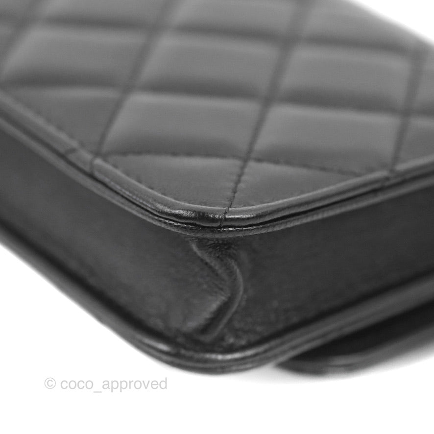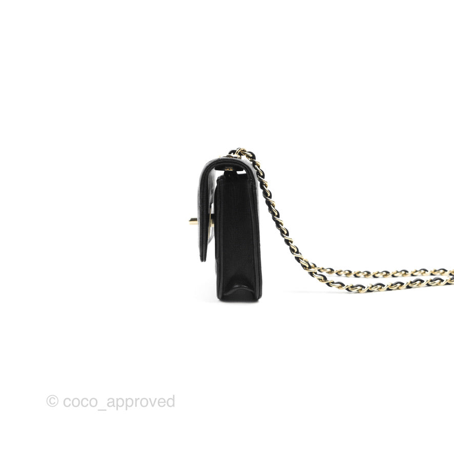Chanel Mini Quilted Trendy CC Card Holder With Chain Black Lambskin Gold Hardware