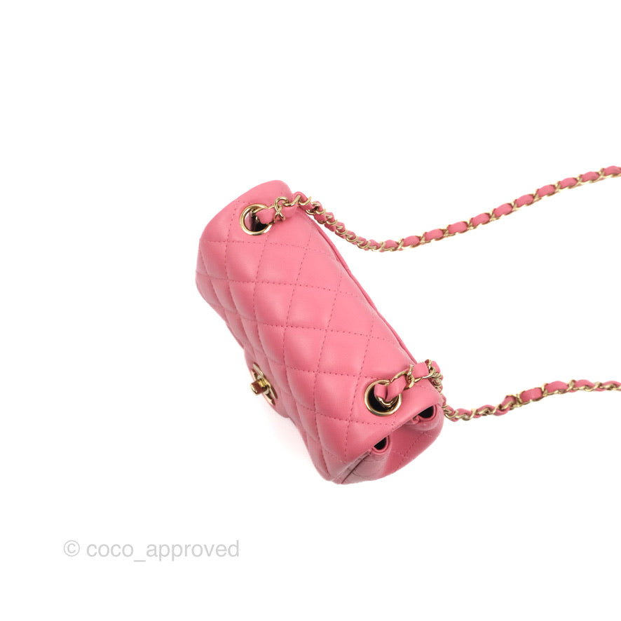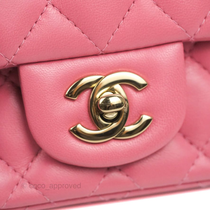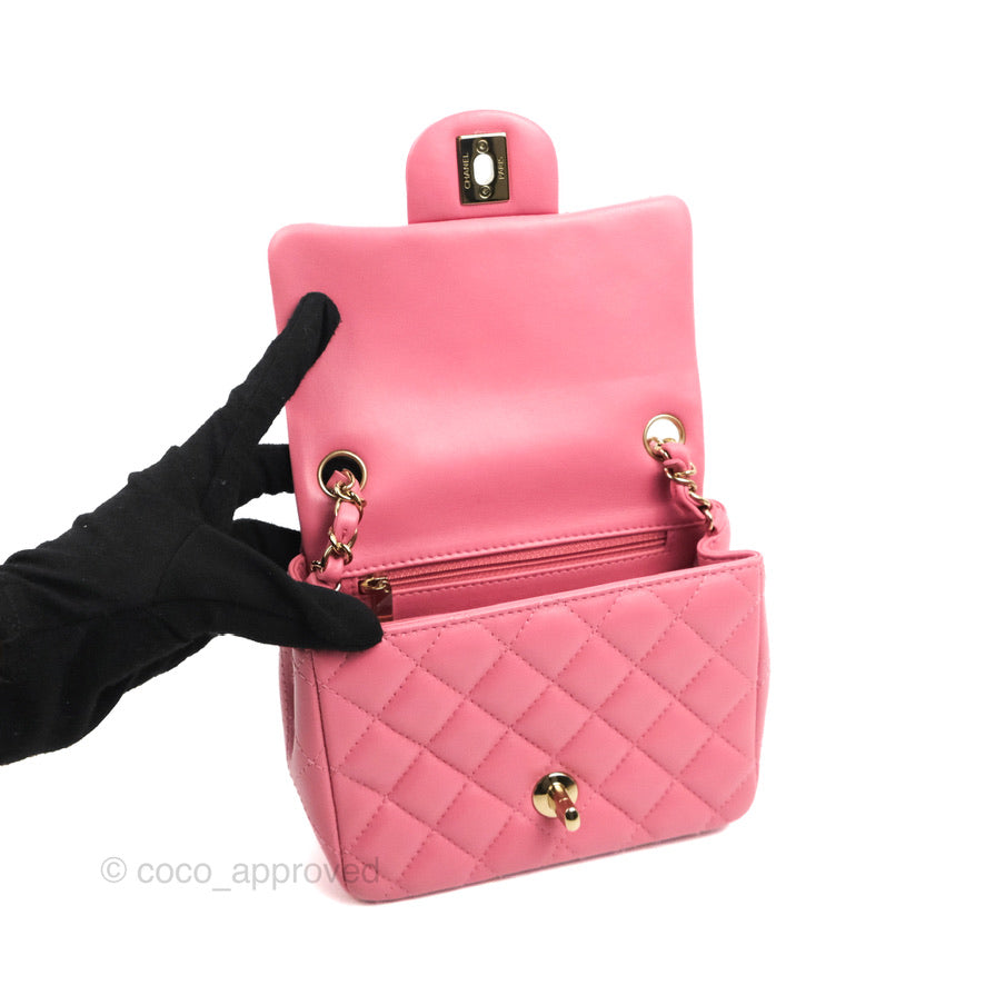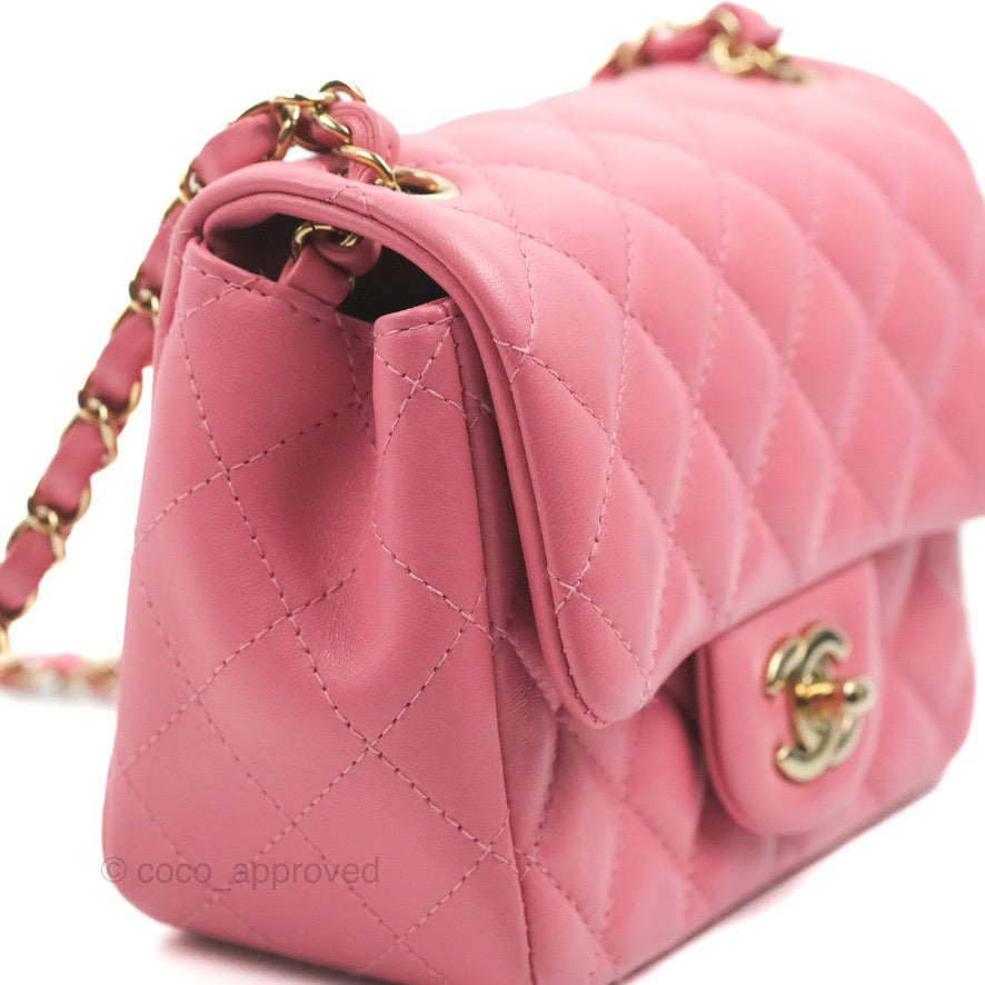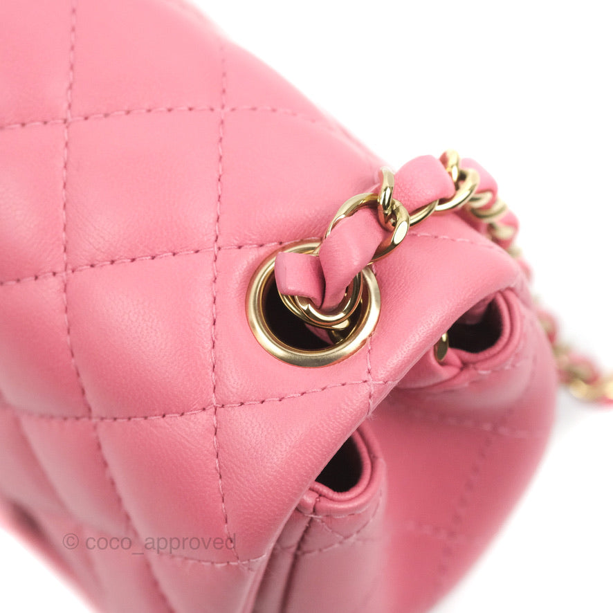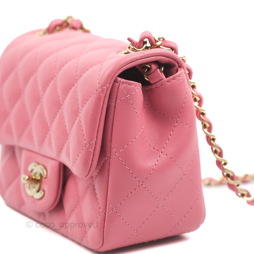 Chanel Mini Square Flap Pink Lambskin Gold Hardware