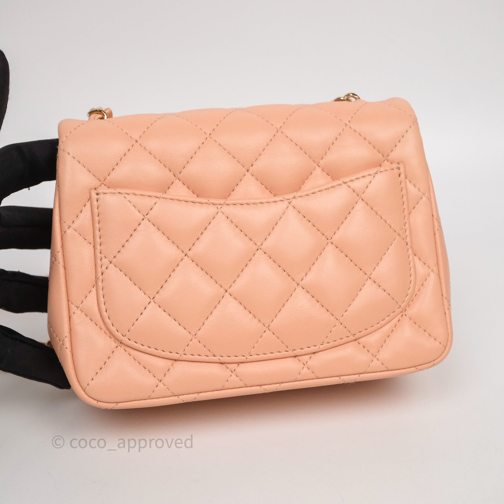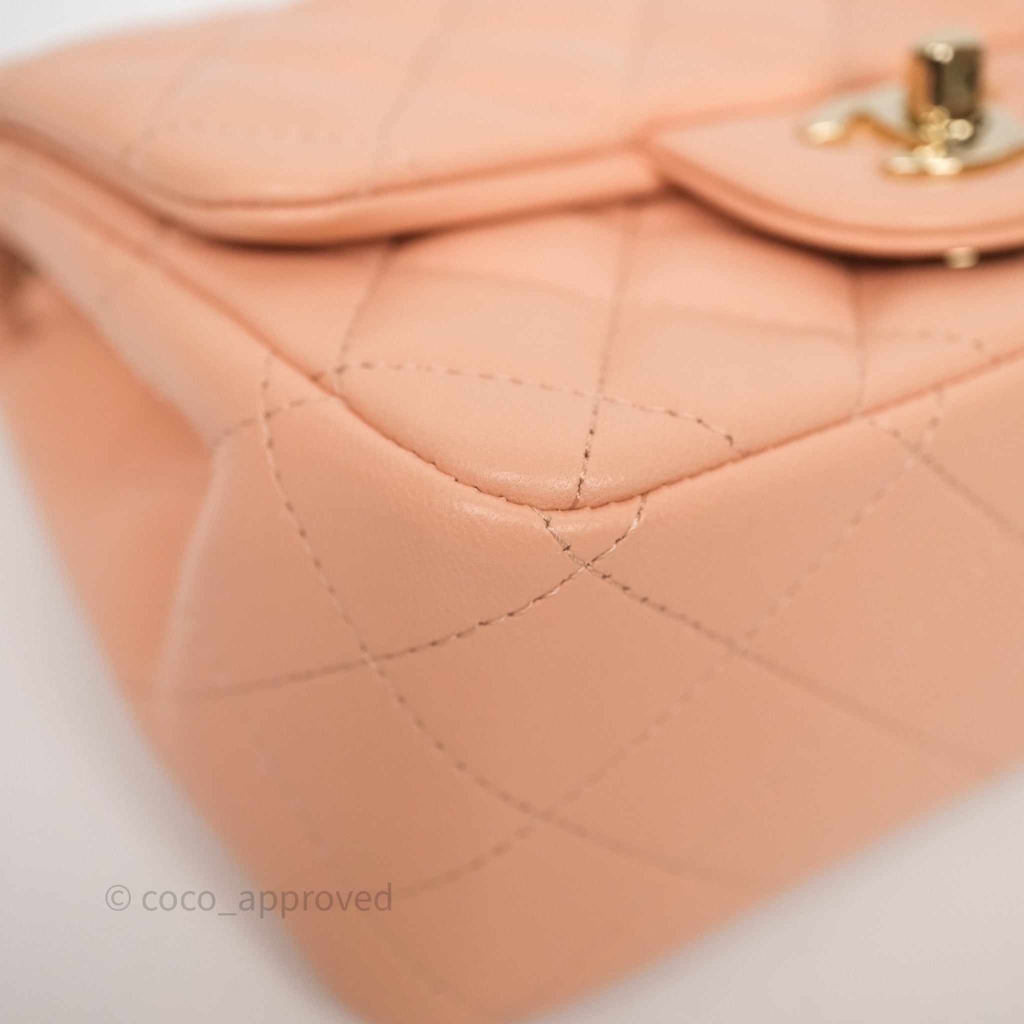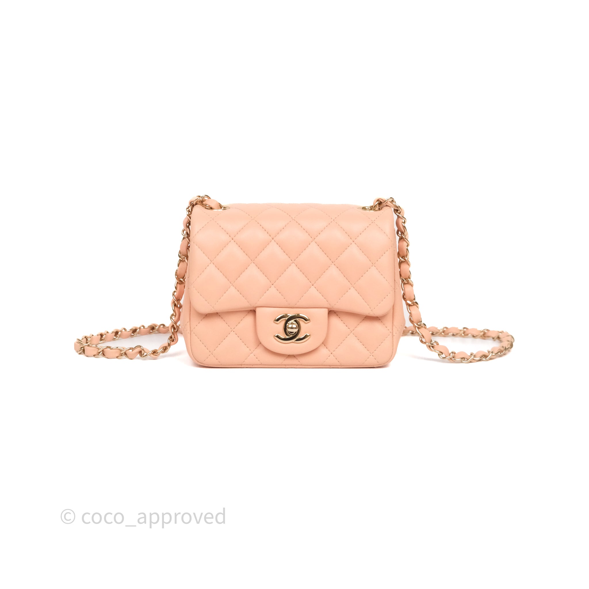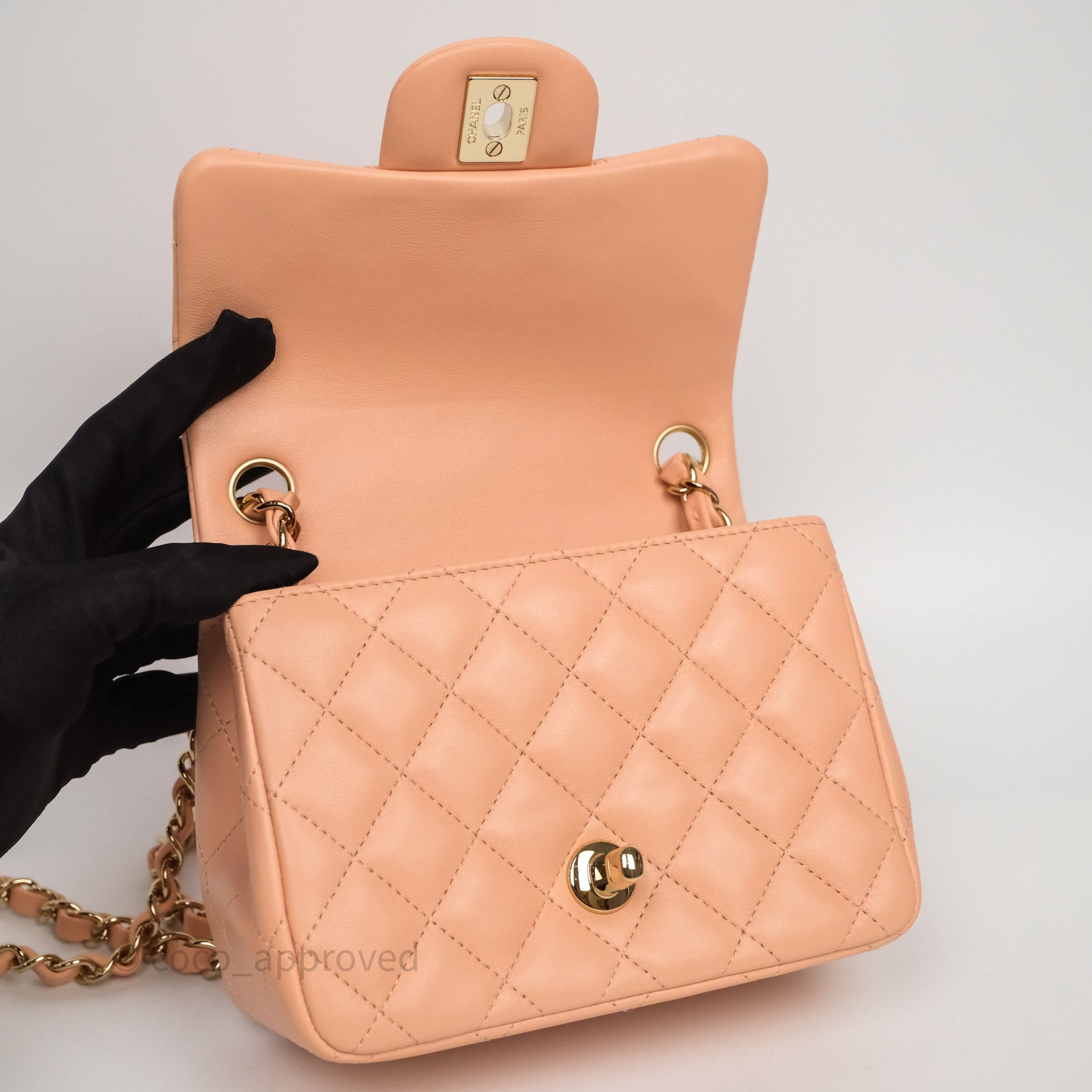Chanel Mini Square Flap Quilted Orange Clair Lambskin Gold Hardware