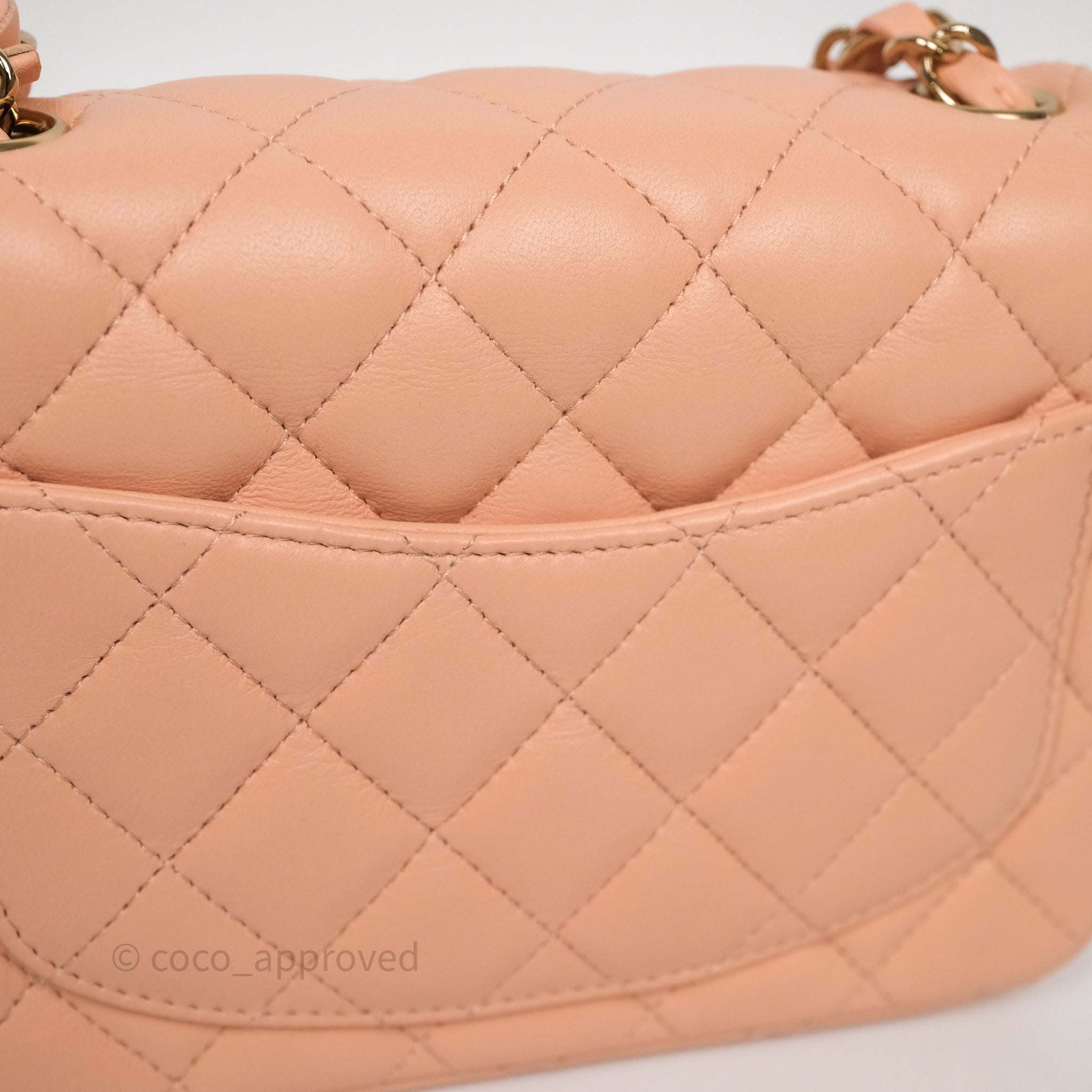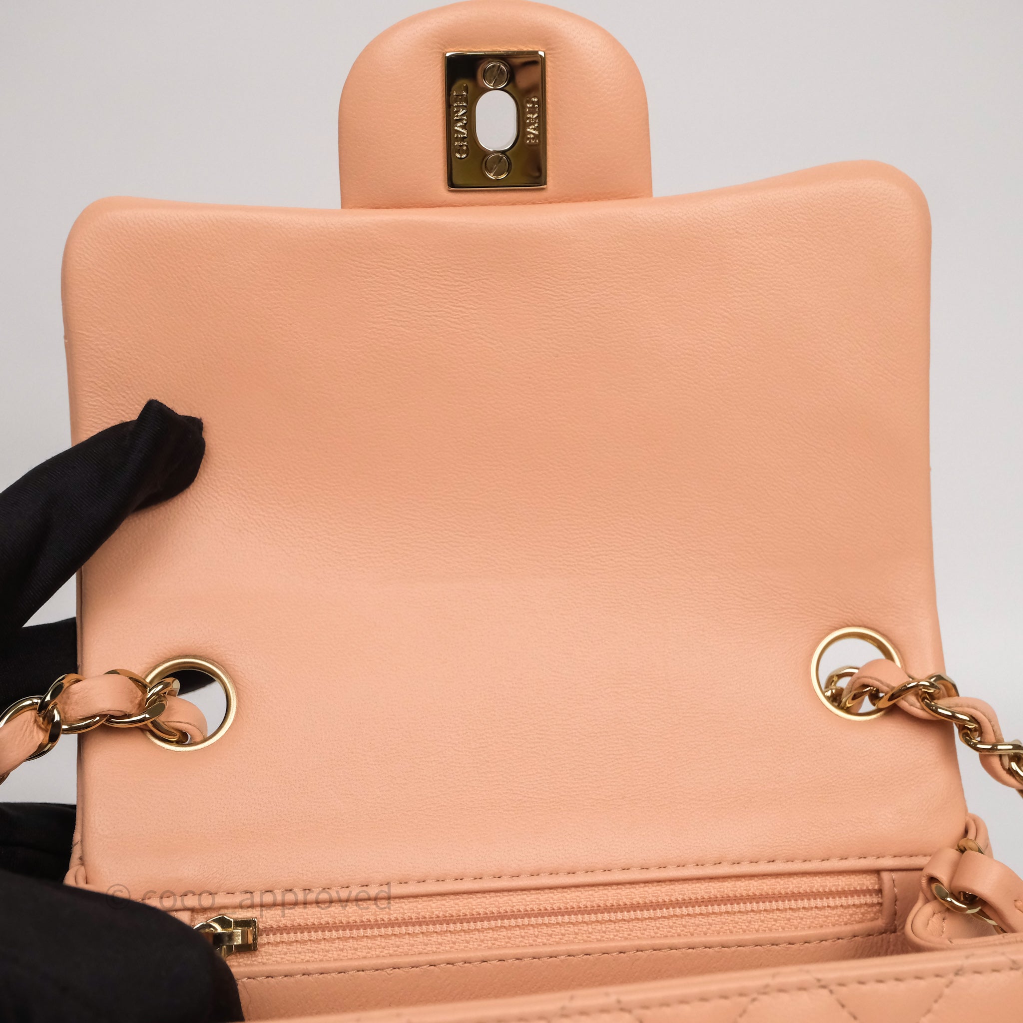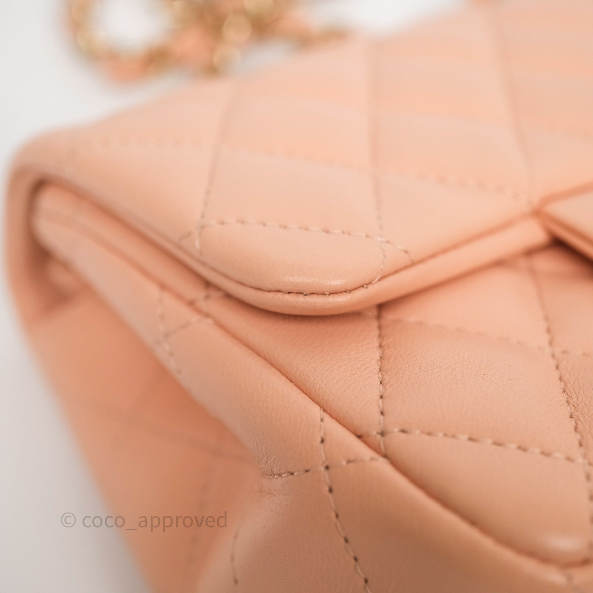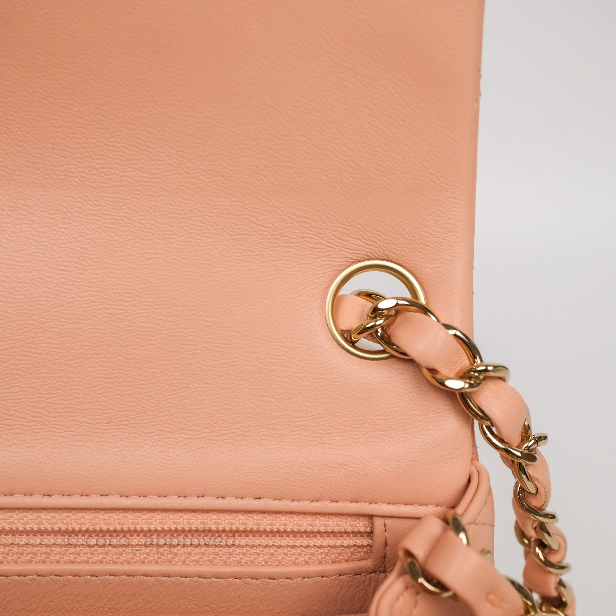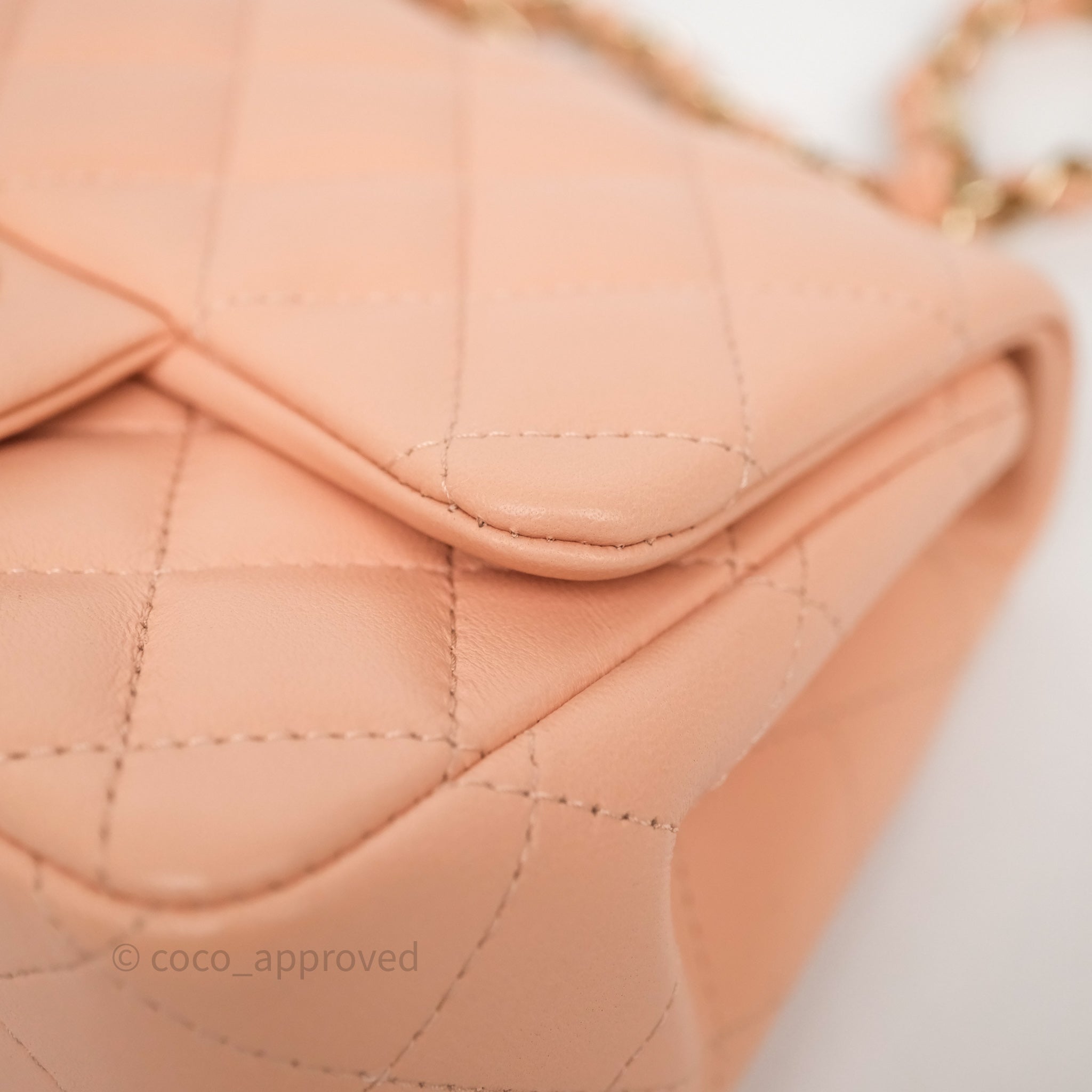 Chanel Mini Square Flap Quilted Orange Clair Lambskin Gold Hardware