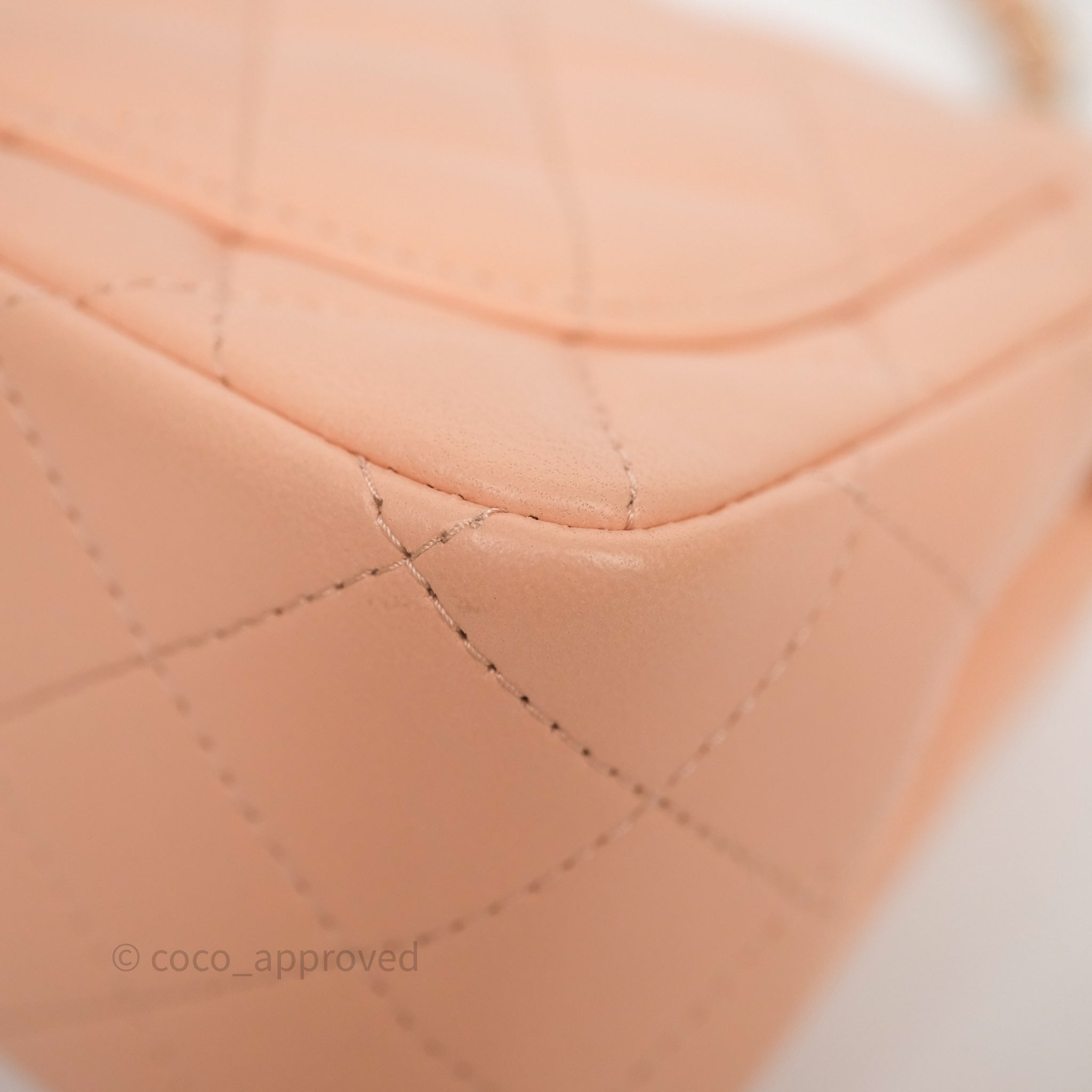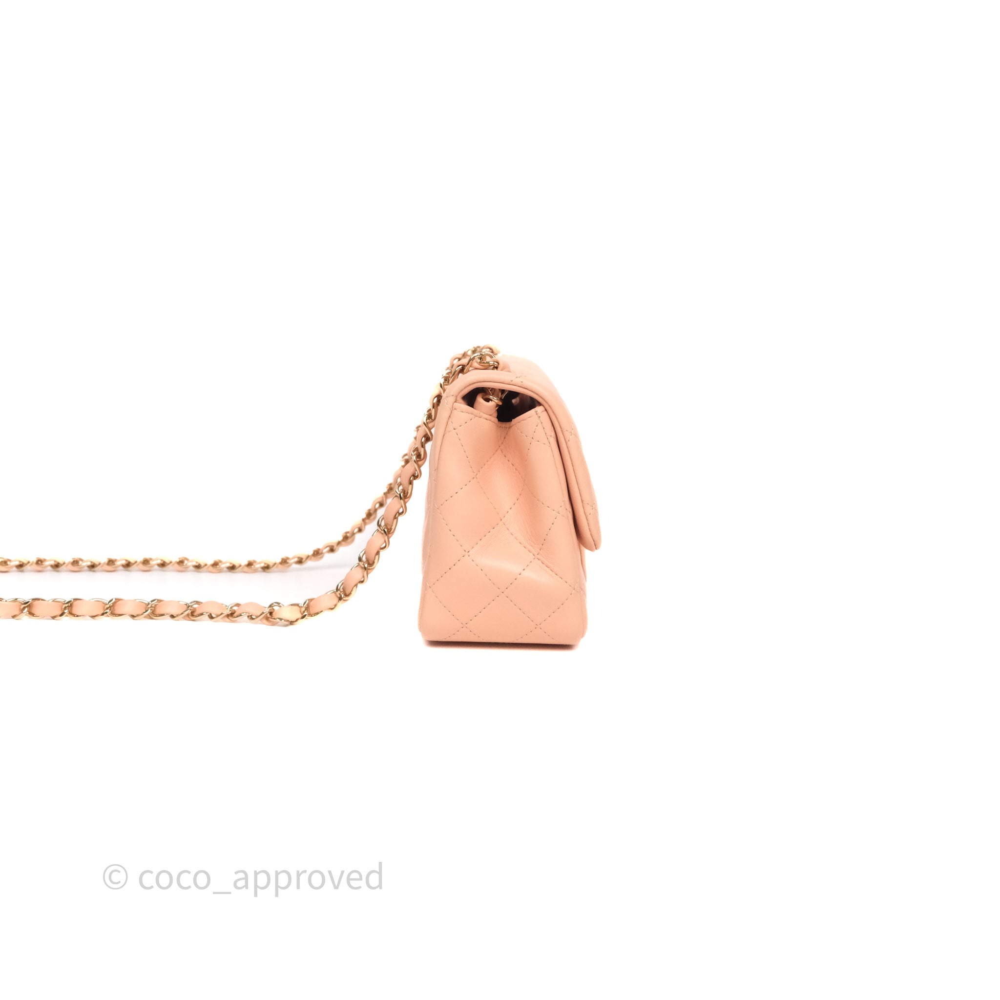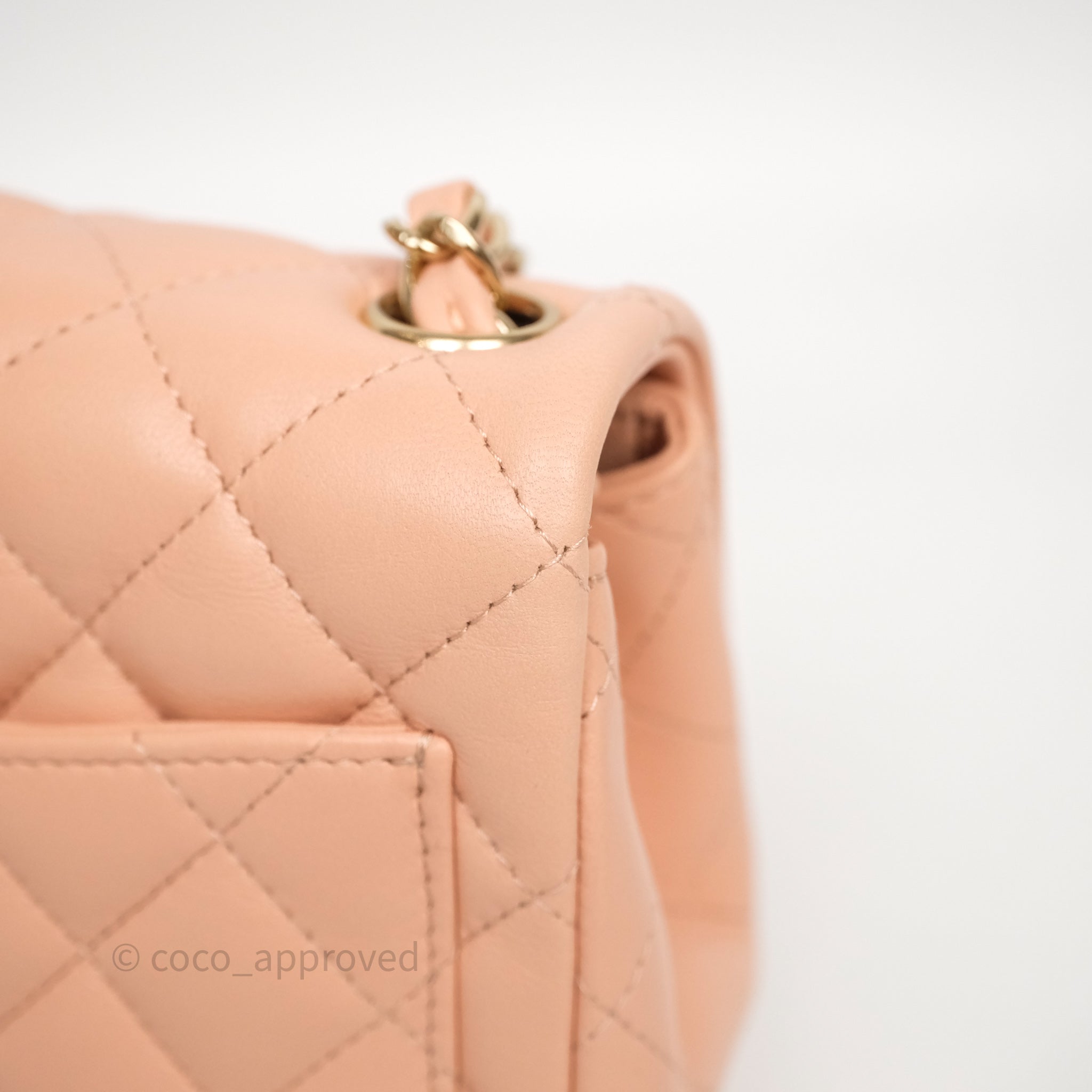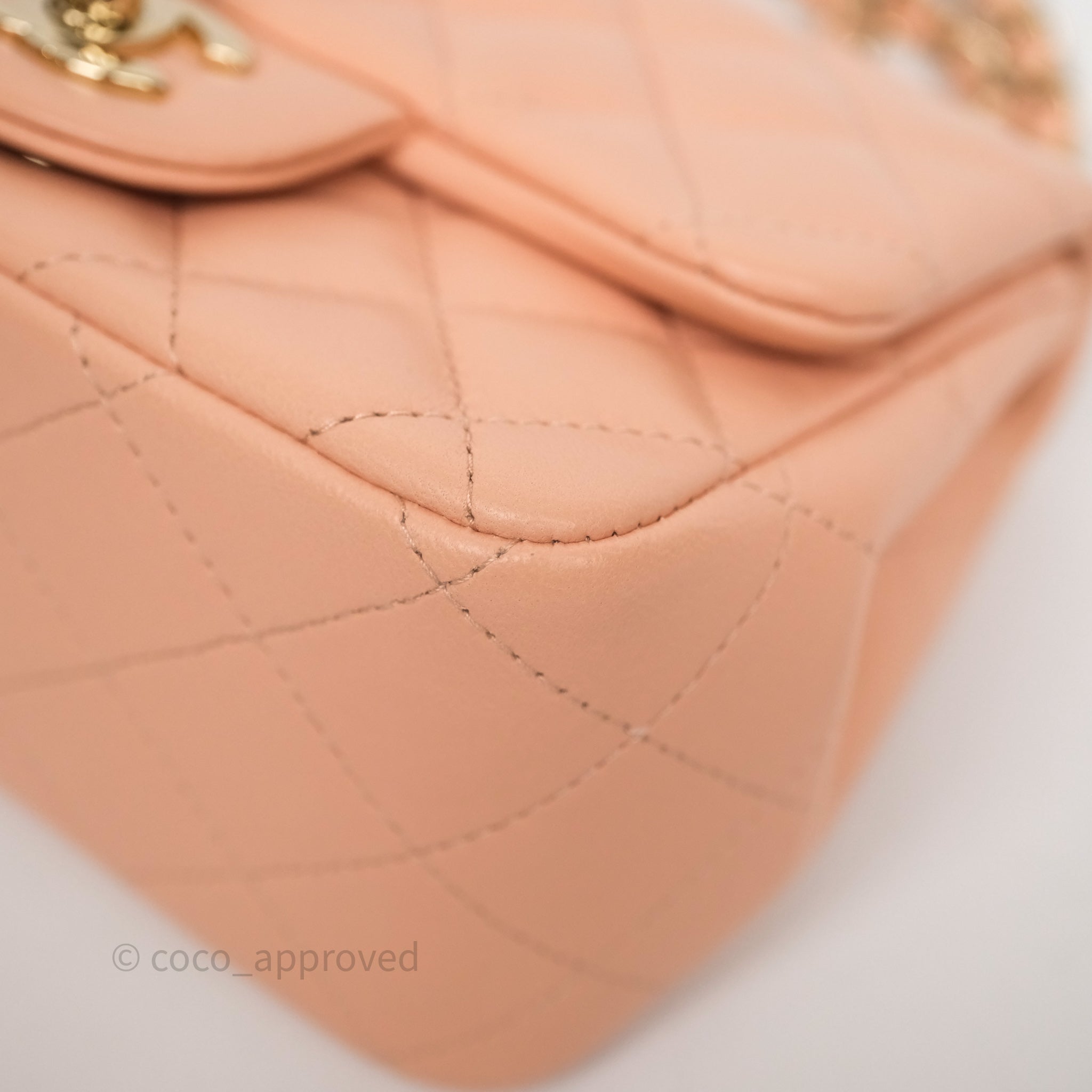 Chanel Mini Square Flap Quilted Orange Clair Lambskin Gold Hardware