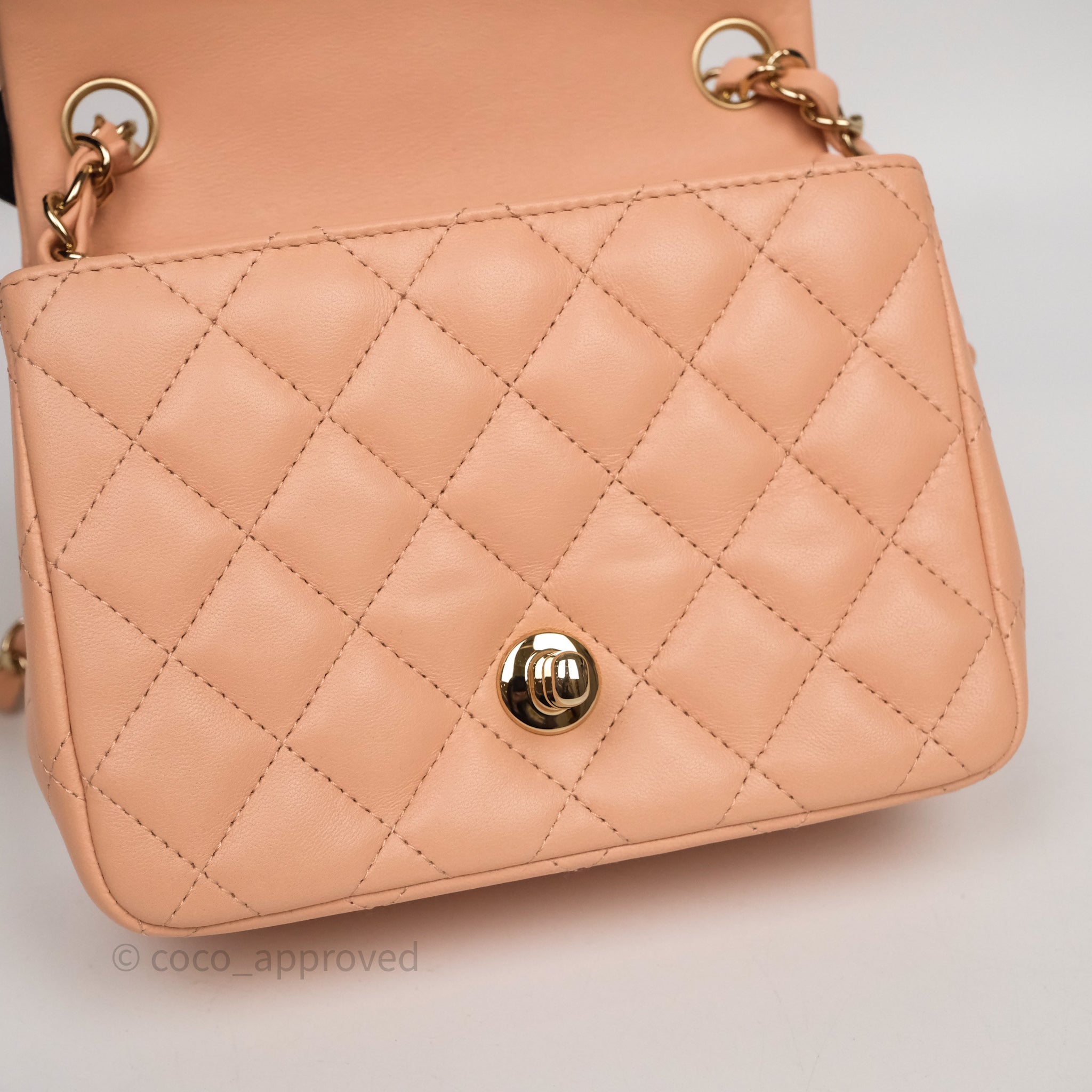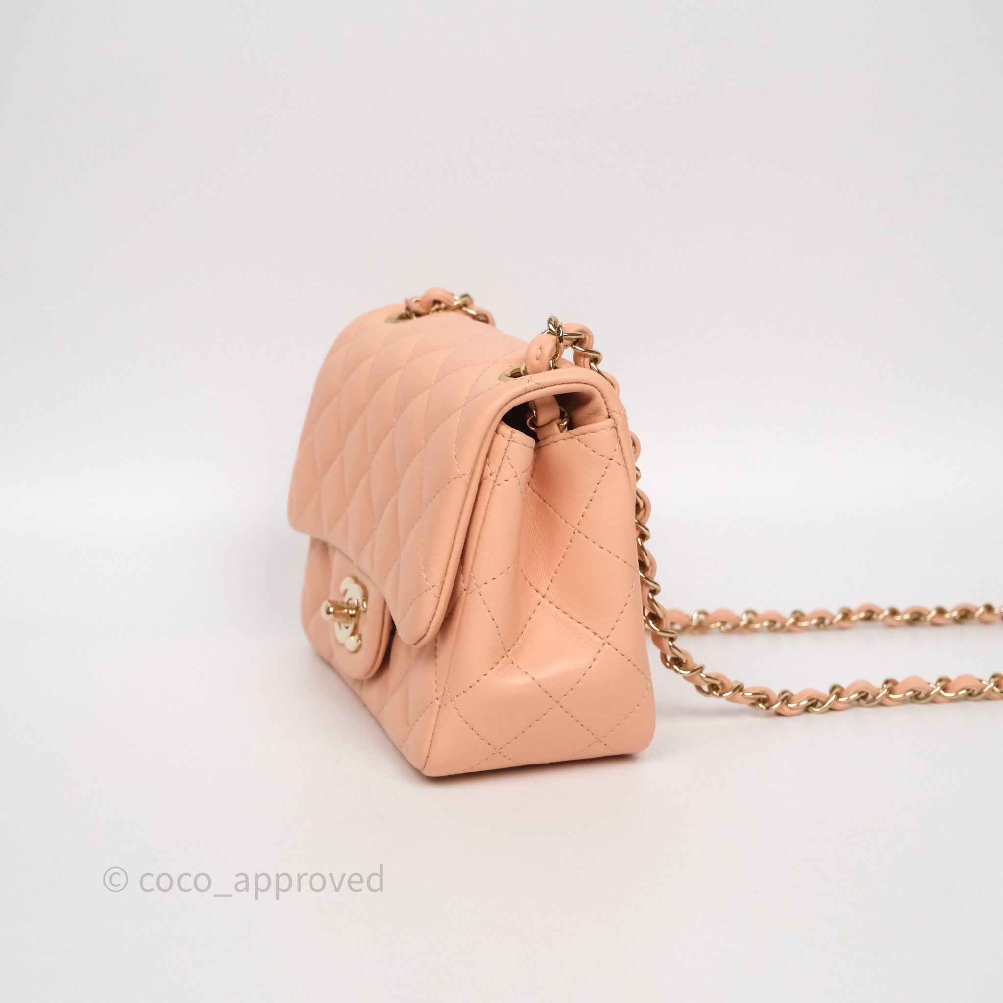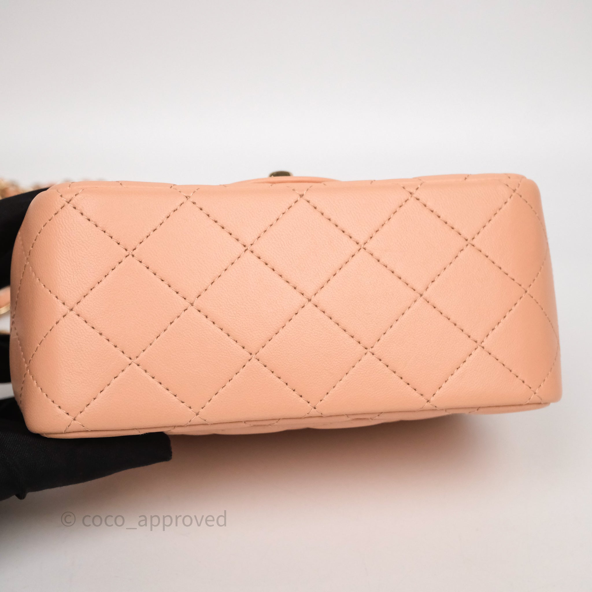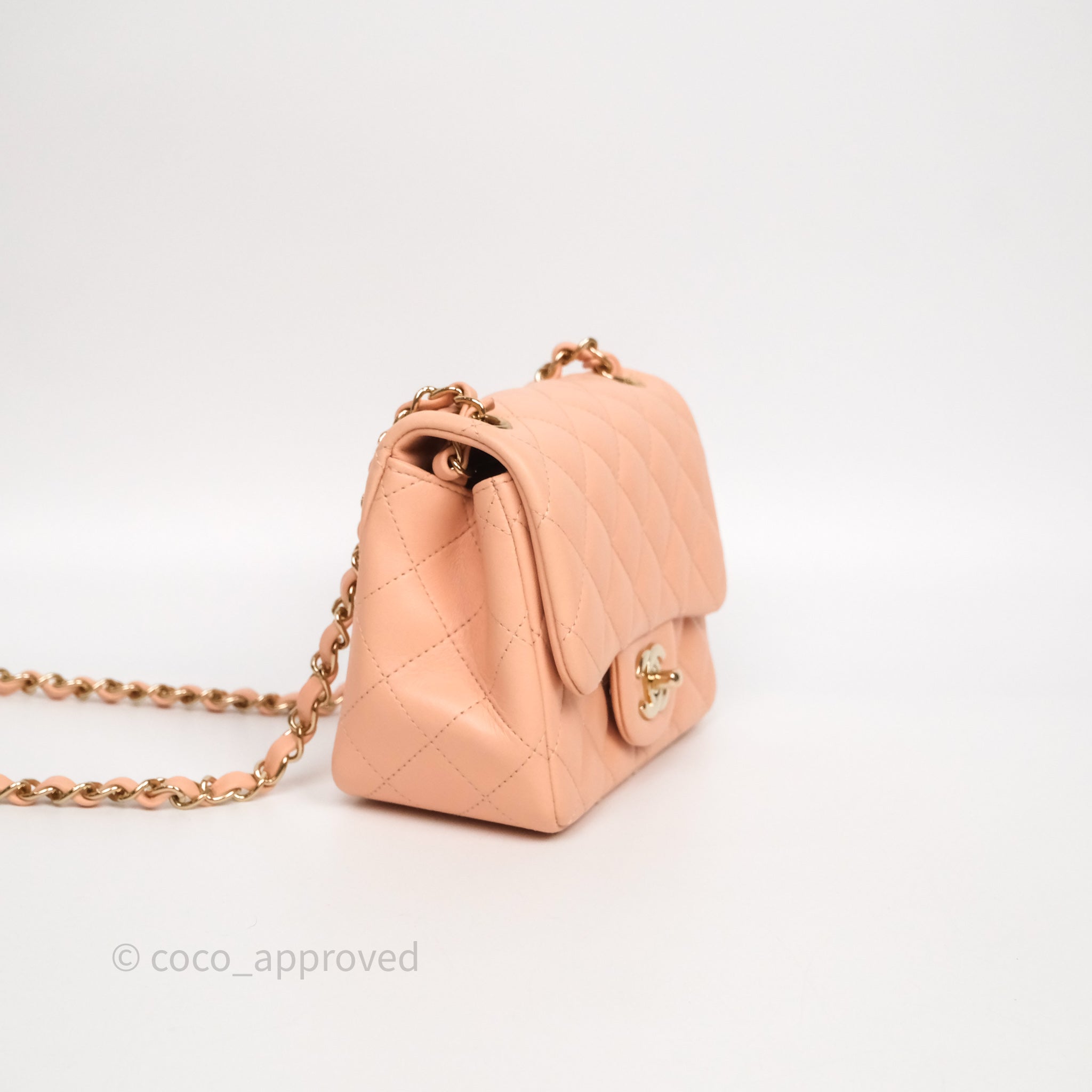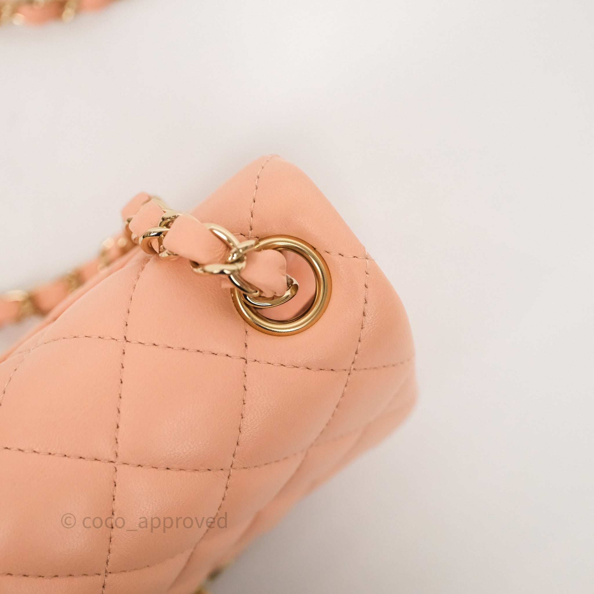 Chanel Mini Square Flap Quilted Orange Clair Lambskin Gold Hardware
