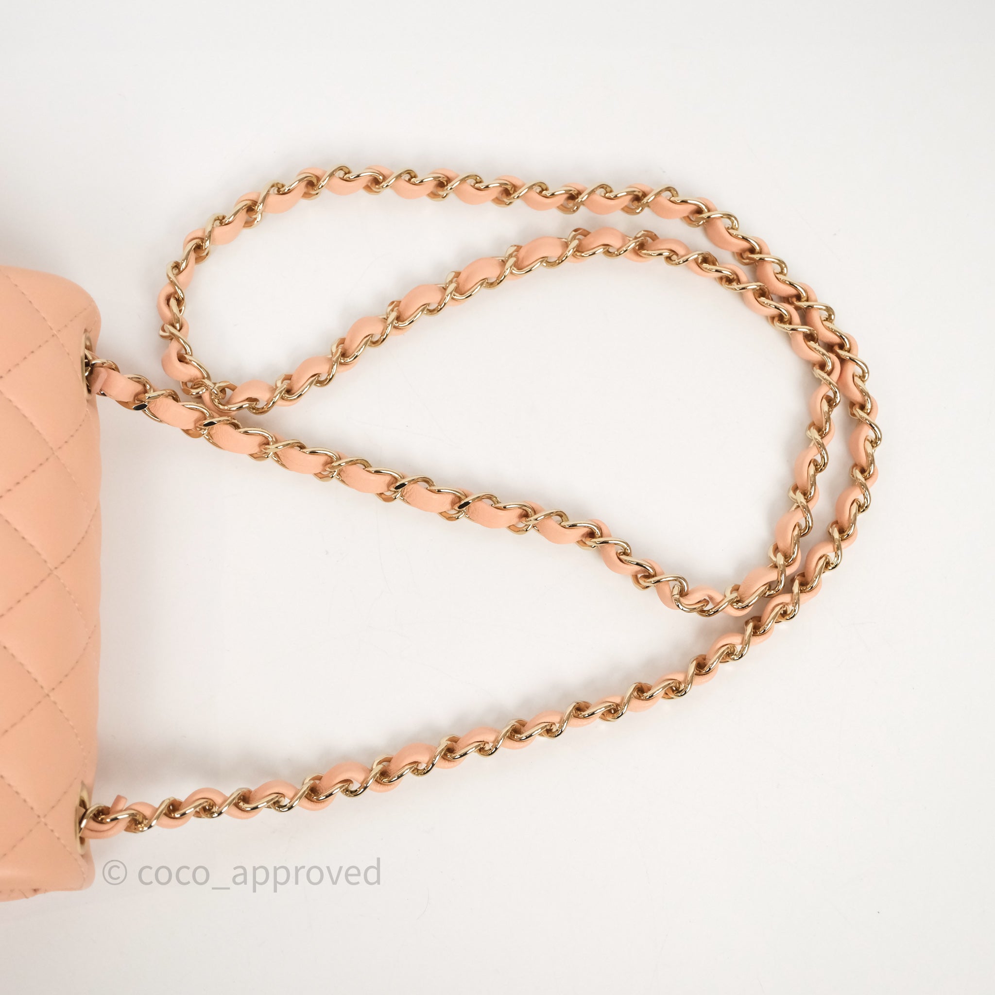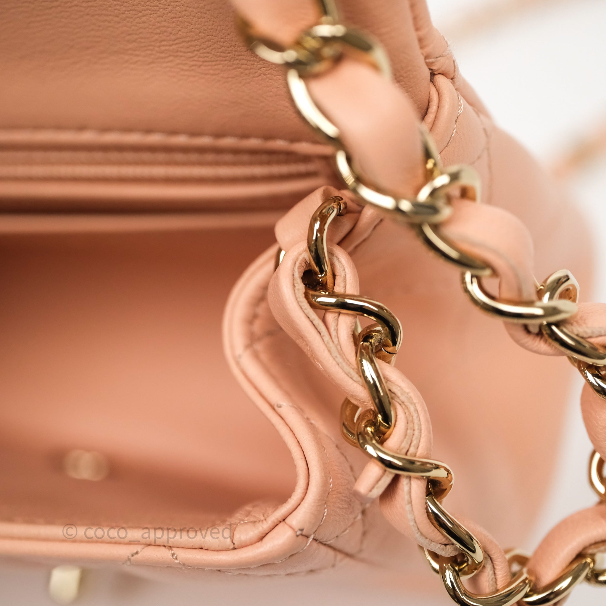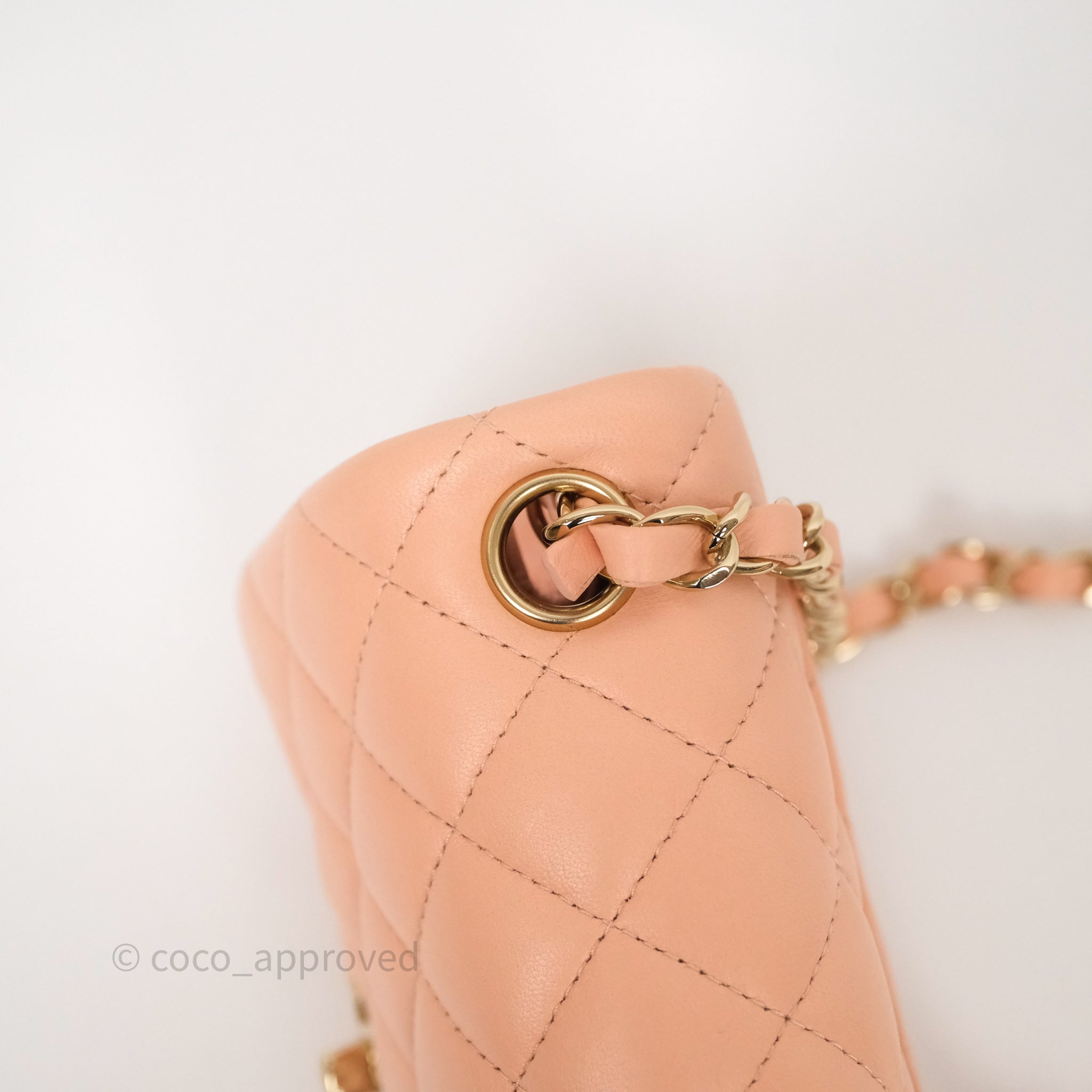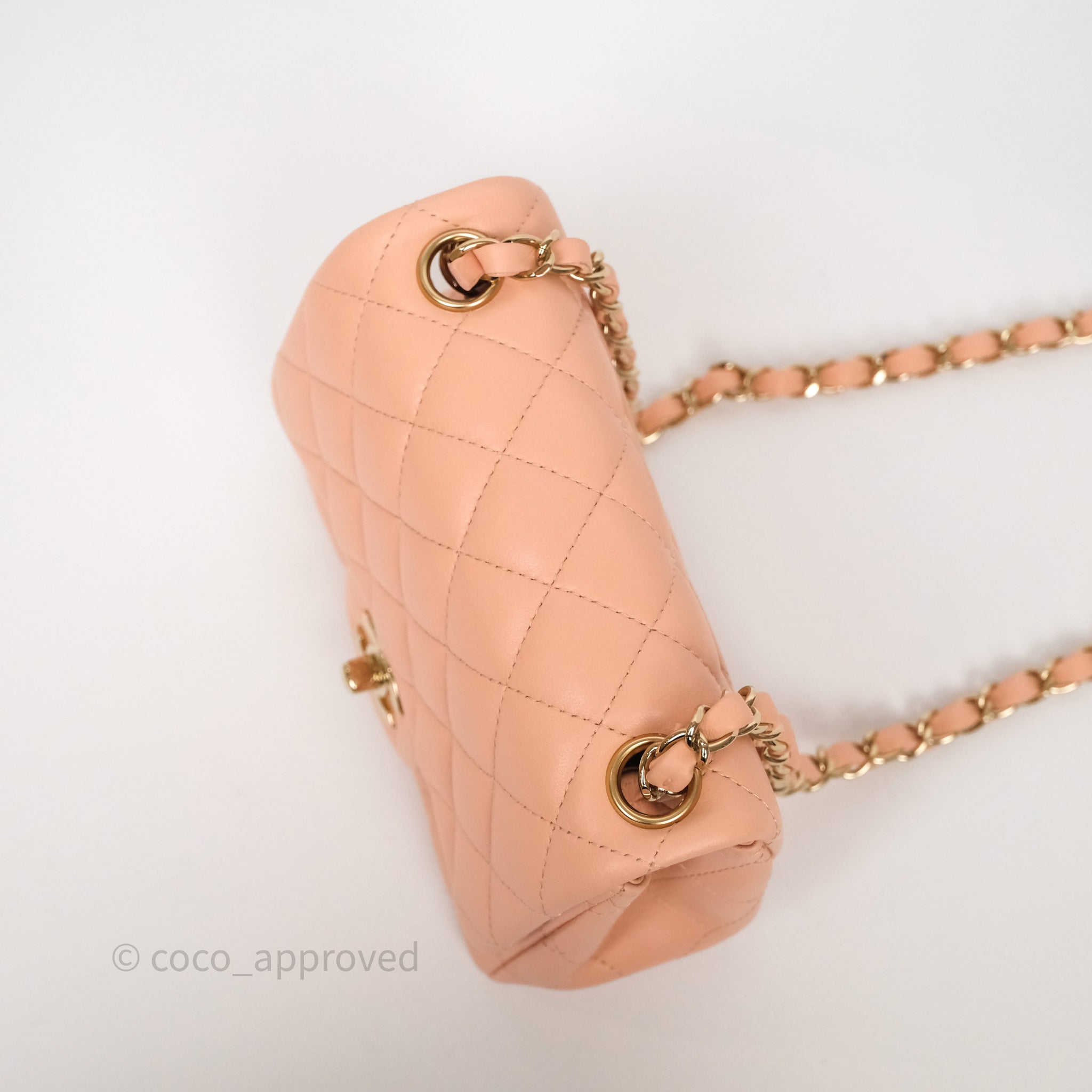 Chanel Mini Square Flap Quilted Orange Clair Lambskin Gold Hardware