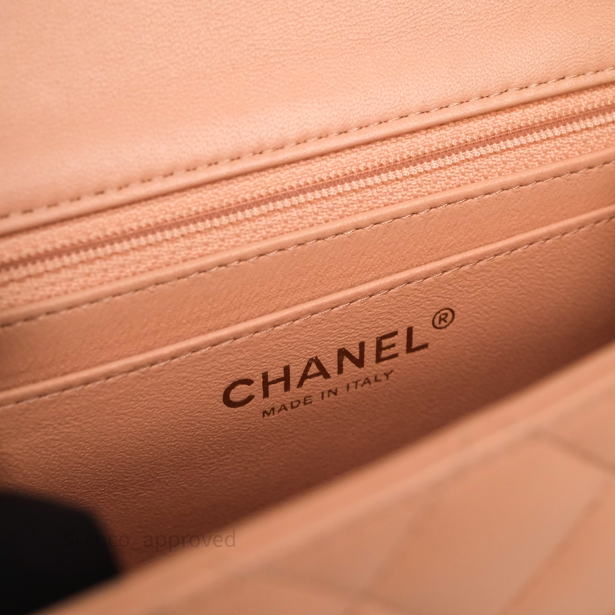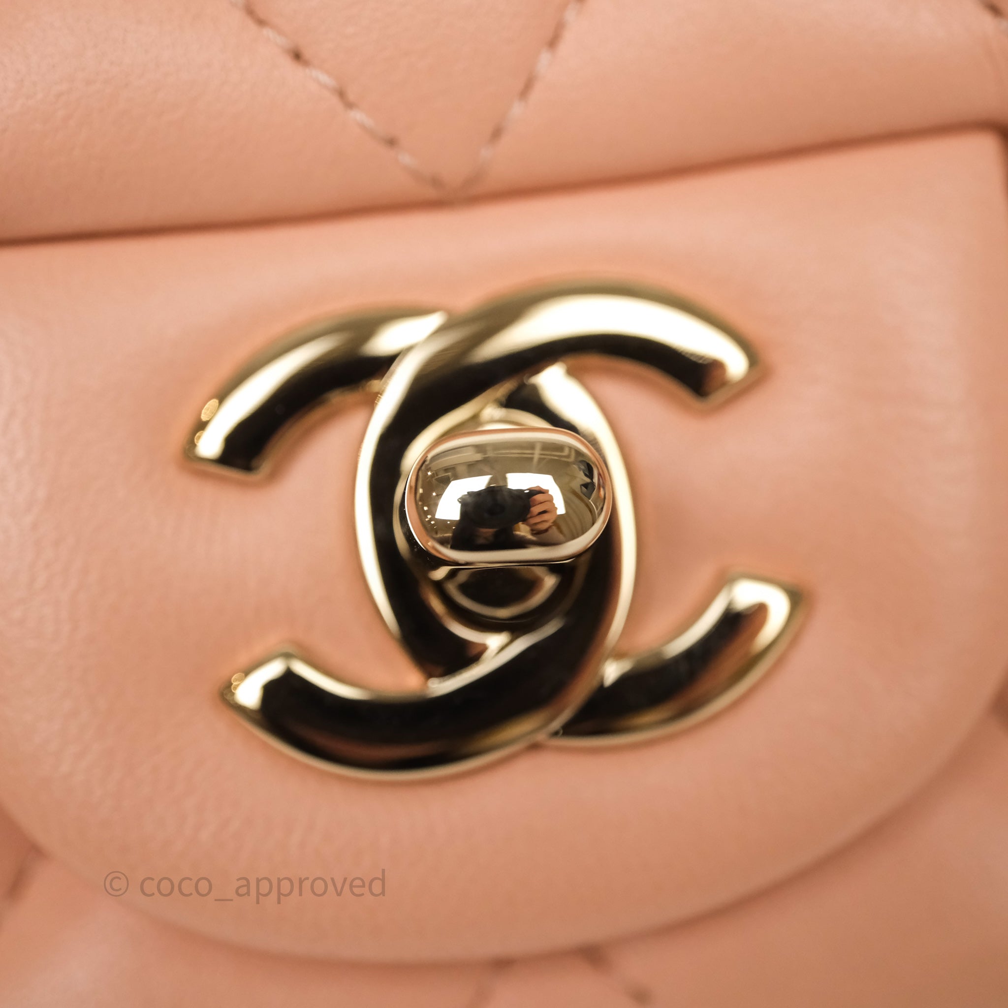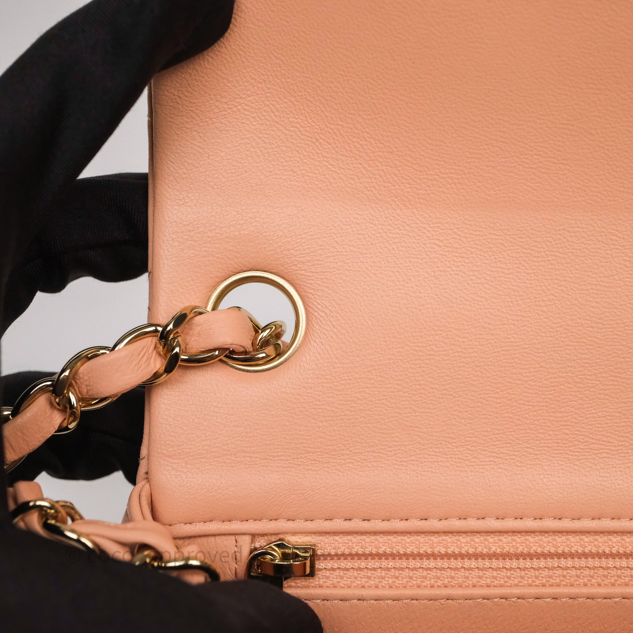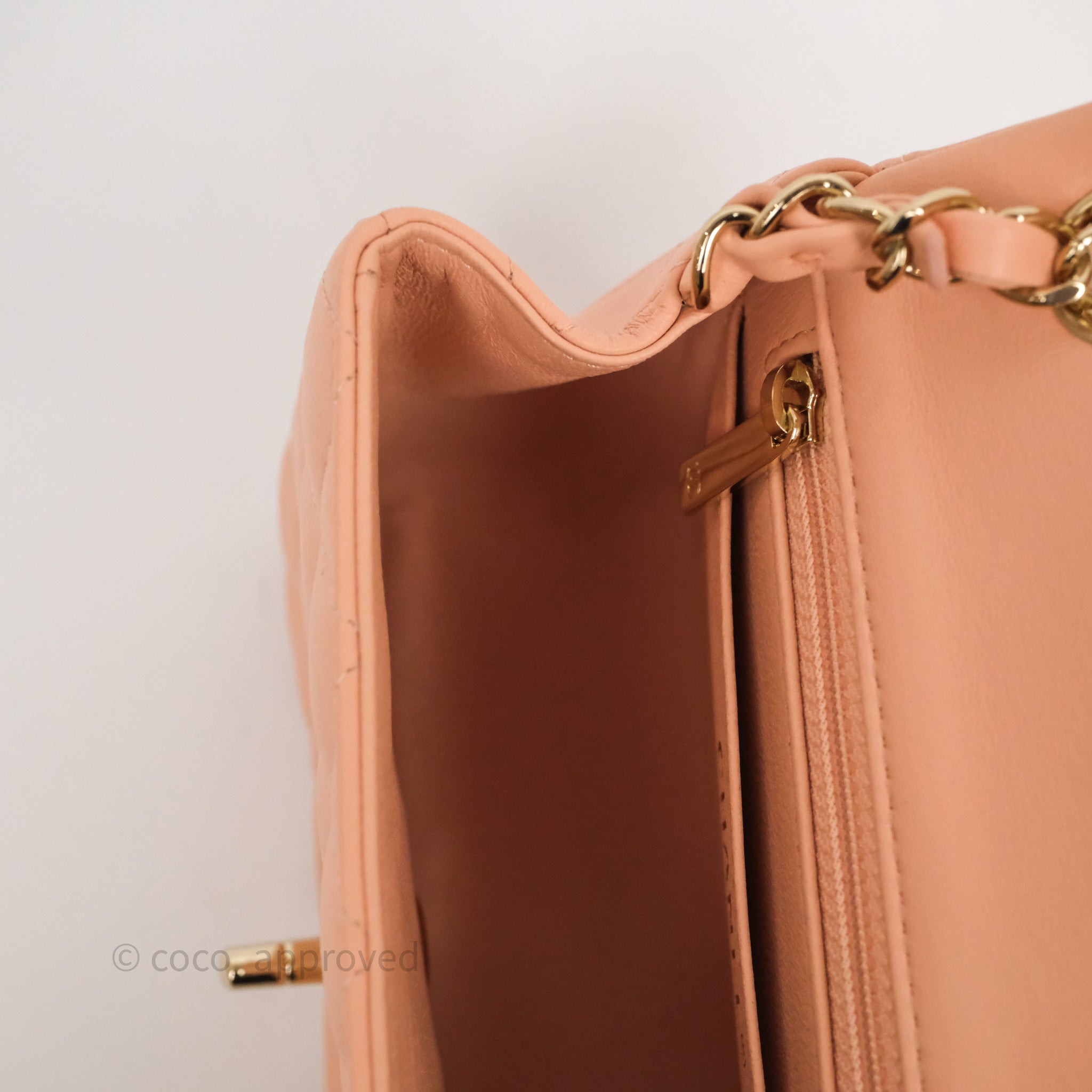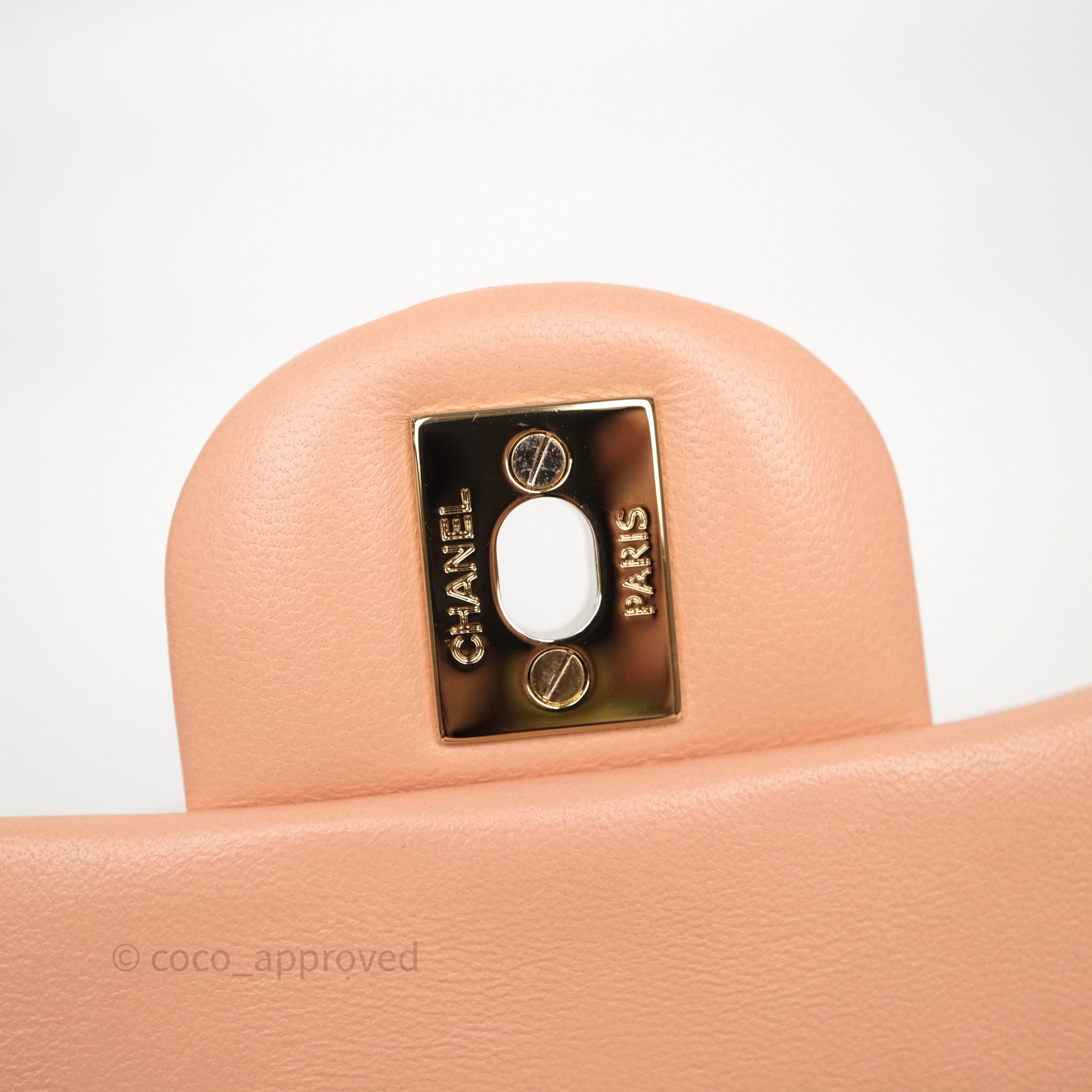 Chanel Mini Square Flap Quilted Orange Clair Lambskin Gold Hardware