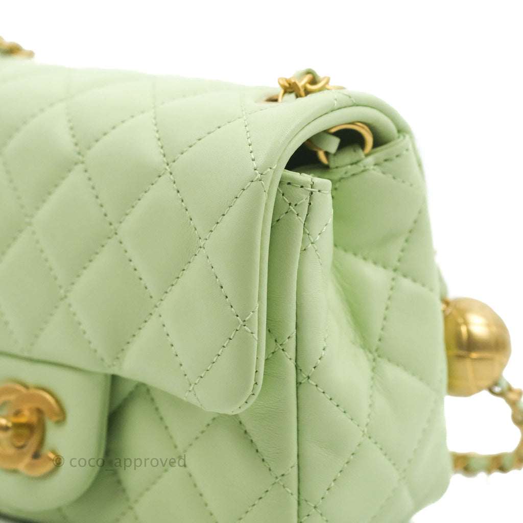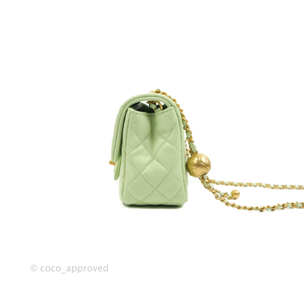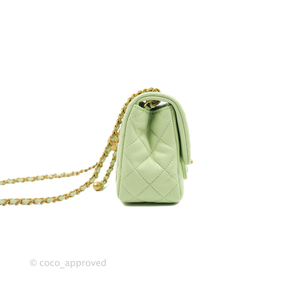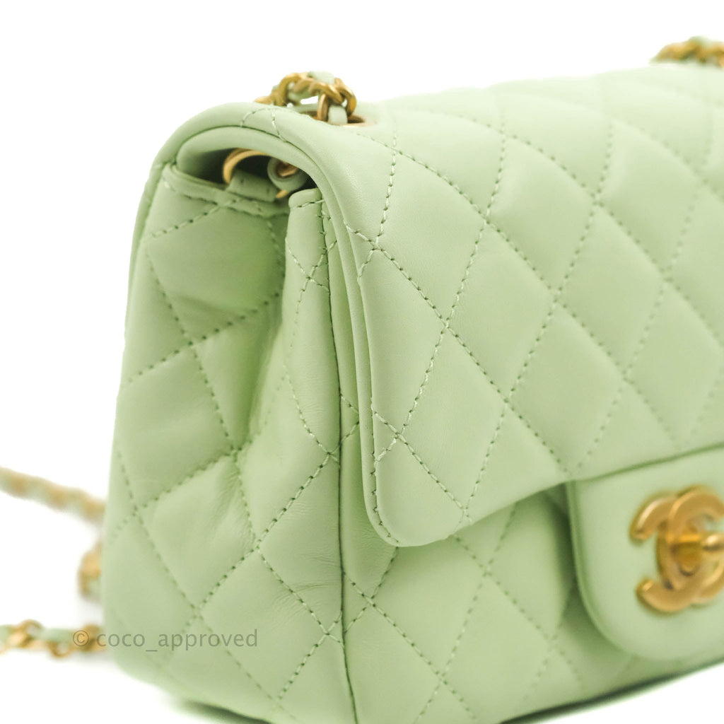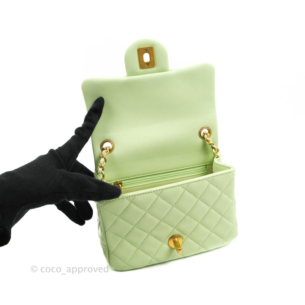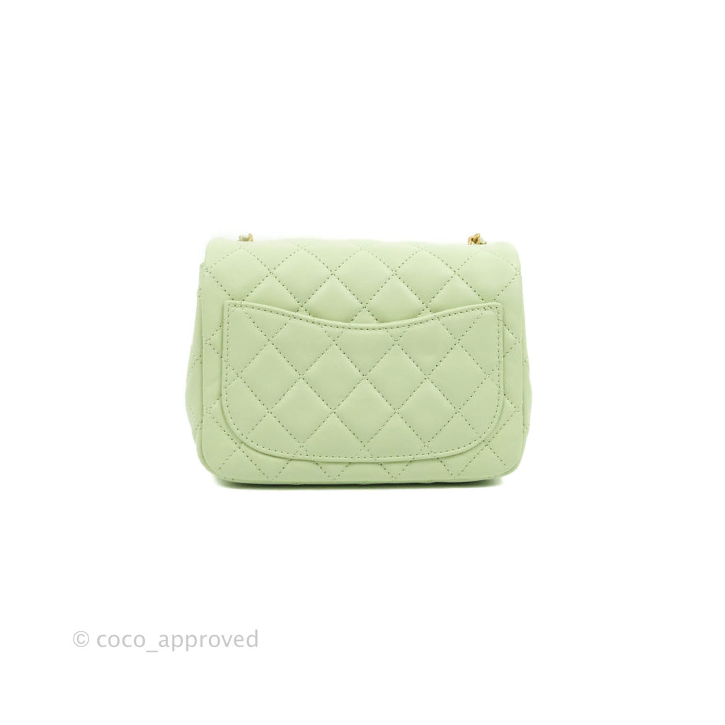 Chanel Mini Square Pearl Crush Quilted Avocado Green Lambskin Aged Gold Hardware