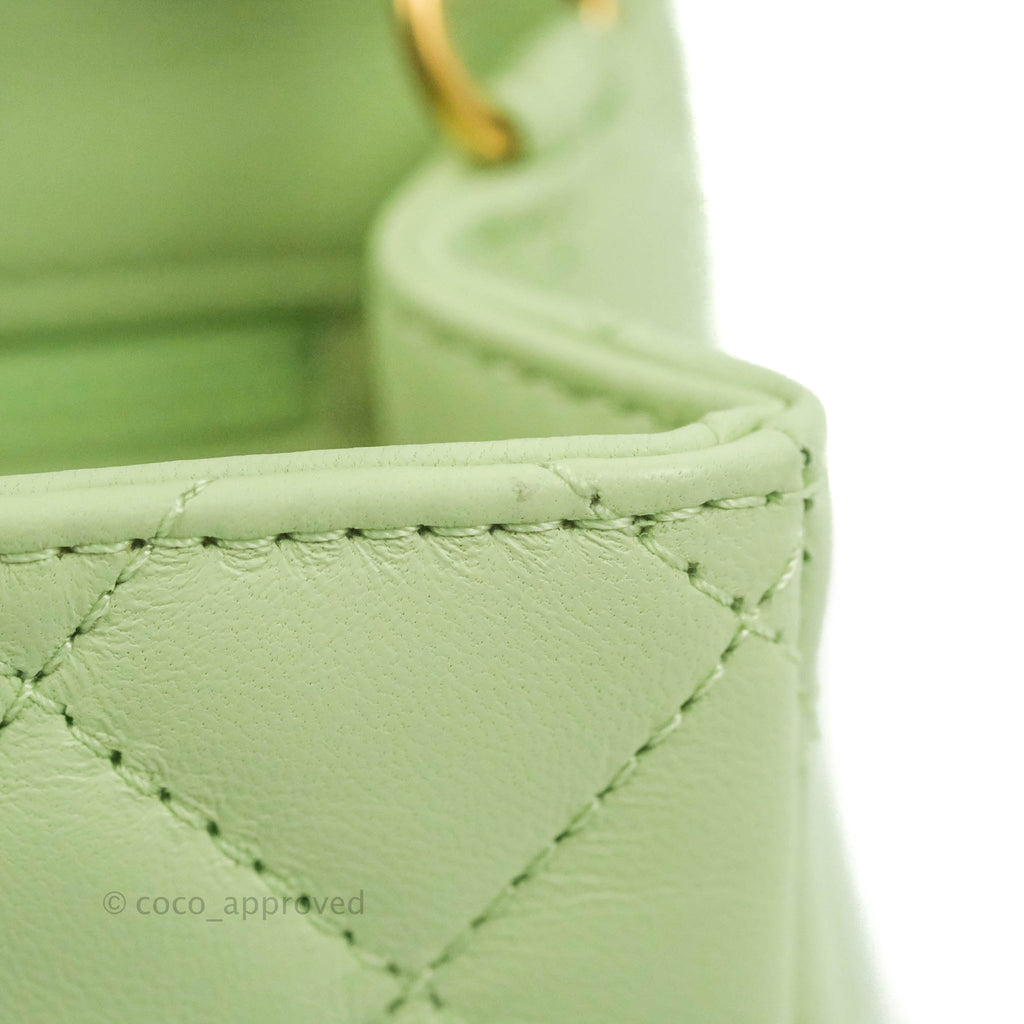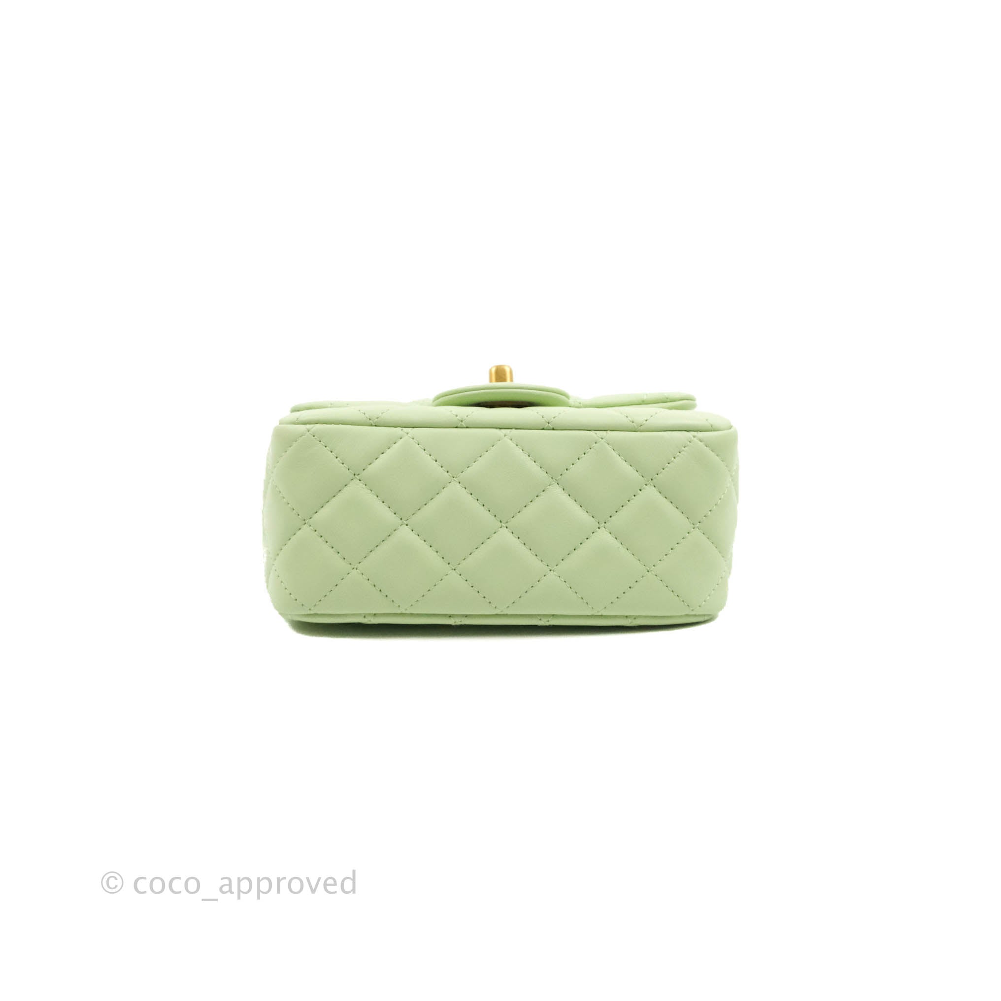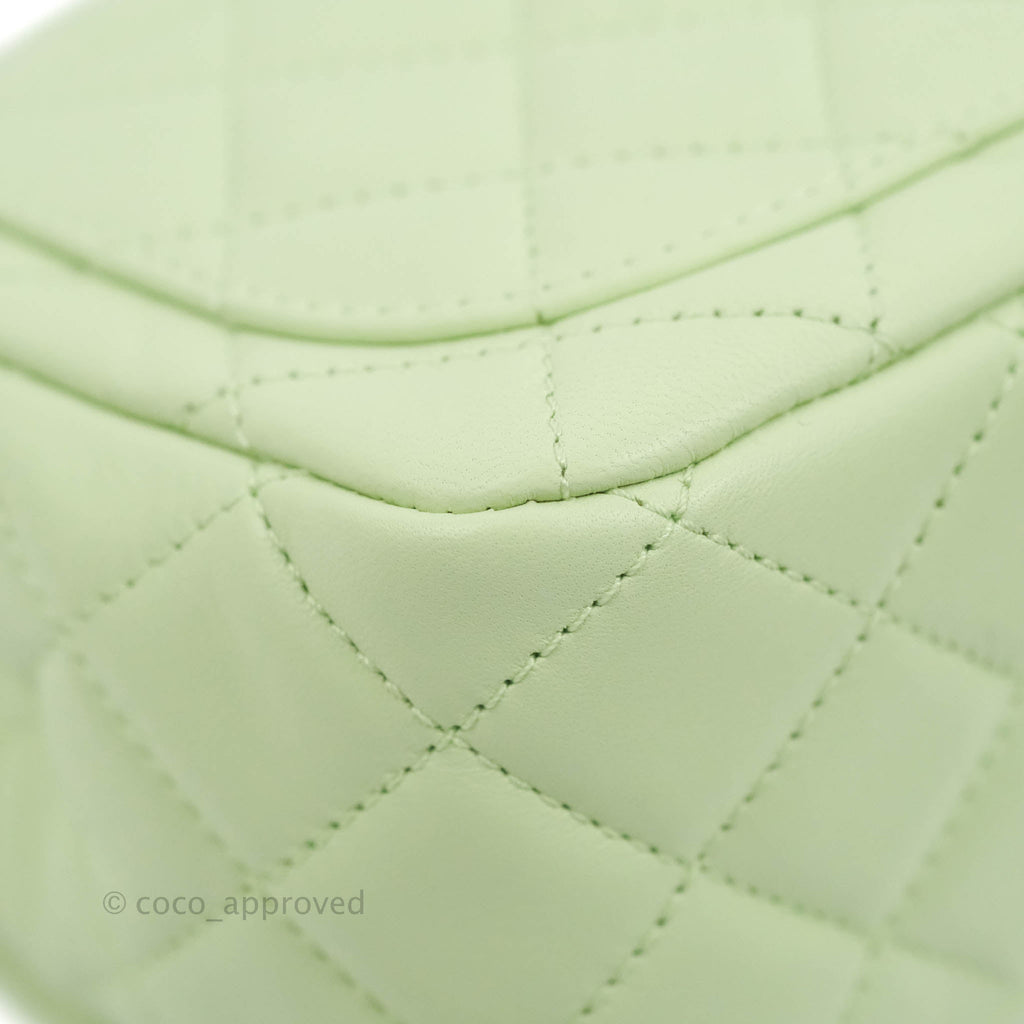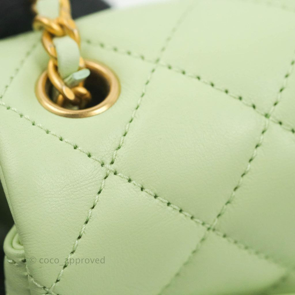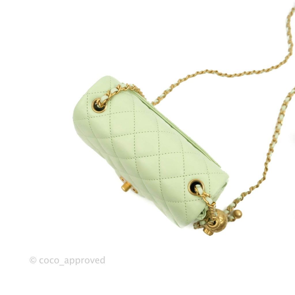 Chanel Mini Square Pearl Crush Quilted Avocado Green Lambskin Aged Gold Hardware