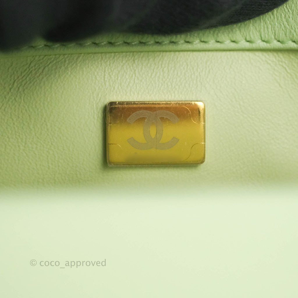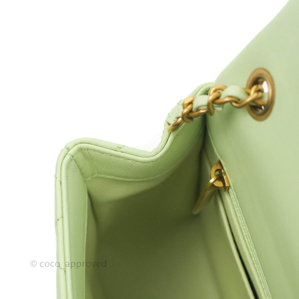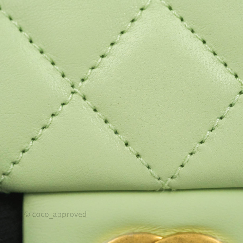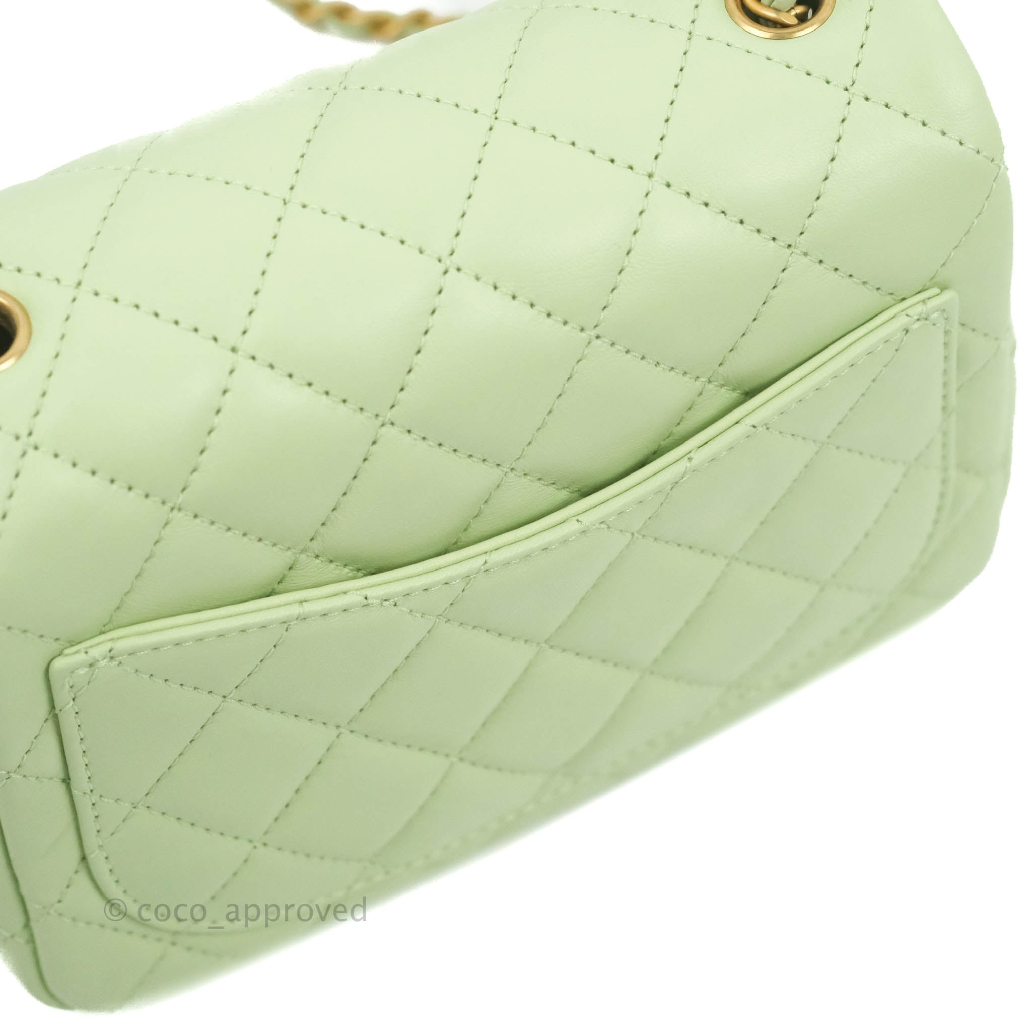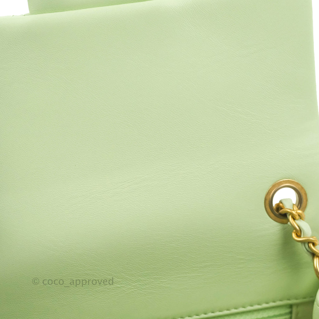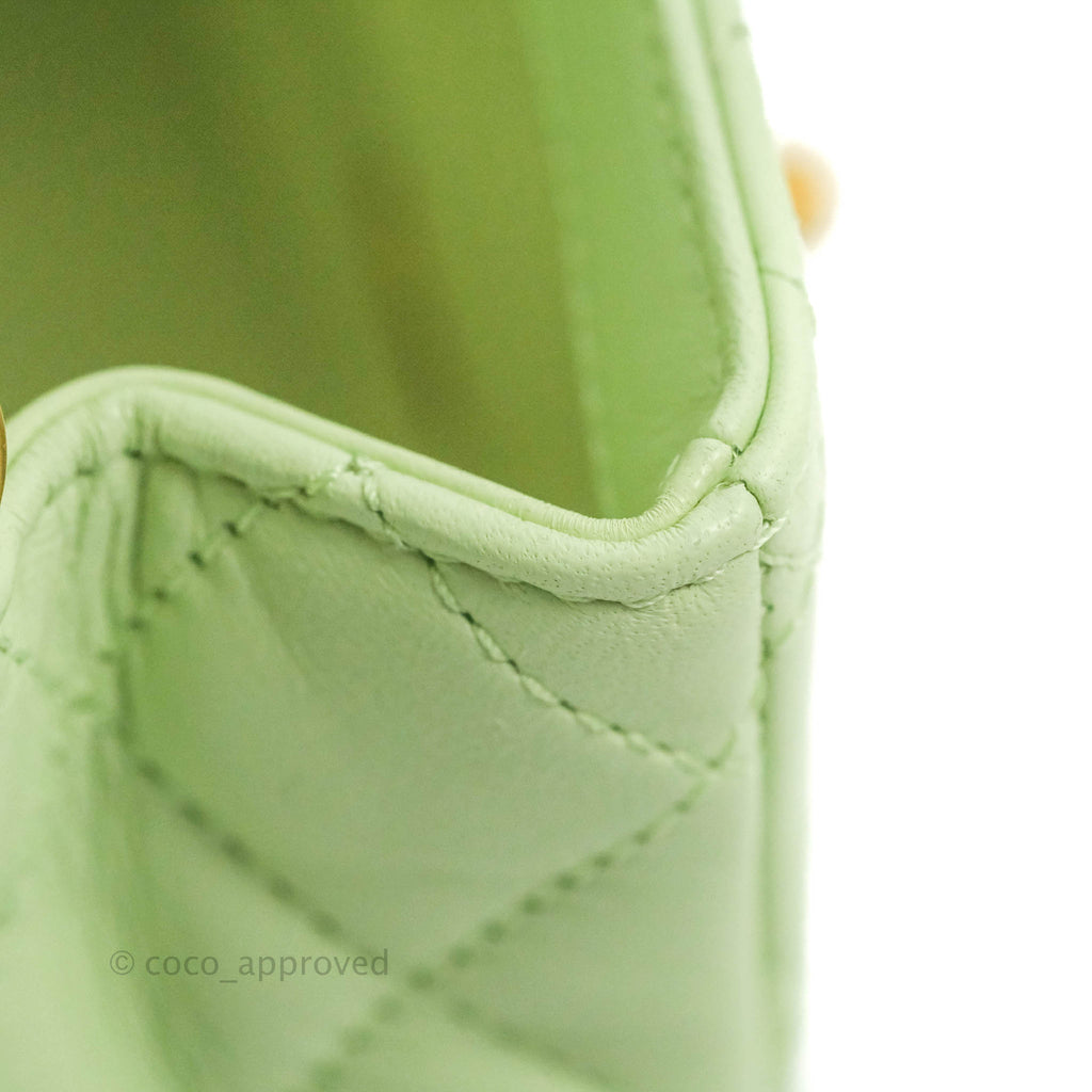 Chanel Mini Square Pearl Crush Quilted Avocado Green Lambskin Aged Gold Hardware