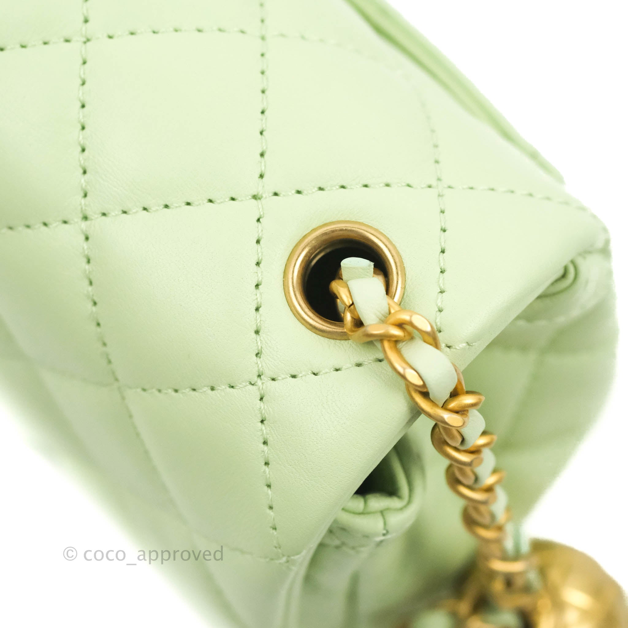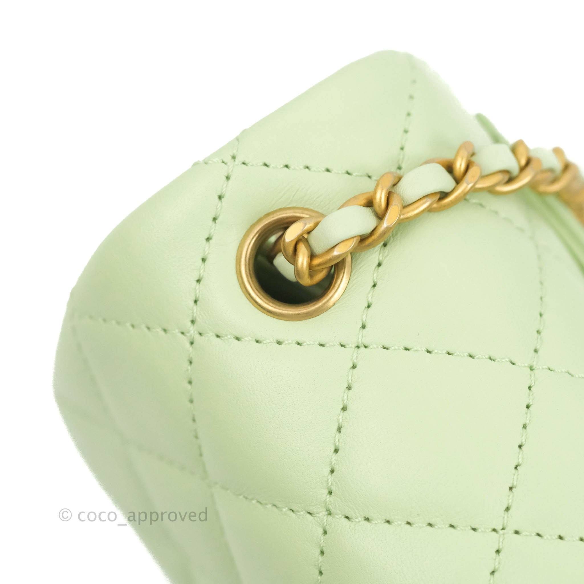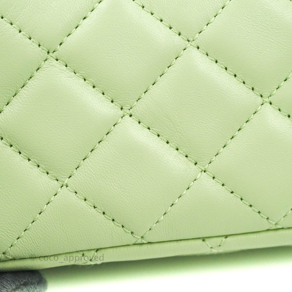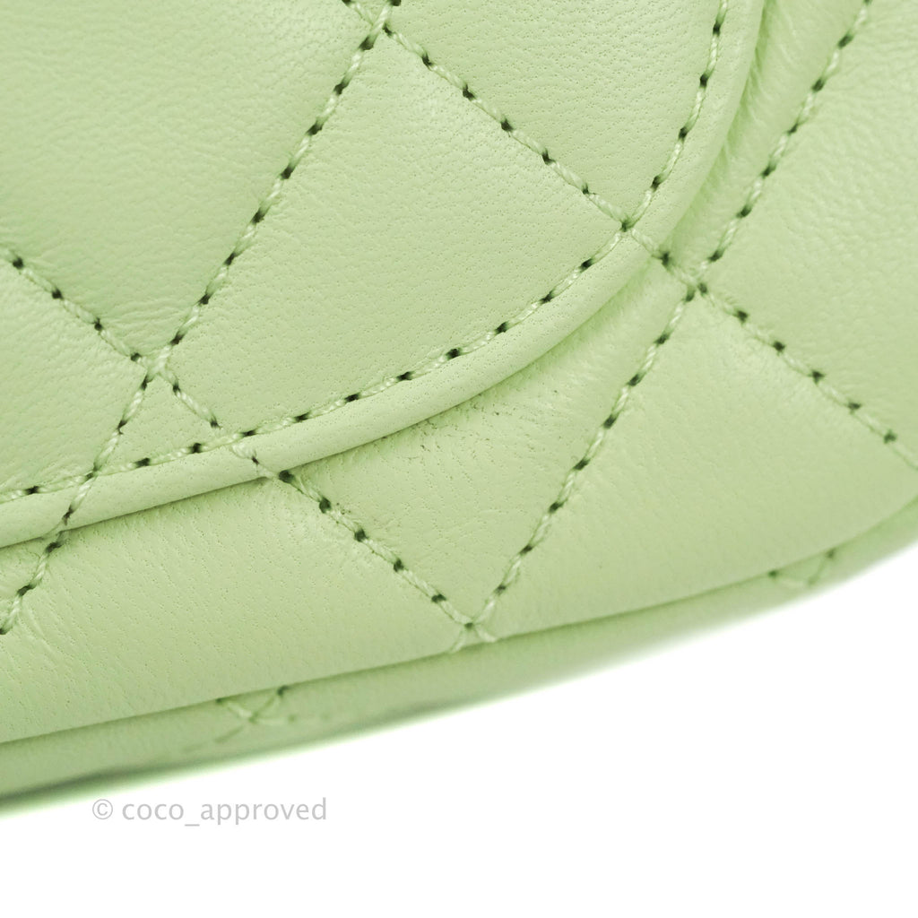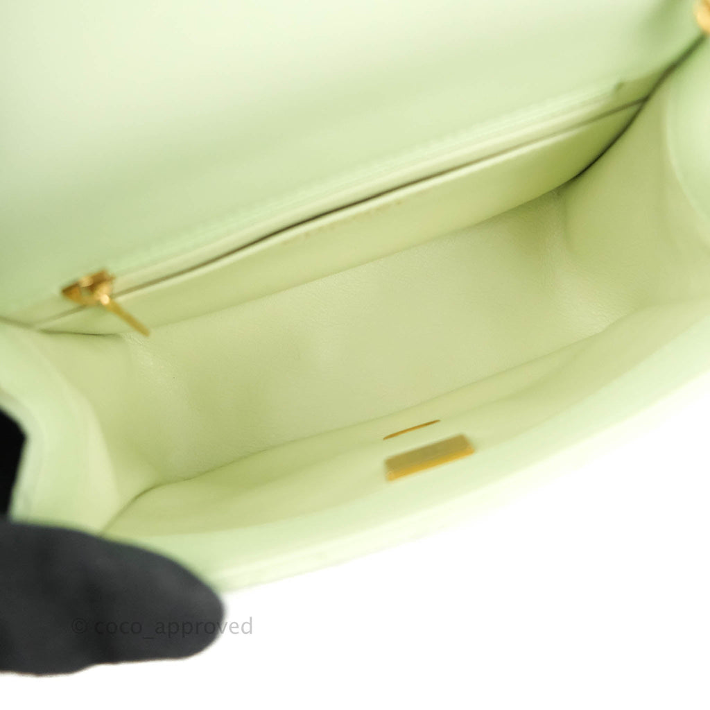 Chanel Mini Square Pearl Crush Quilted Avocado Green Lambskin Aged Gold Hardware