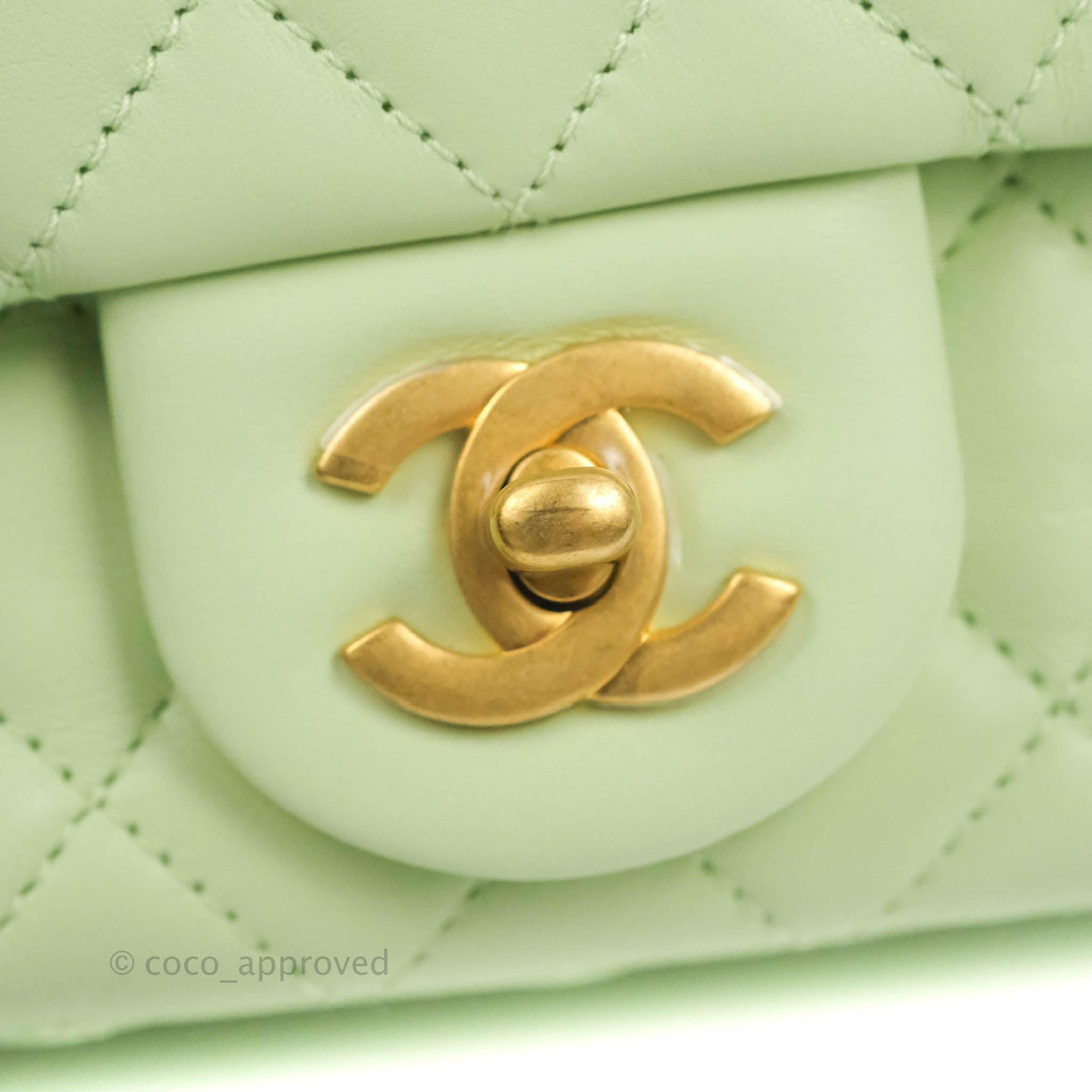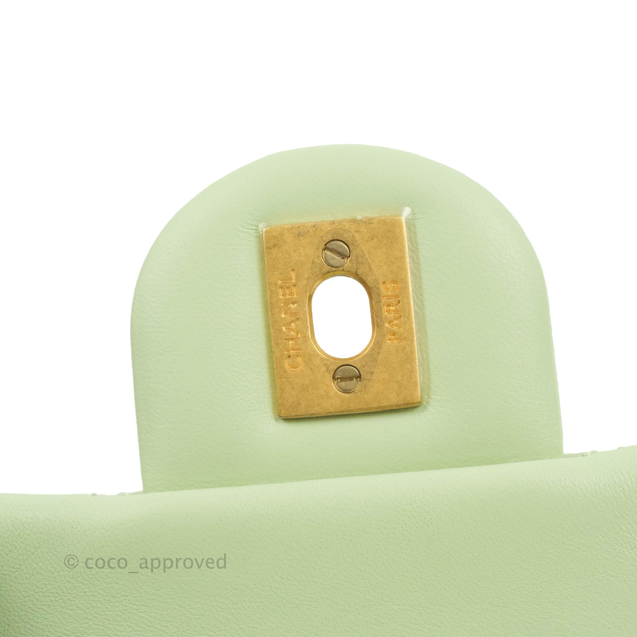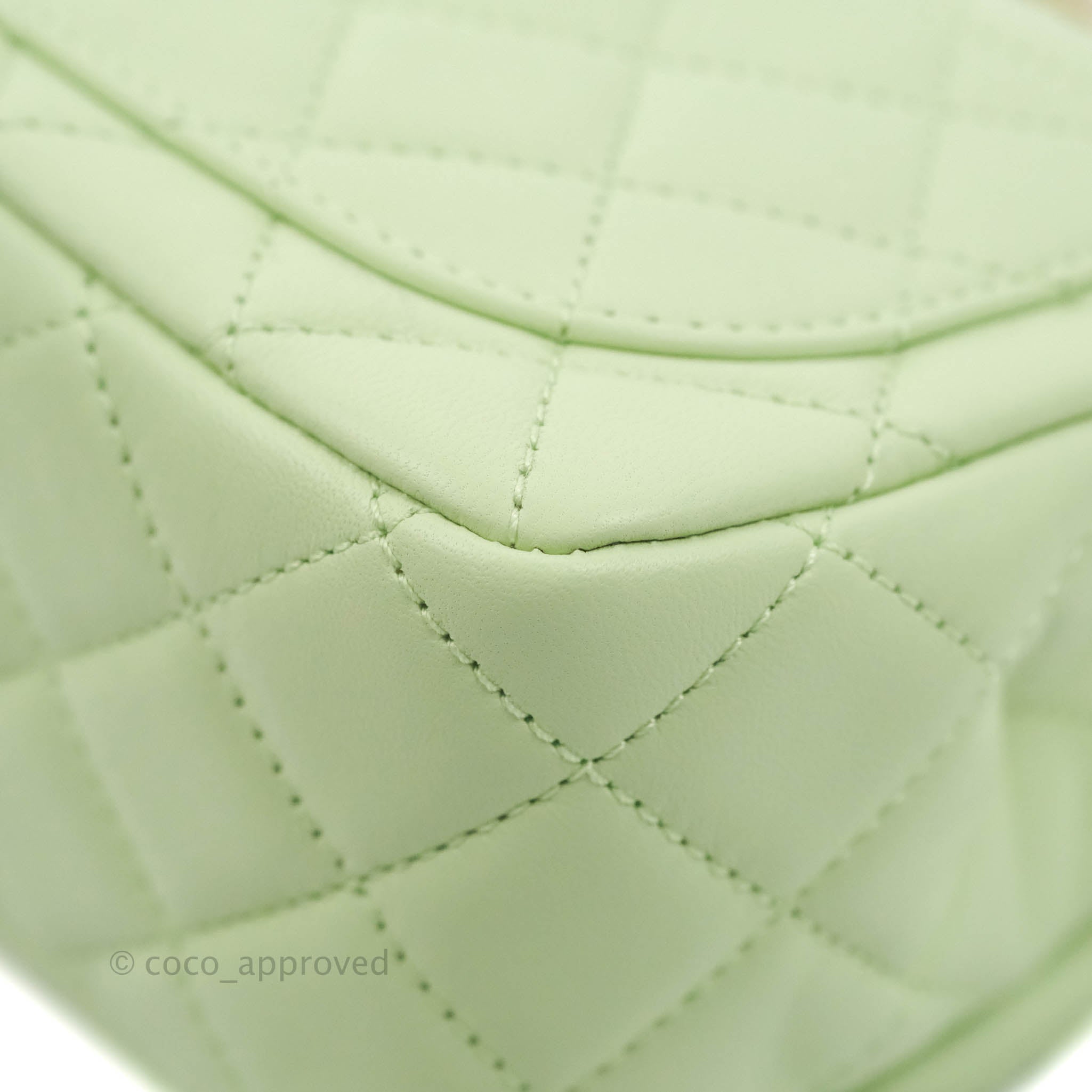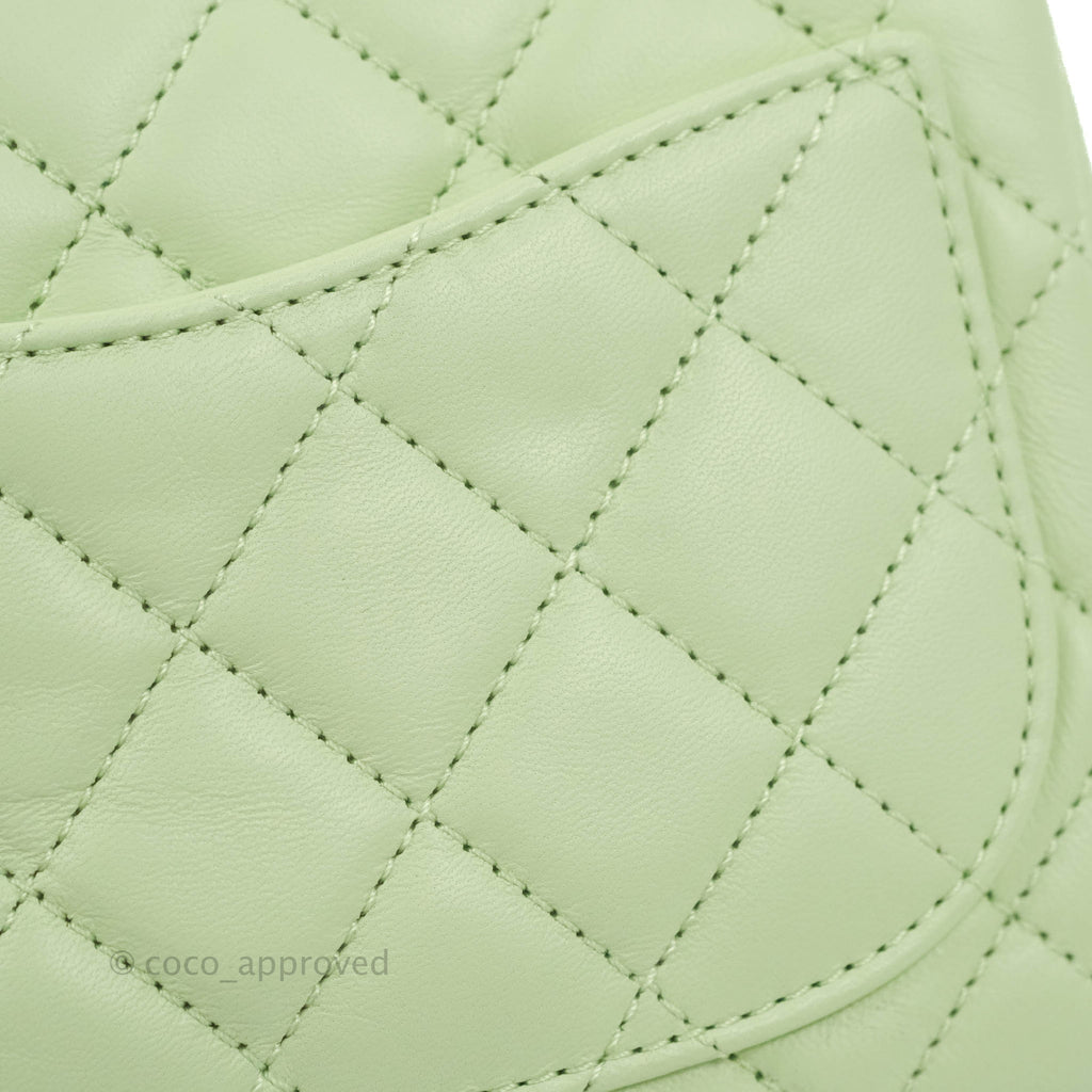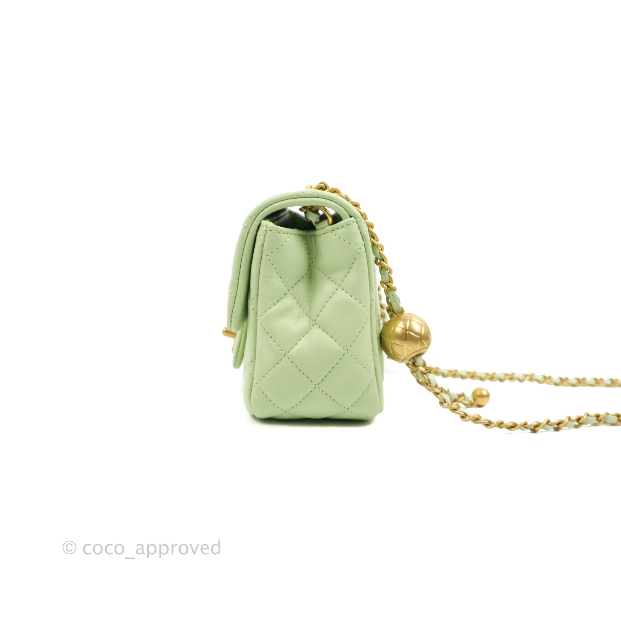 Chanel Mini Square Pearl Crush Quilted Avocado Green Lambskin Aged Gold Hardware
