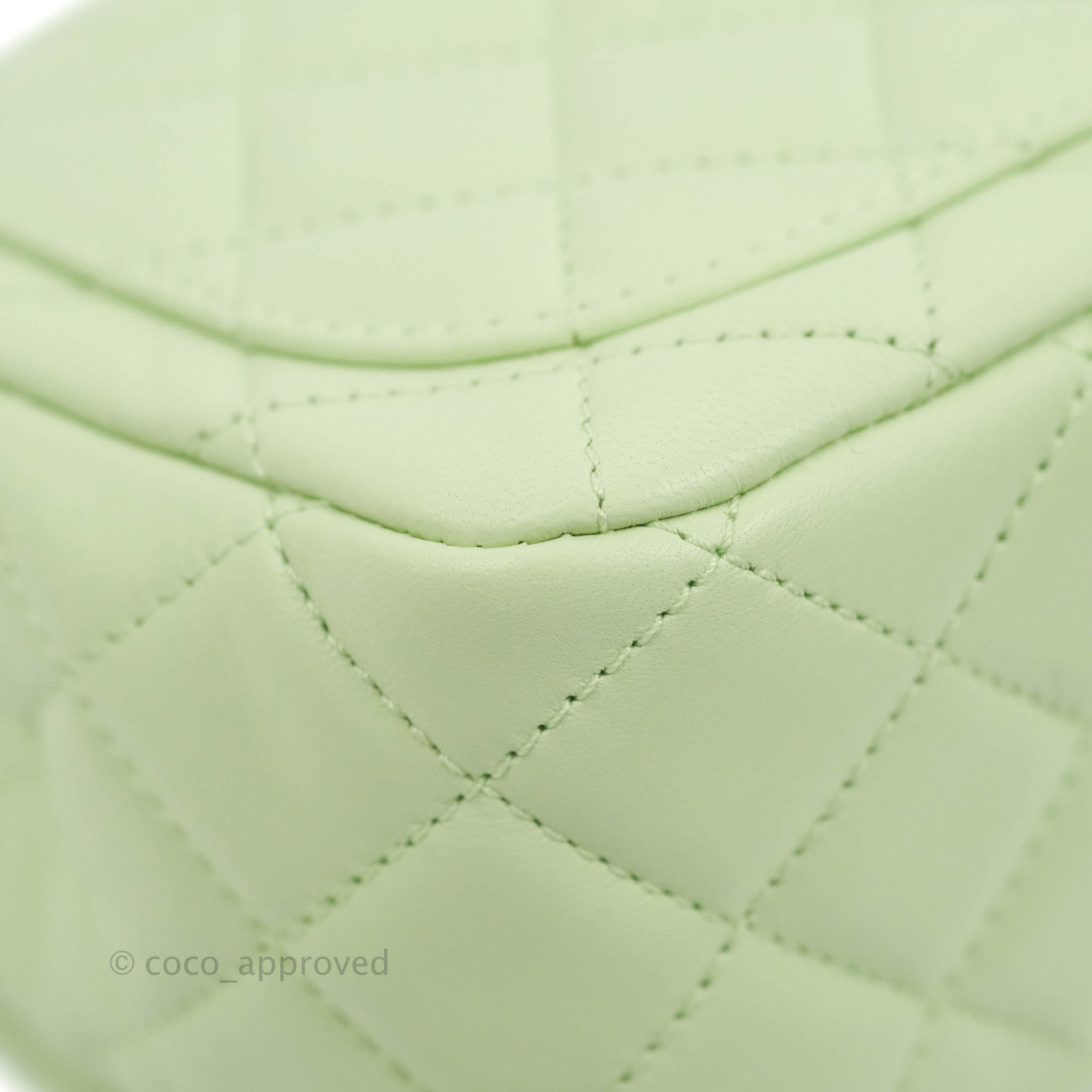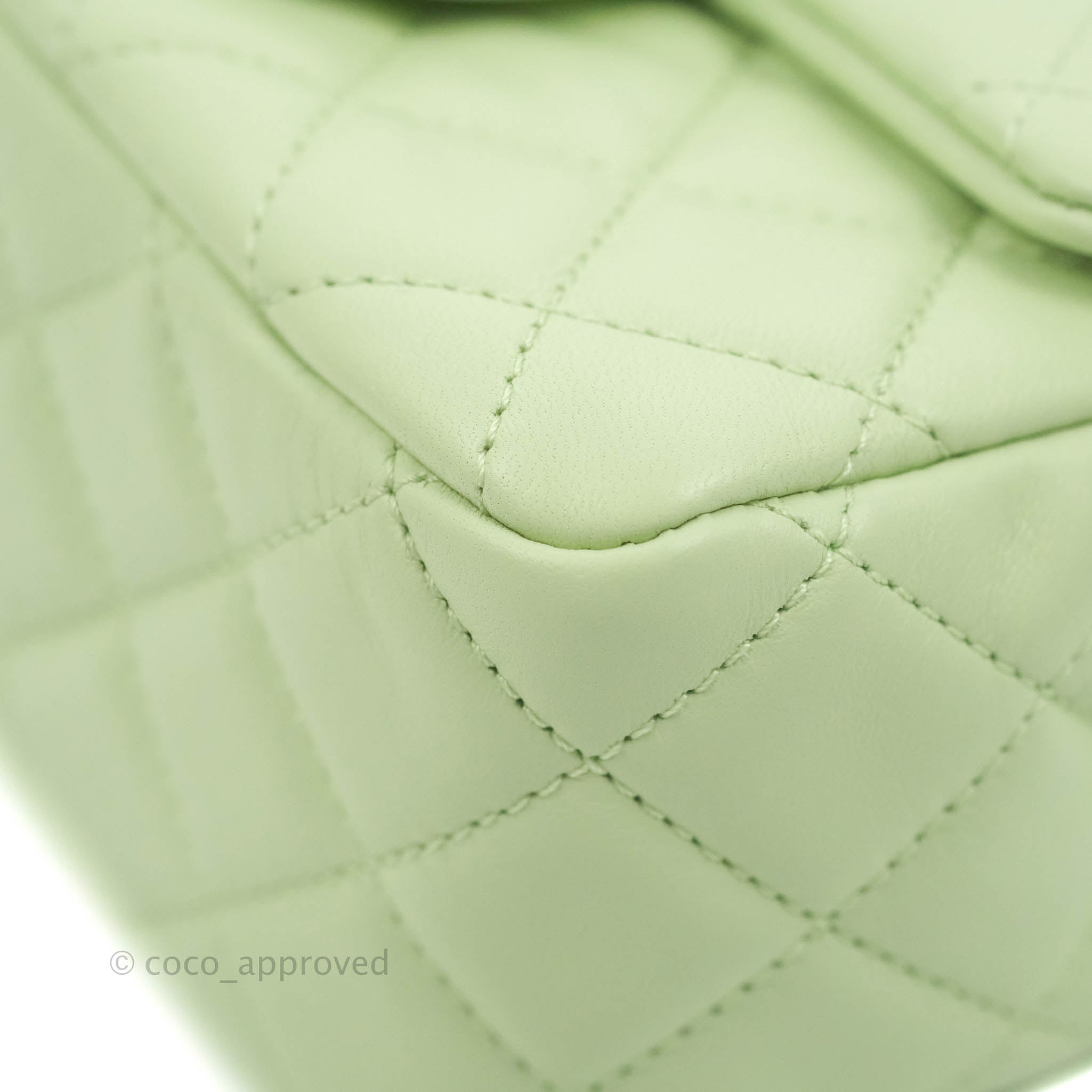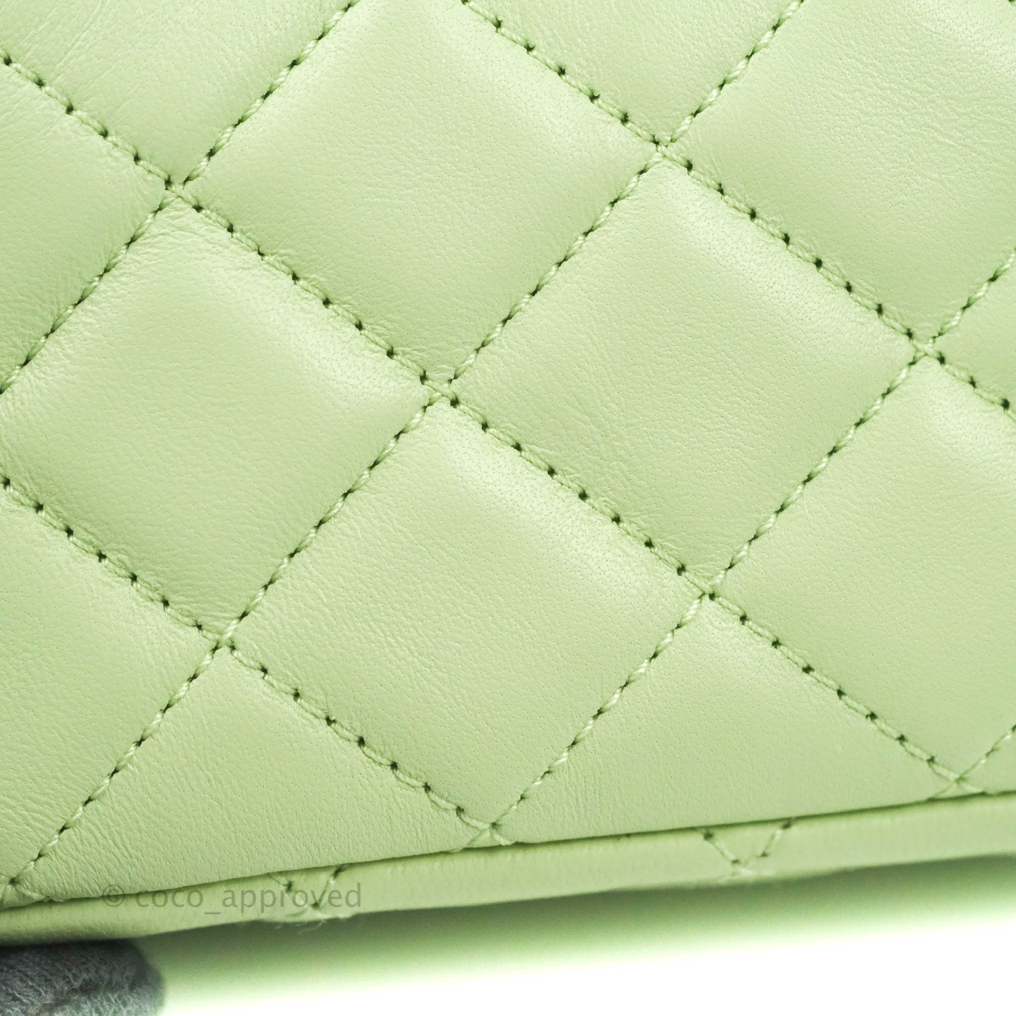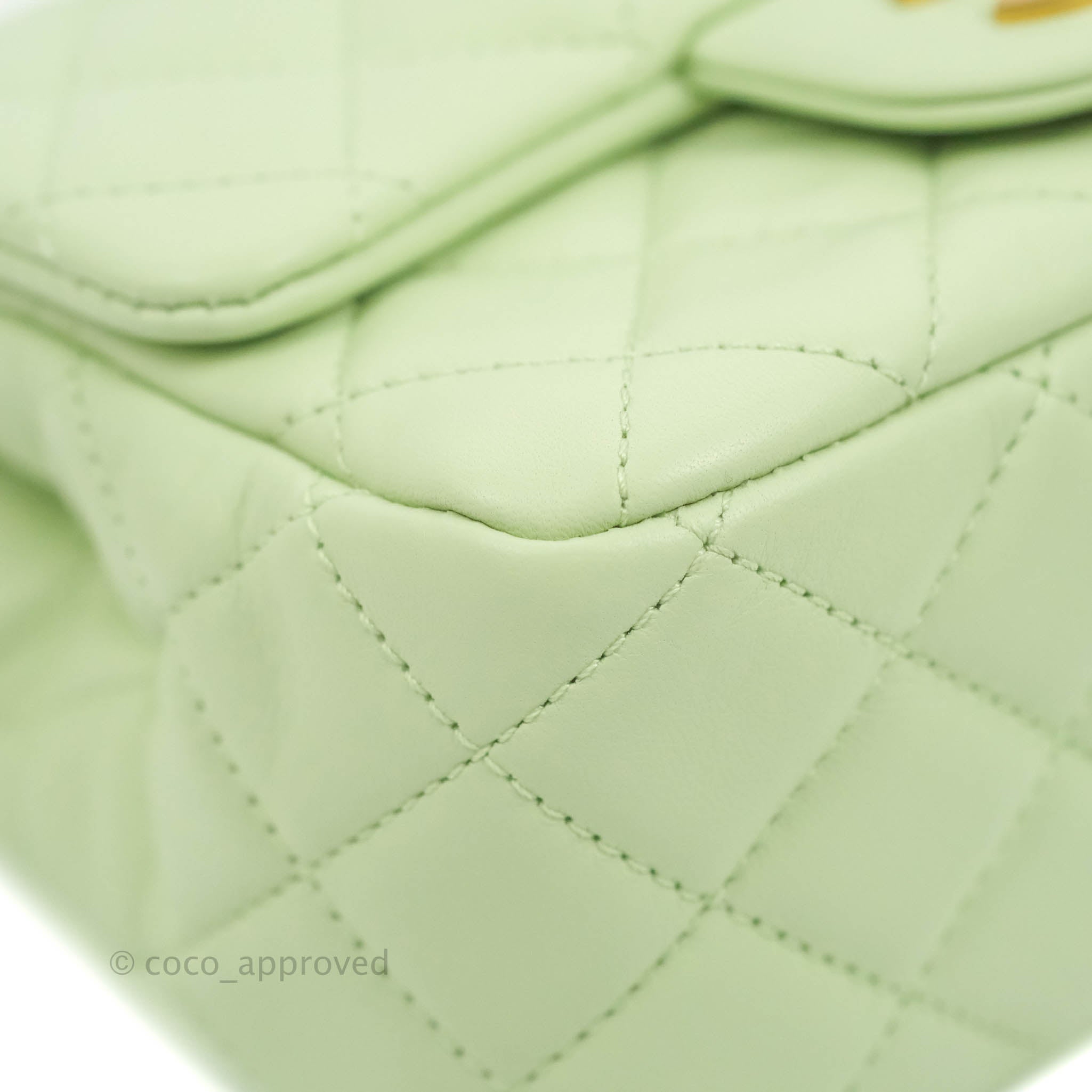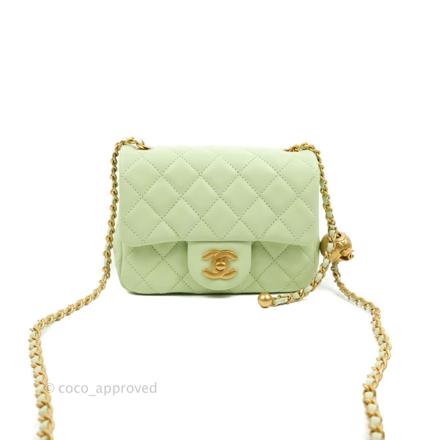 Chanel Mini Square Pearl Crush Quilted Avocado Green Lambskin Aged Gold Hardware