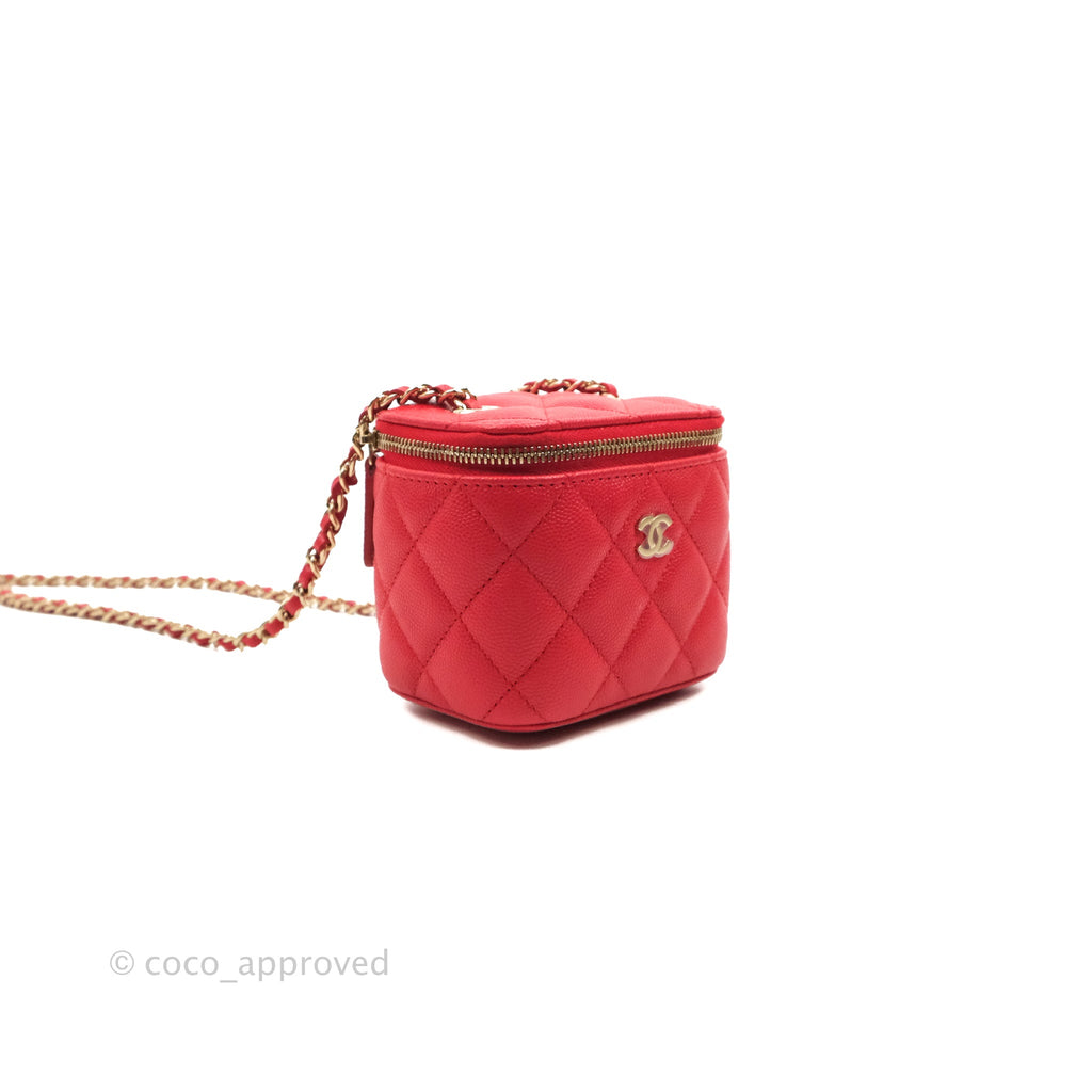 Chanel Mini Vanity With Chain Red Caviar Gold Hardware