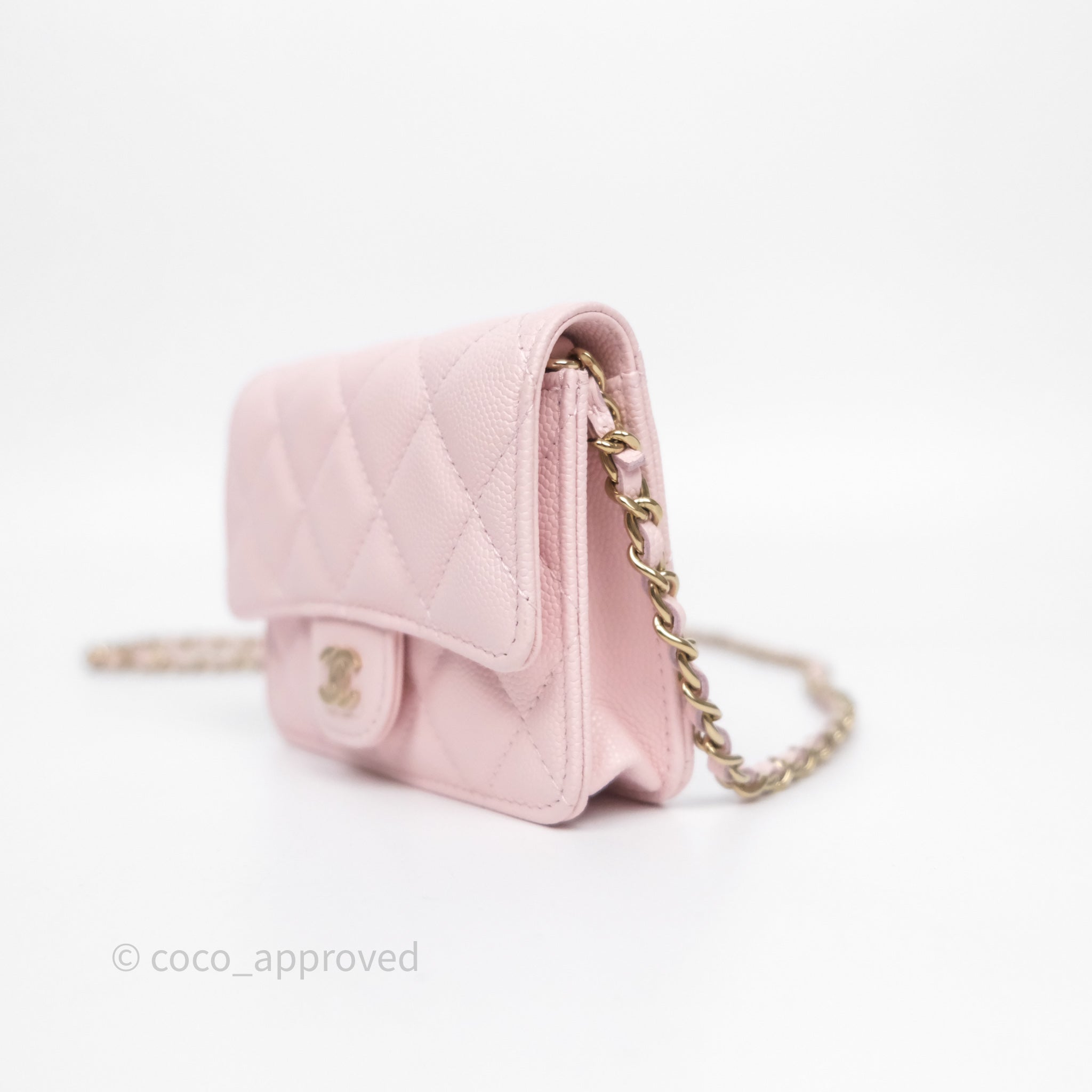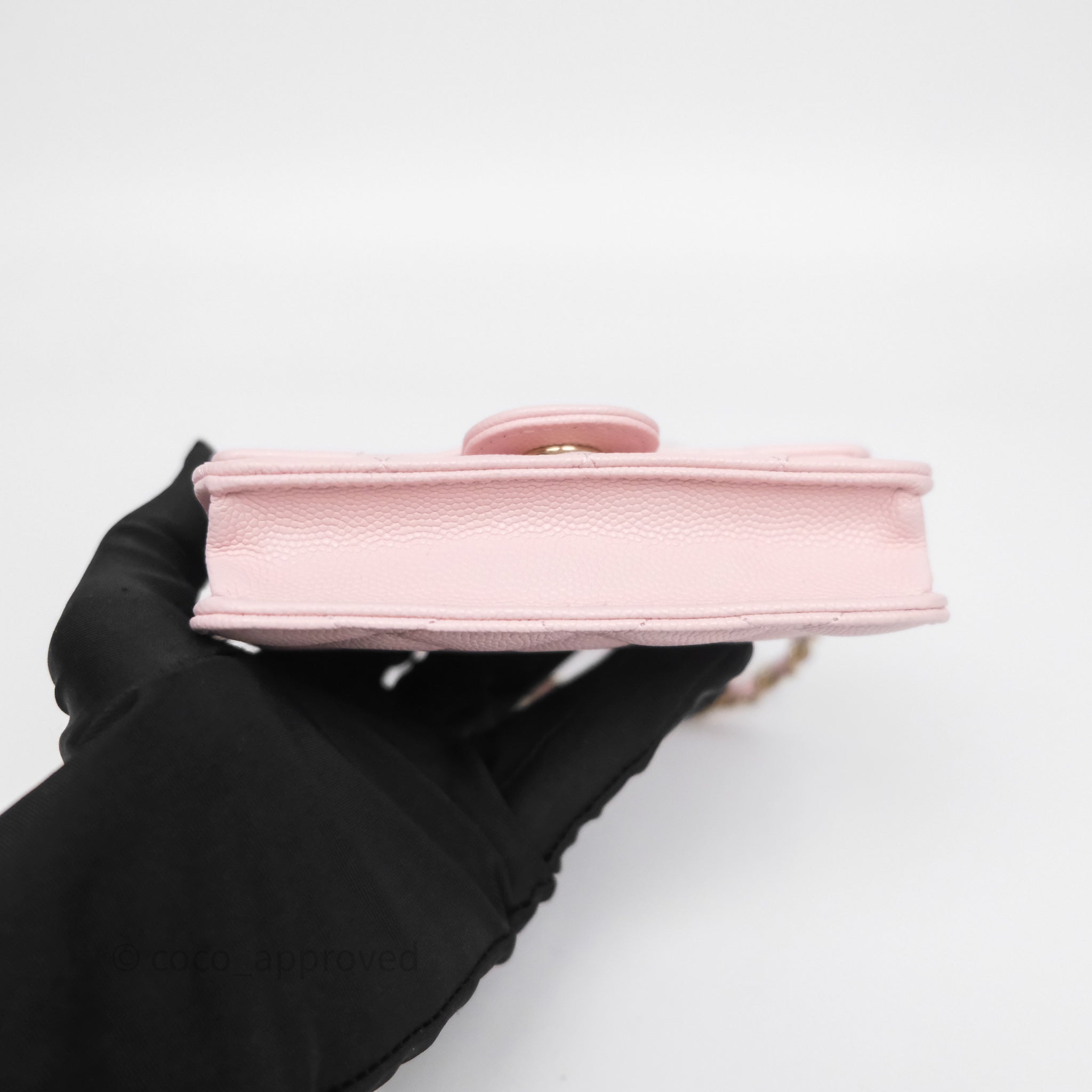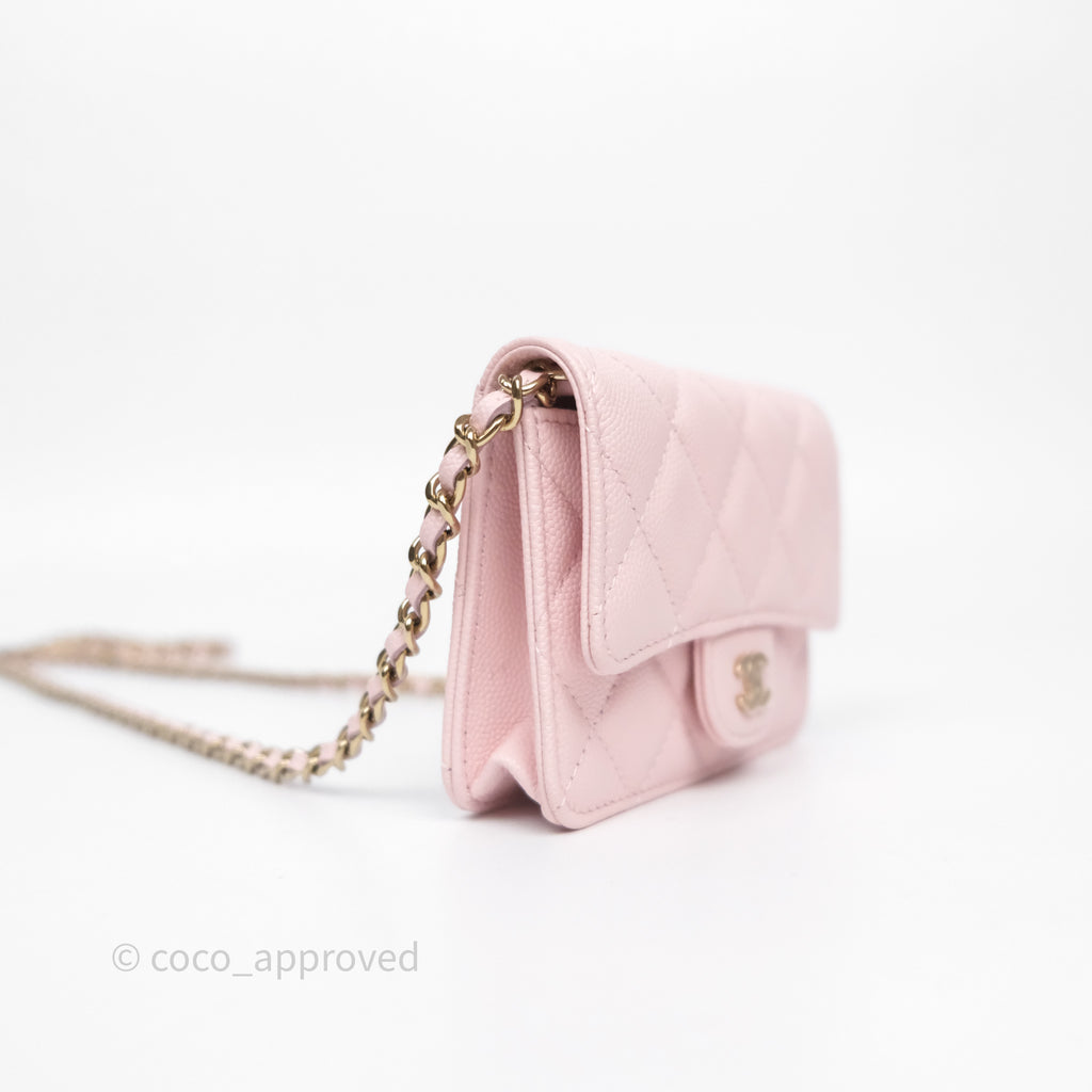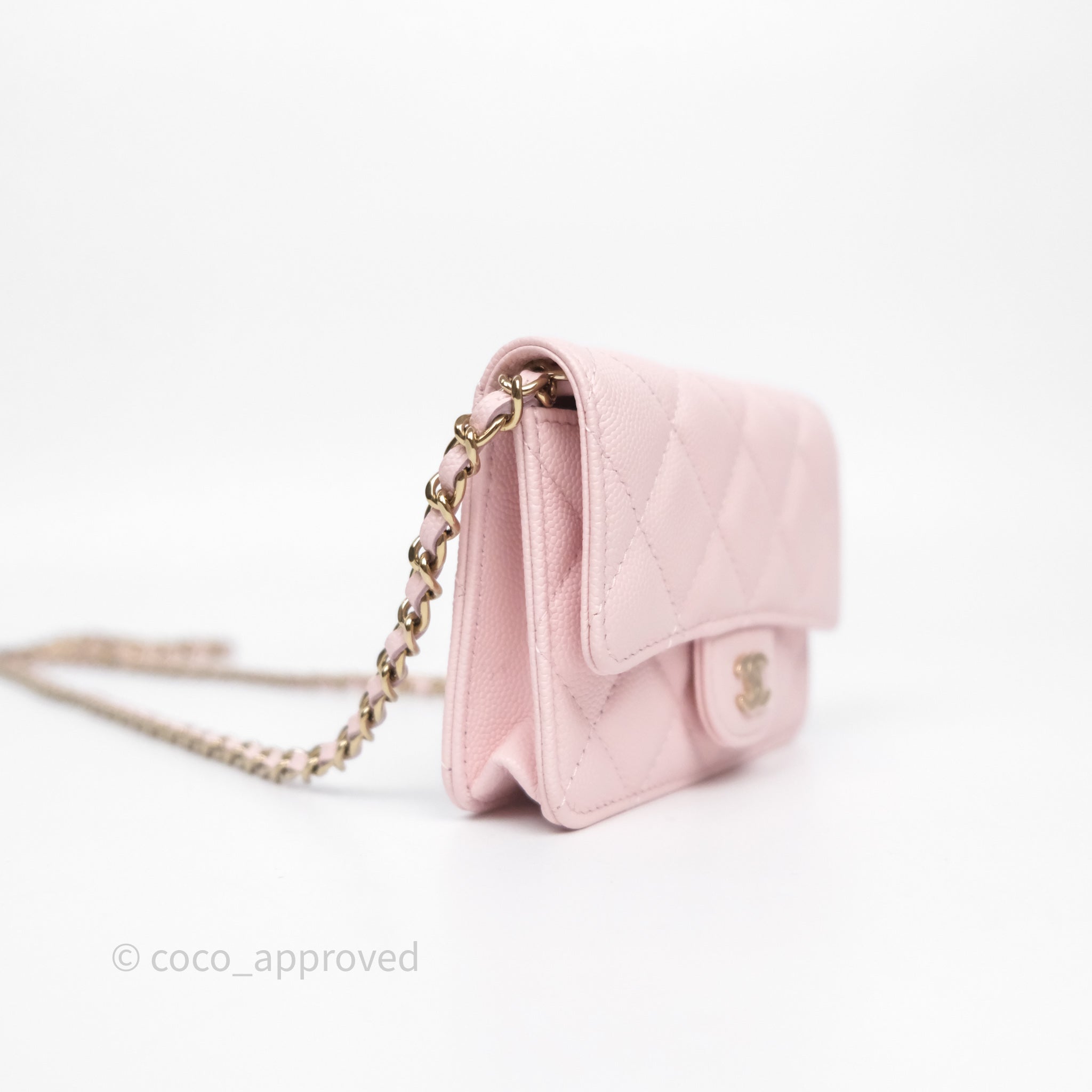 Chanel Mini Wallet With Chain Light Pink Caviar Gold Hardware