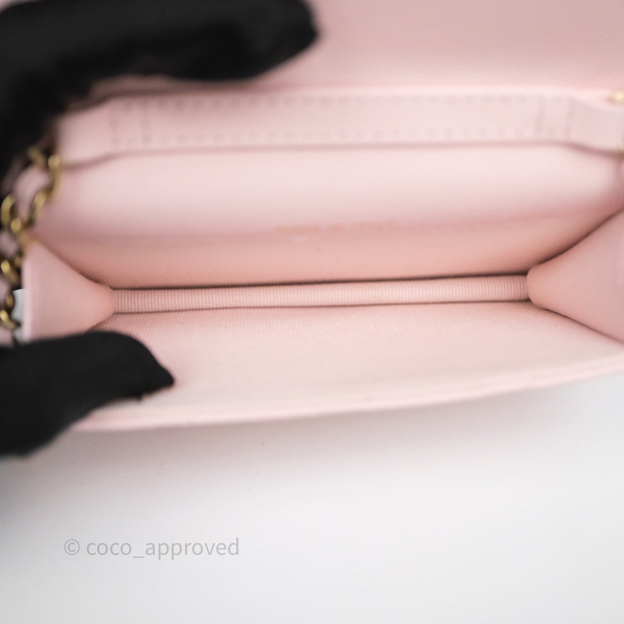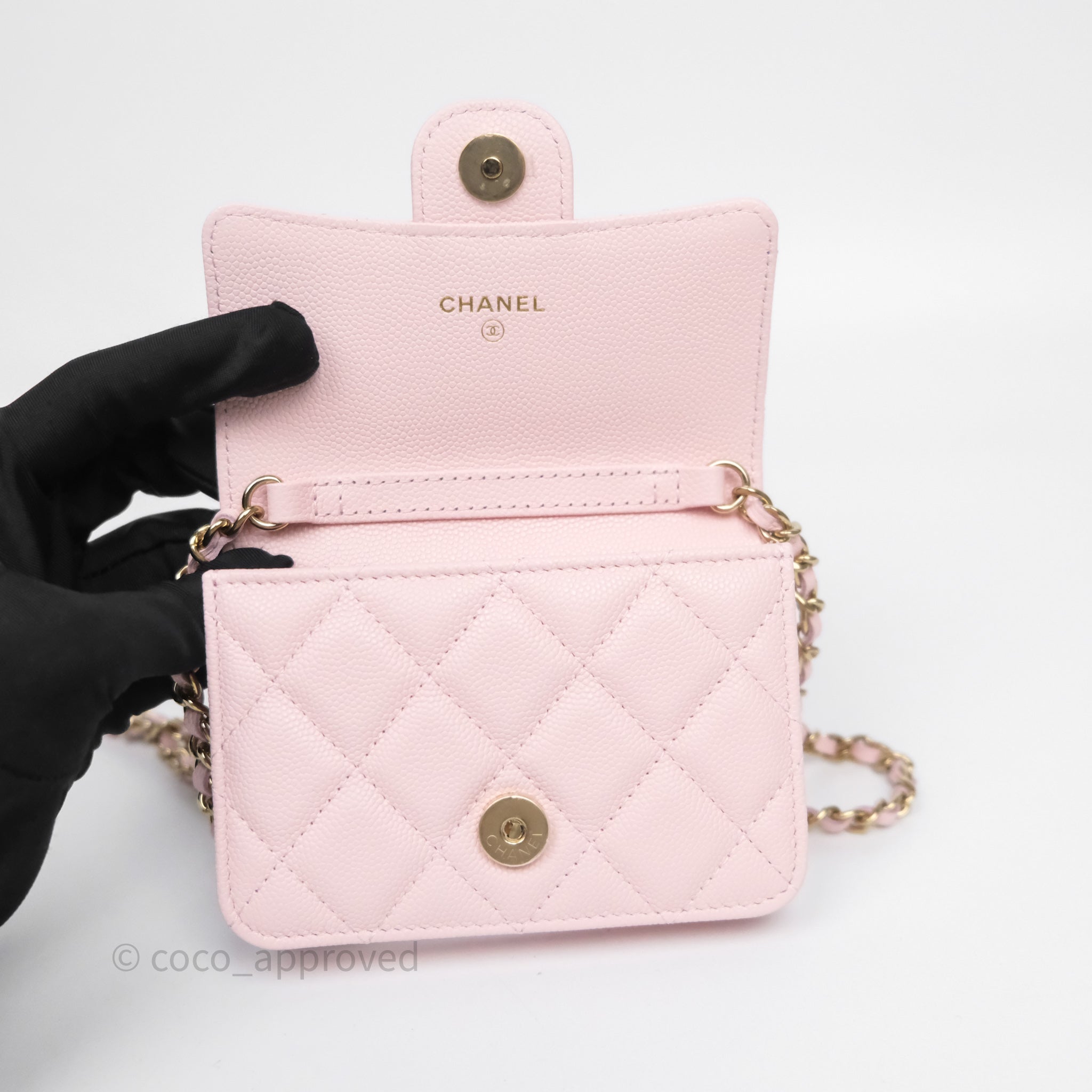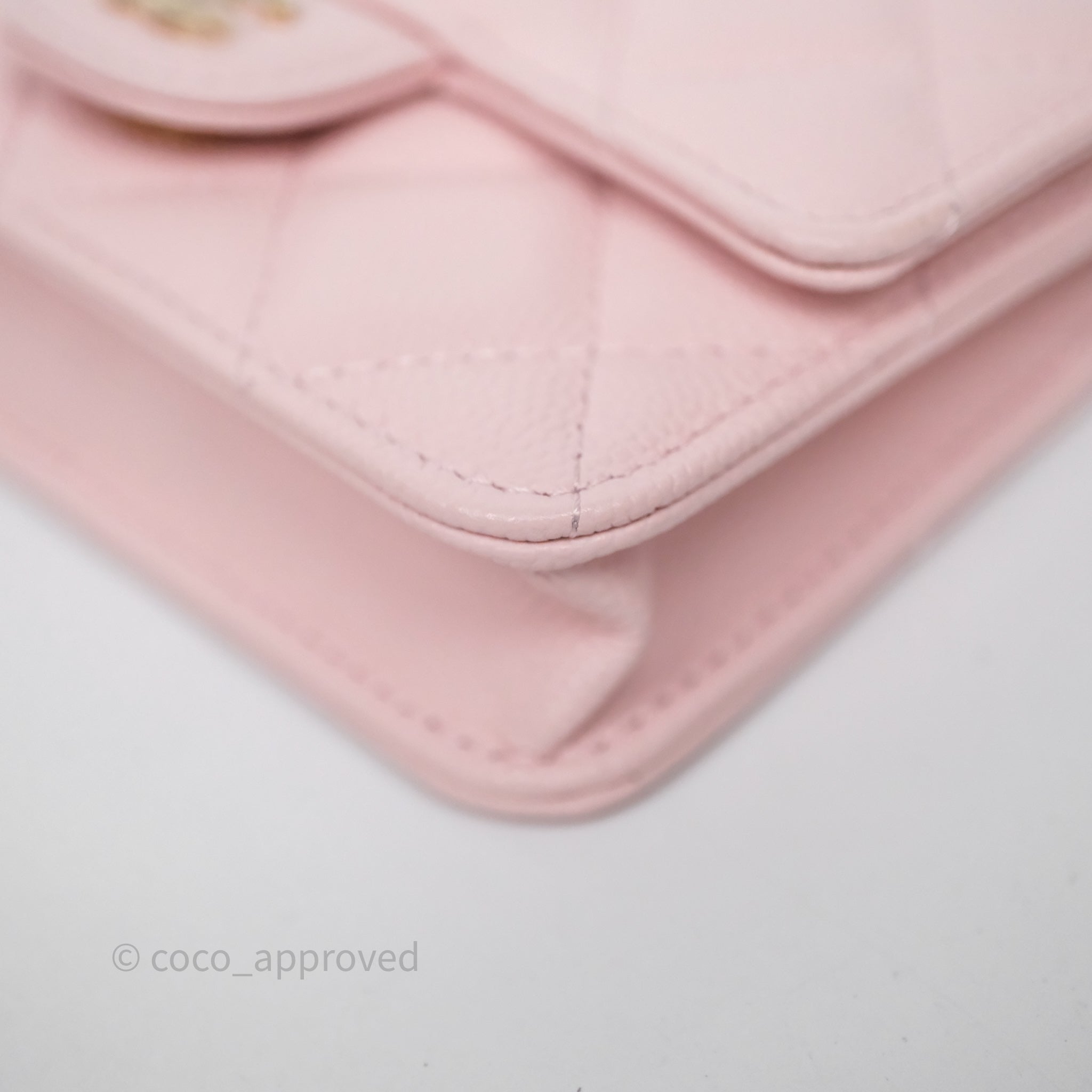Chanel Mini Wallet With Chain Light Pink Caviar Gold Hardware