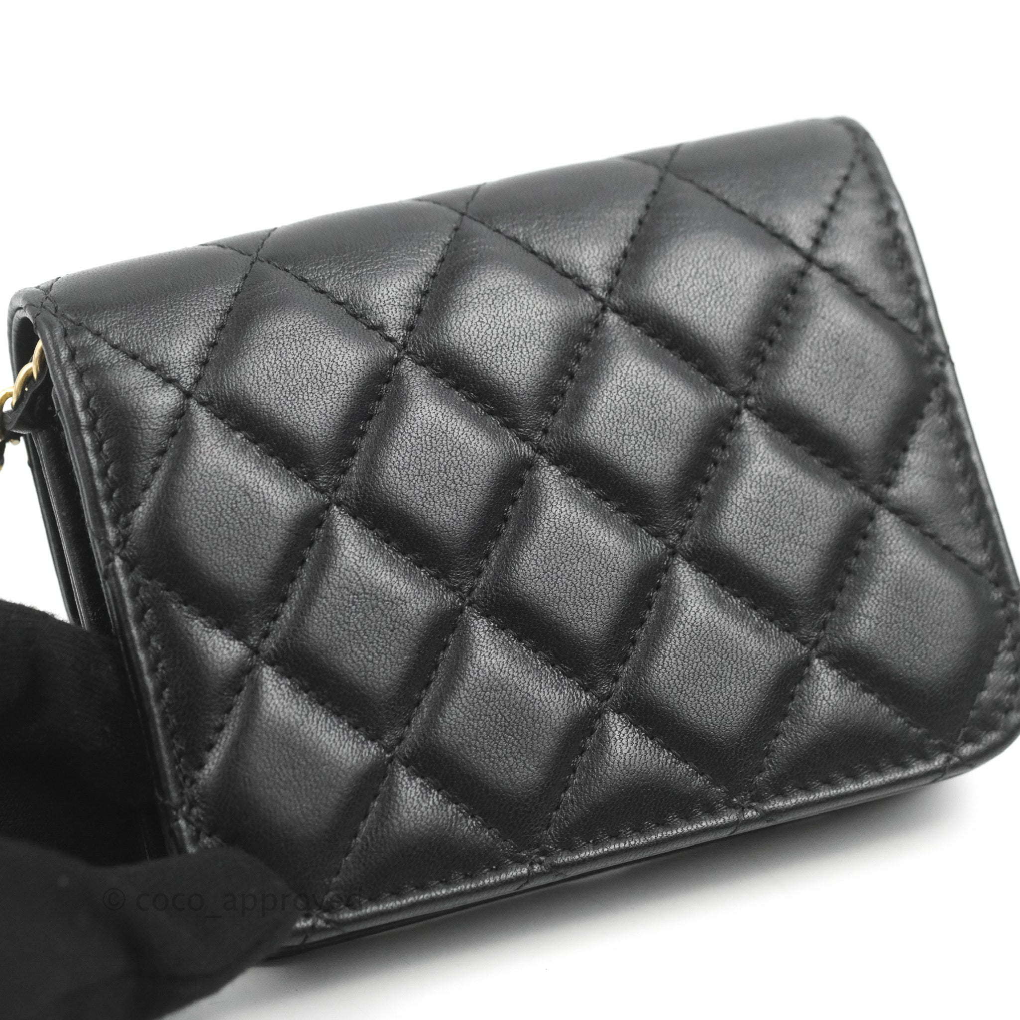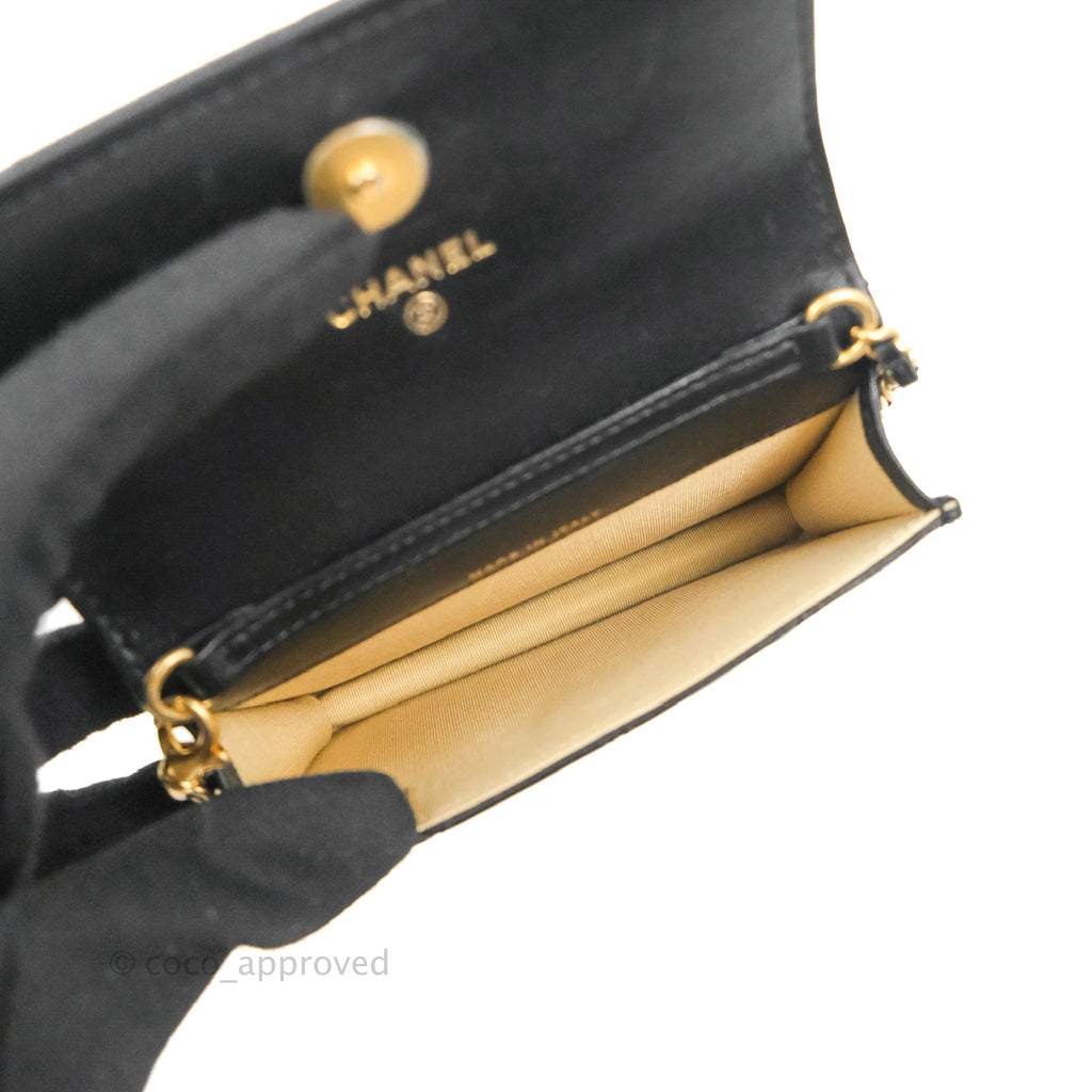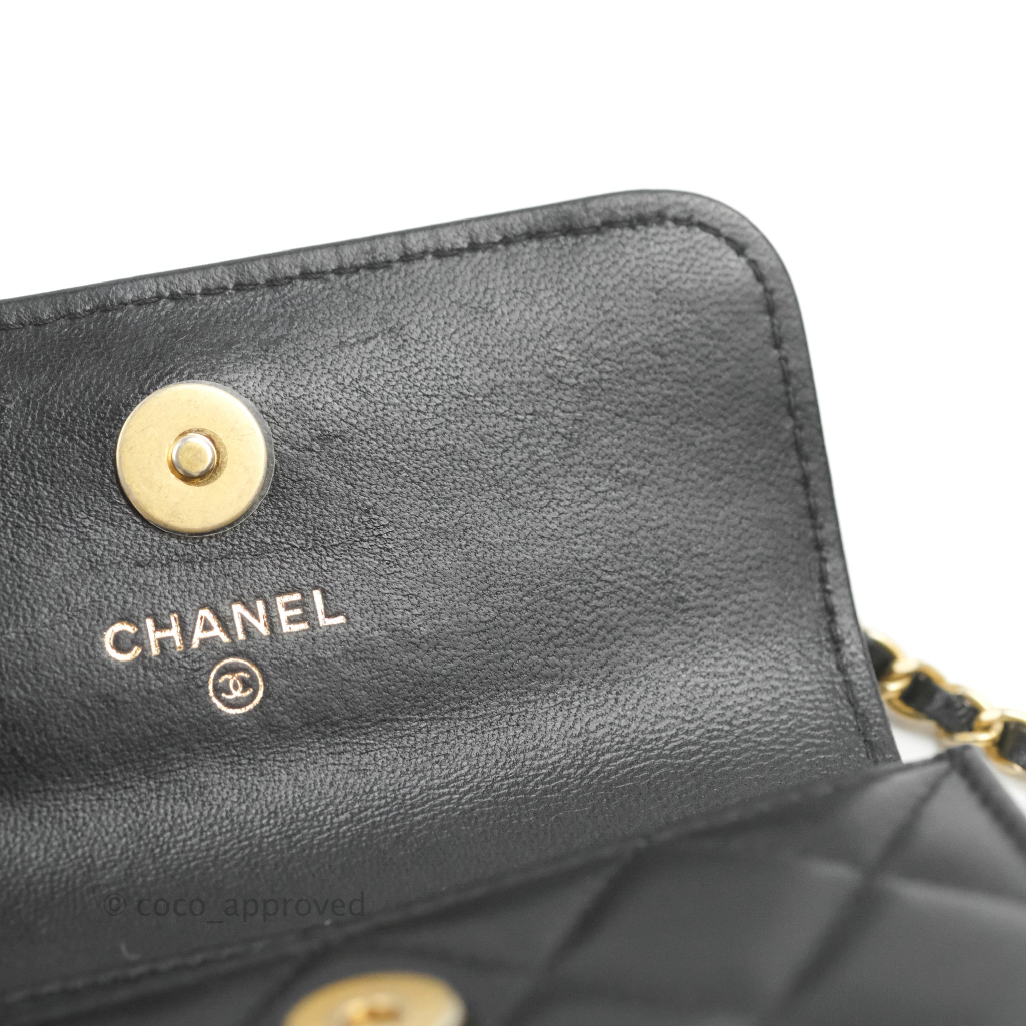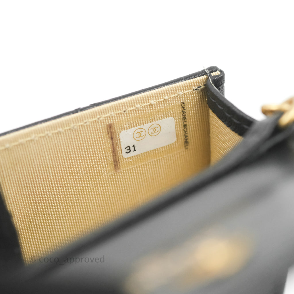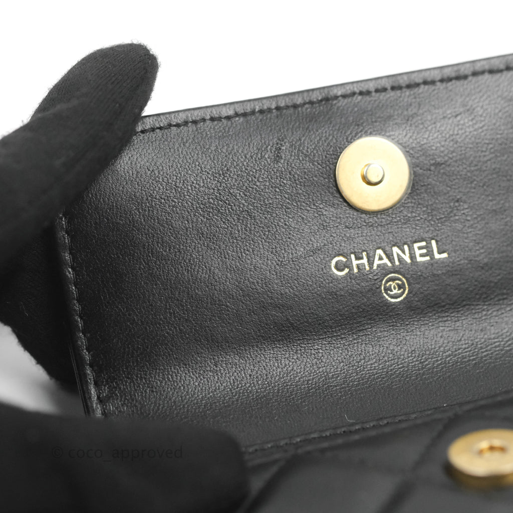 Chanel Pearl Crush Card Holder Black Lambskin Aged Gold Hardware
