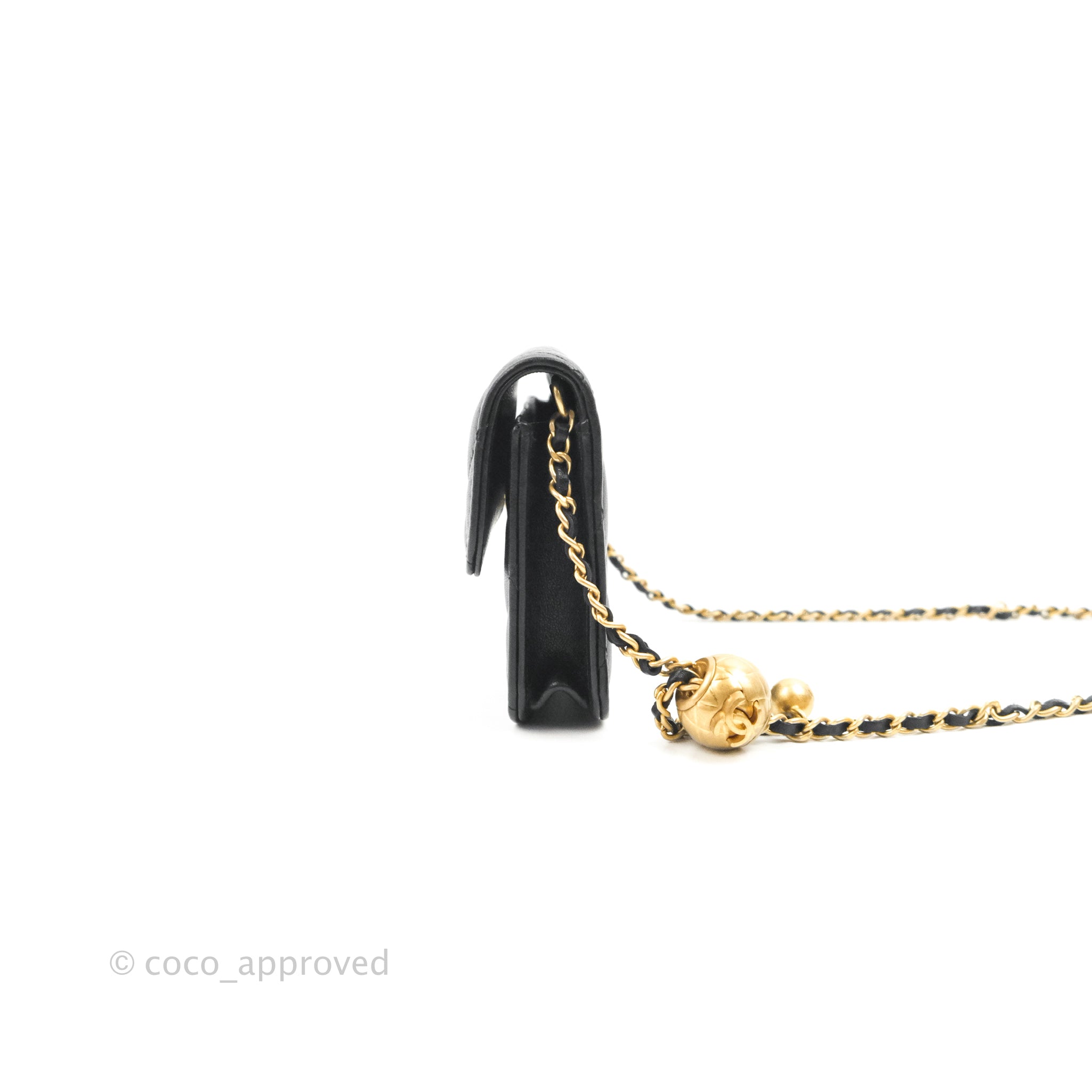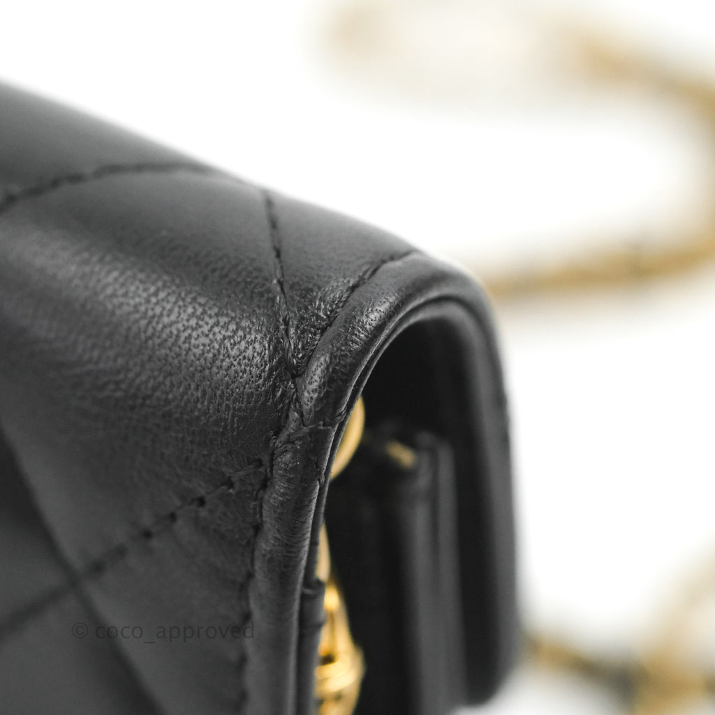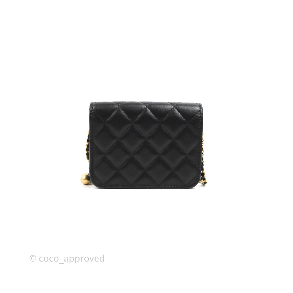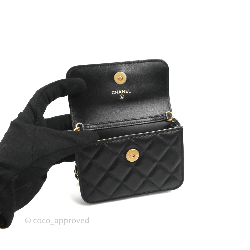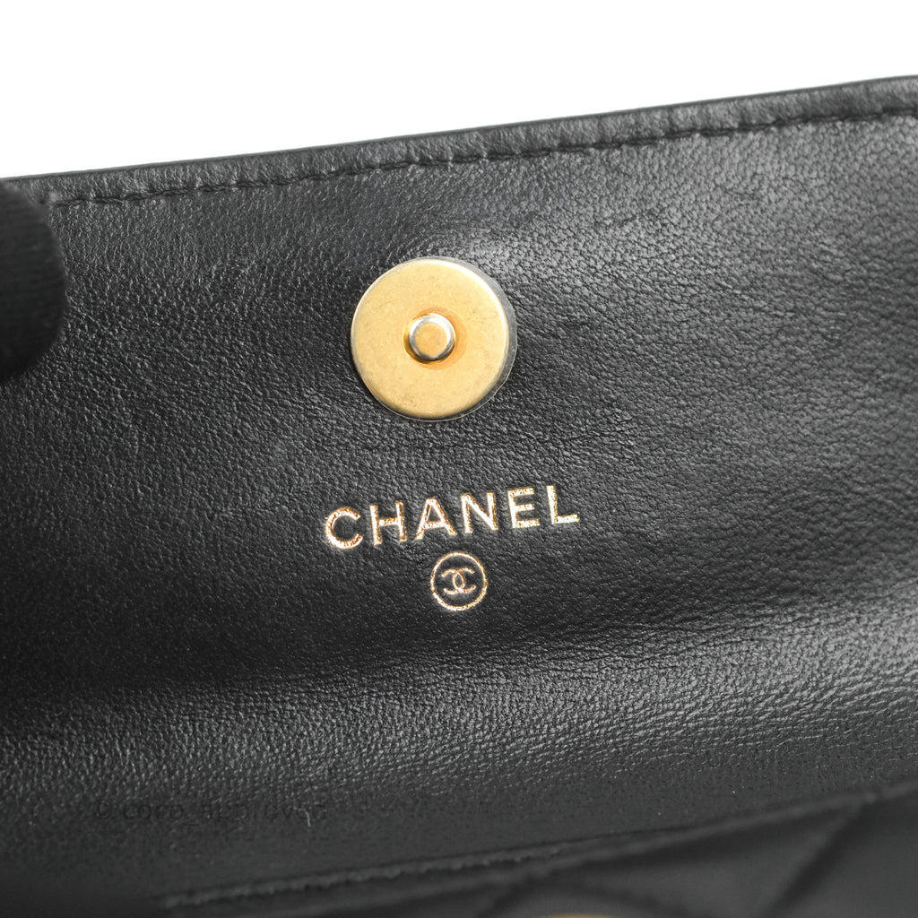 Chanel Pearl Crush Card Holder Black Lambskin Aged Gold Hardware