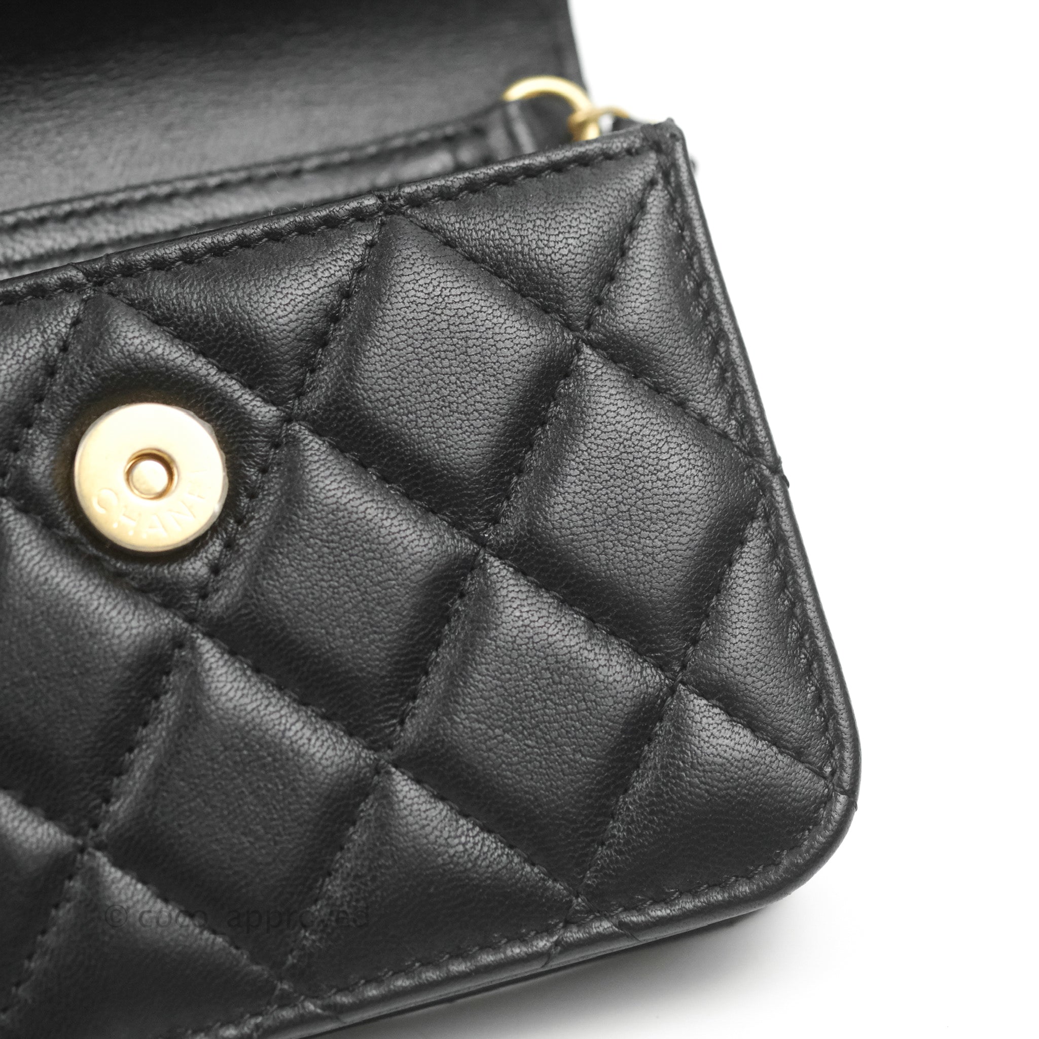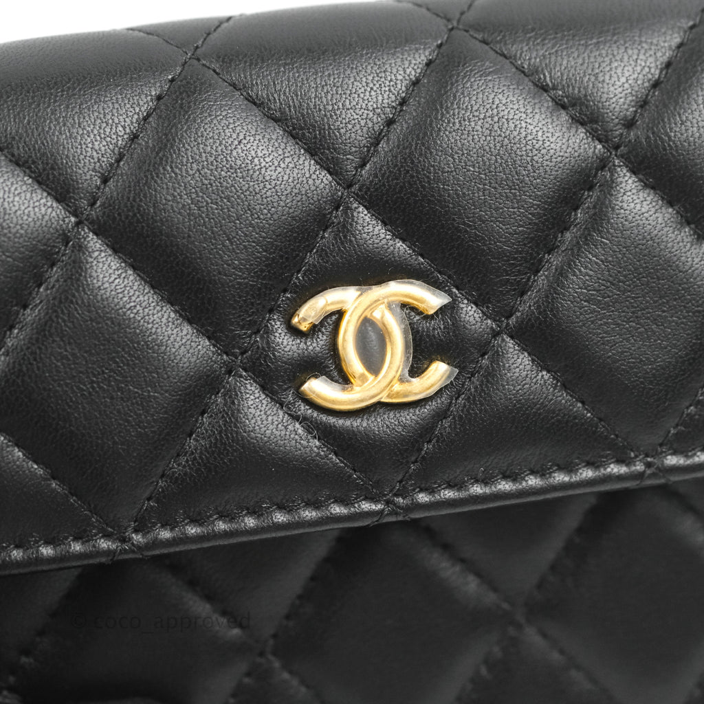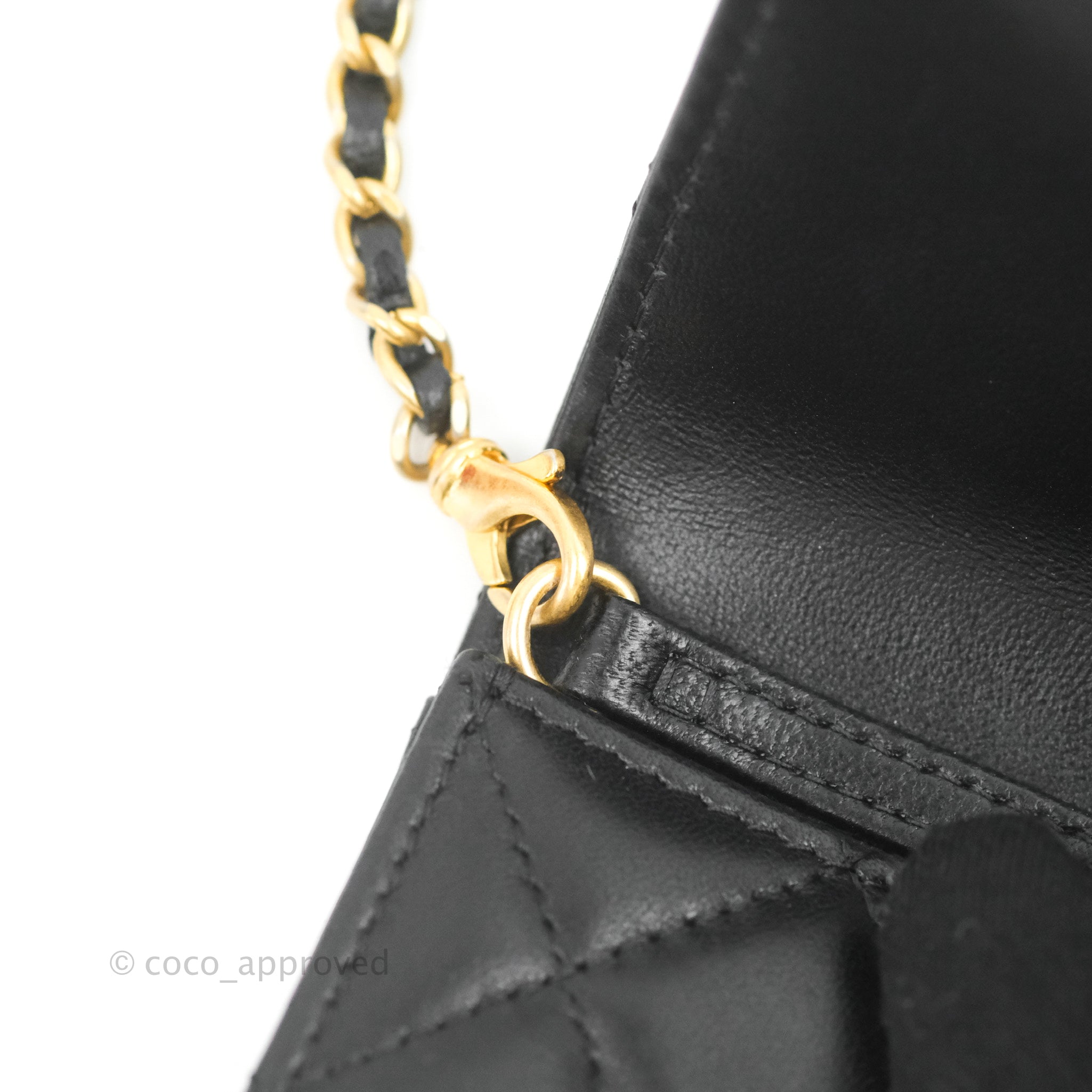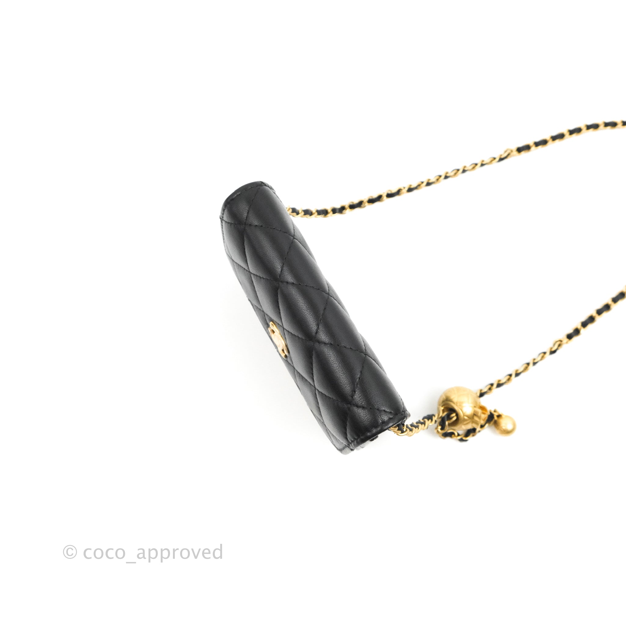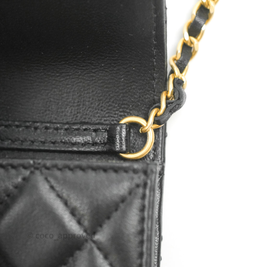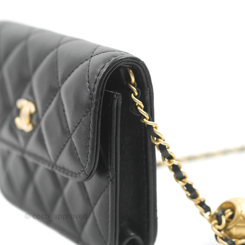 Chanel Pearl Crush Card Holder Black Lambskin Aged Gold Hardware