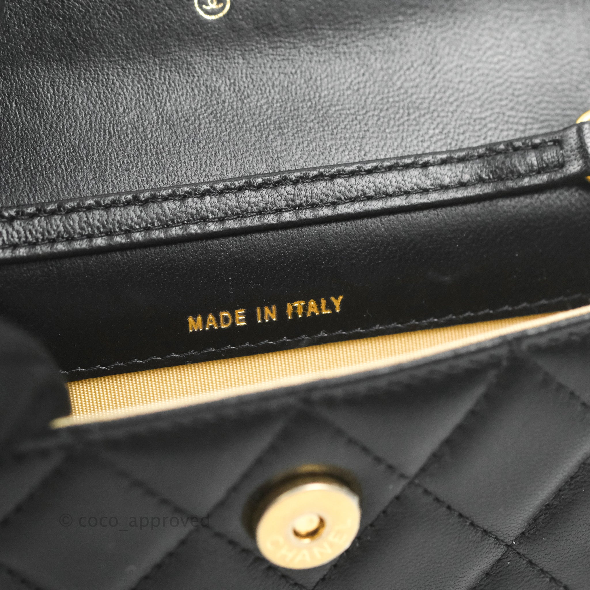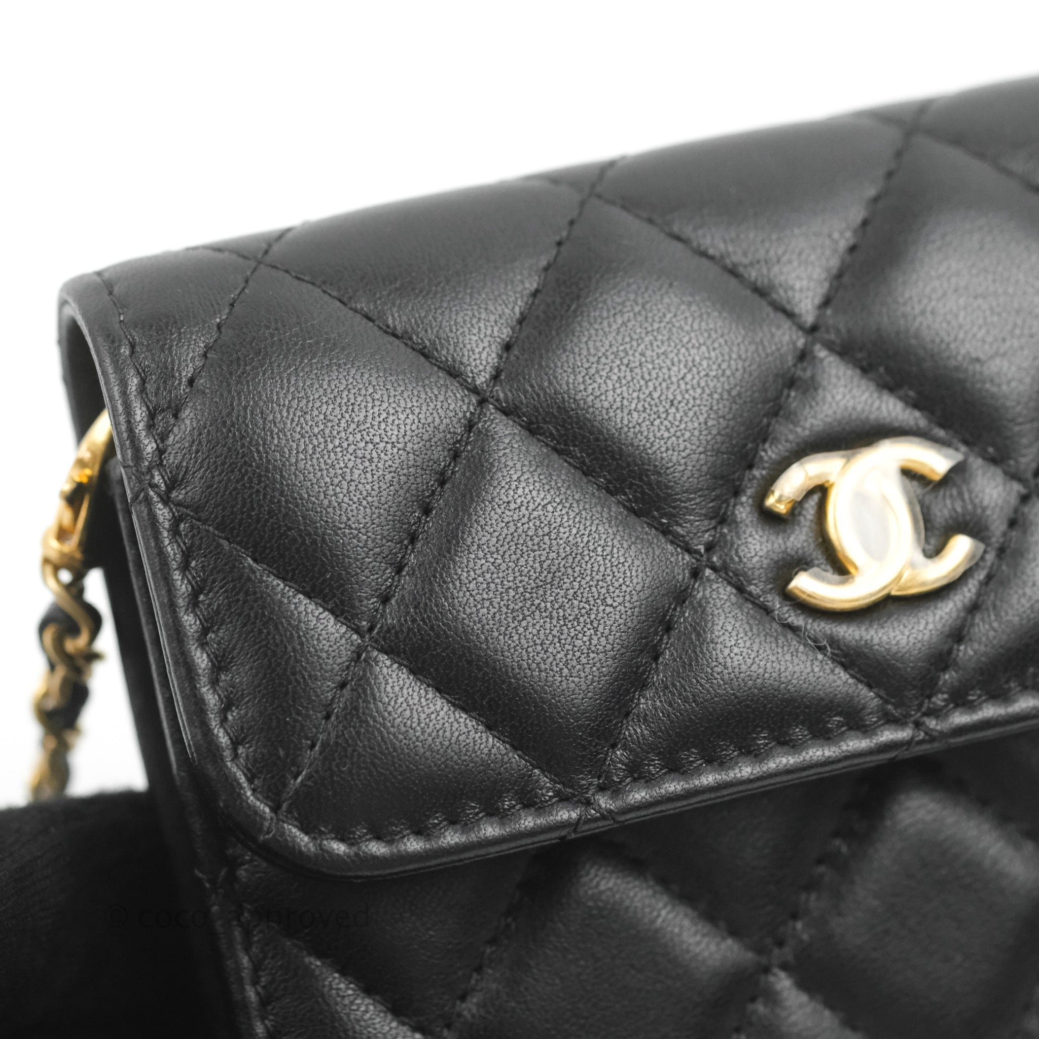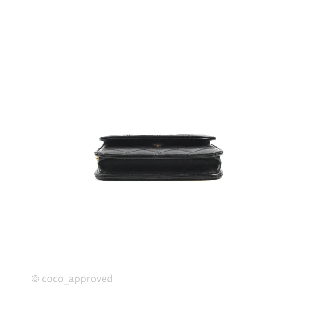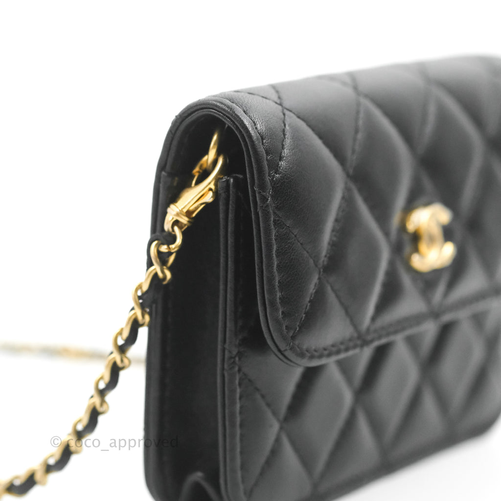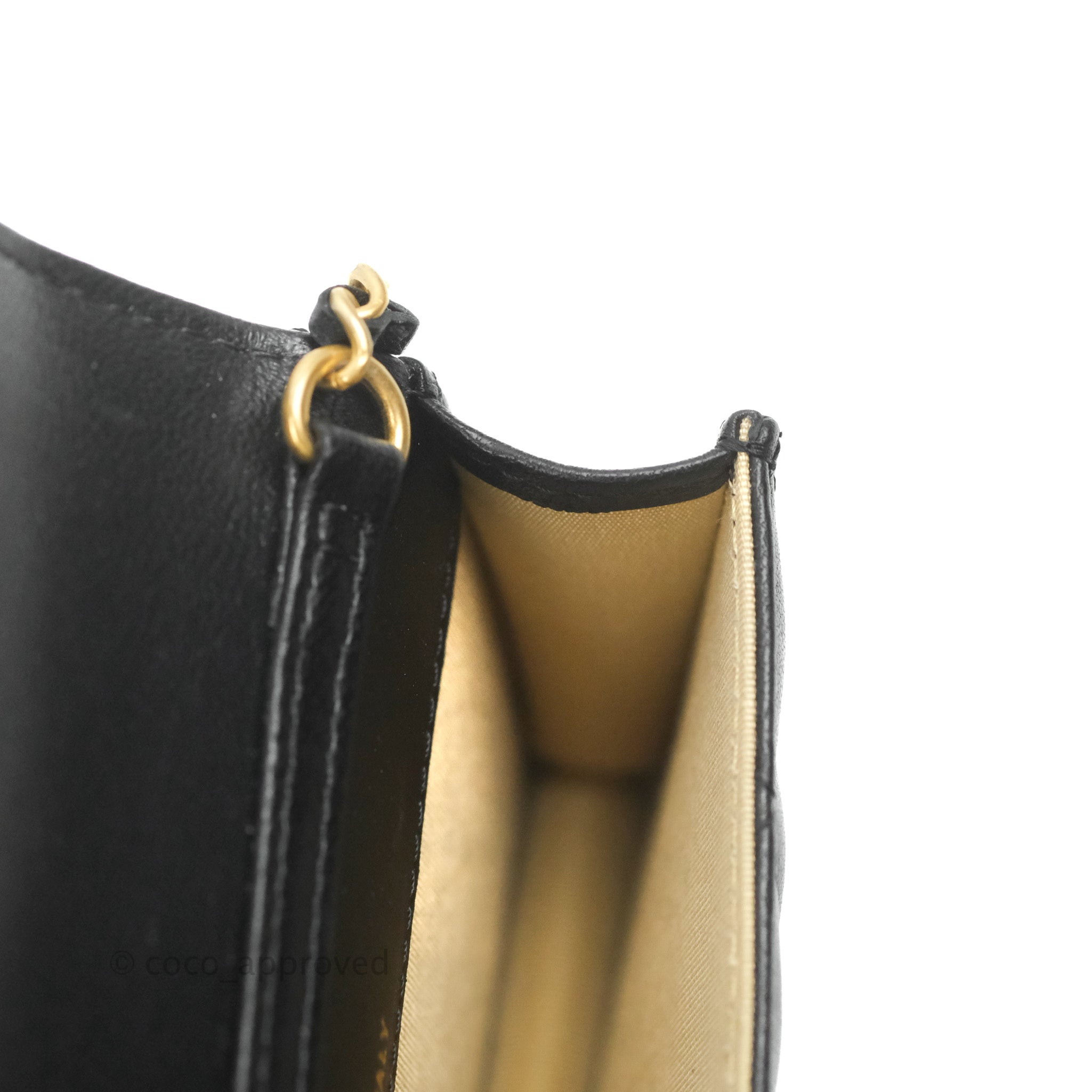 Chanel Pearl Crush Card Holder Black Lambskin Aged Gold Hardware
