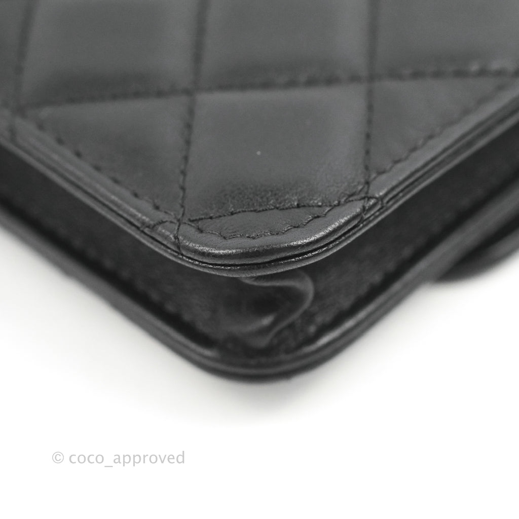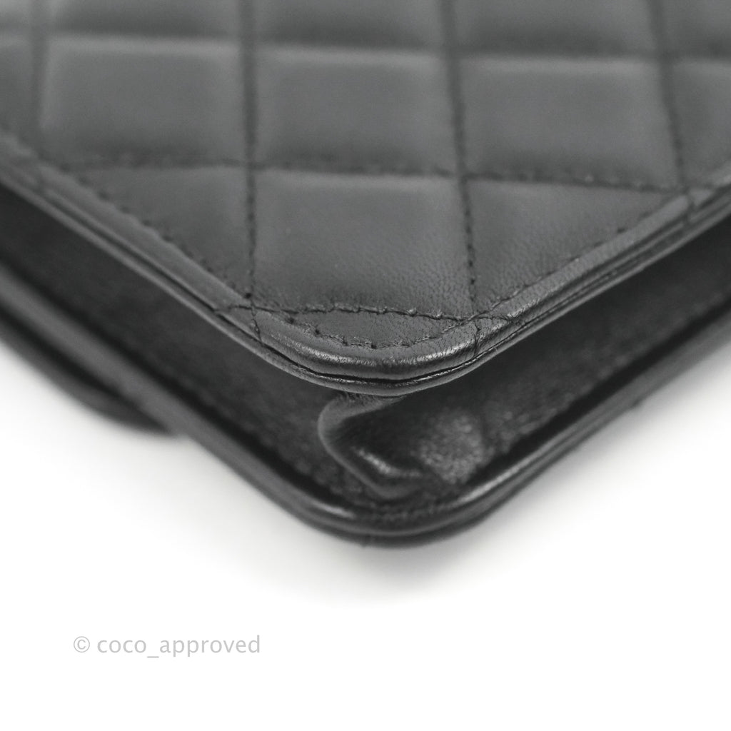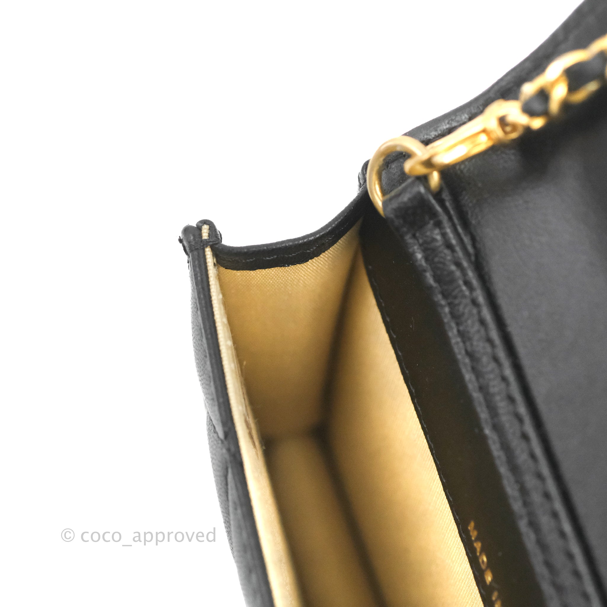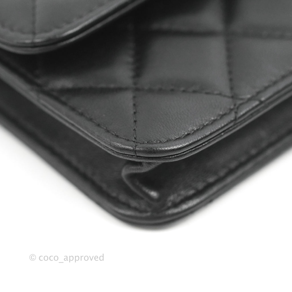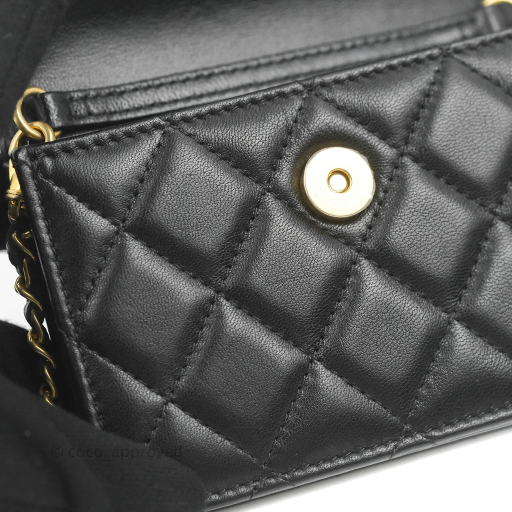 Chanel Pearl Crush Card Holder Black Lambskin Aged Gold Hardware