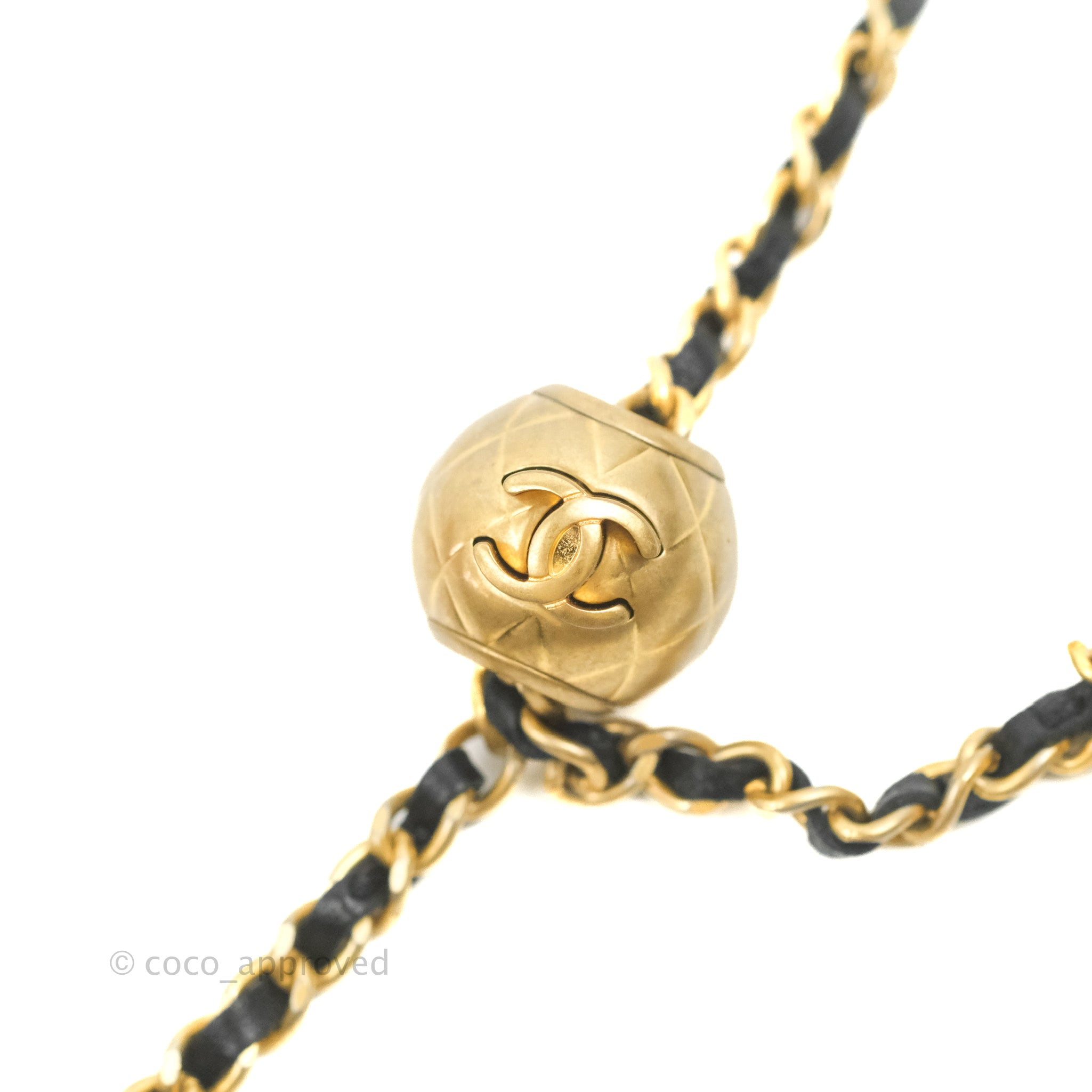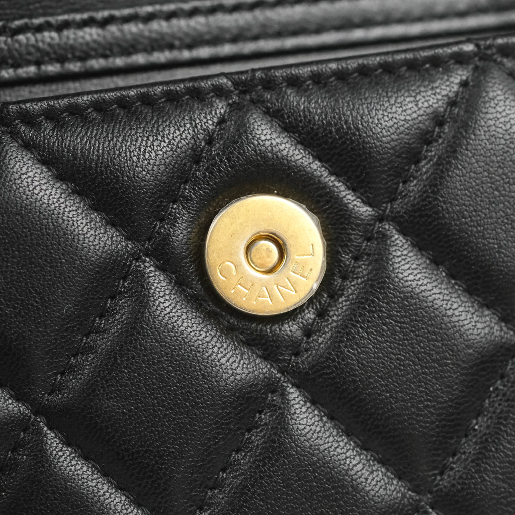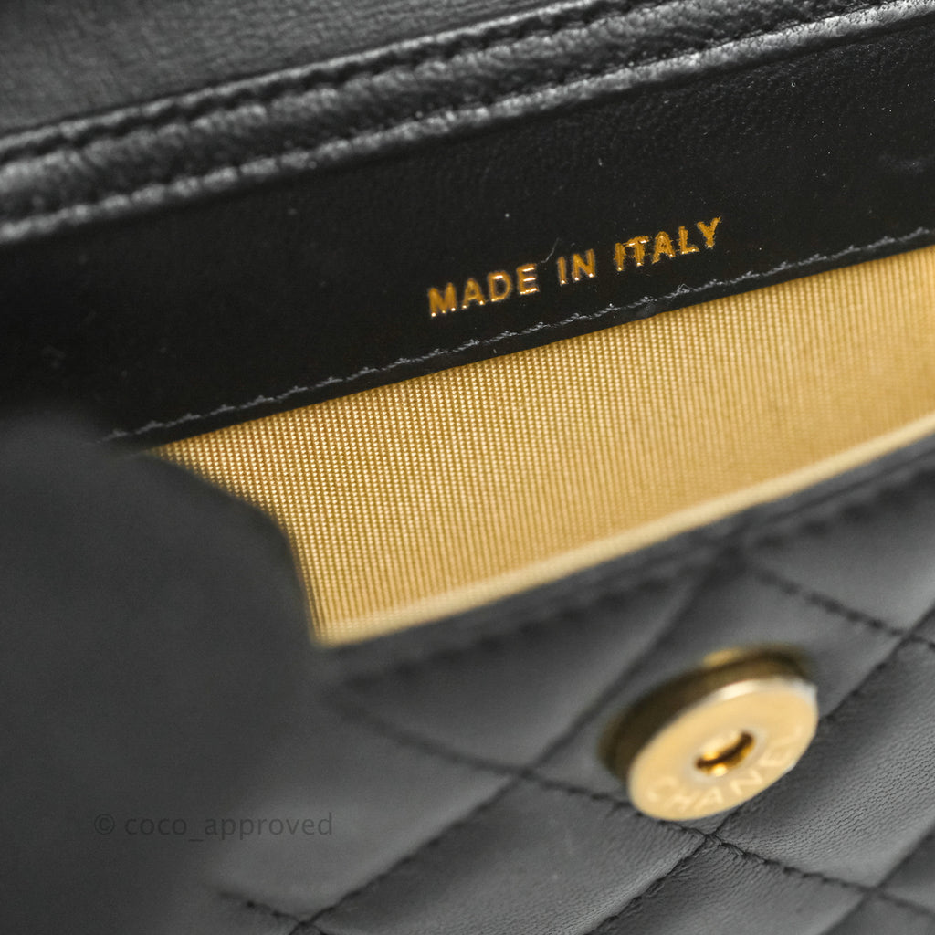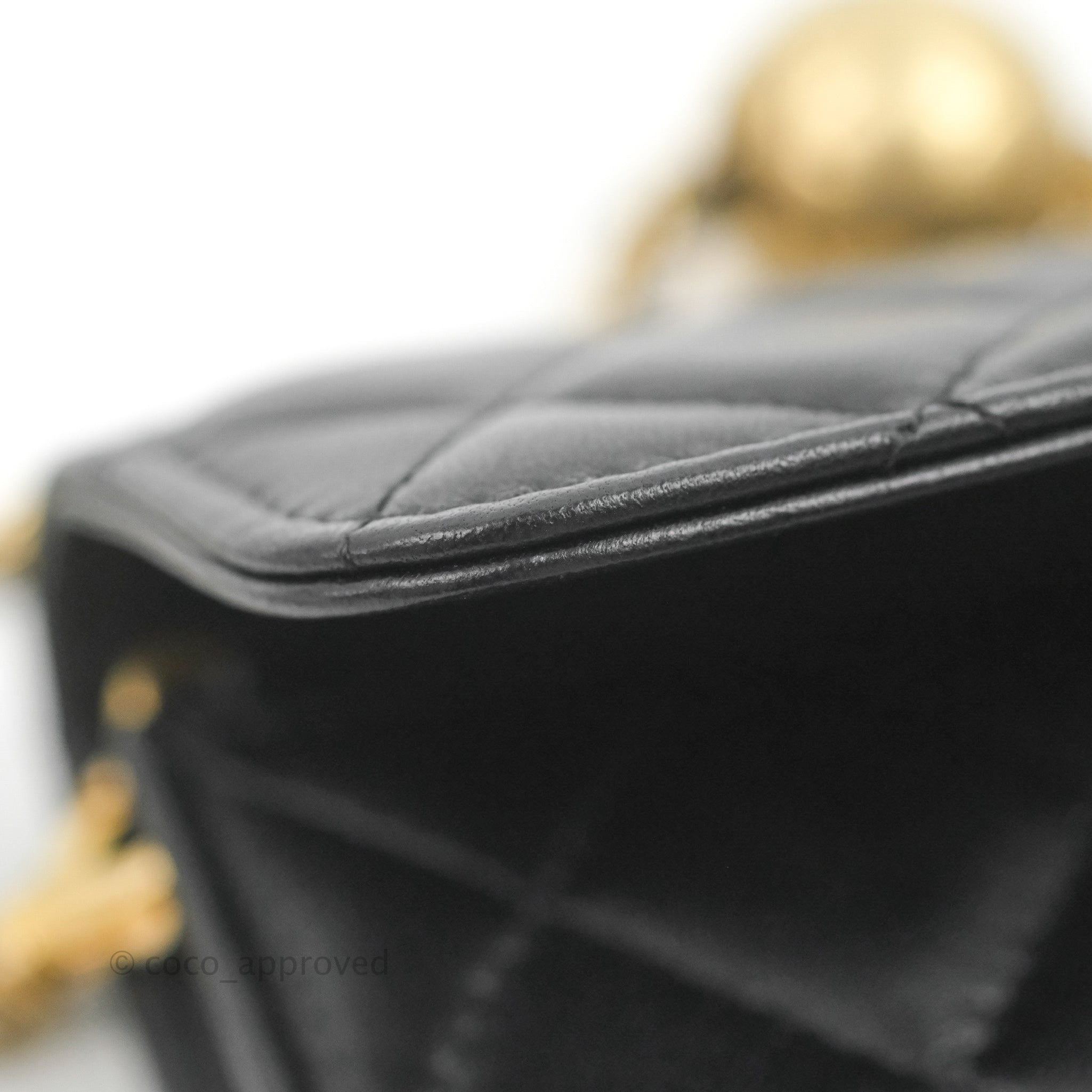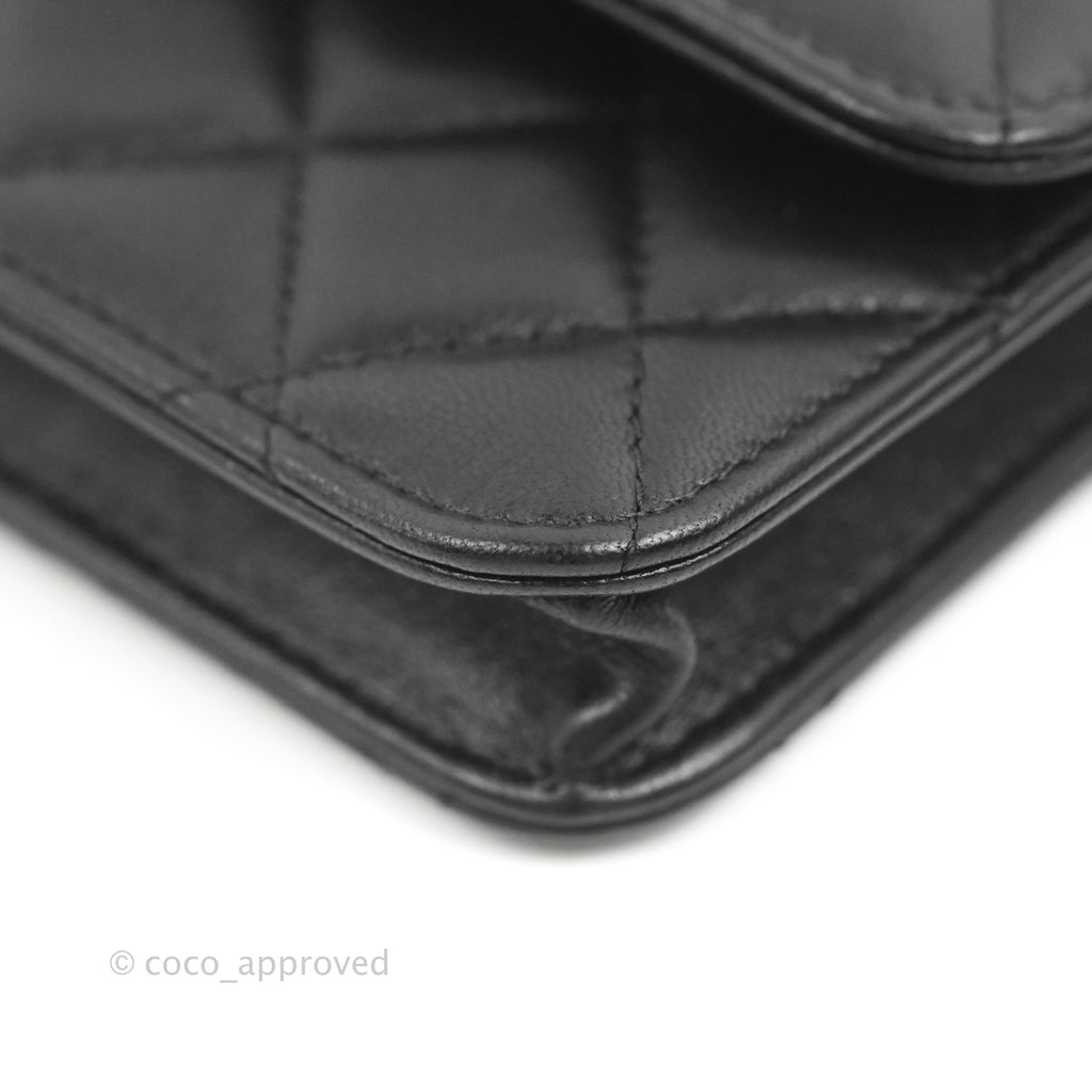 Chanel Pearl Crush Card Holder Black Lambskin Aged Gold Hardware
