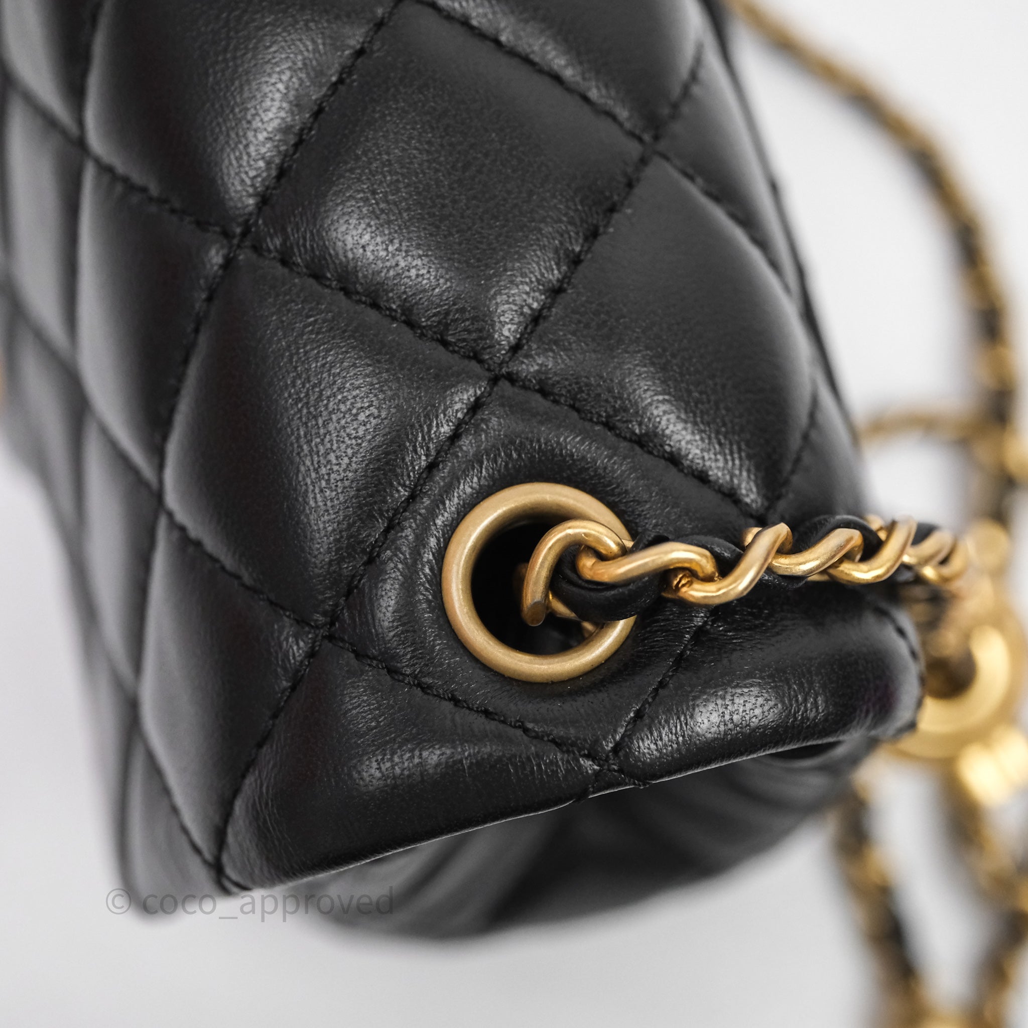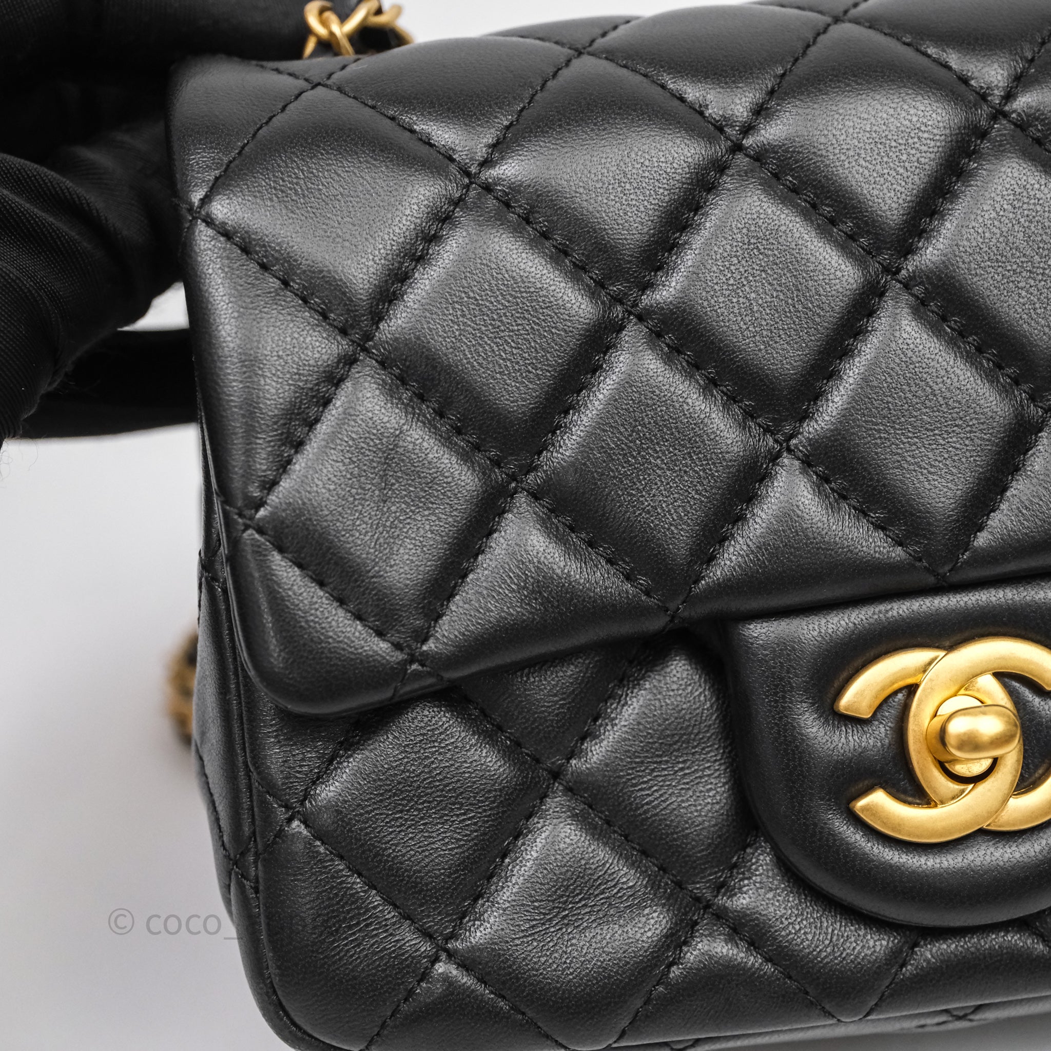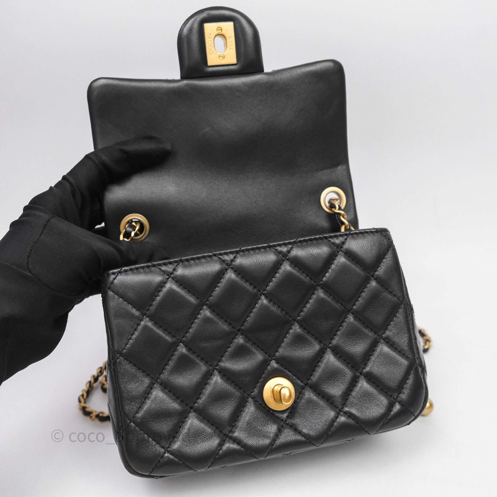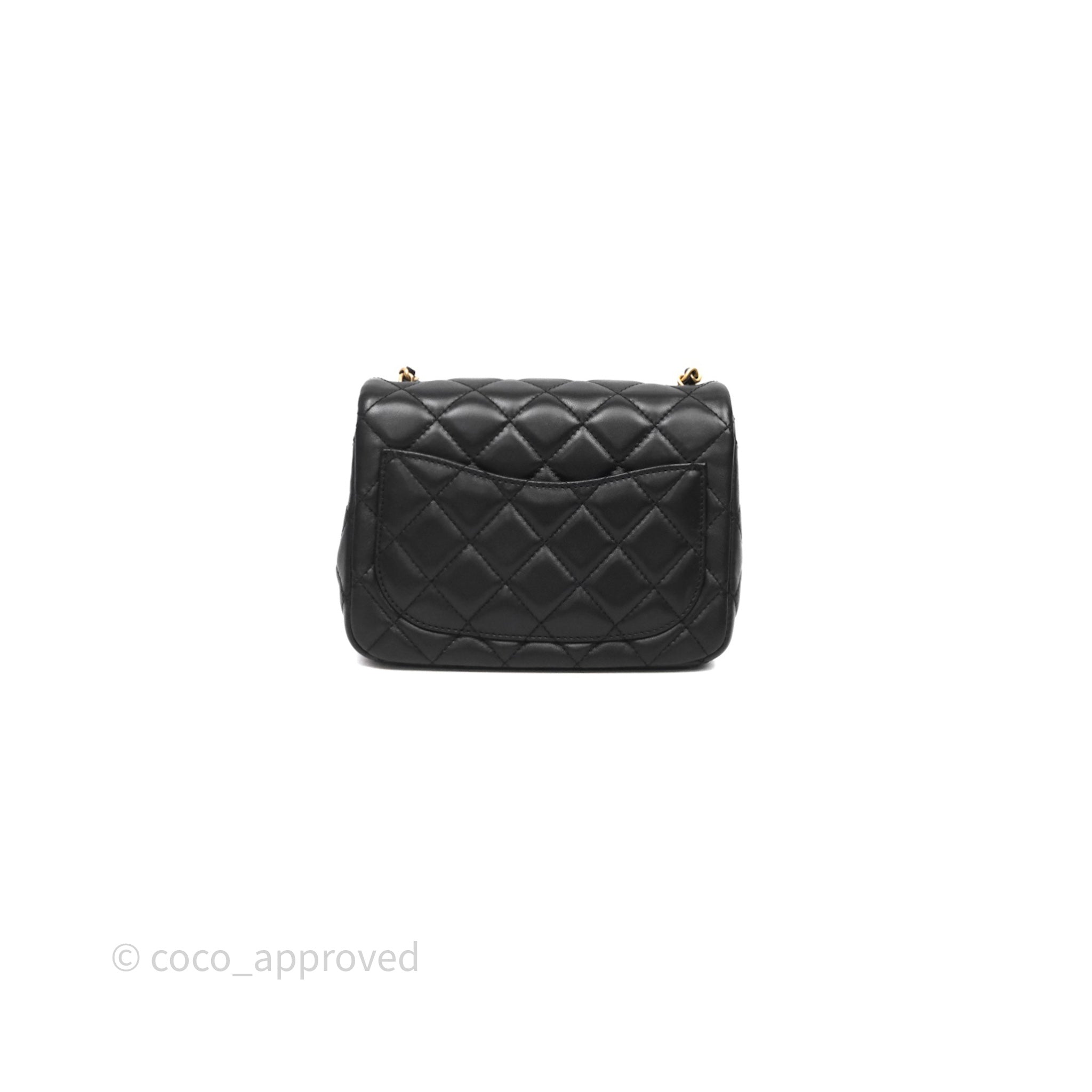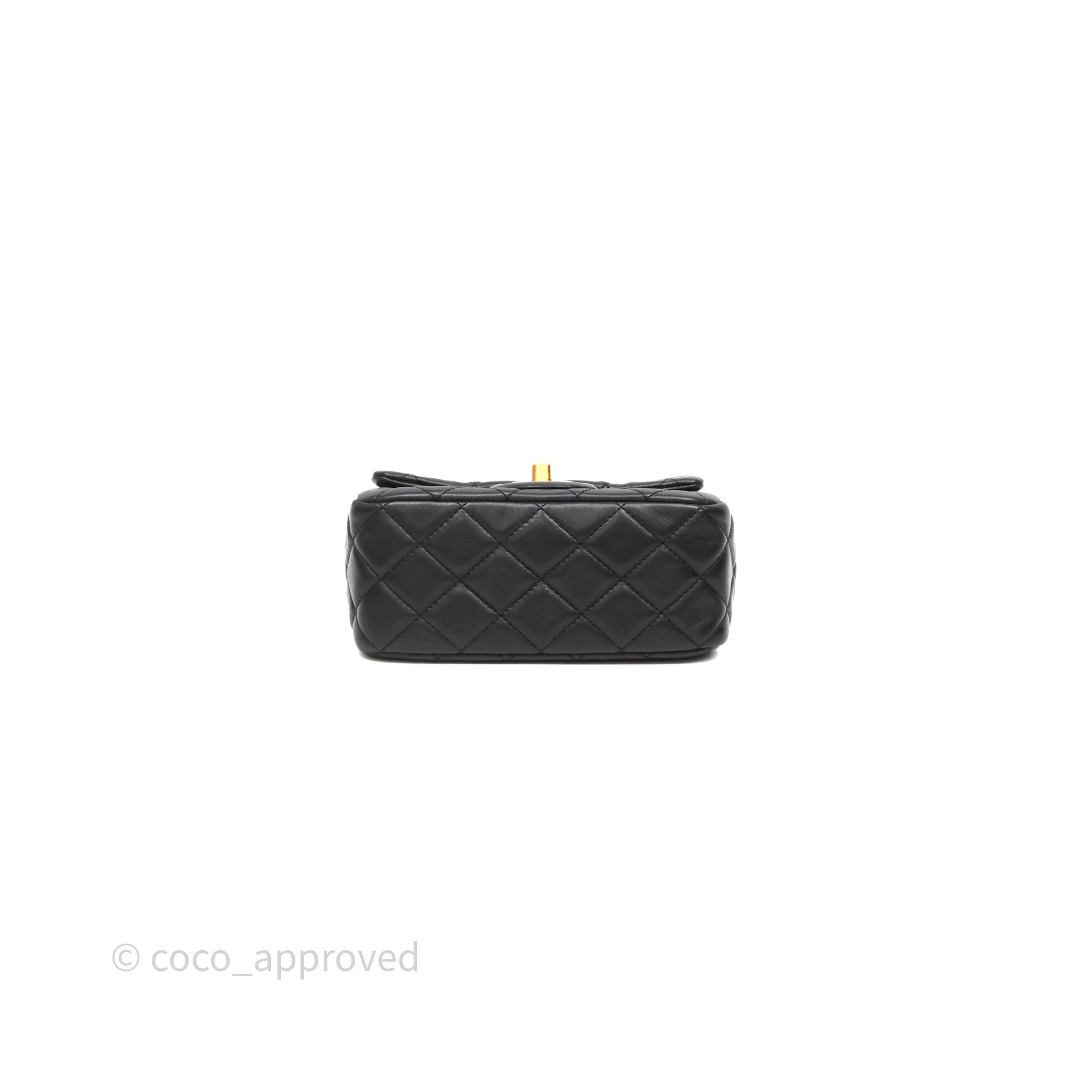 Chanel Pearl Crush Mini Square Quilted Black Lambskin Aged Gold Hardware