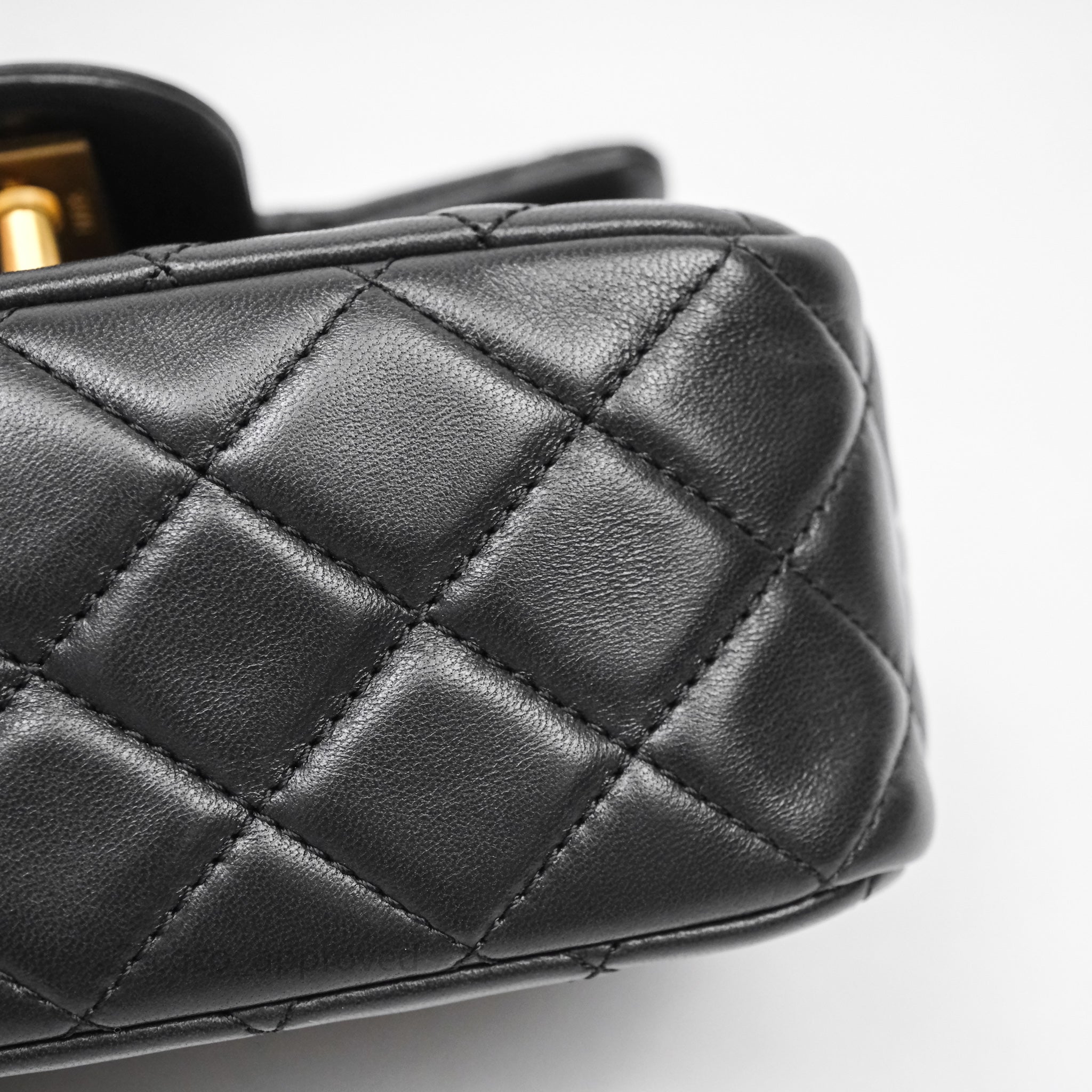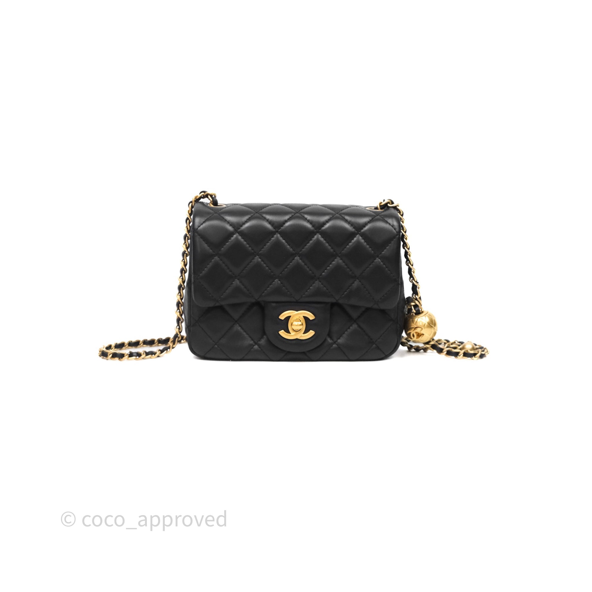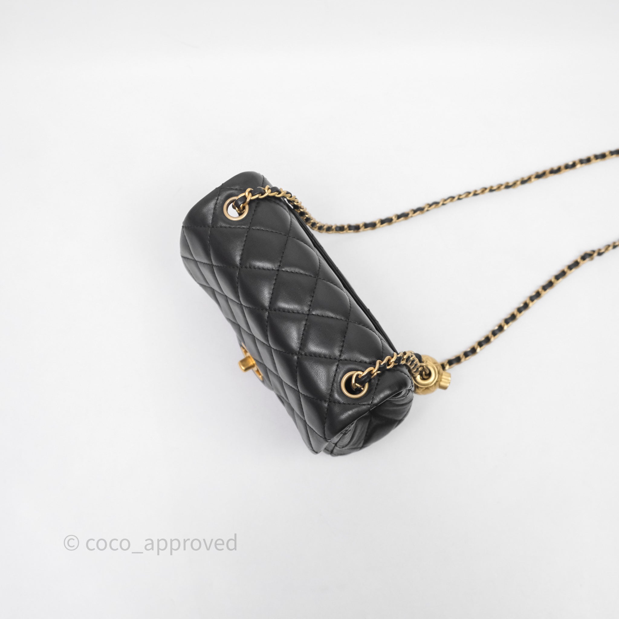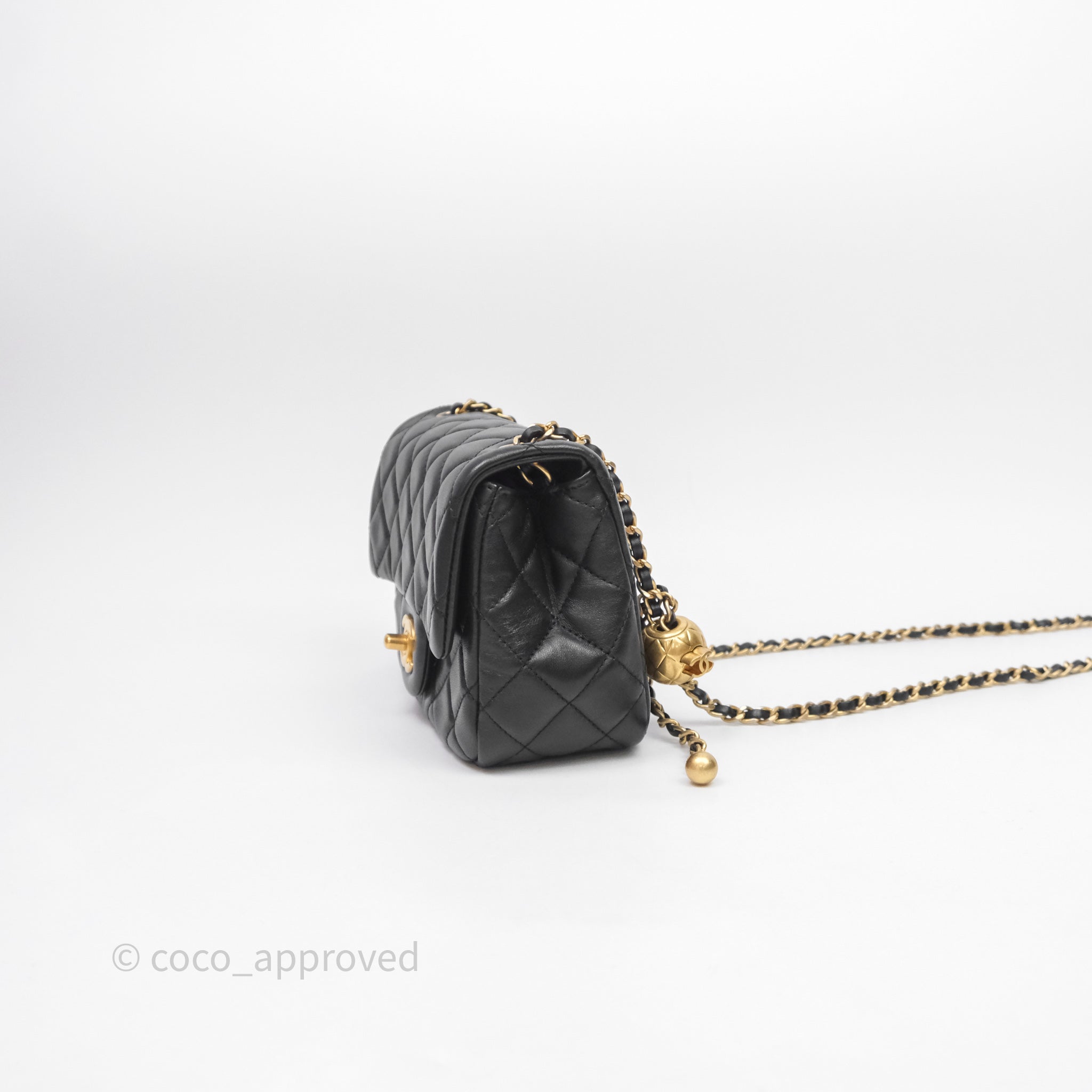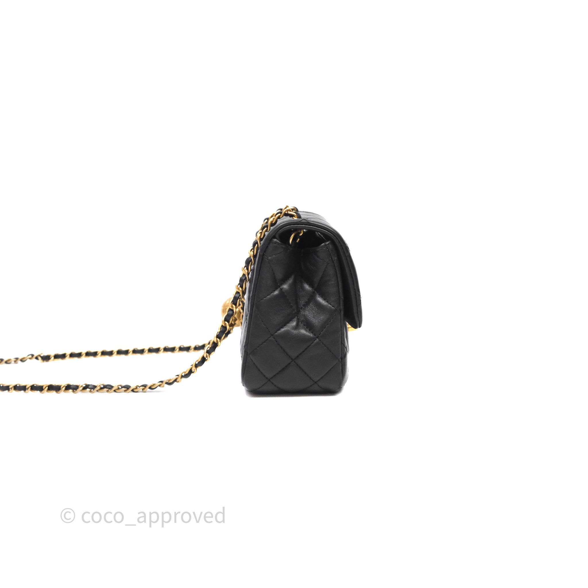 Chanel Pearl Crush Mini Square Quilted Black Lambskin Aged Gold Hardware