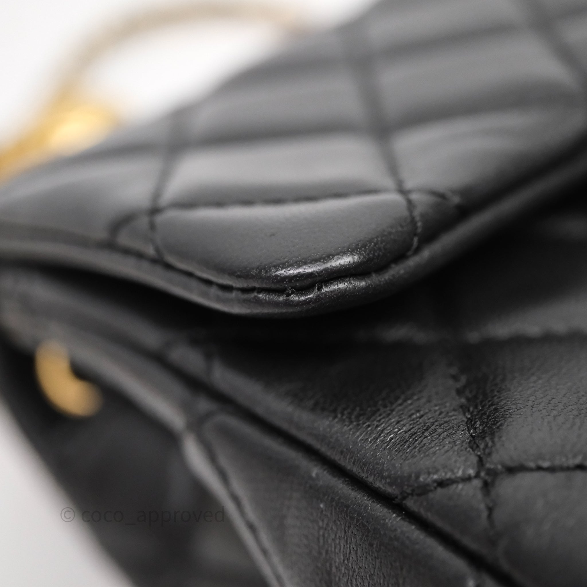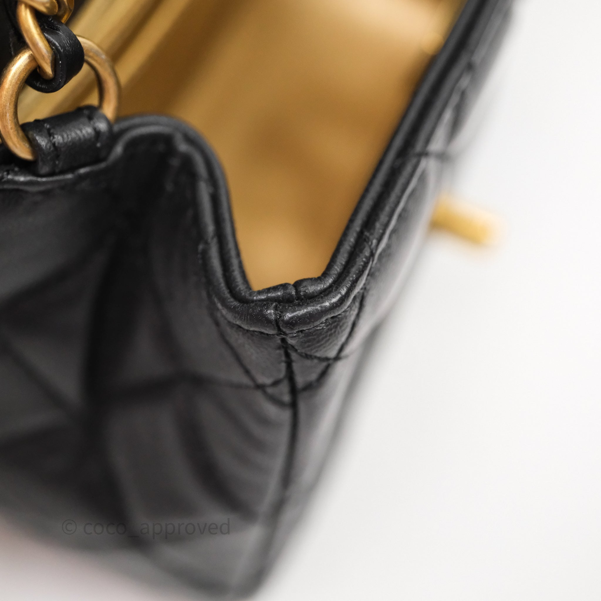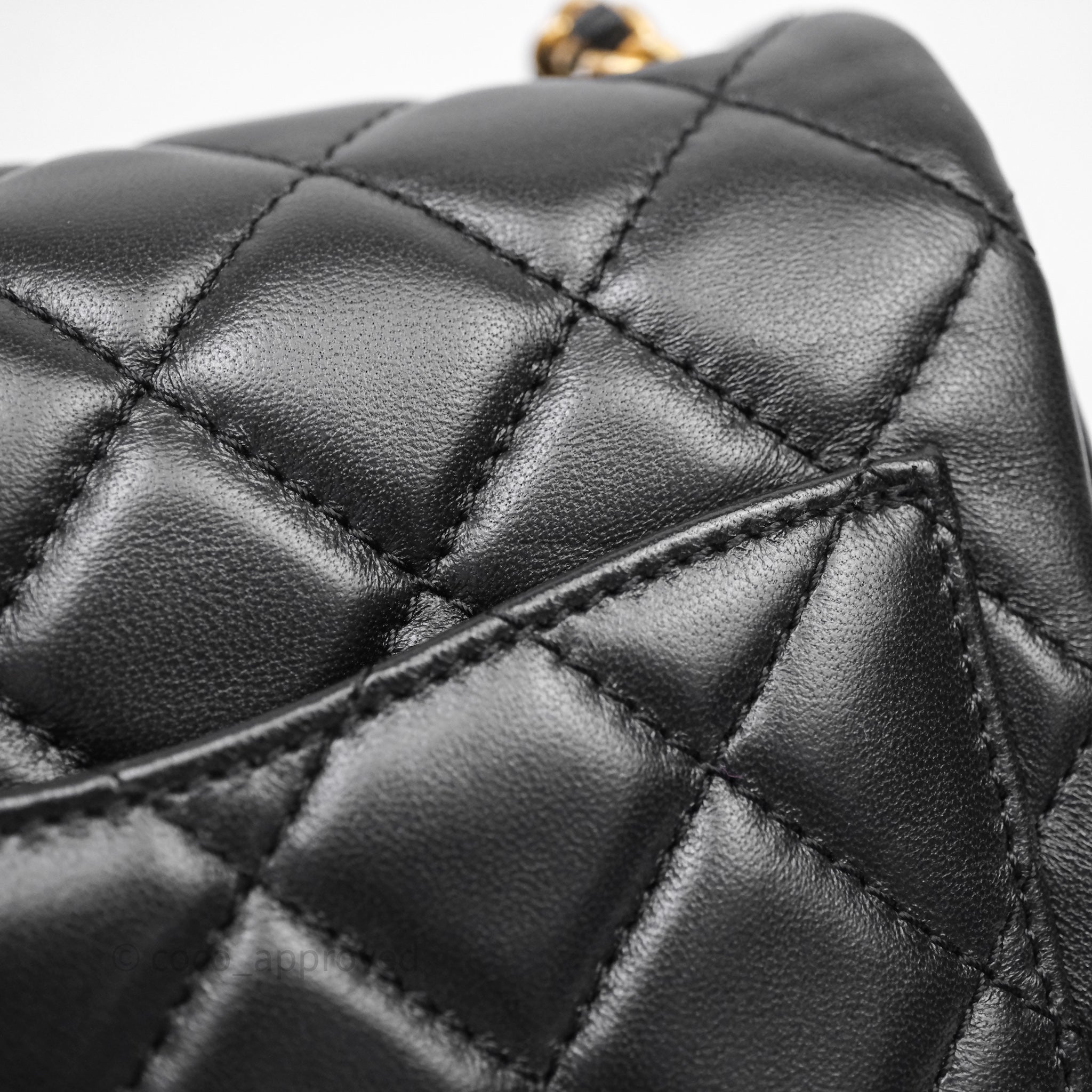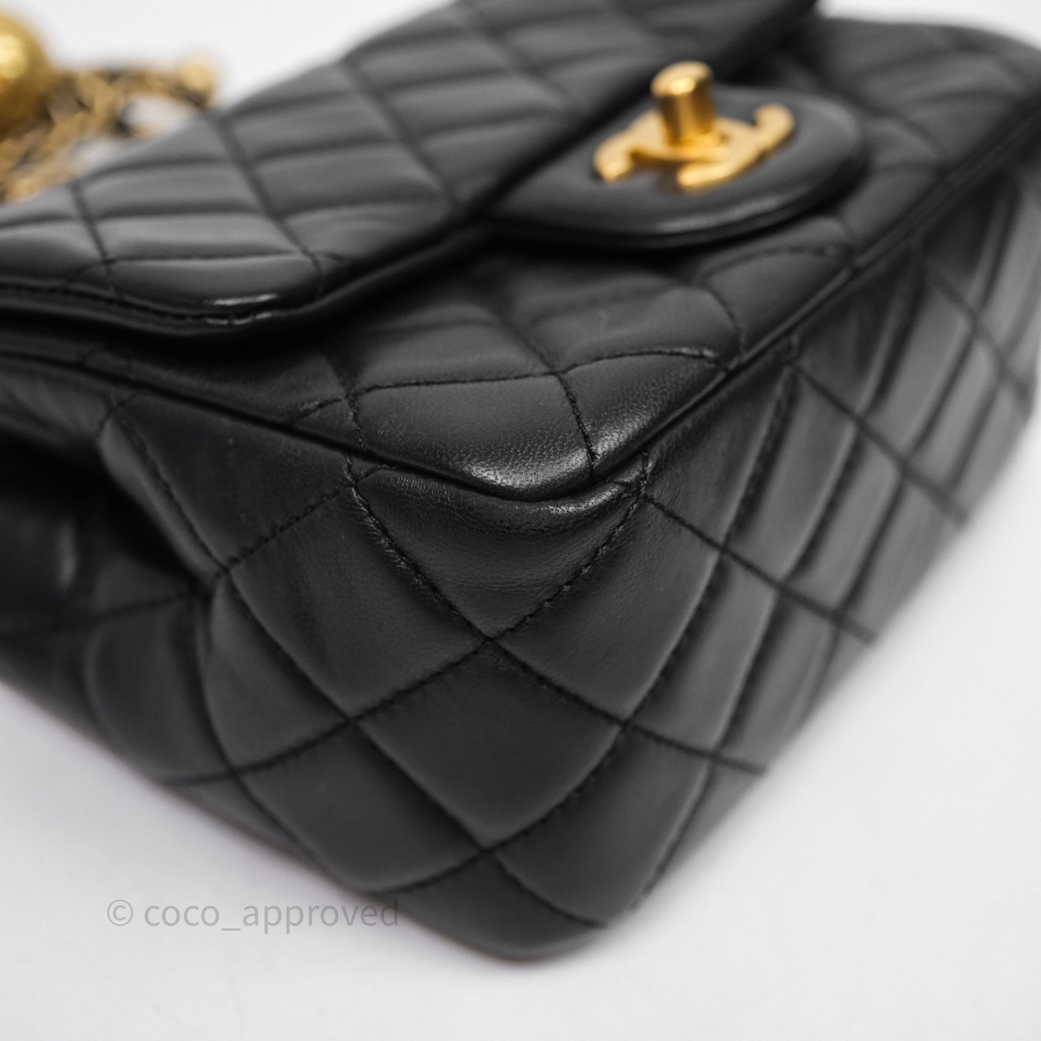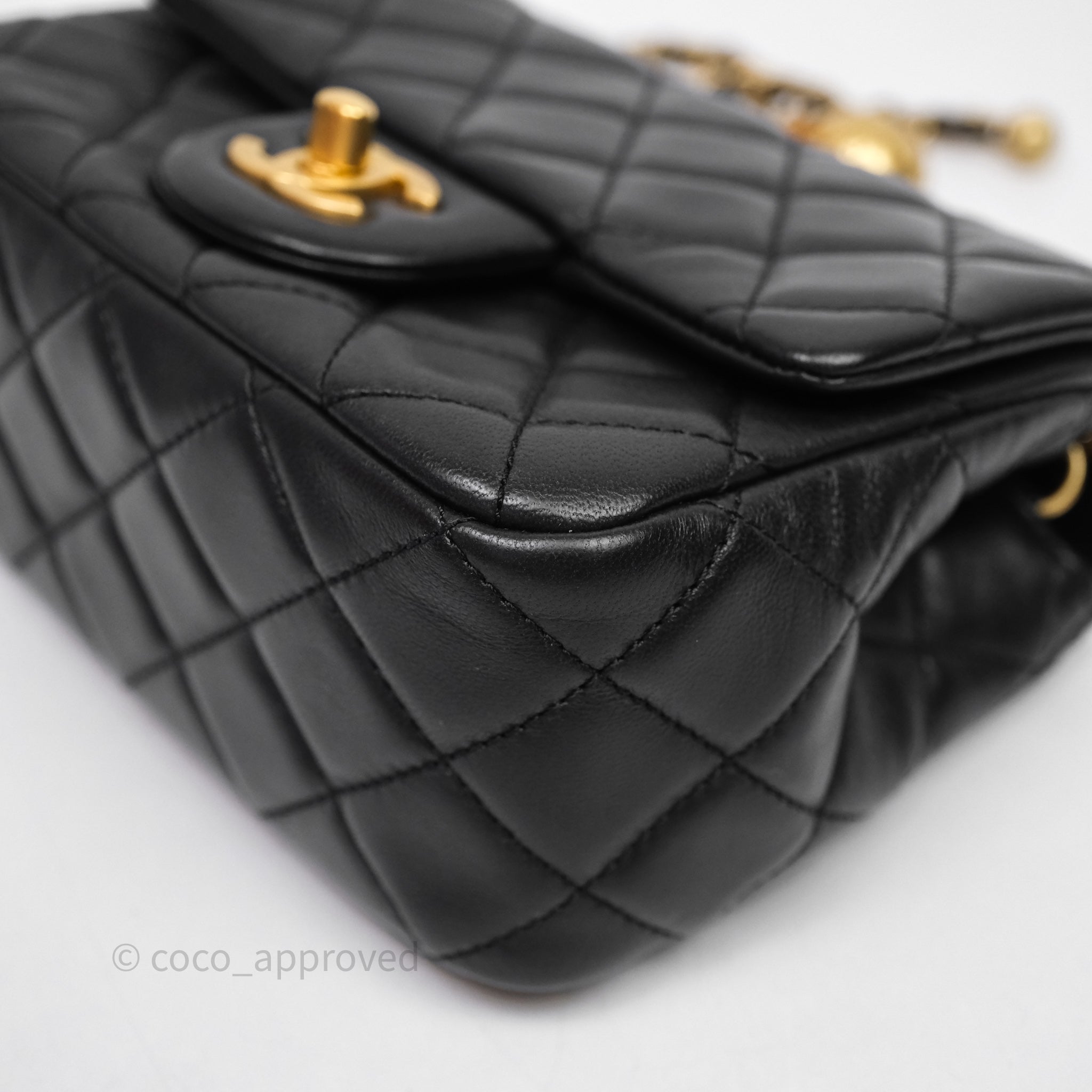 Chanel Pearl Crush Mini Square Quilted Black Lambskin Aged Gold Hardware