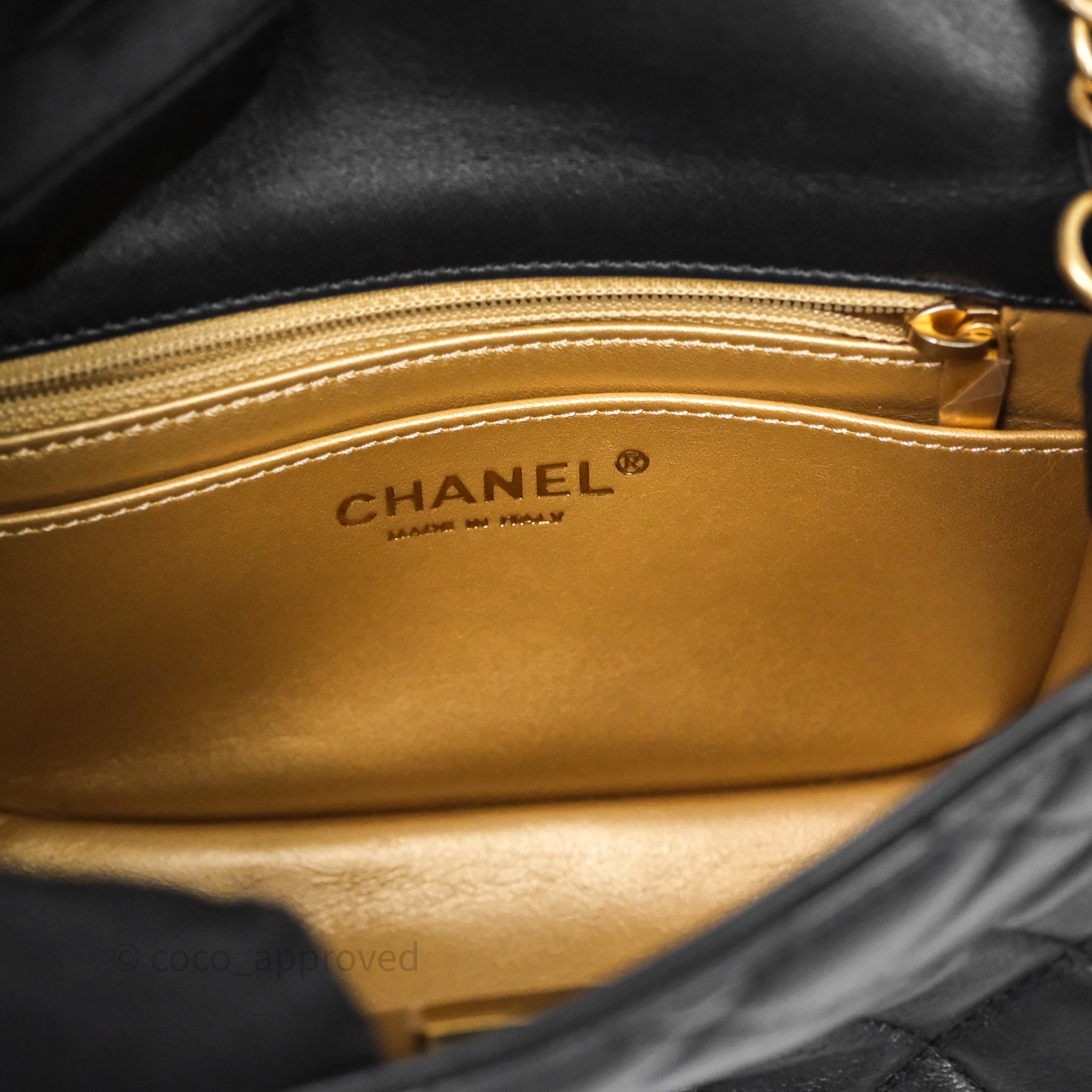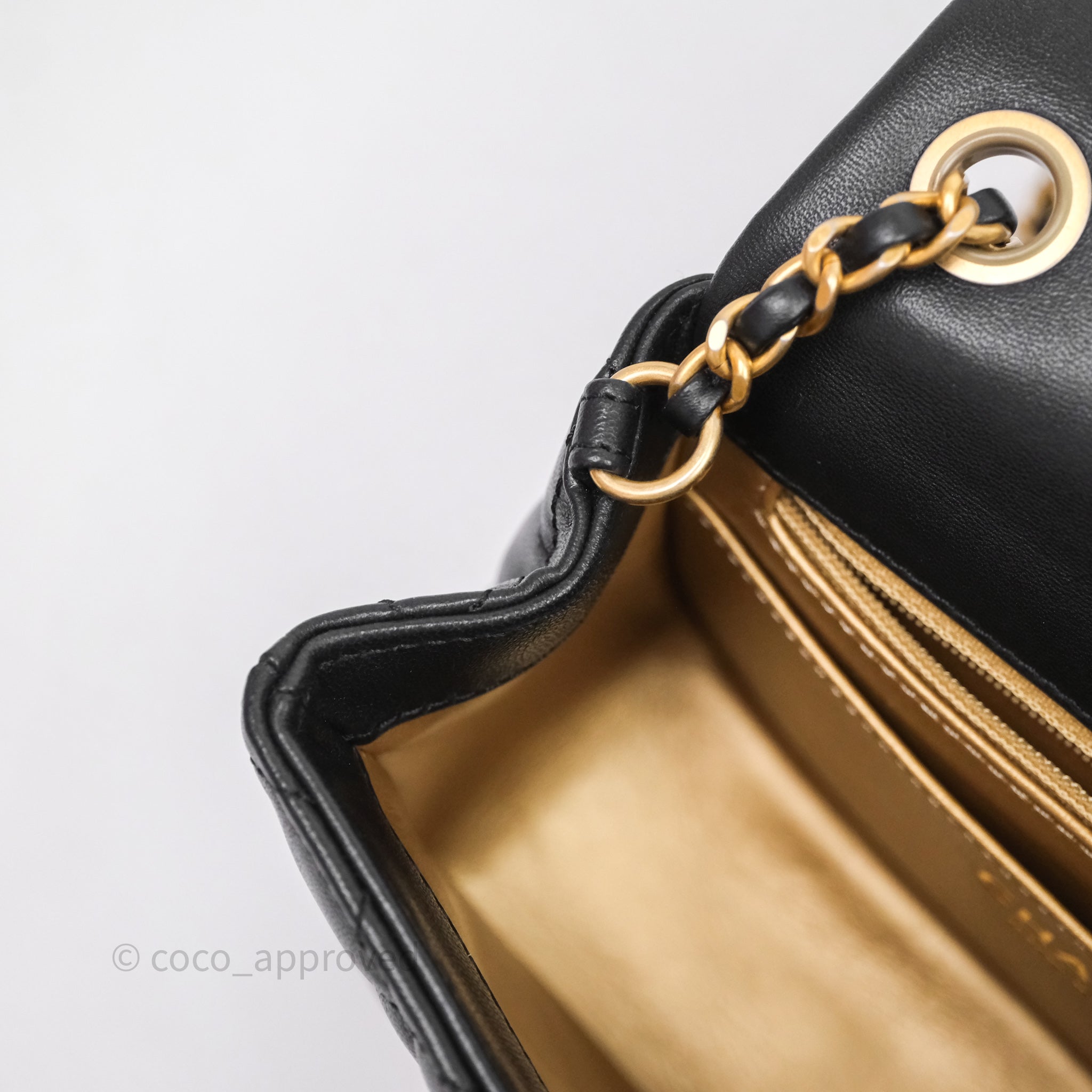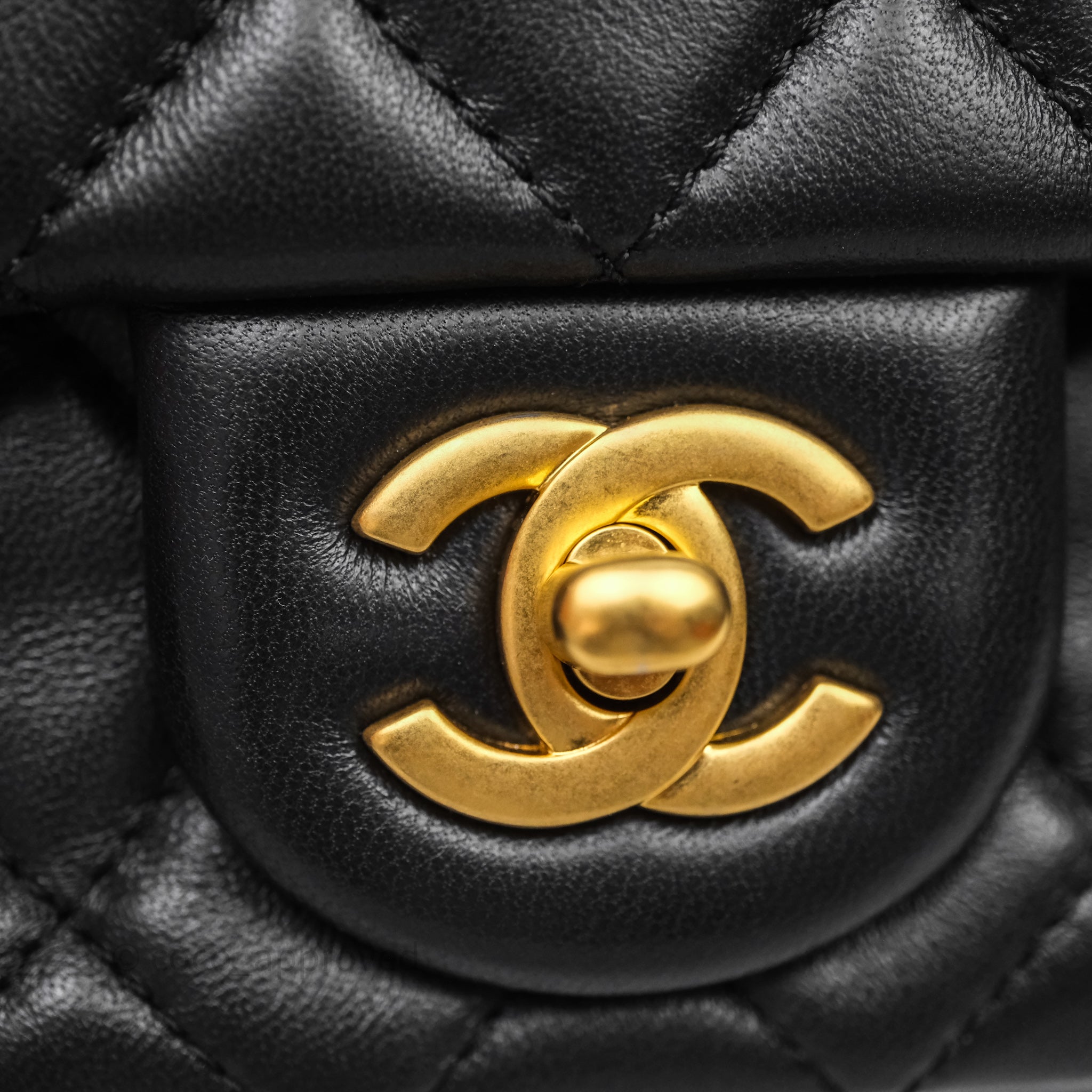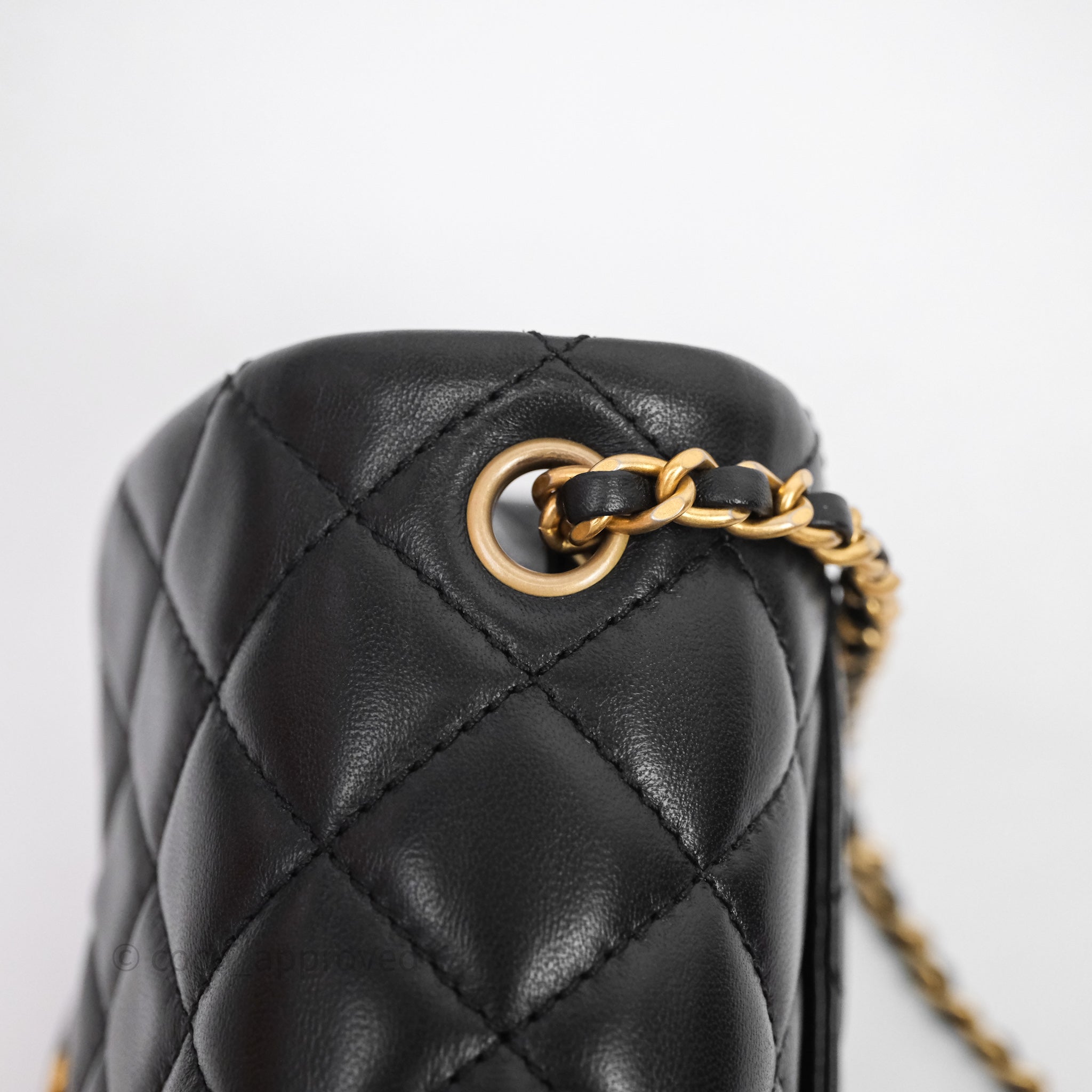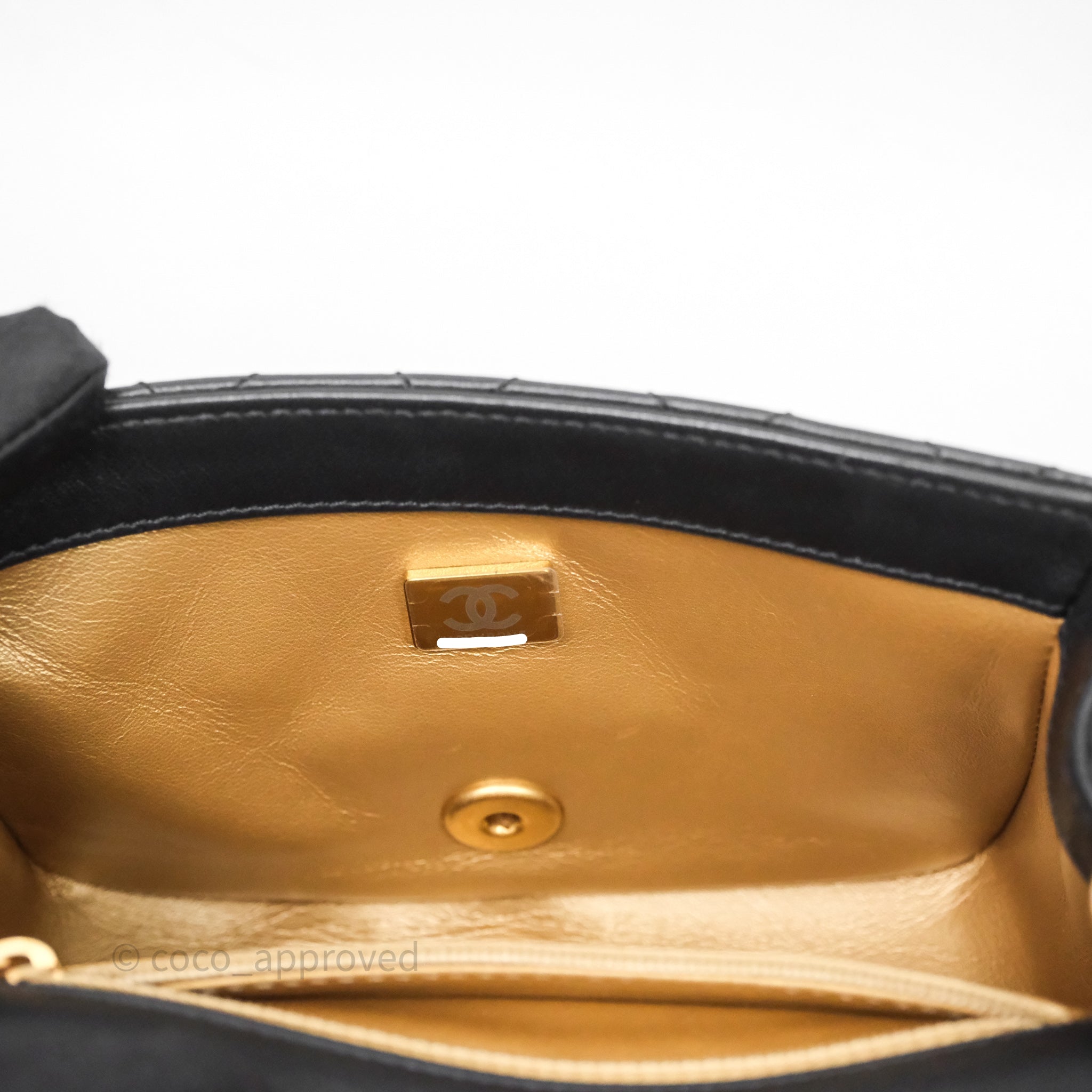 Chanel Pearl Crush Mini Square Quilted Black Lambskin Aged Gold Hardware