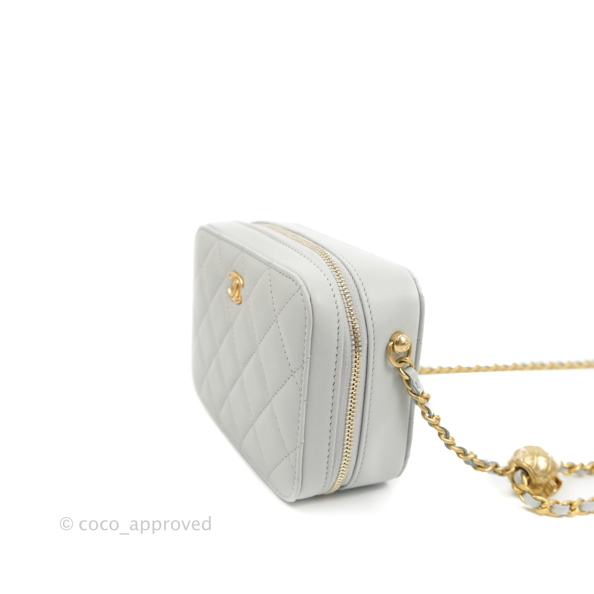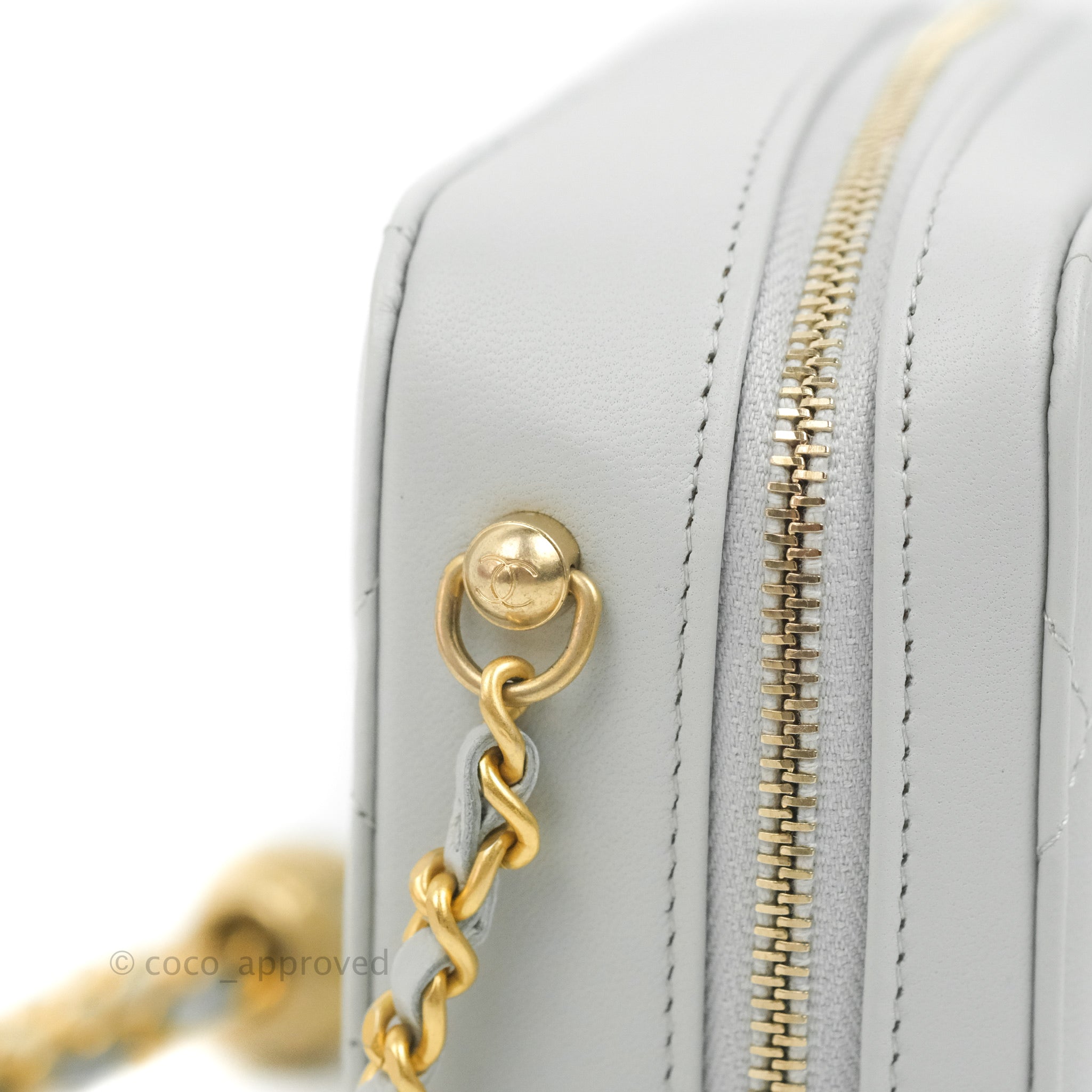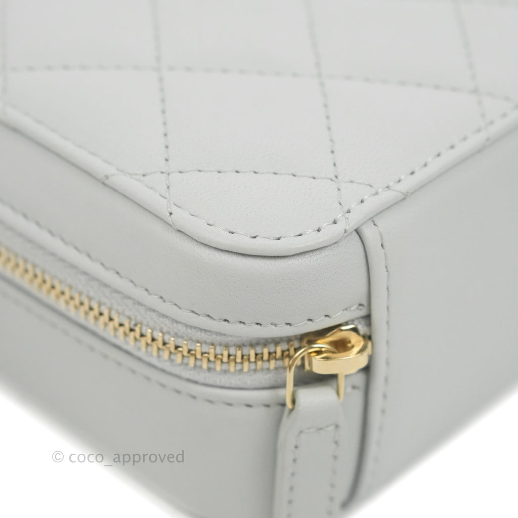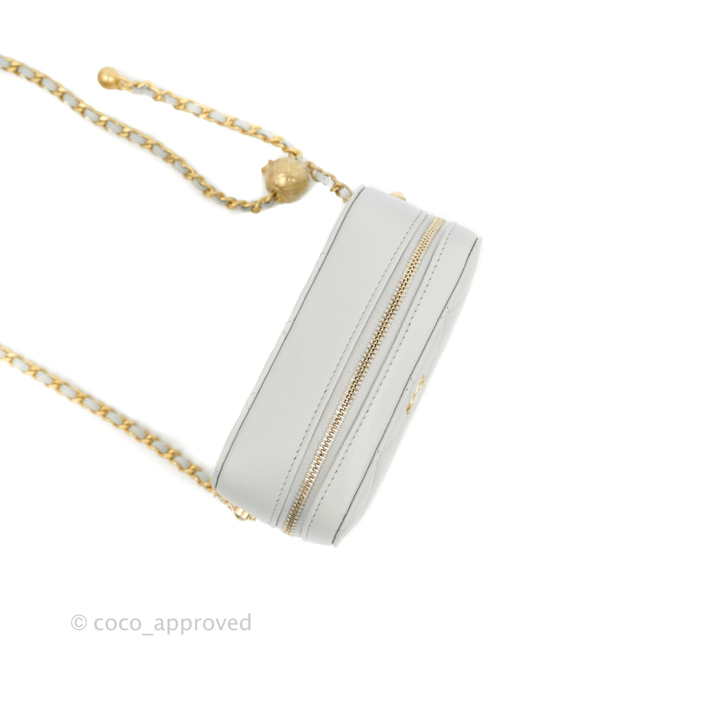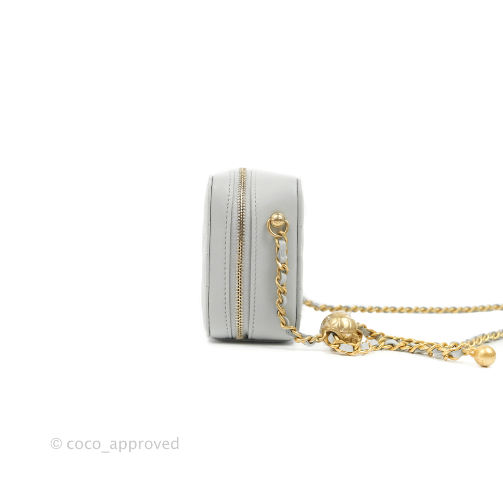 Chanel Pearl Crush Quilted Camera Bag Light Grey Lambskin Aged Gold Hardware