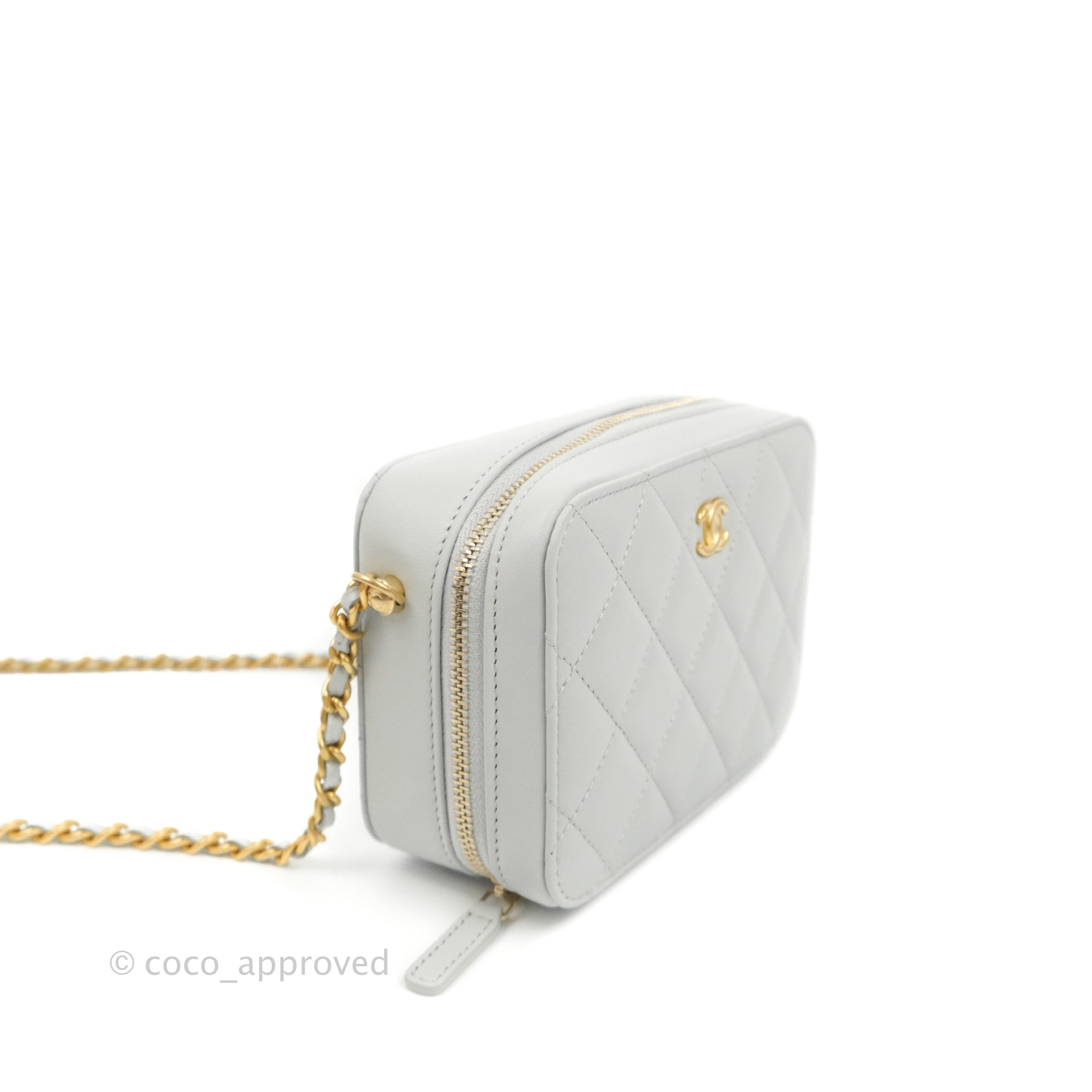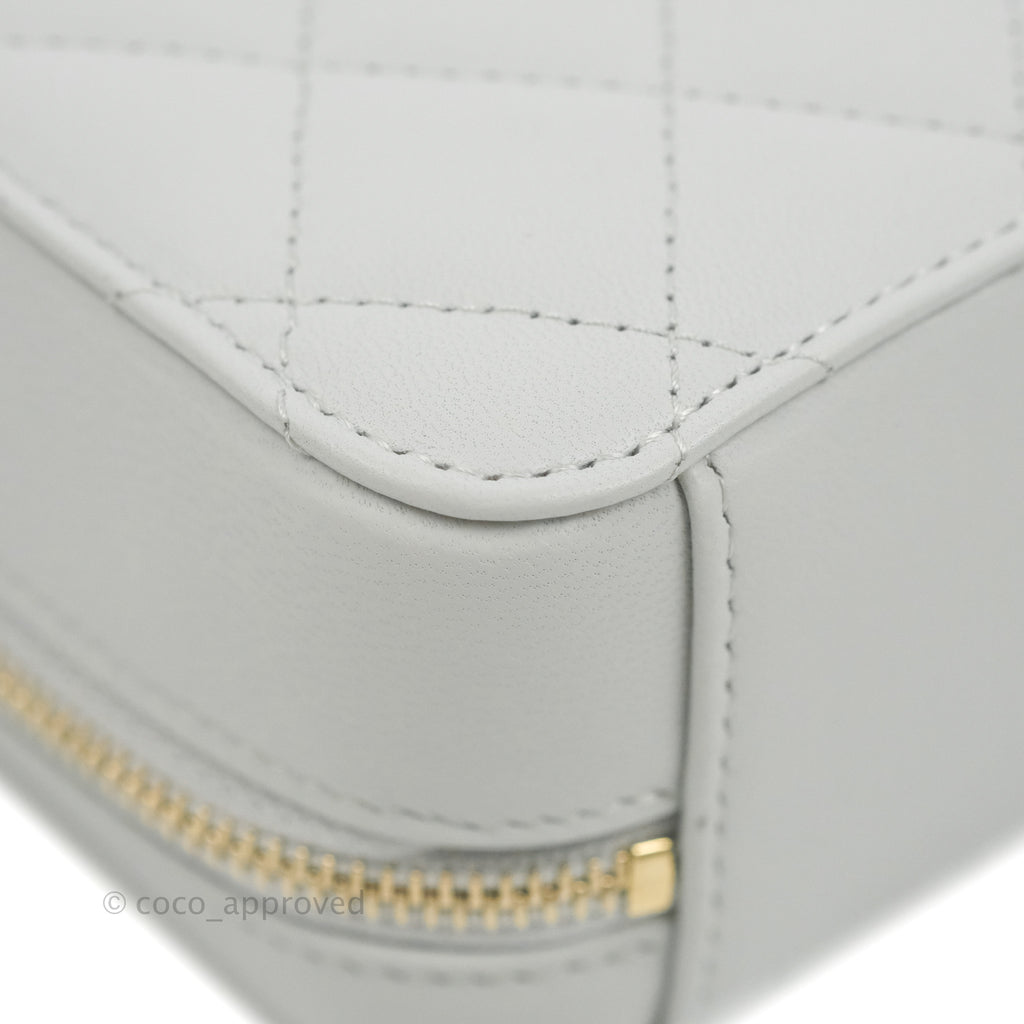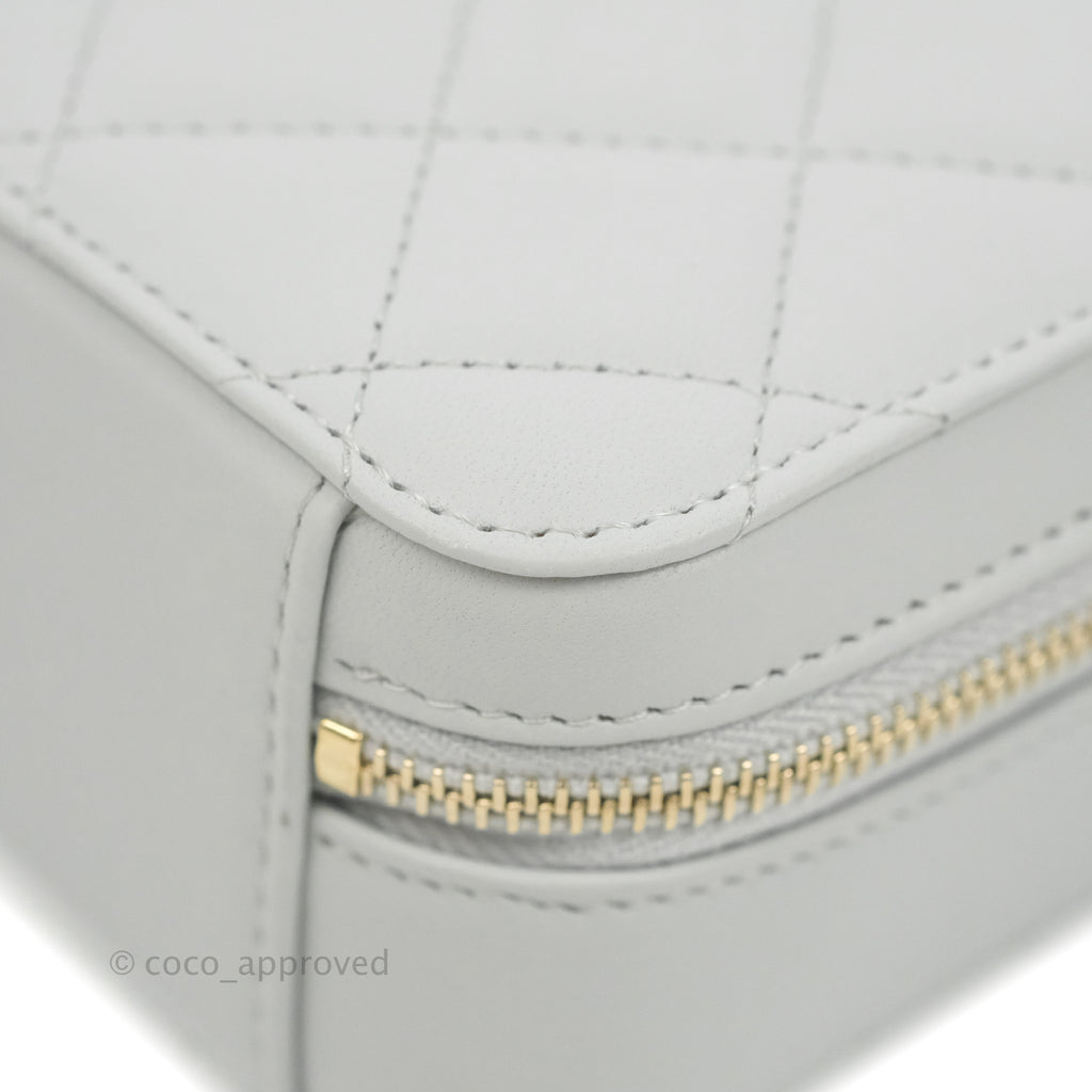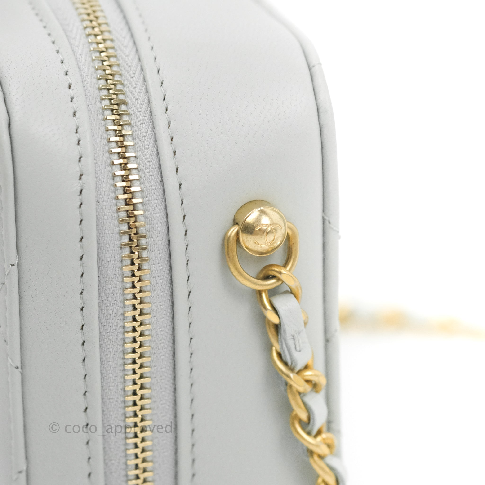 Chanel Pearl Crush Quilted Camera Bag Light Grey Lambskin Aged Gold Hardware