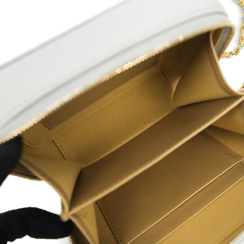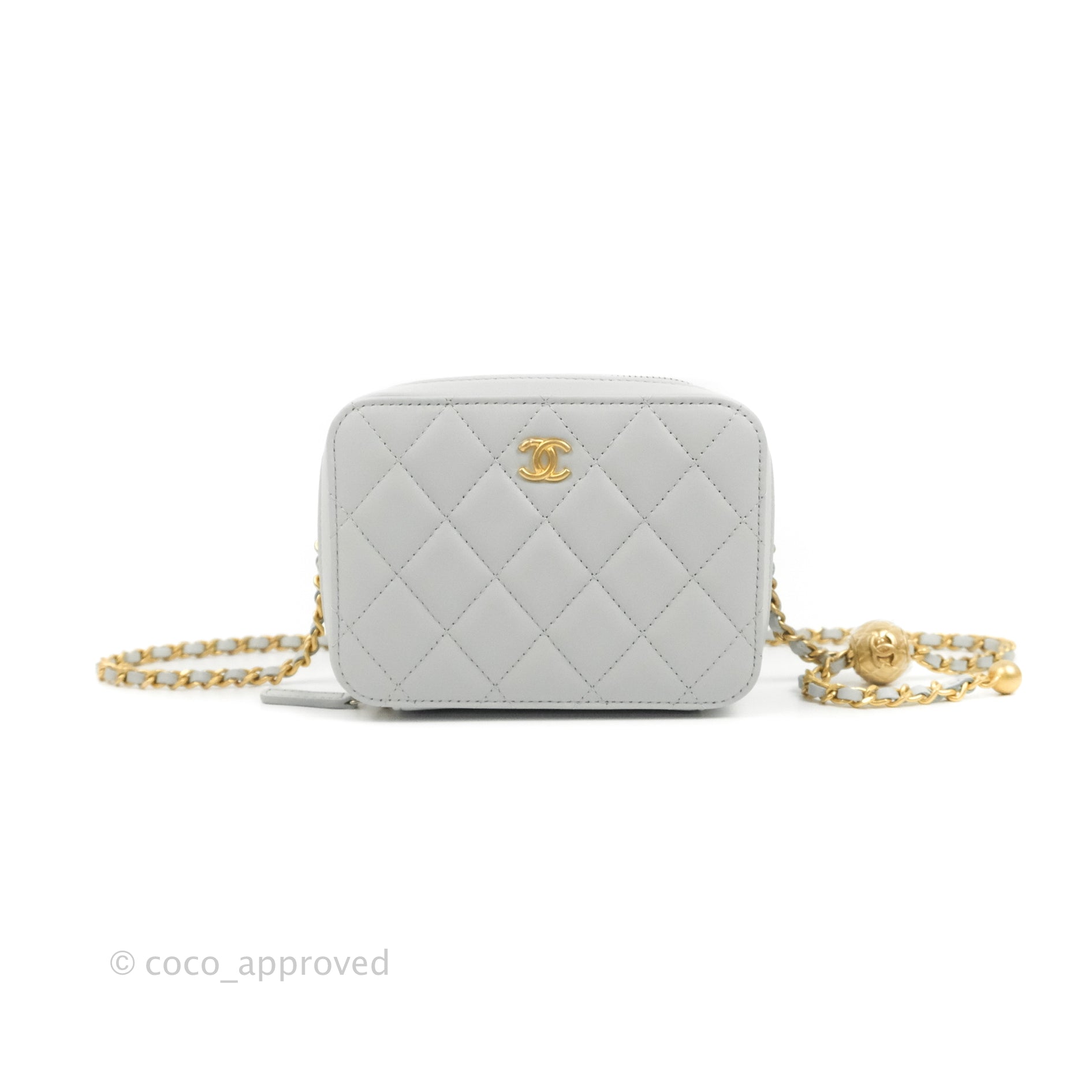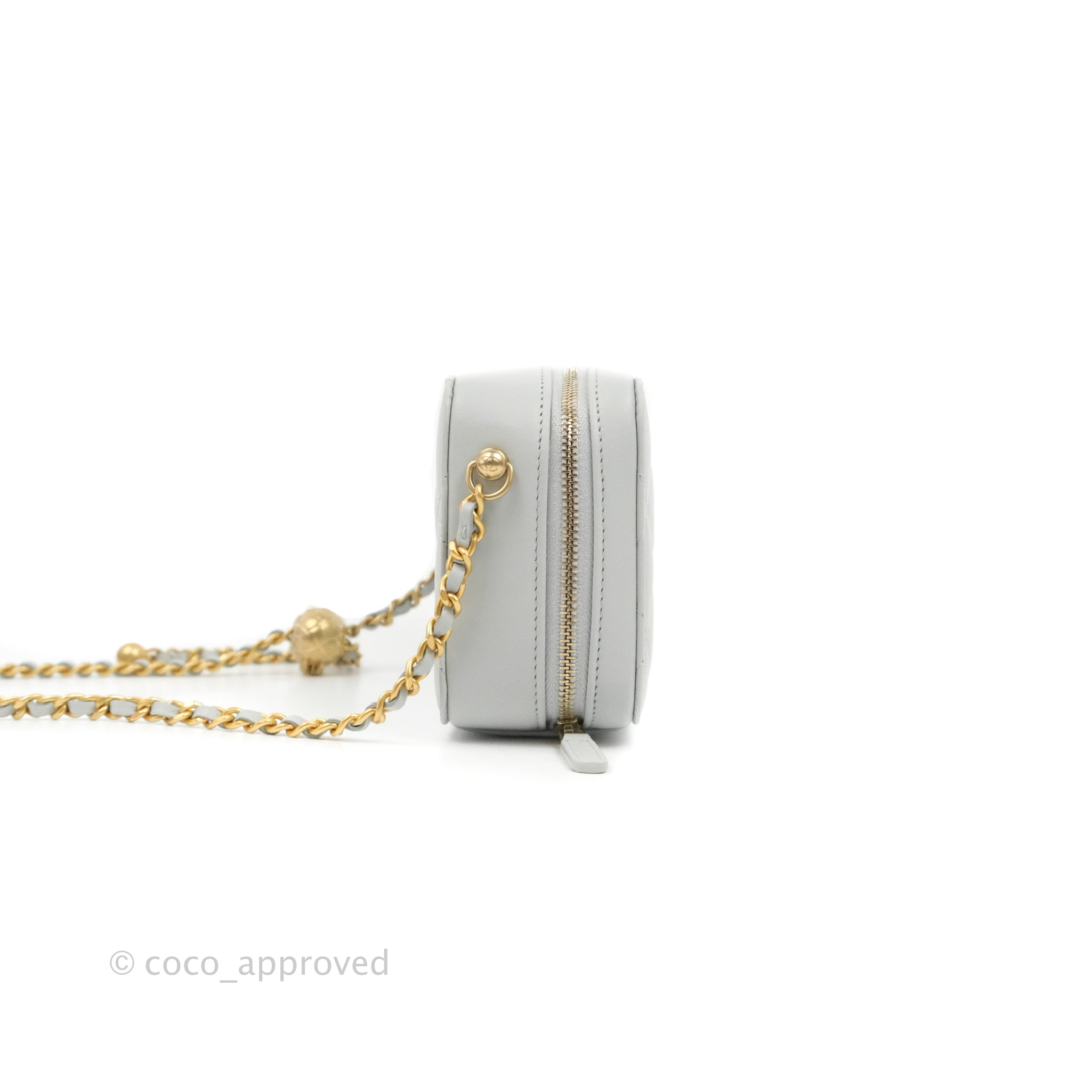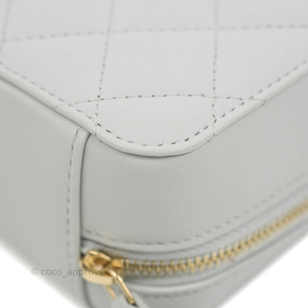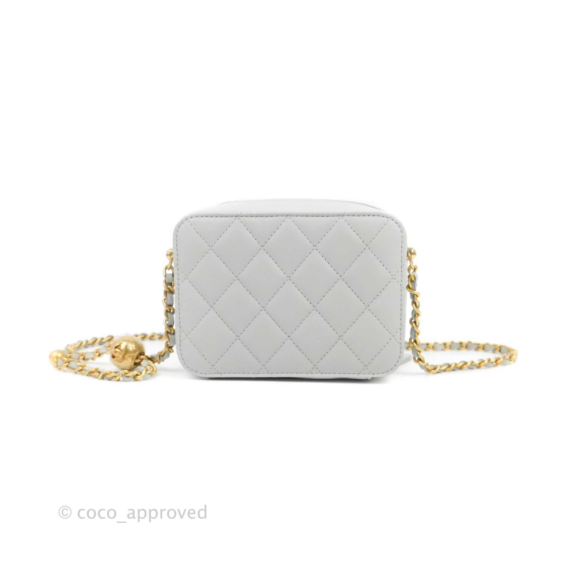 Chanel Pearl Crush Quilted Camera Bag Light Grey Lambskin Aged Gold Hardware