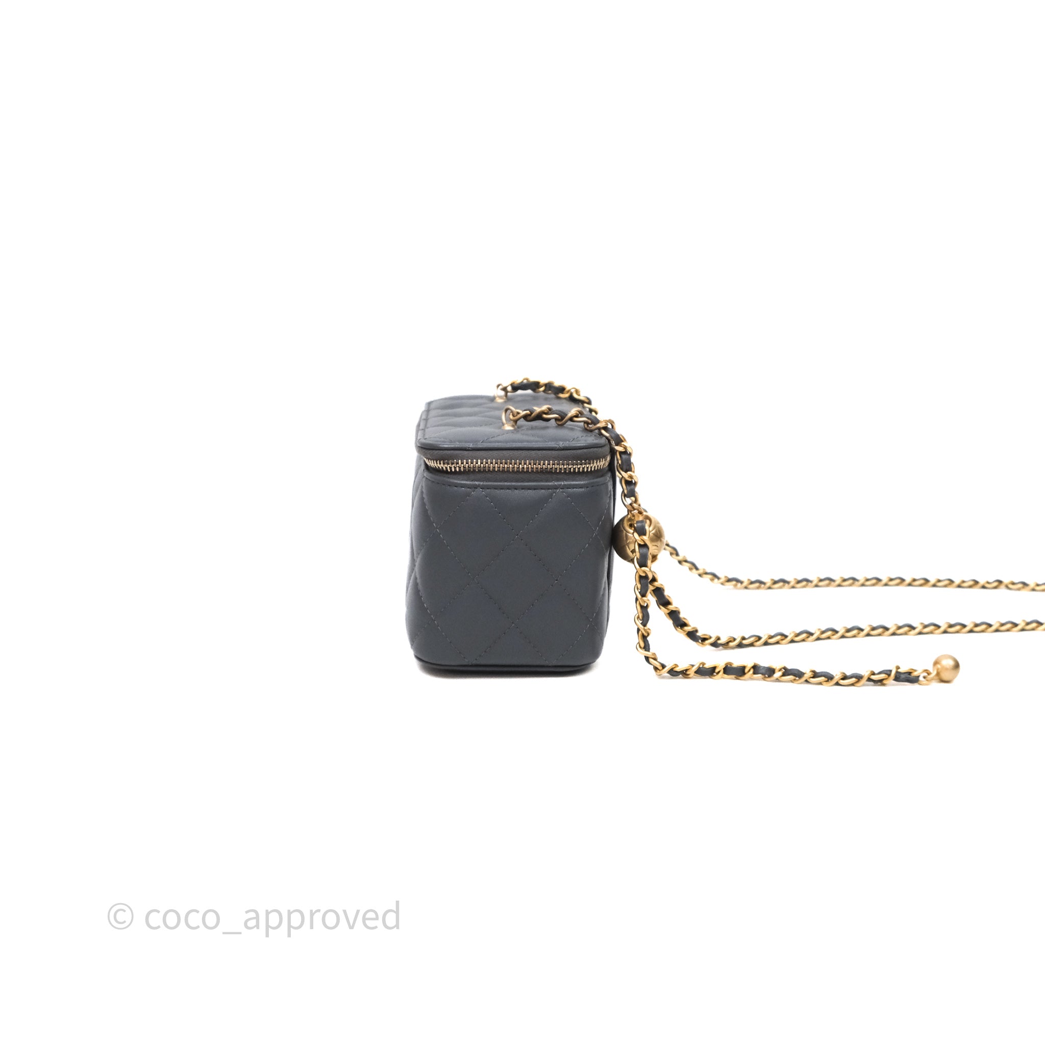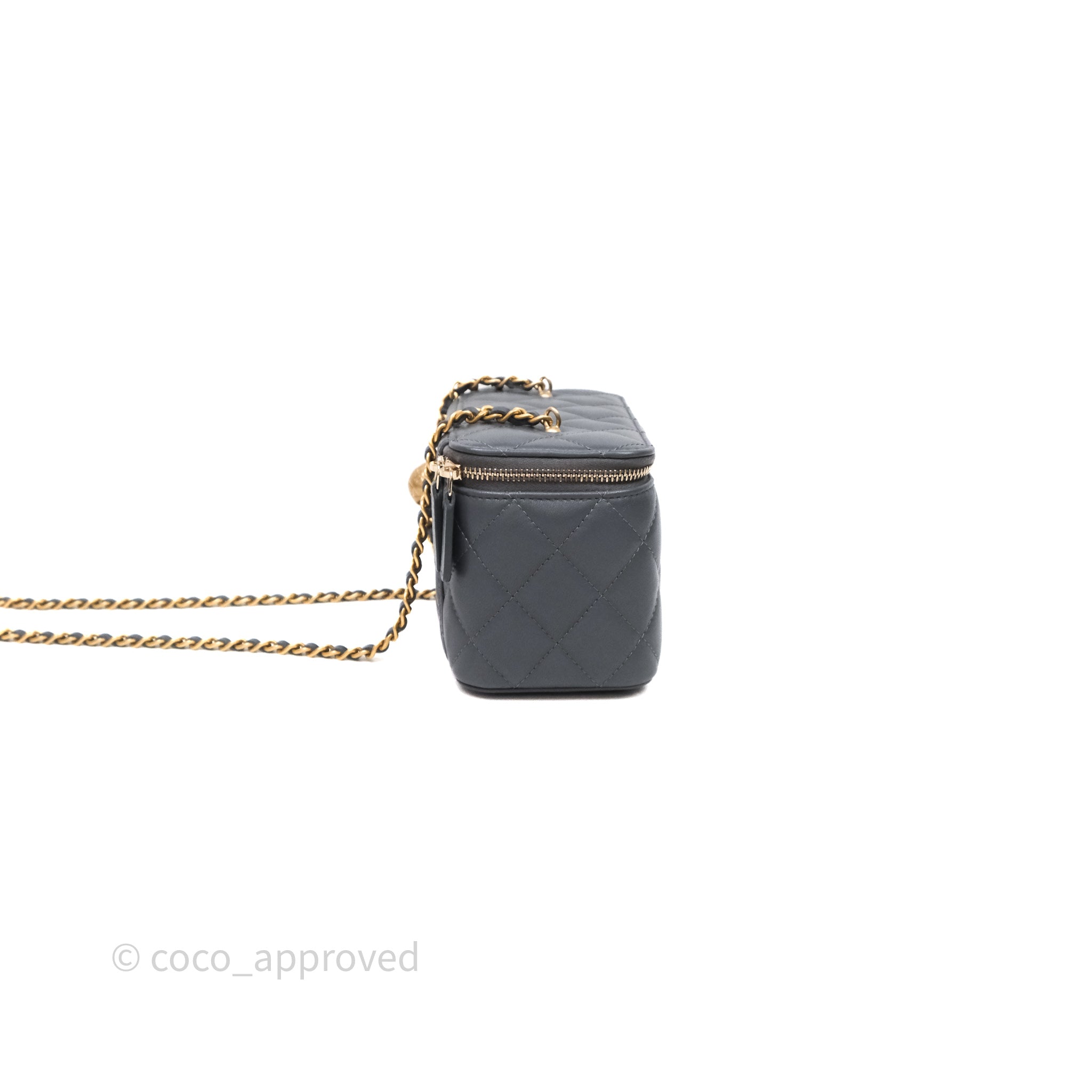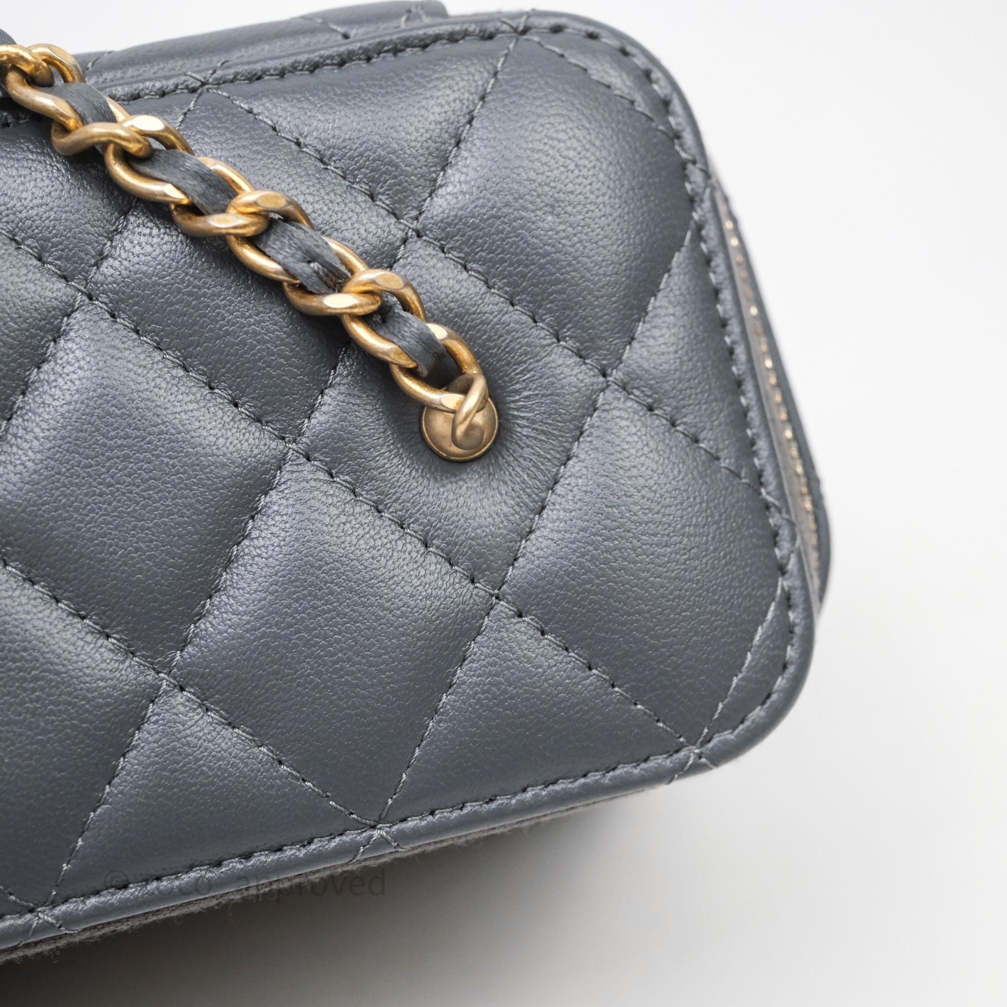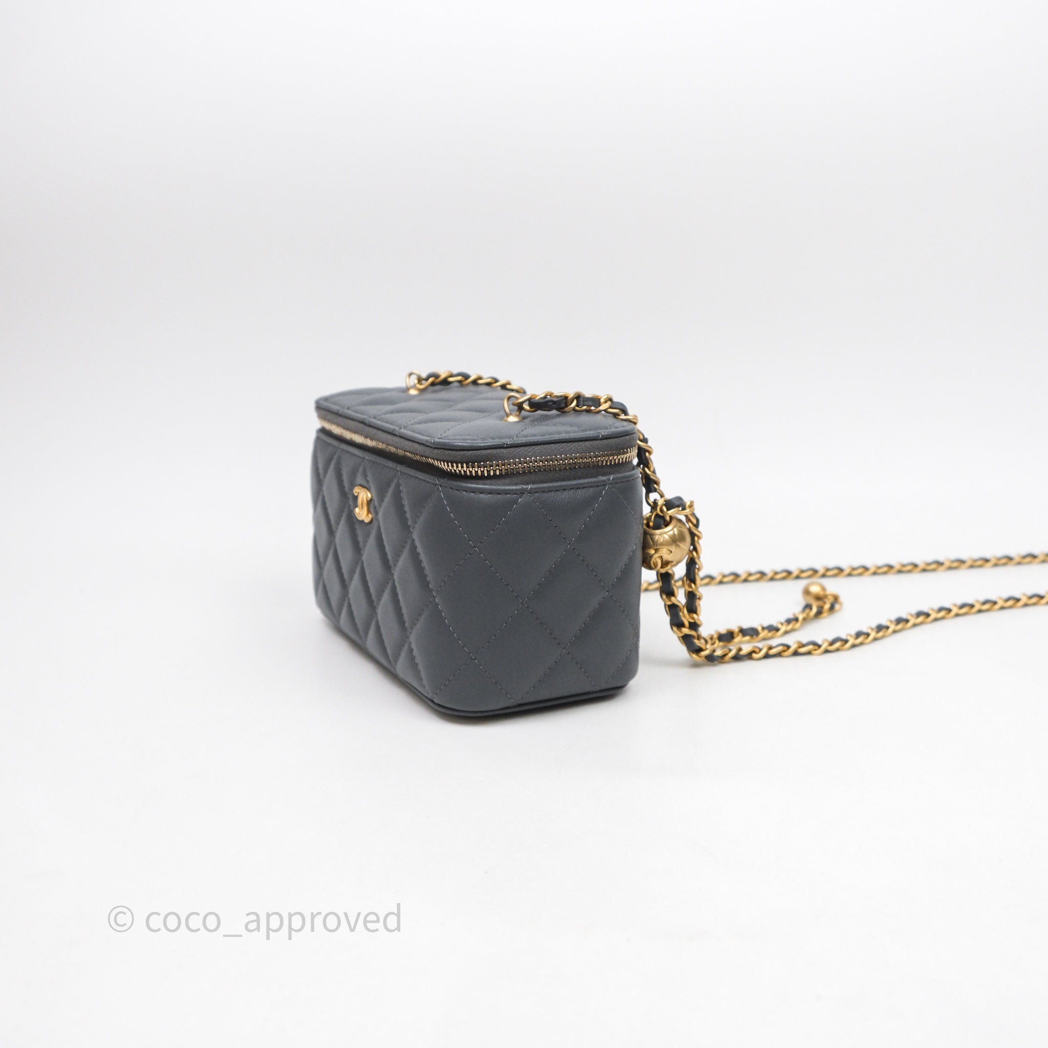Chanel Pearl Crush Vanity With Chain Dark Grey Lambskin Aged Gold Hardware