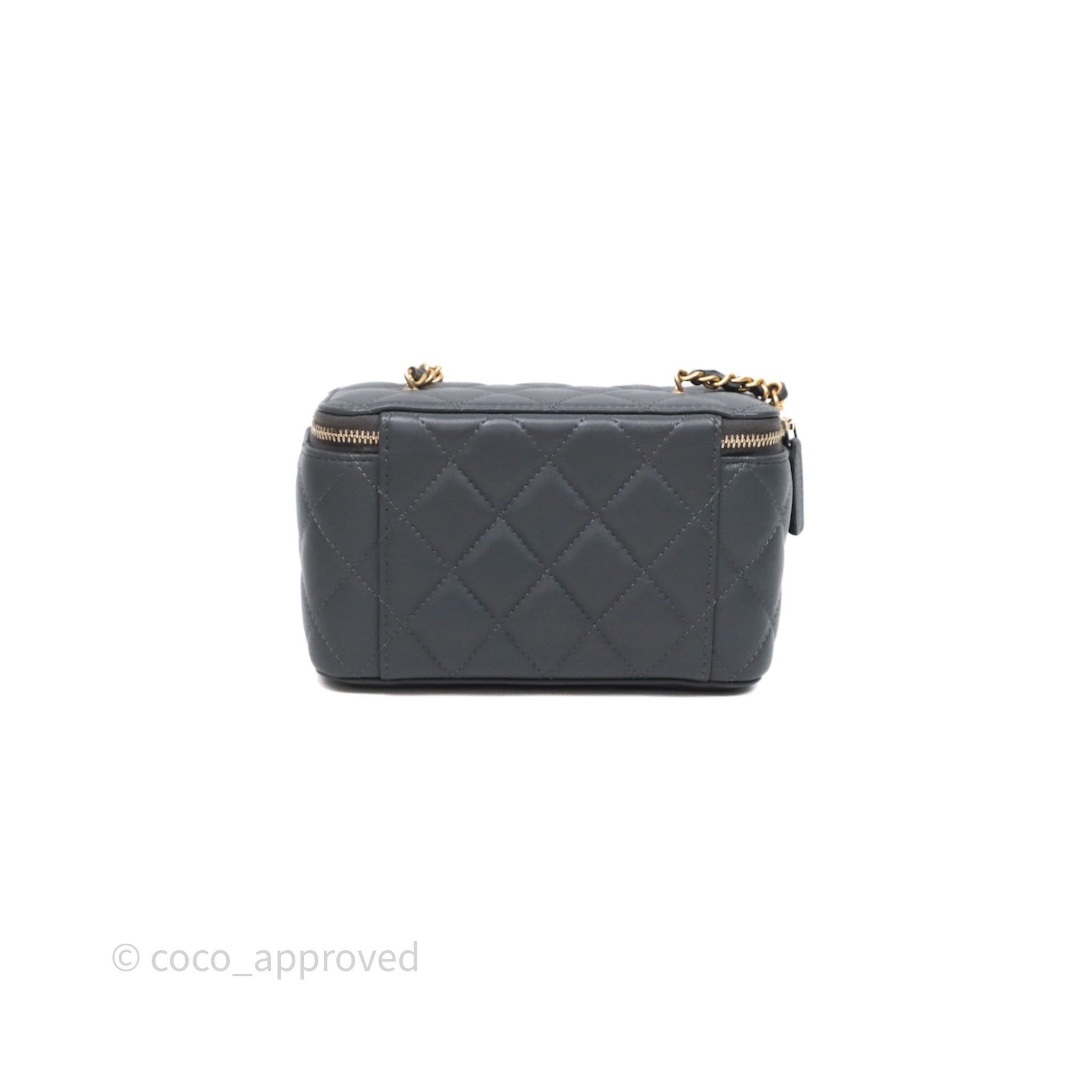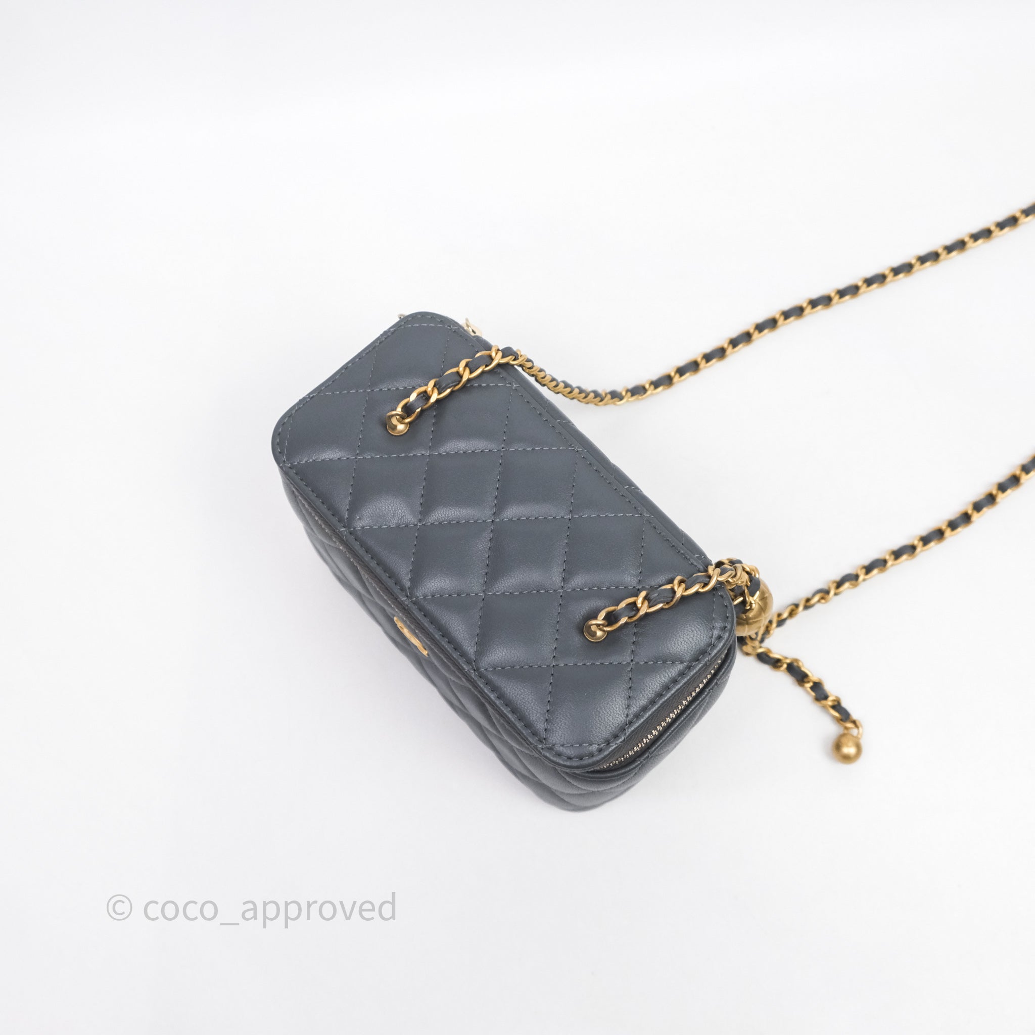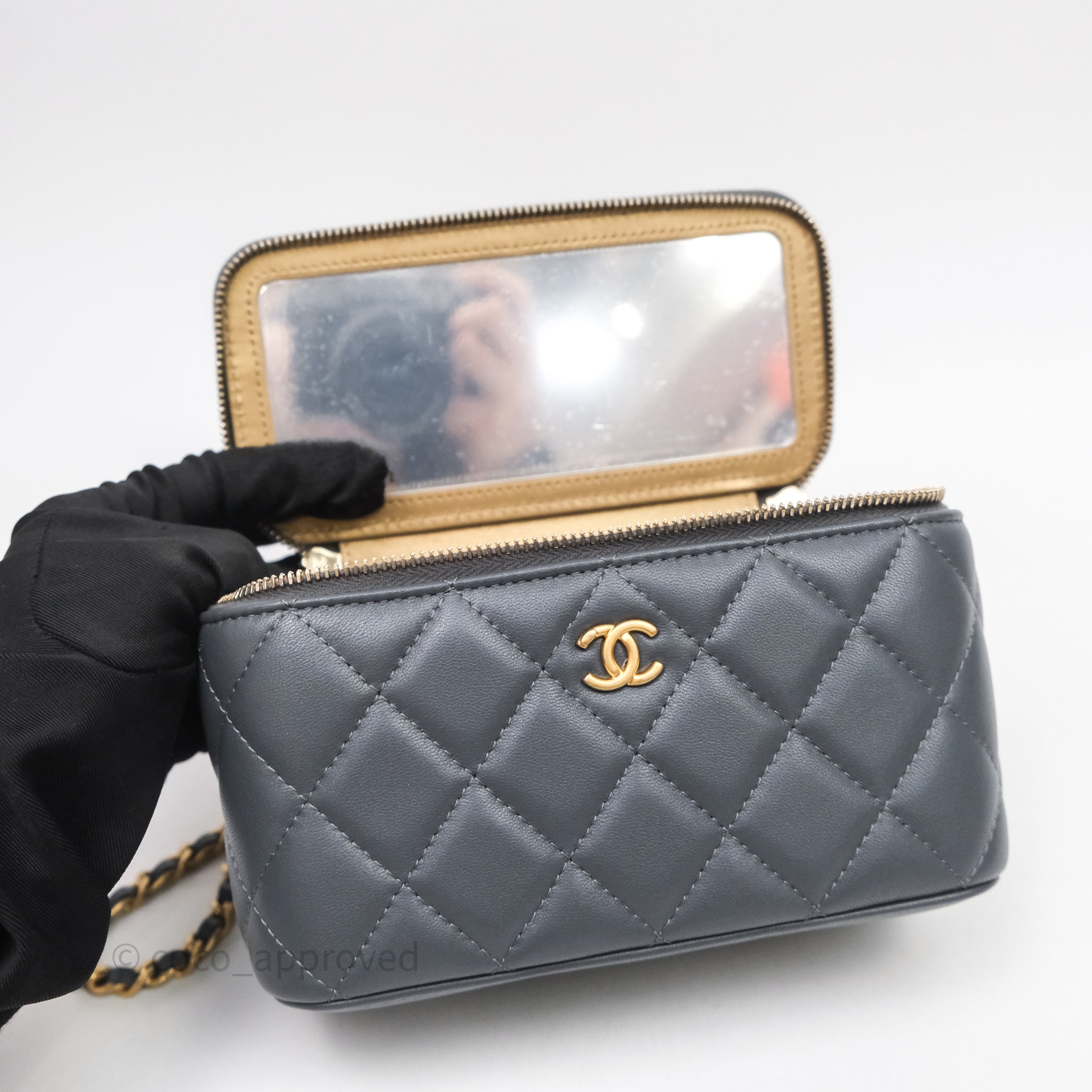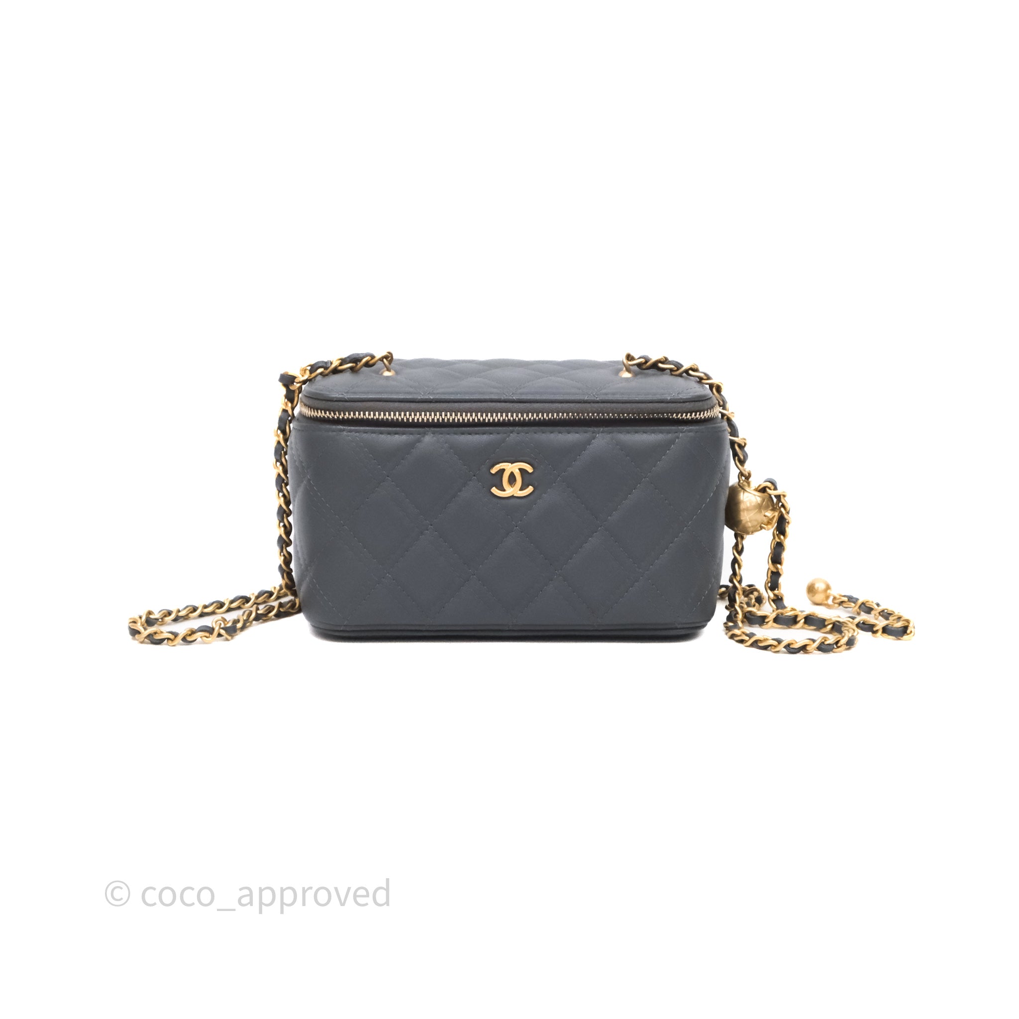 Chanel Pearl Crush Vanity With Chain Dark Grey Lambskin Aged Gold Hardware