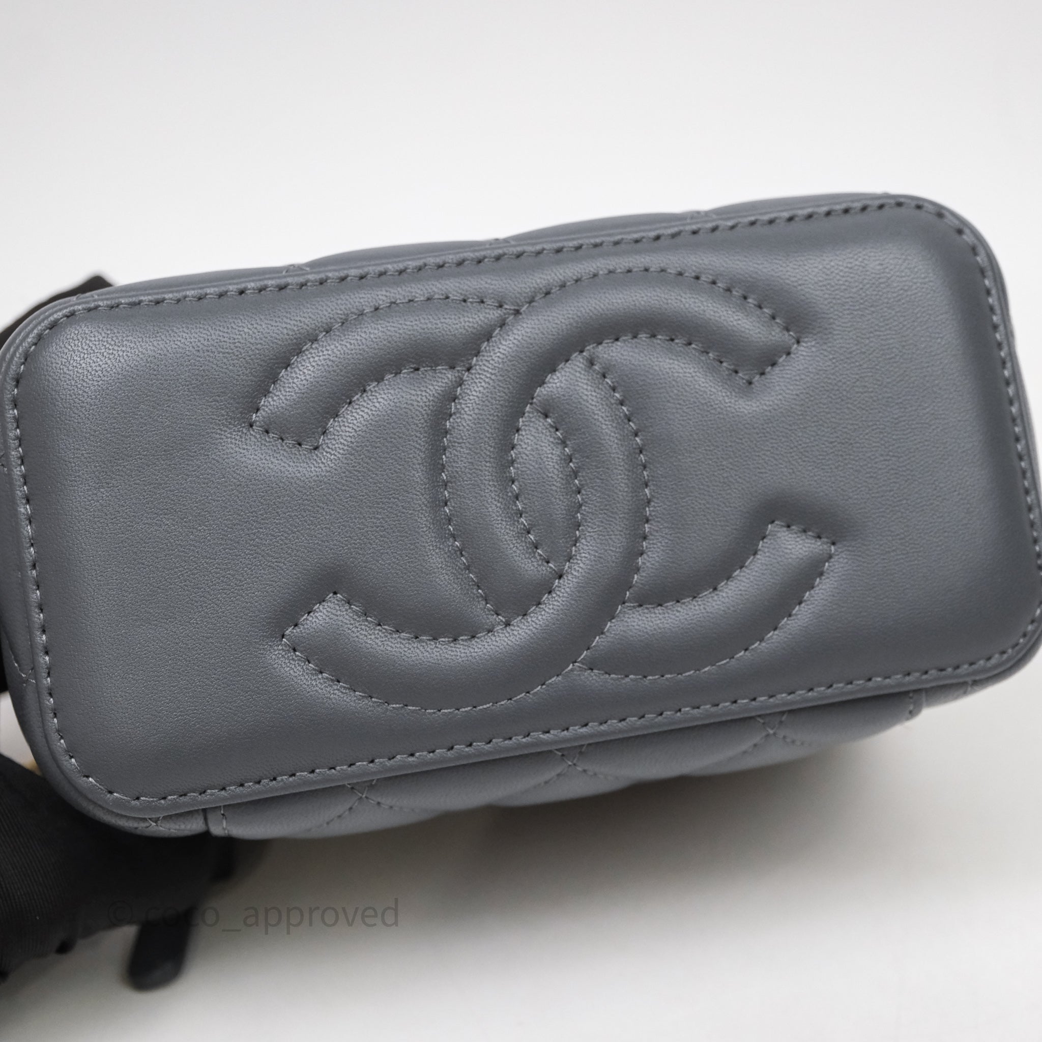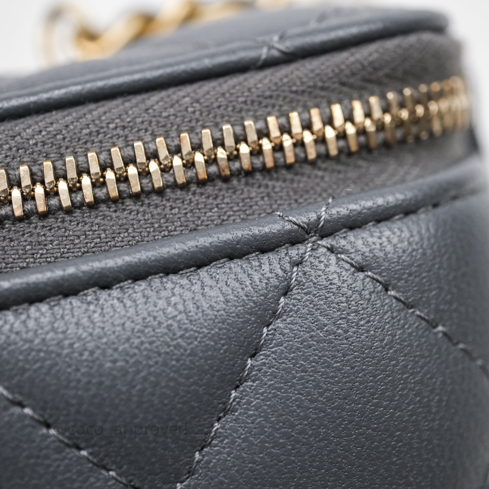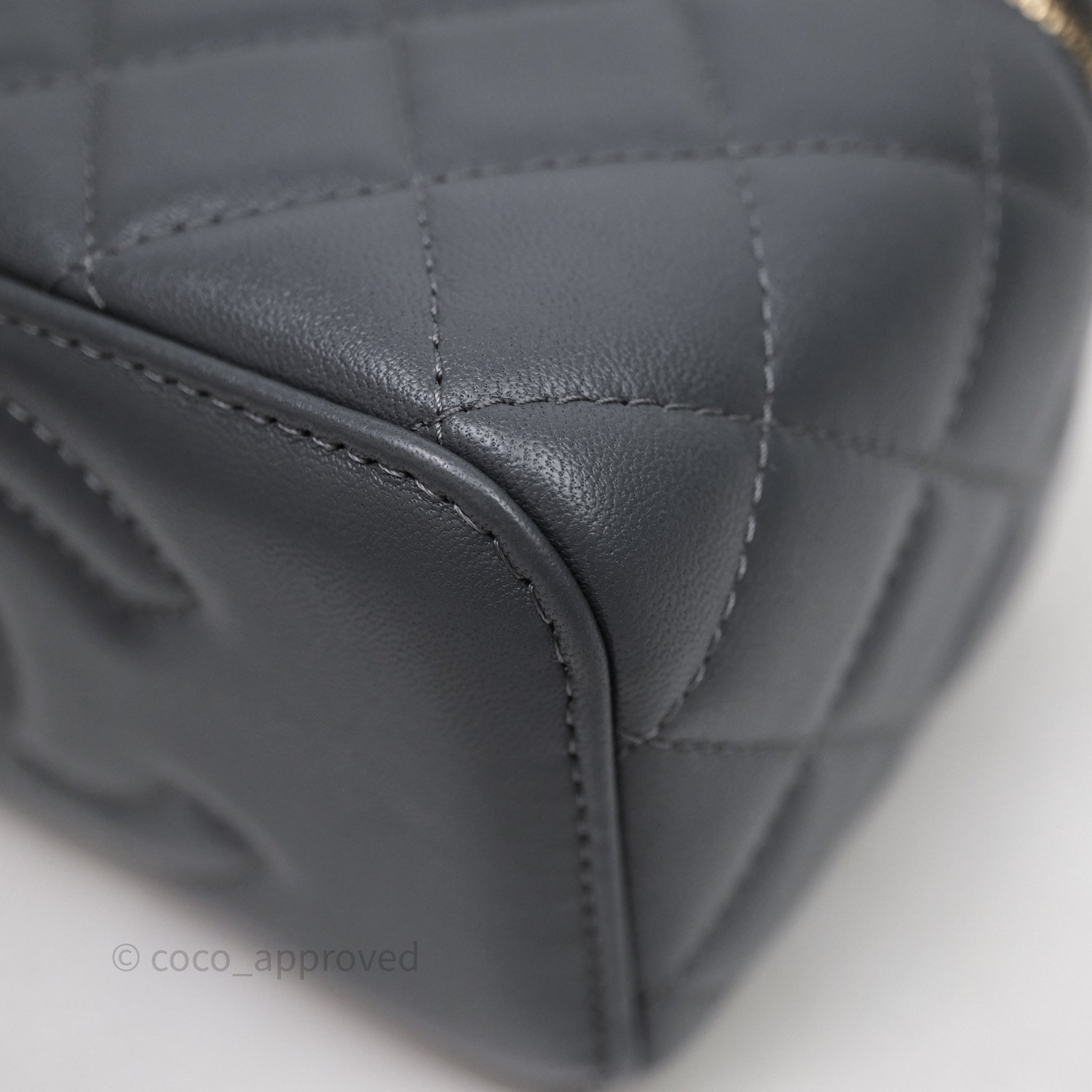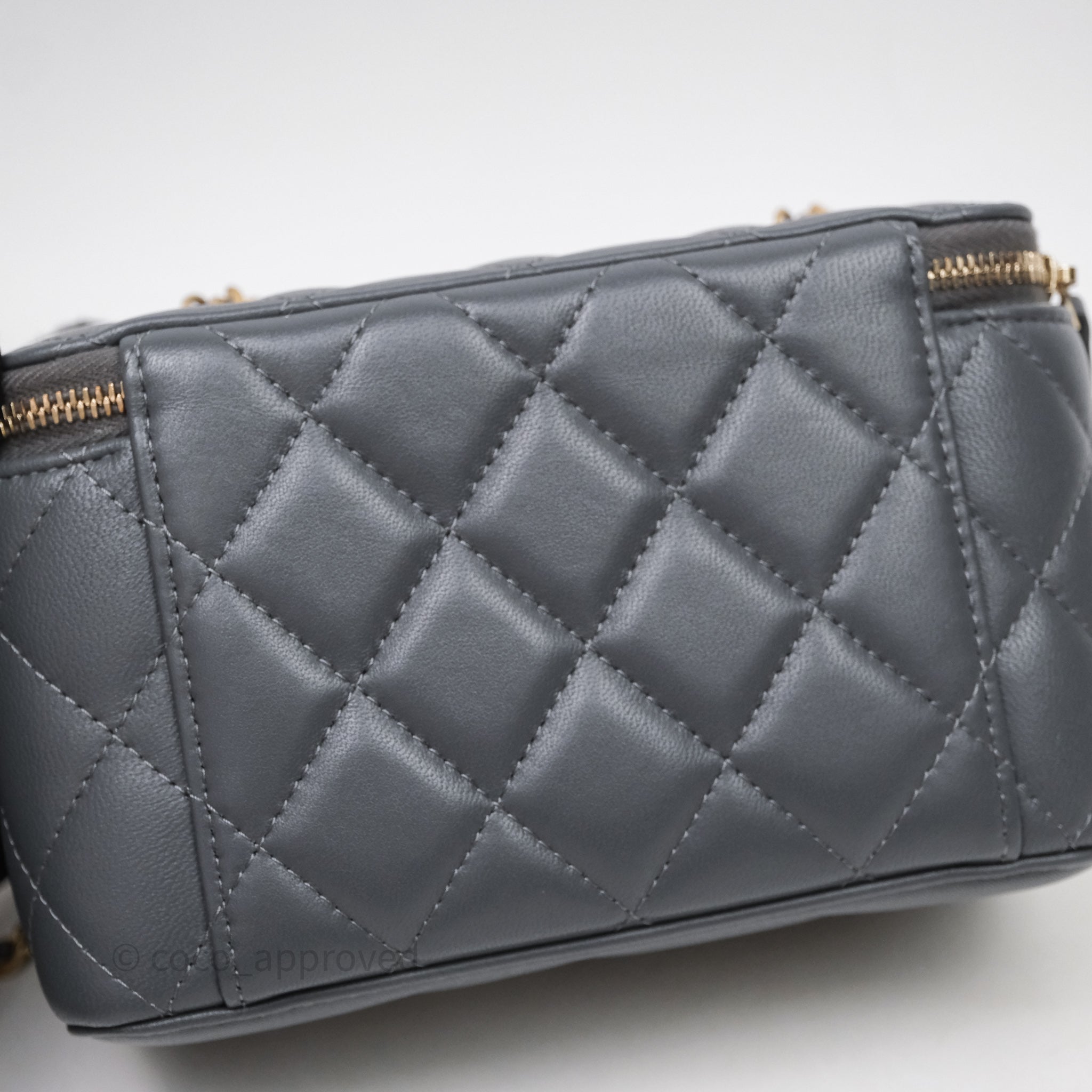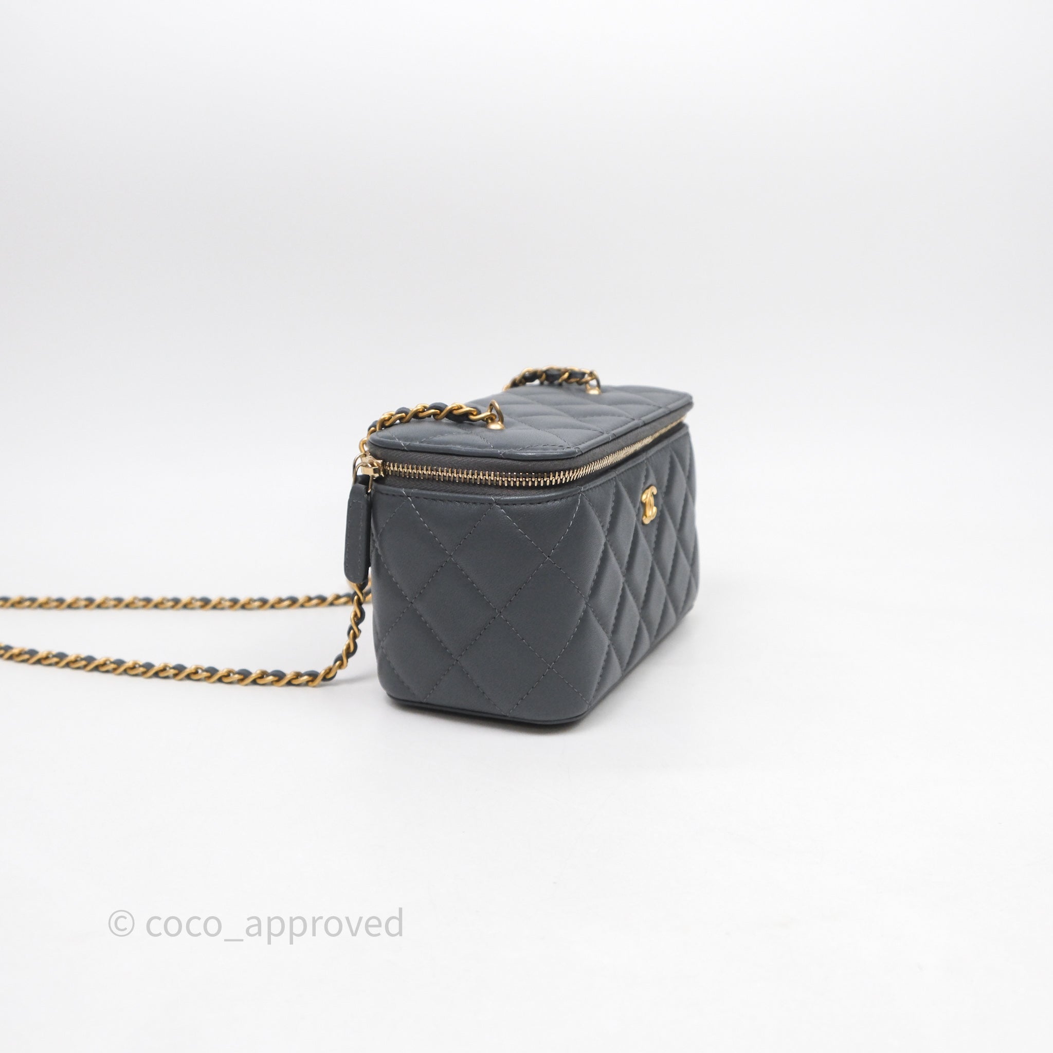 Chanel Pearl Crush Vanity With Chain Dark Grey Lambskin Aged Gold Hardware