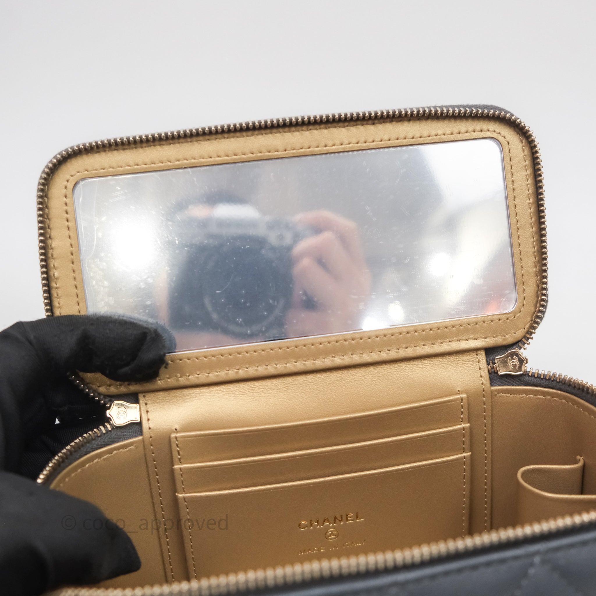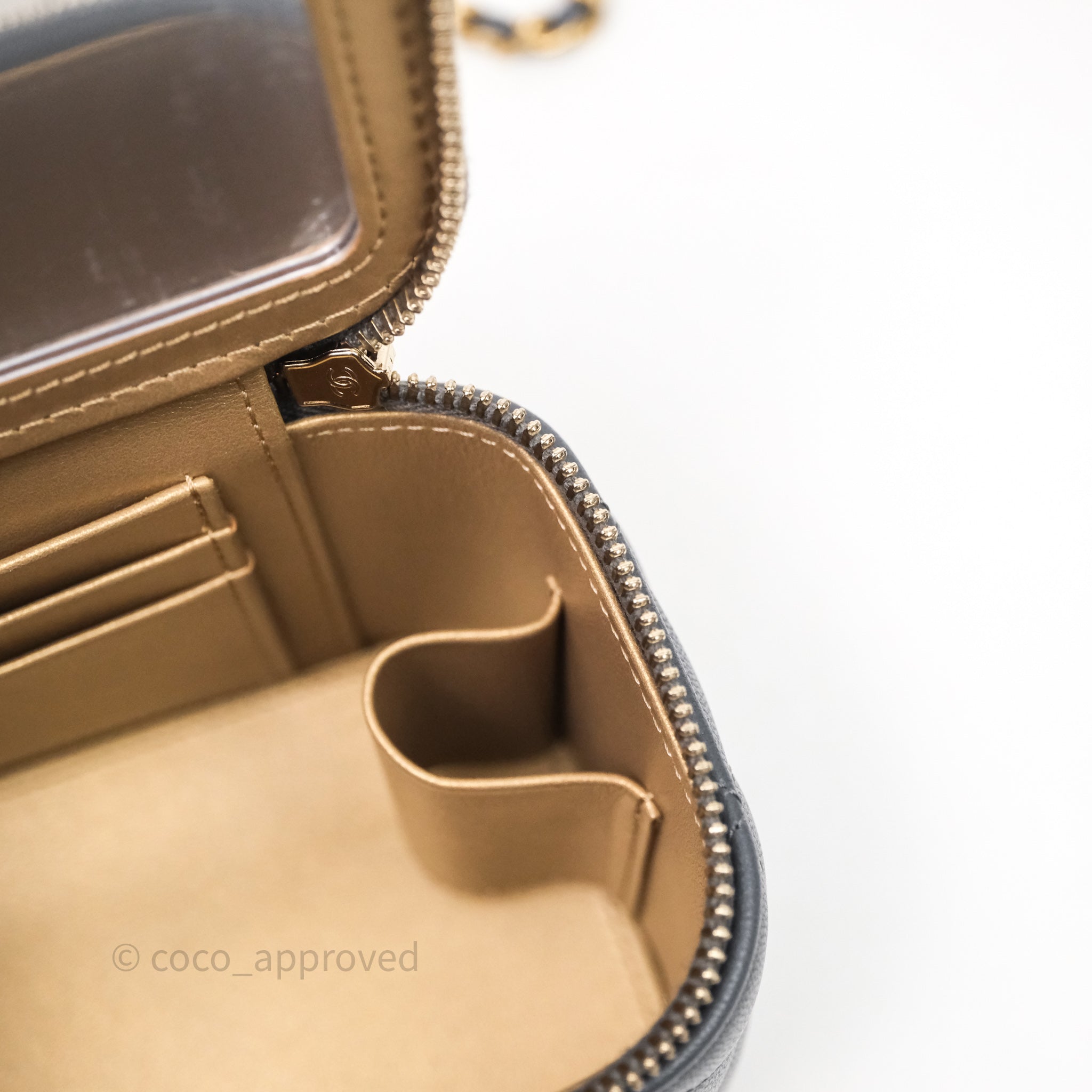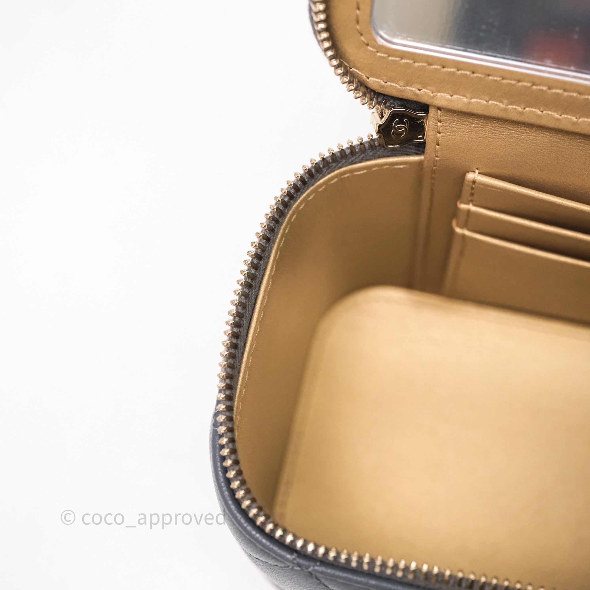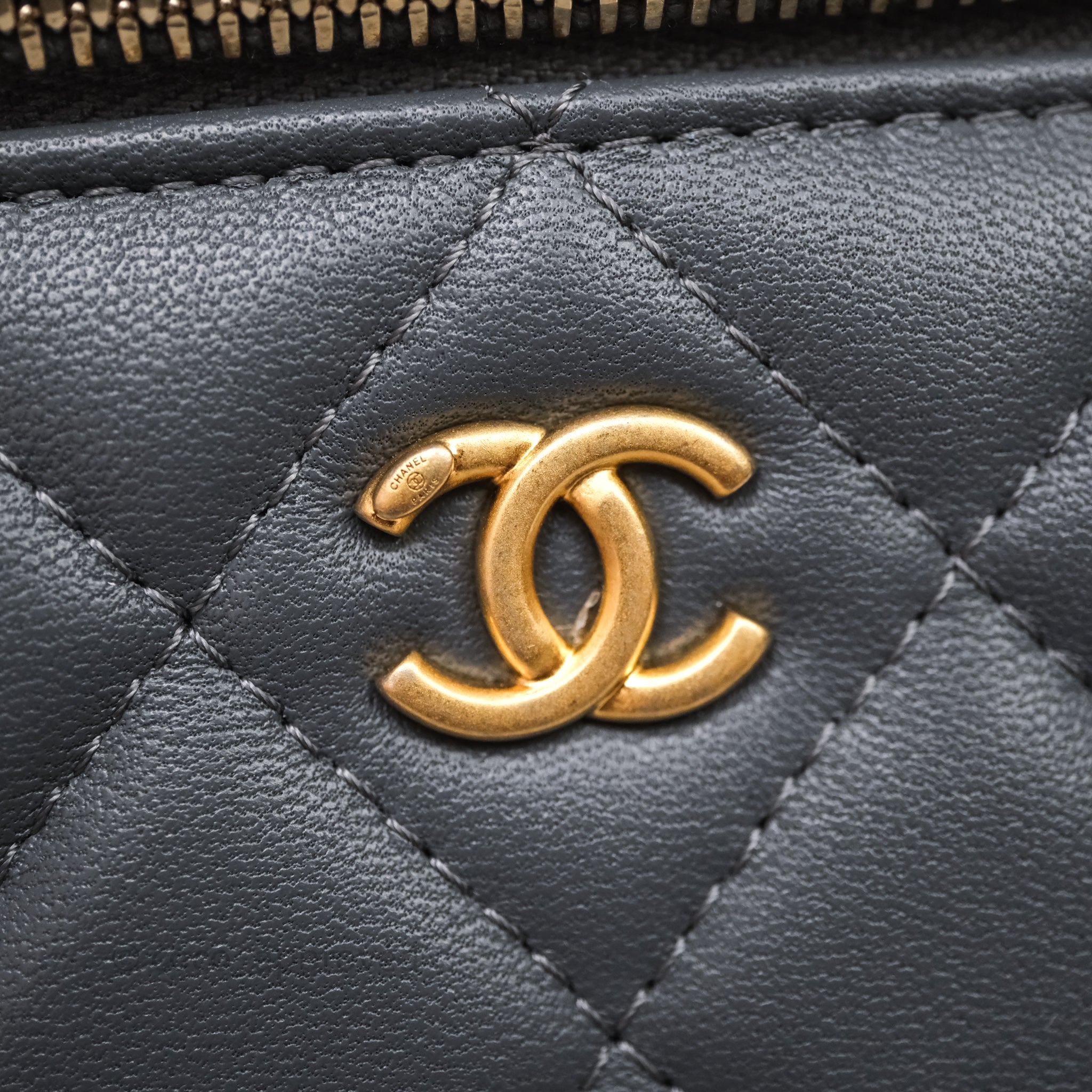 Chanel Pearl Crush Vanity With Chain Dark Grey Lambskin Aged Gold Hardware