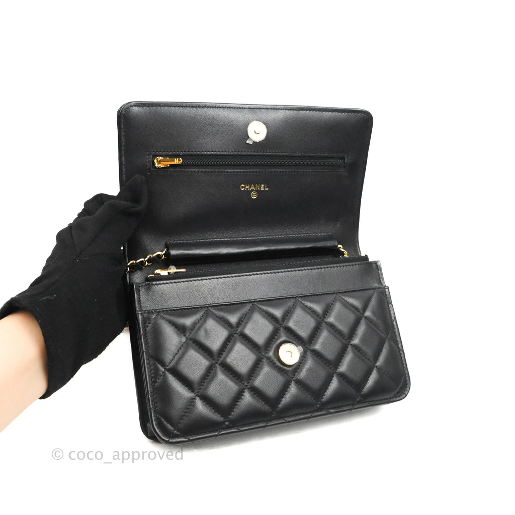 Chanel Quilted Classic Wallet on Chain WOC Black Lambskin Gold Hardware