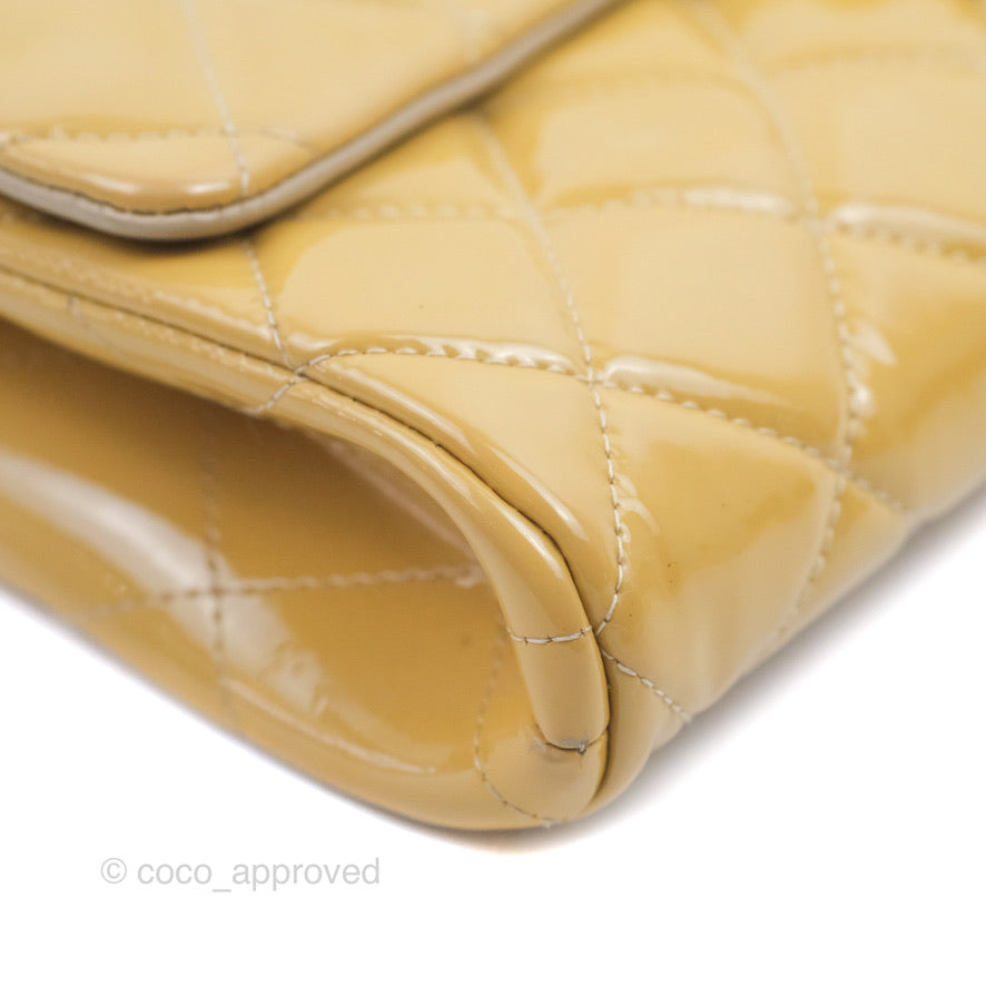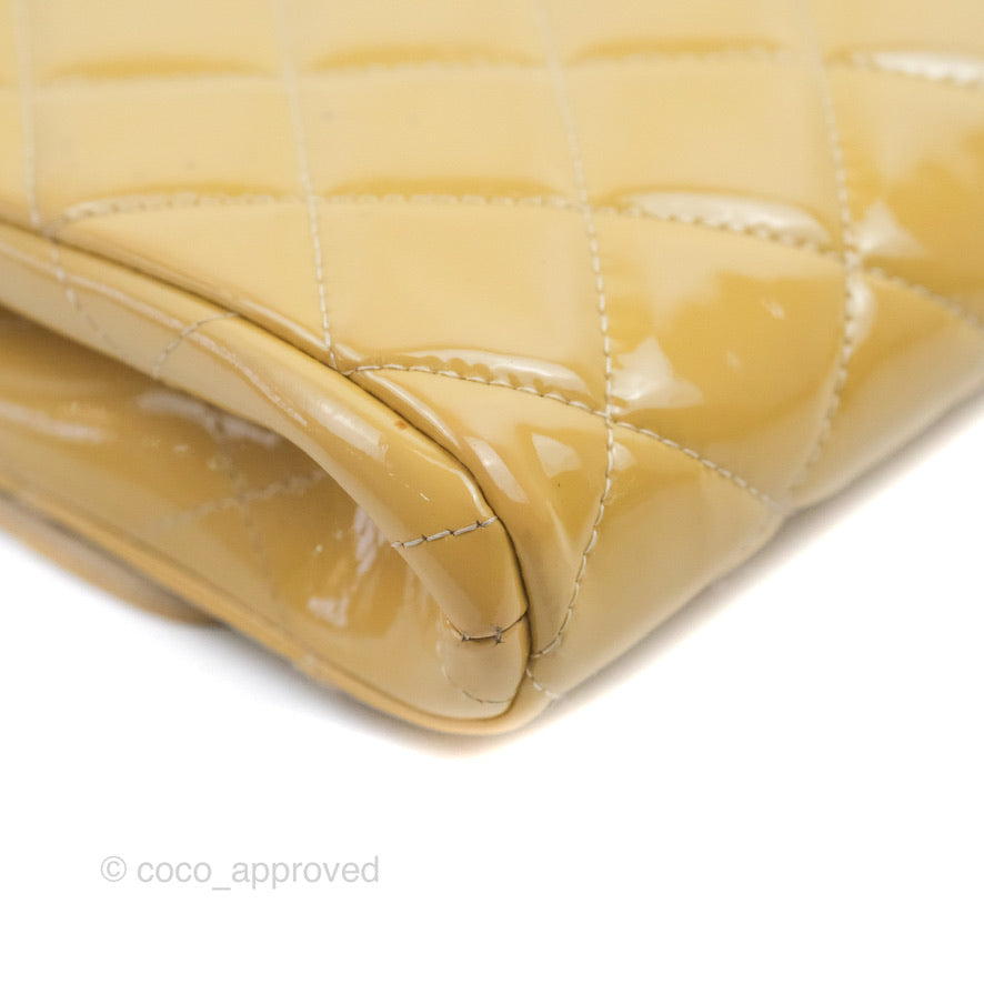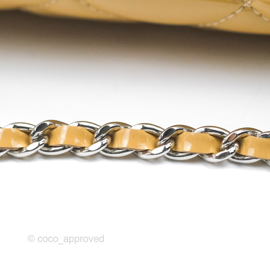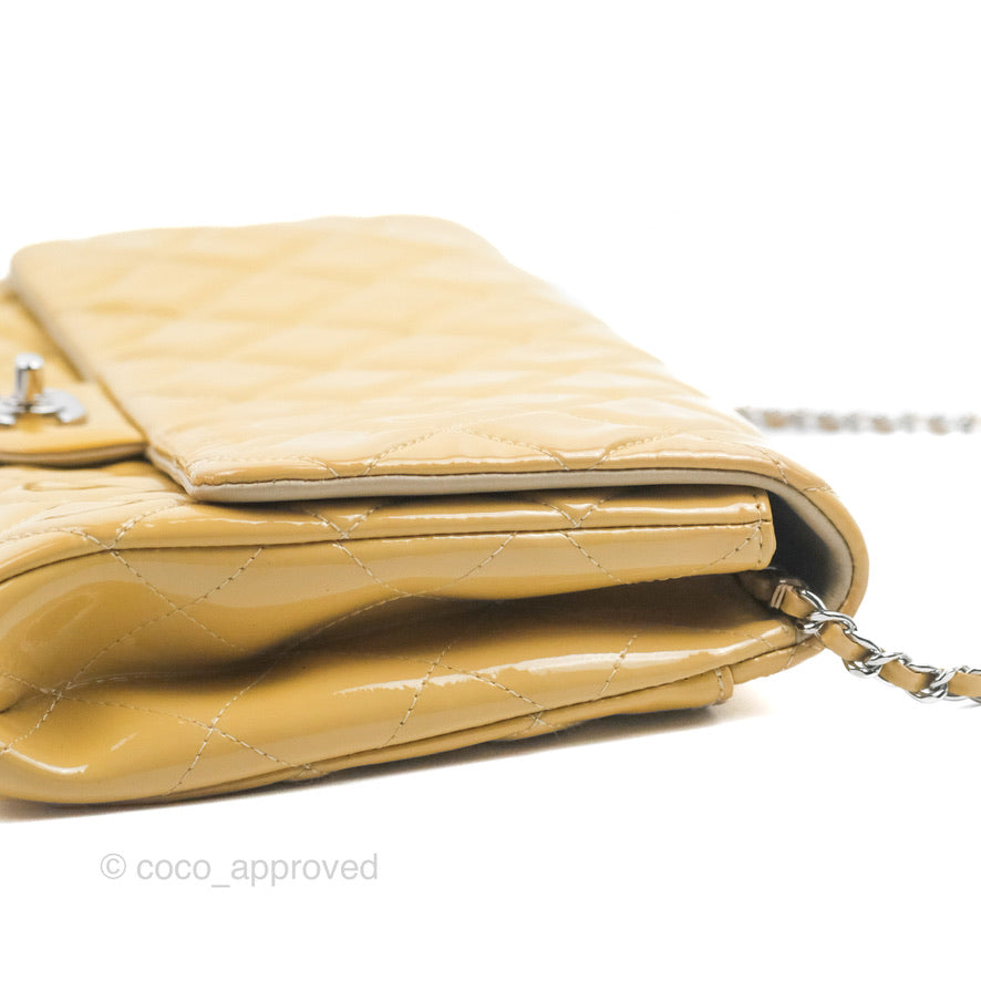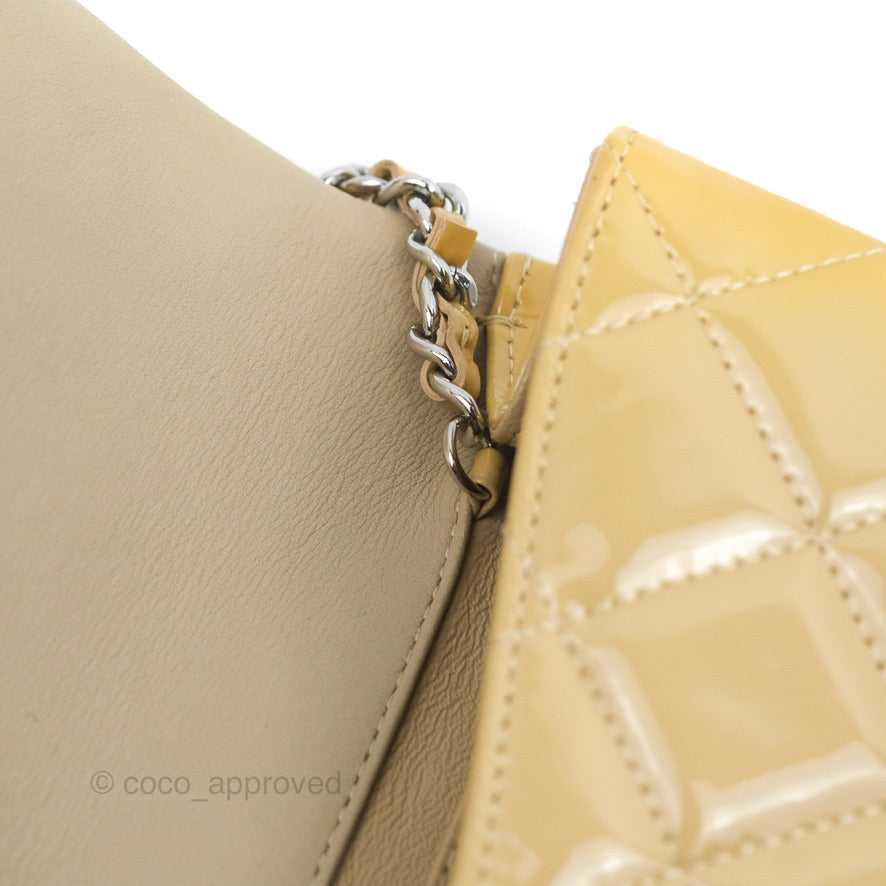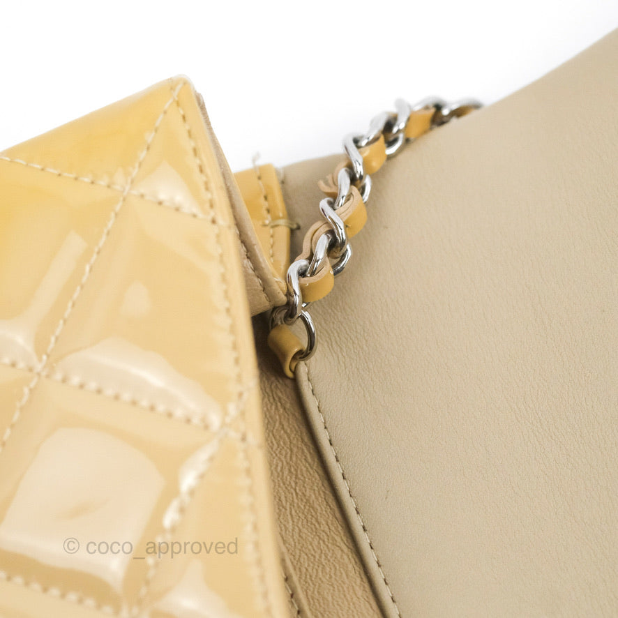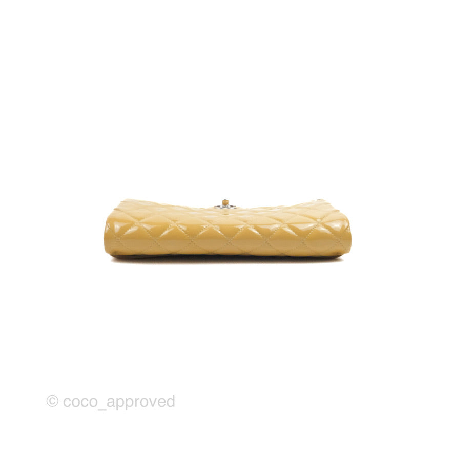Chanel Quilted Clutch with Chain Beige Patent Silver Hardware