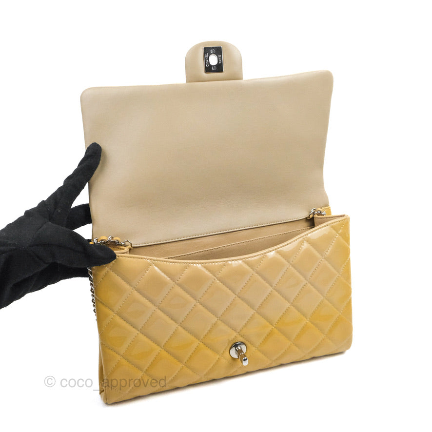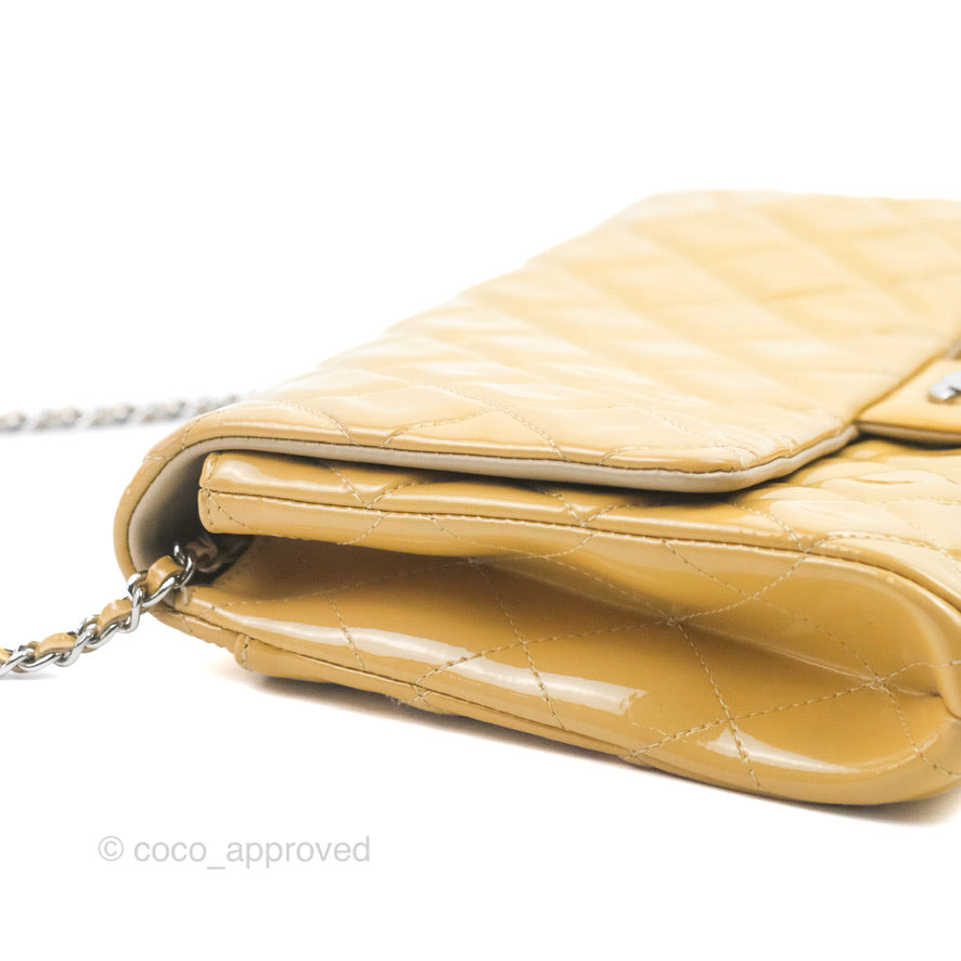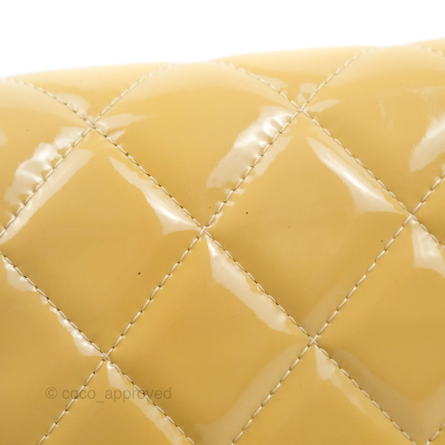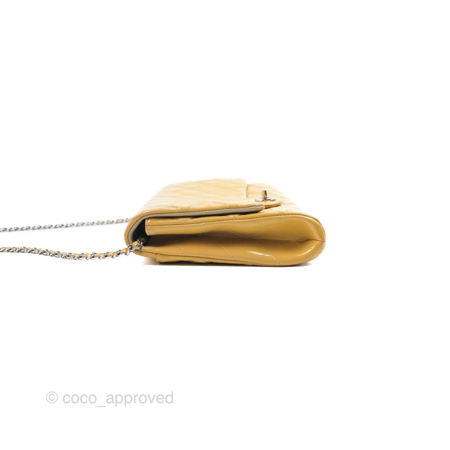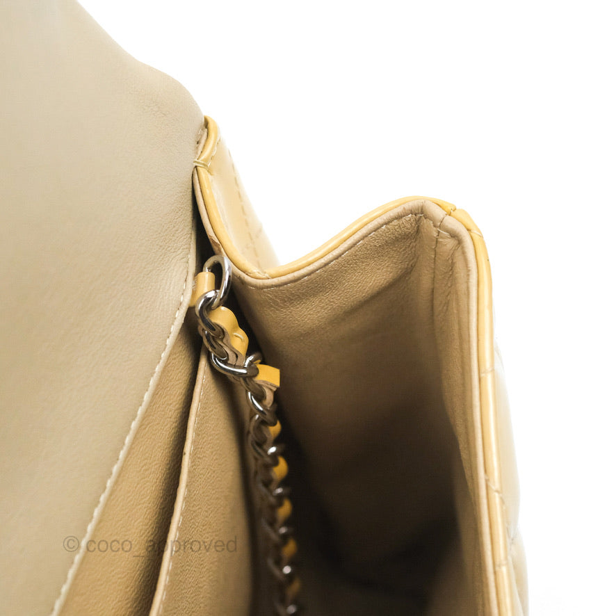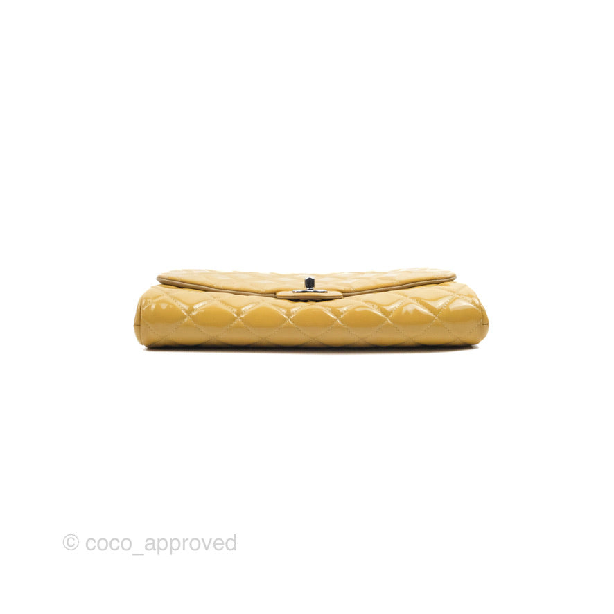 Chanel Quilted Clutch with Chain Beige Patent Silver Hardware