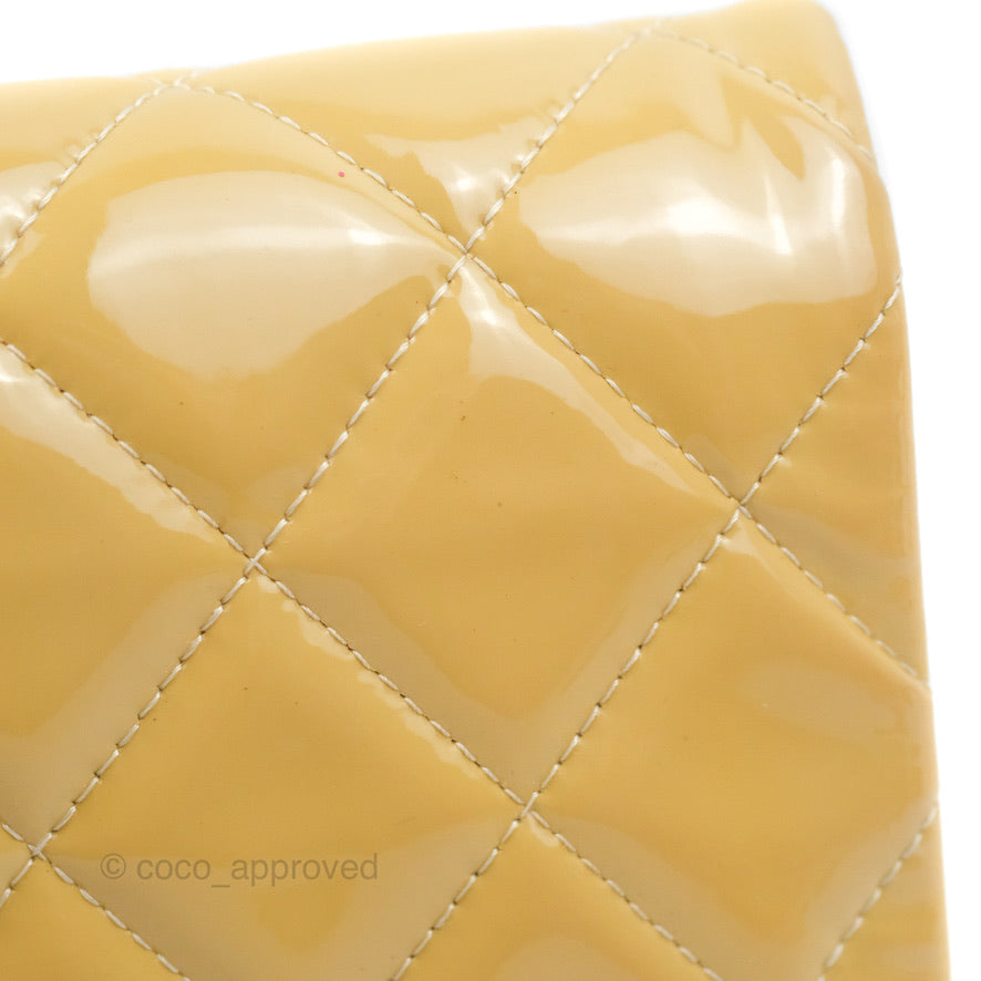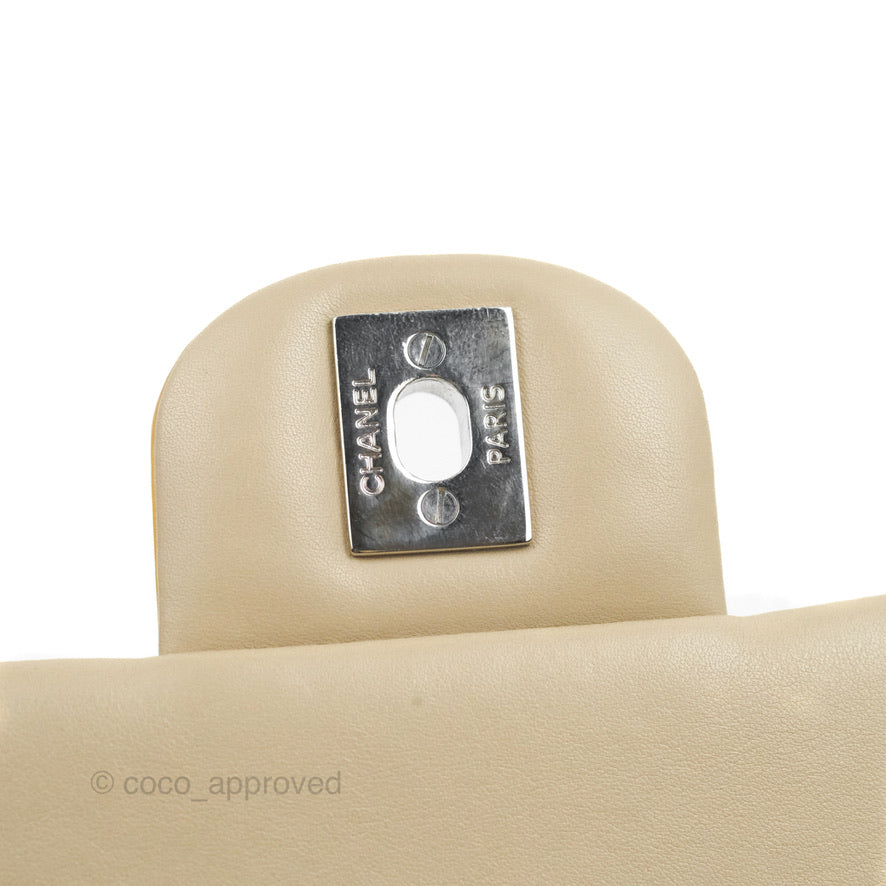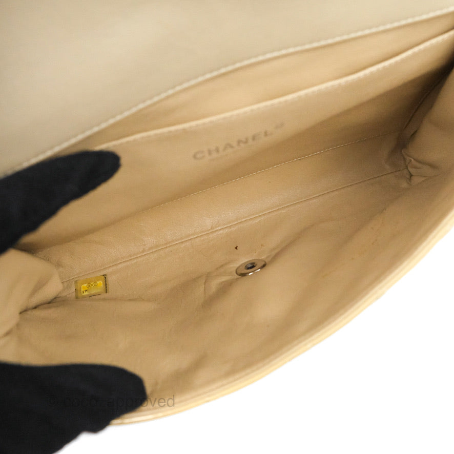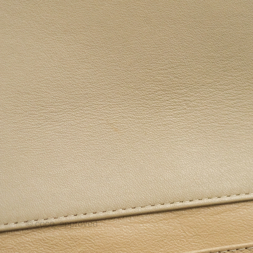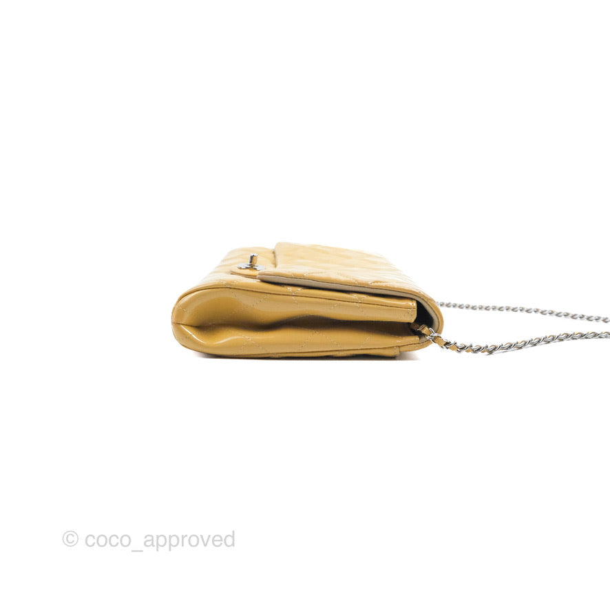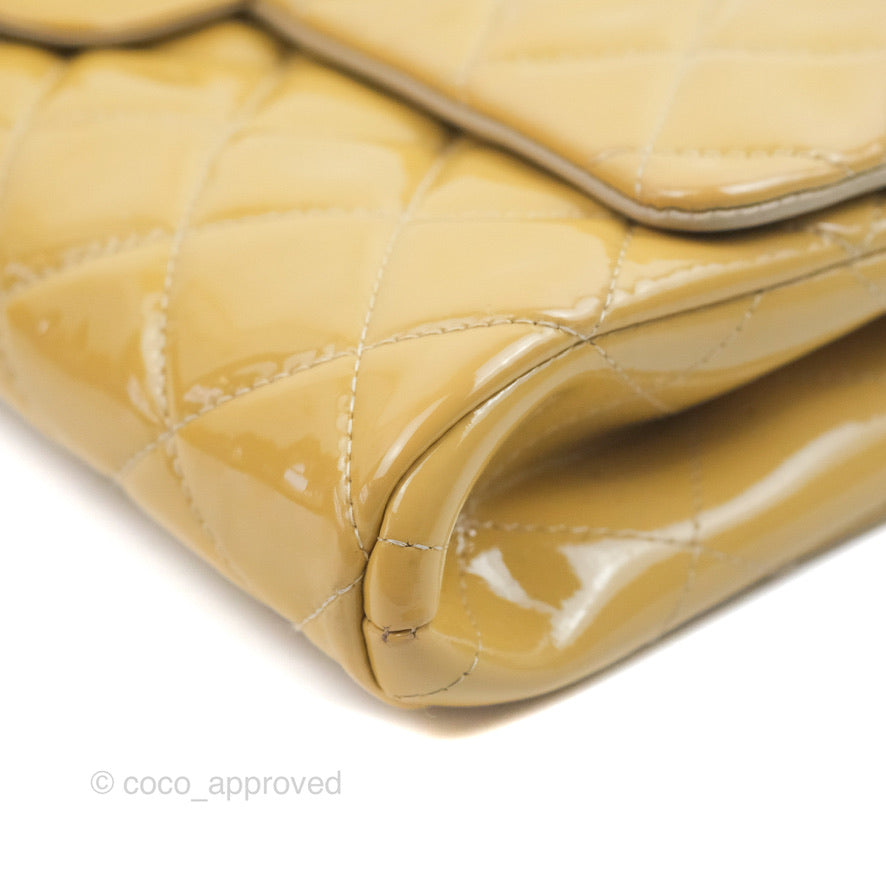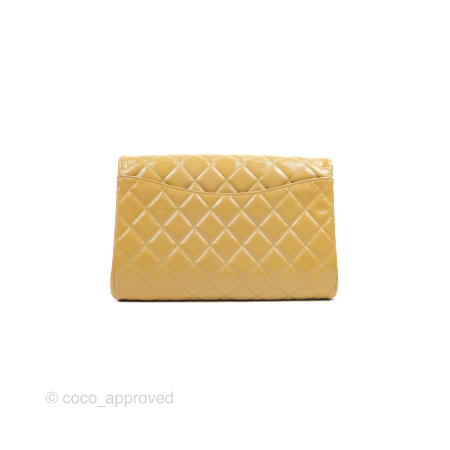 Chanel Quilted Clutch with Chain Beige Patent Silver Hardware