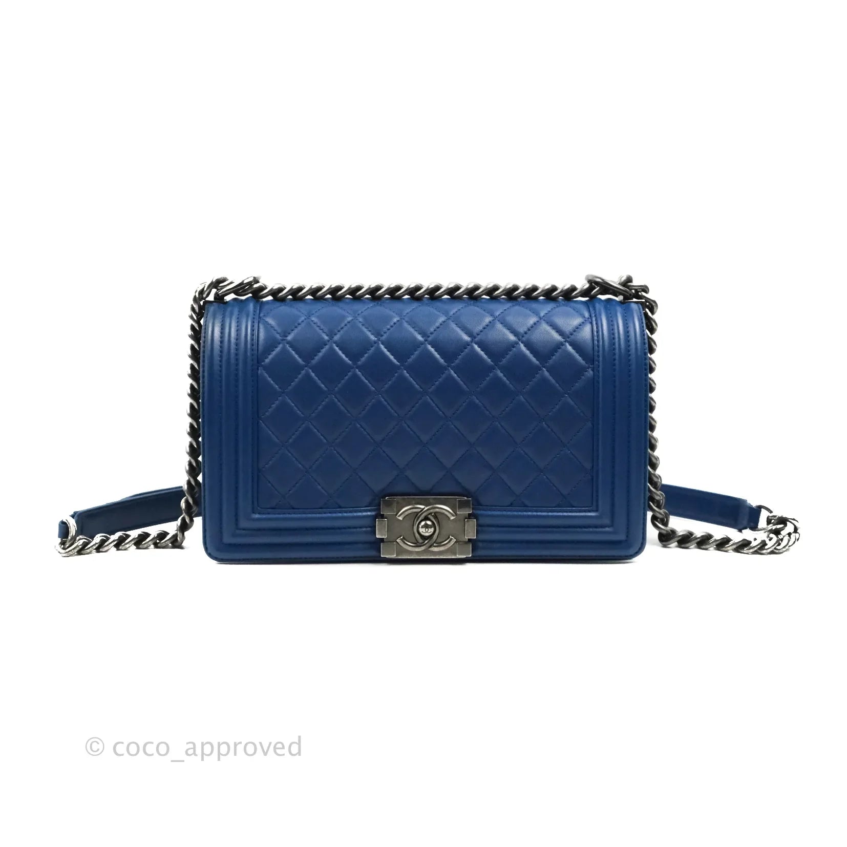 Chanel Quilted Medium Boy Blue Calfskin Ruthenium Hardware is now sold. Please subscribe for any updates if similar item becomes available.