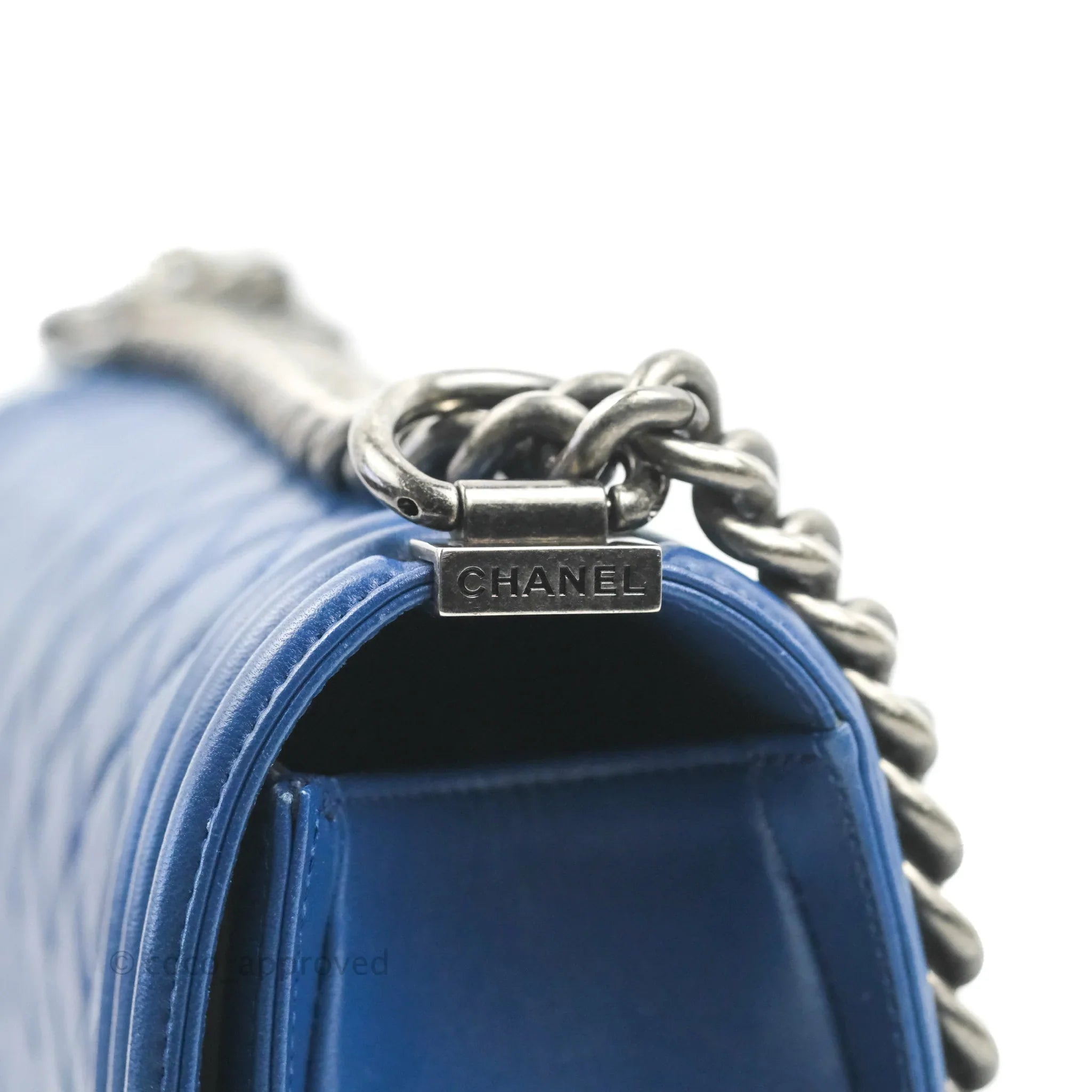 Chanel Quilted Medium Boy Blue Calfskin Ruthenium Hardware