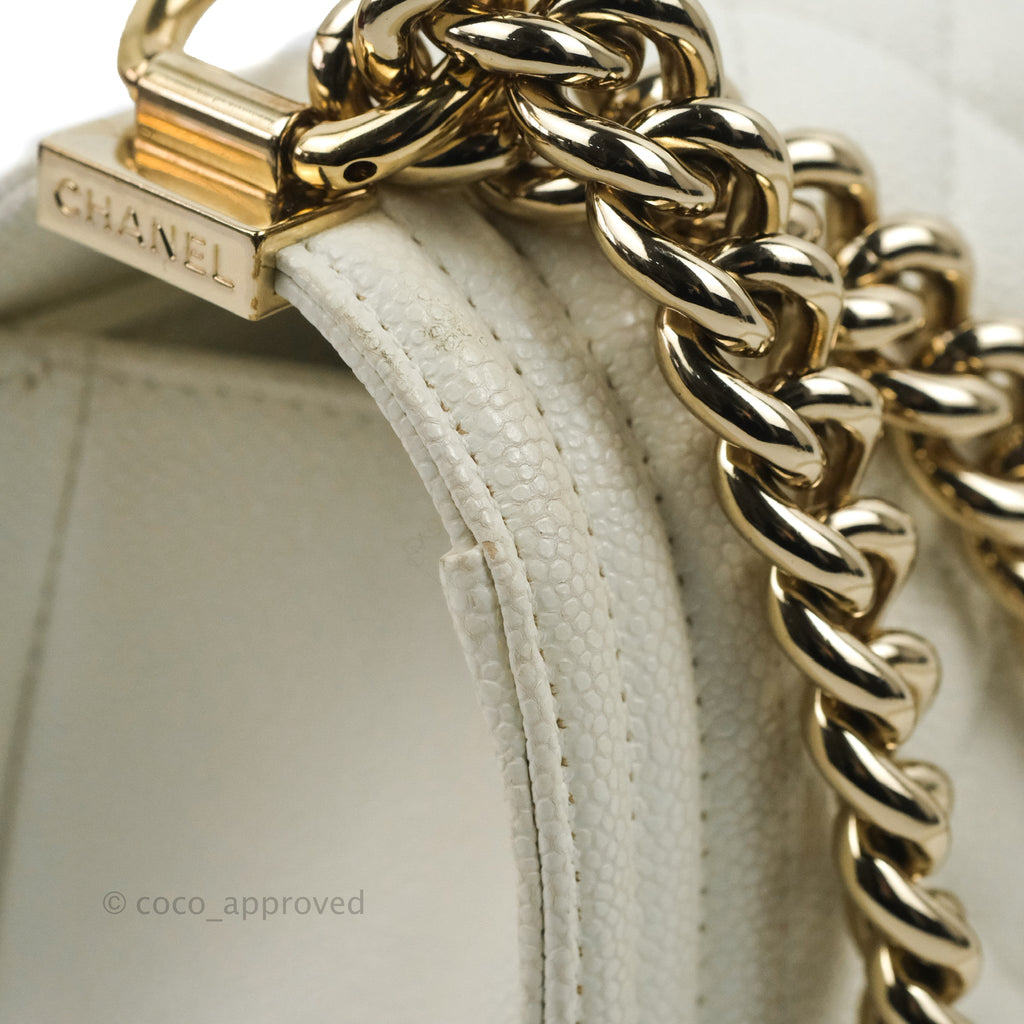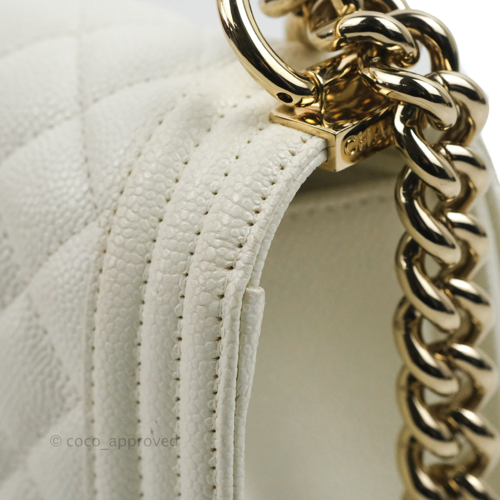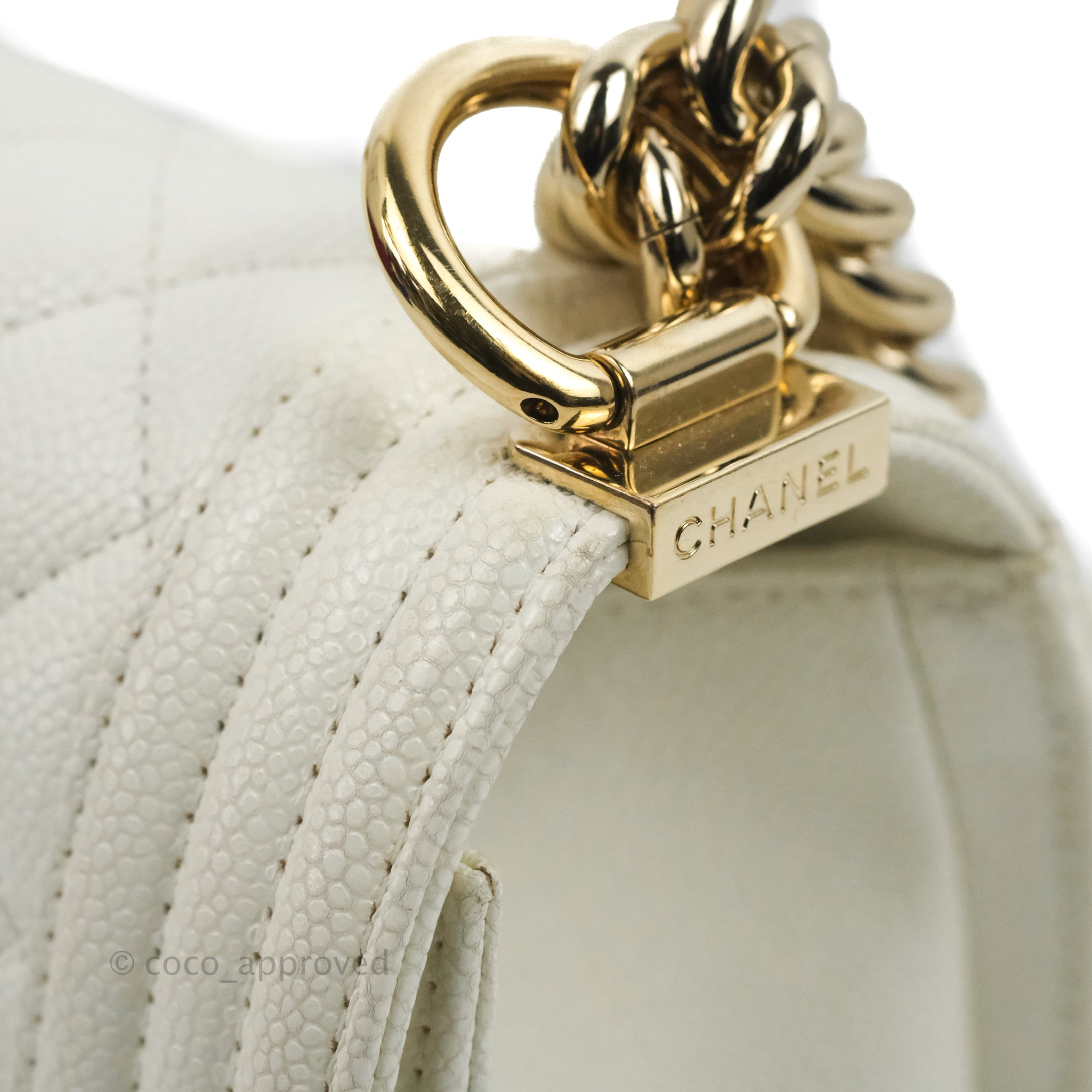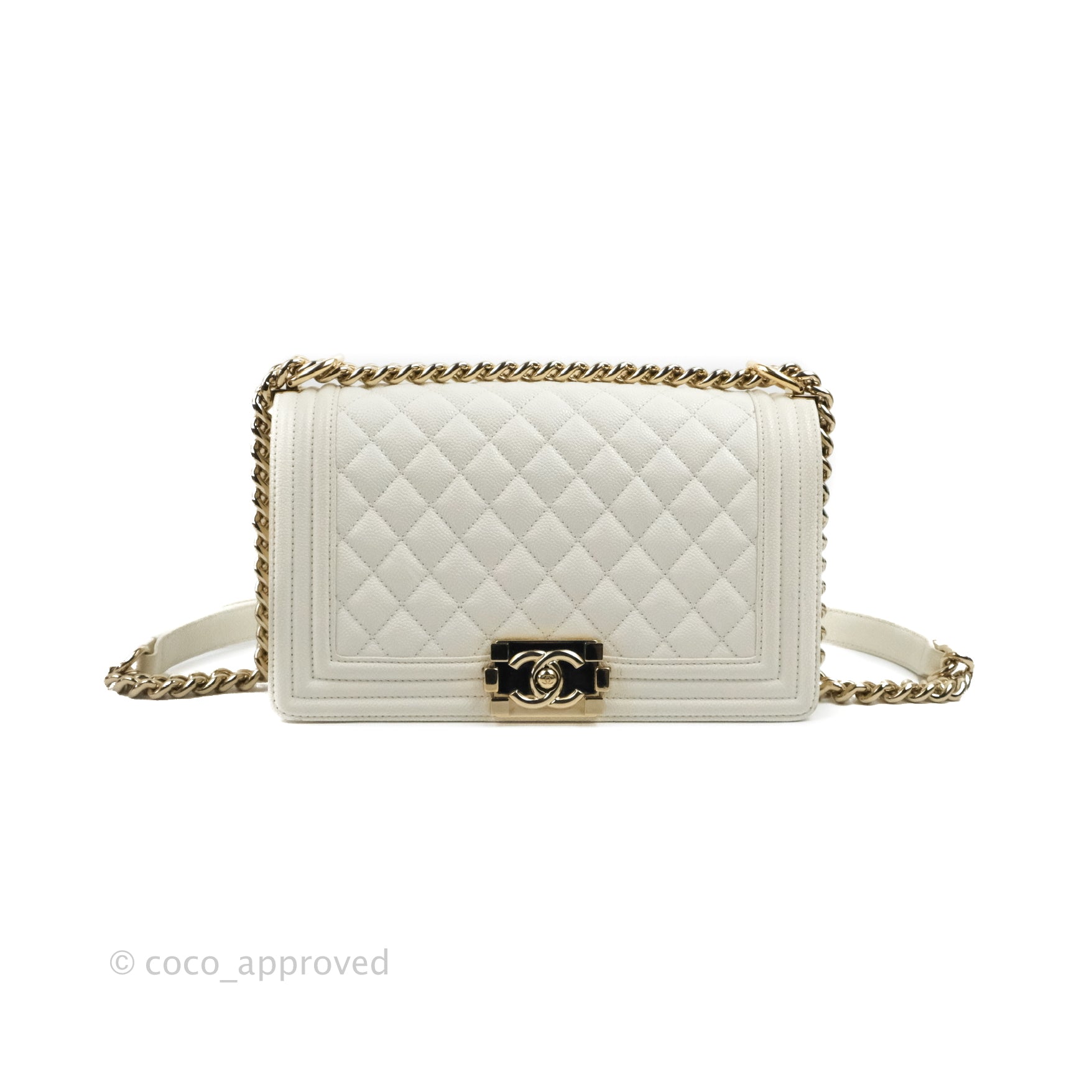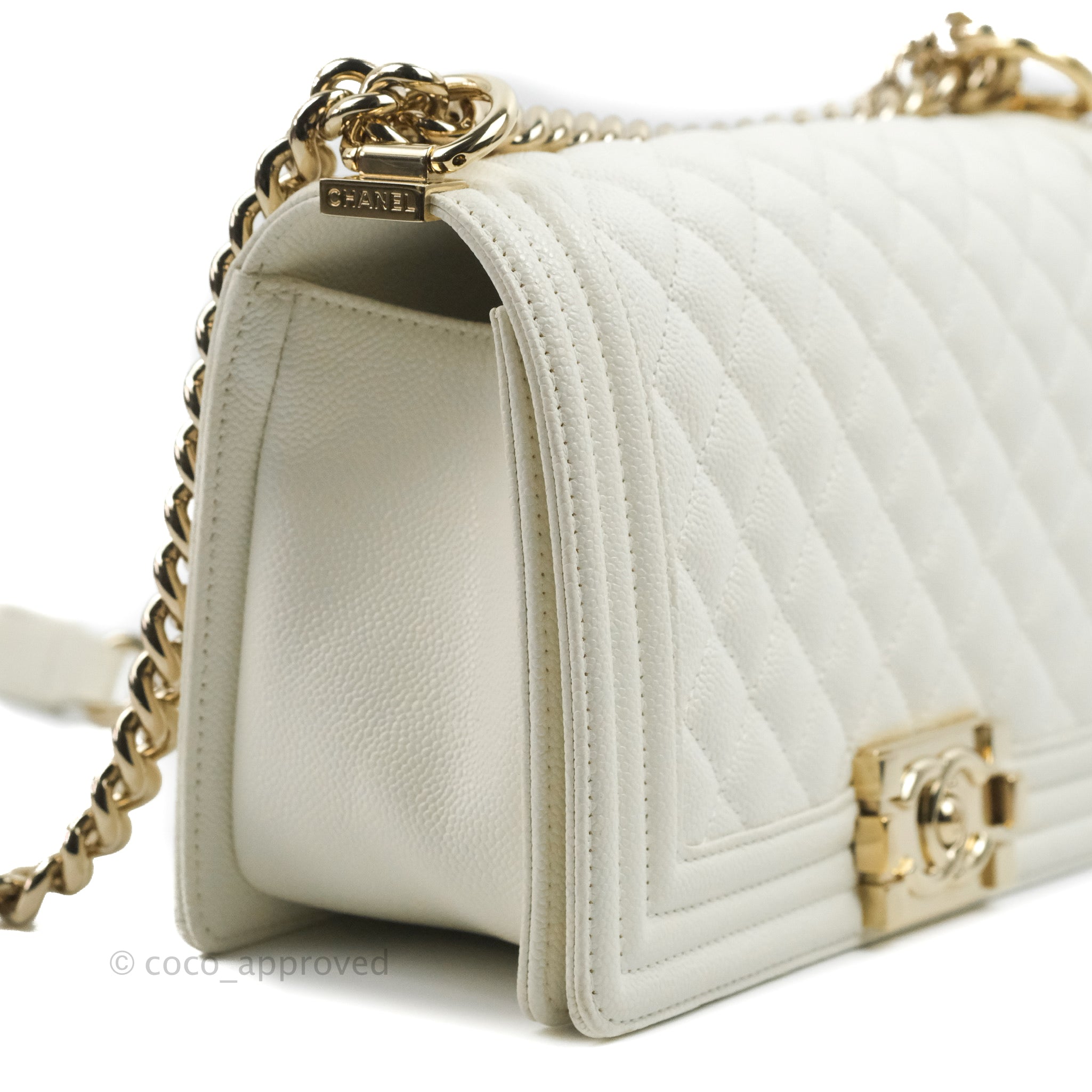 Chanel Quilted Medium Boy White Caviar Gold Hardware