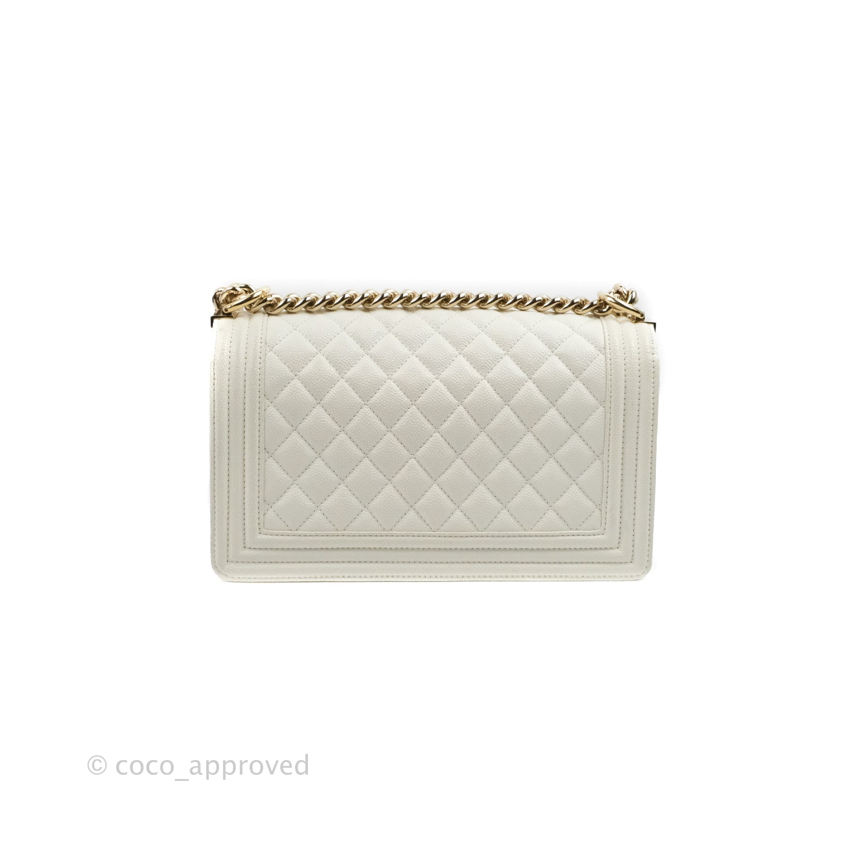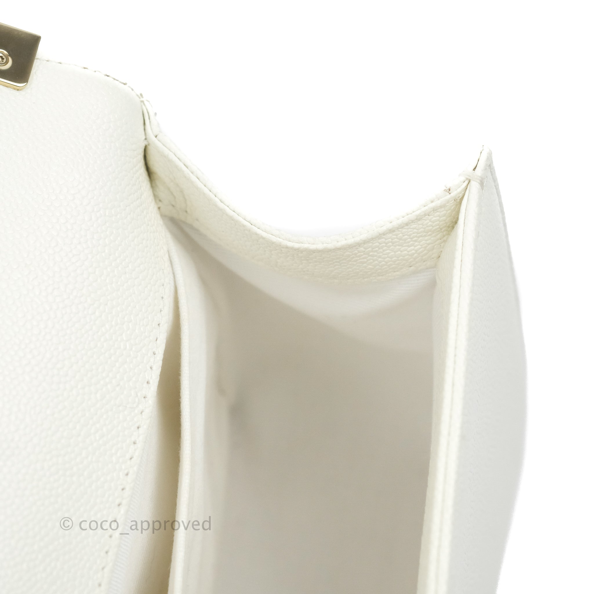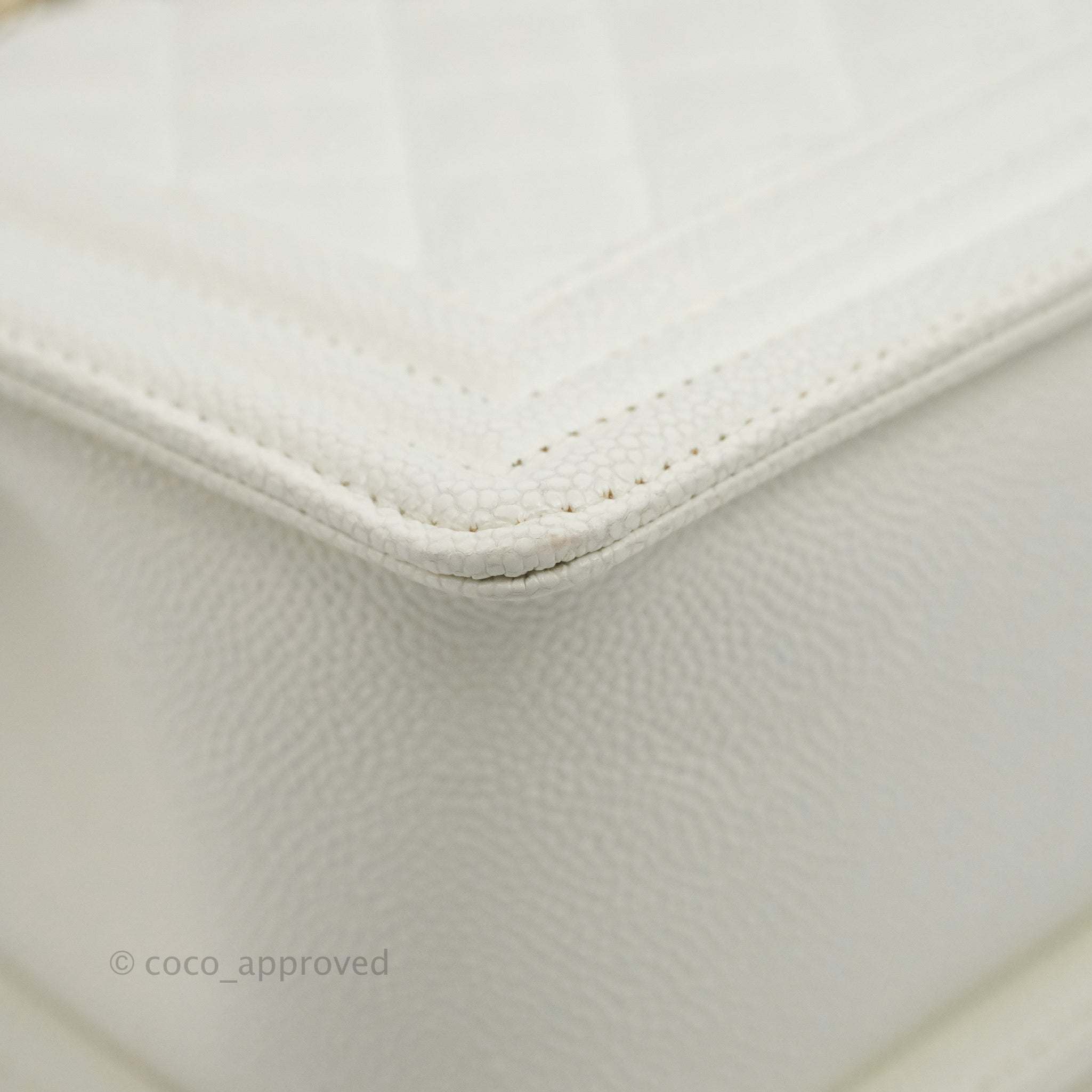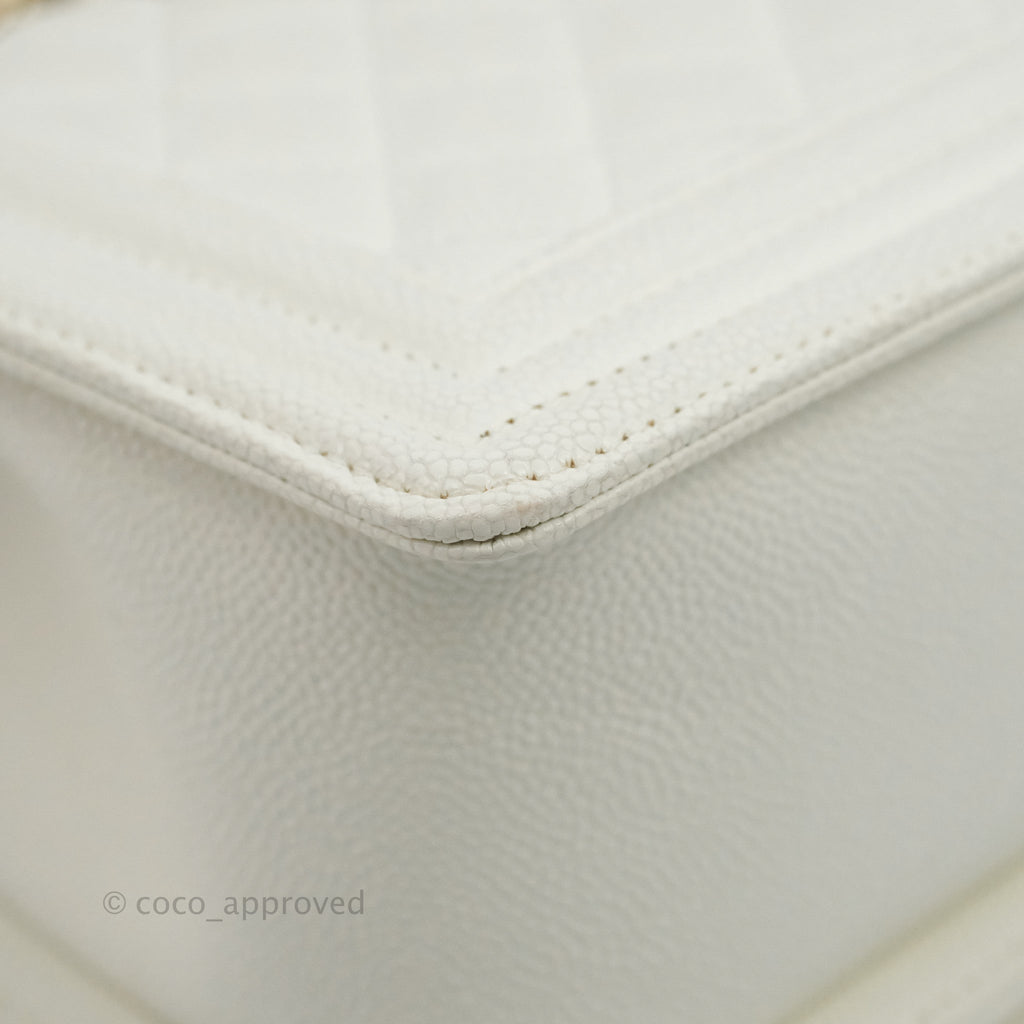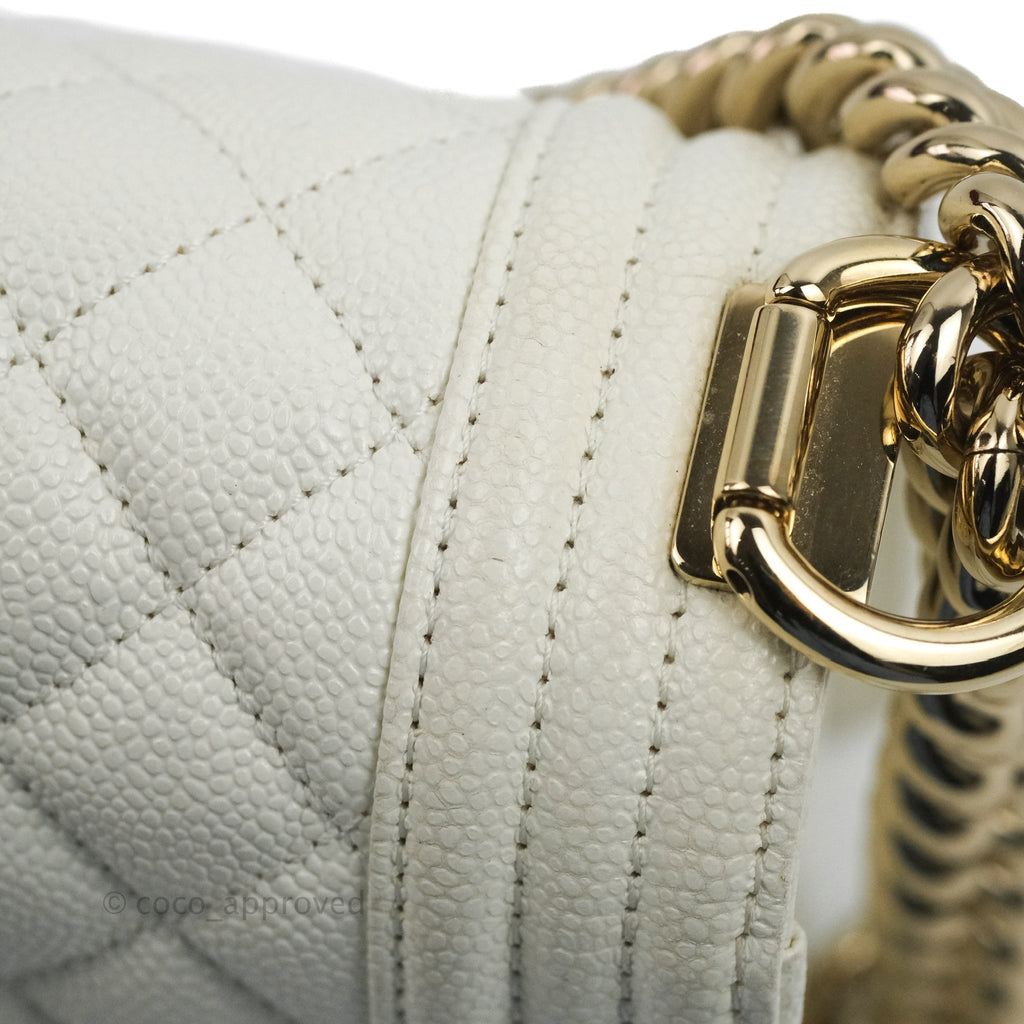 Chanel Quilted Medium Boy White Caviar Gold Hardware